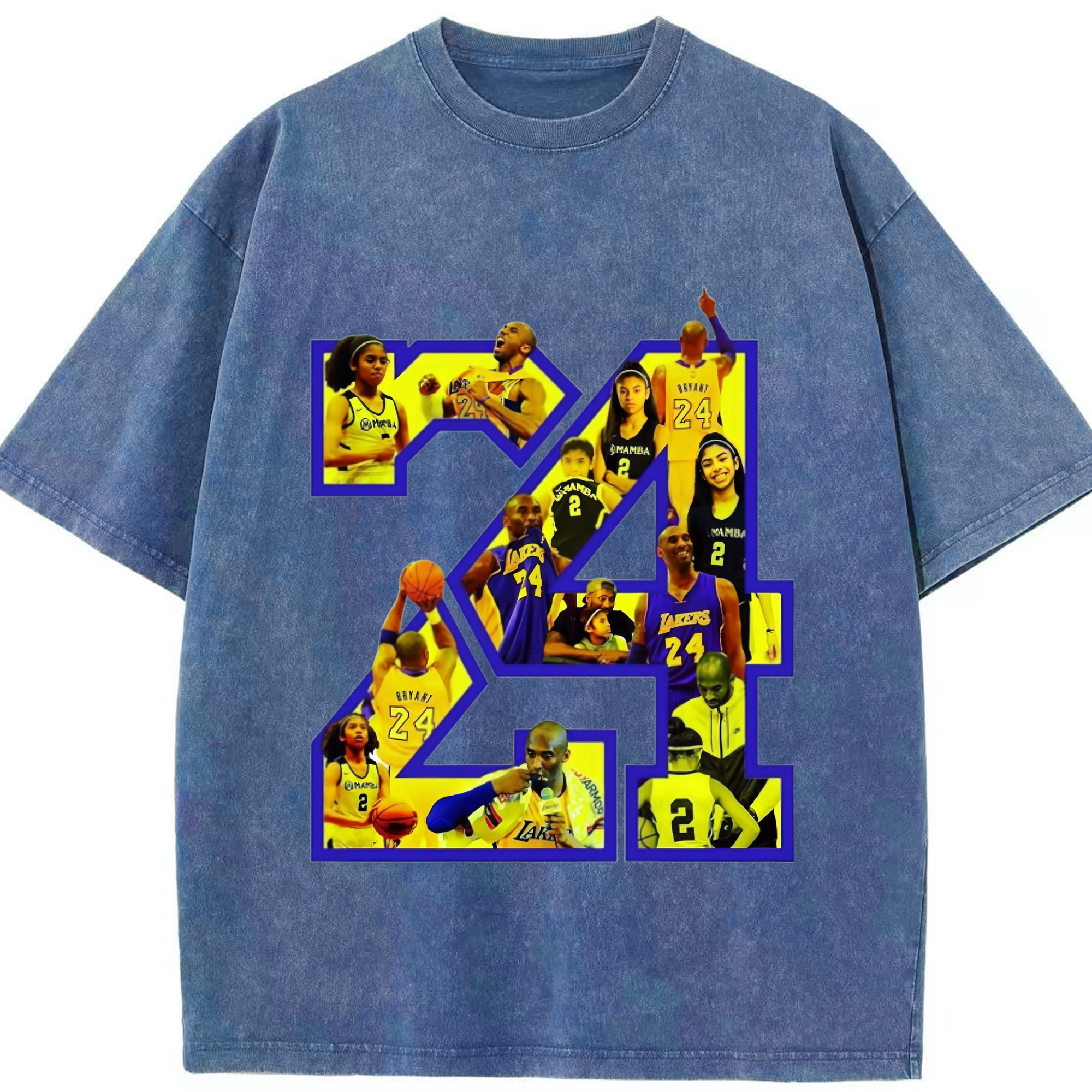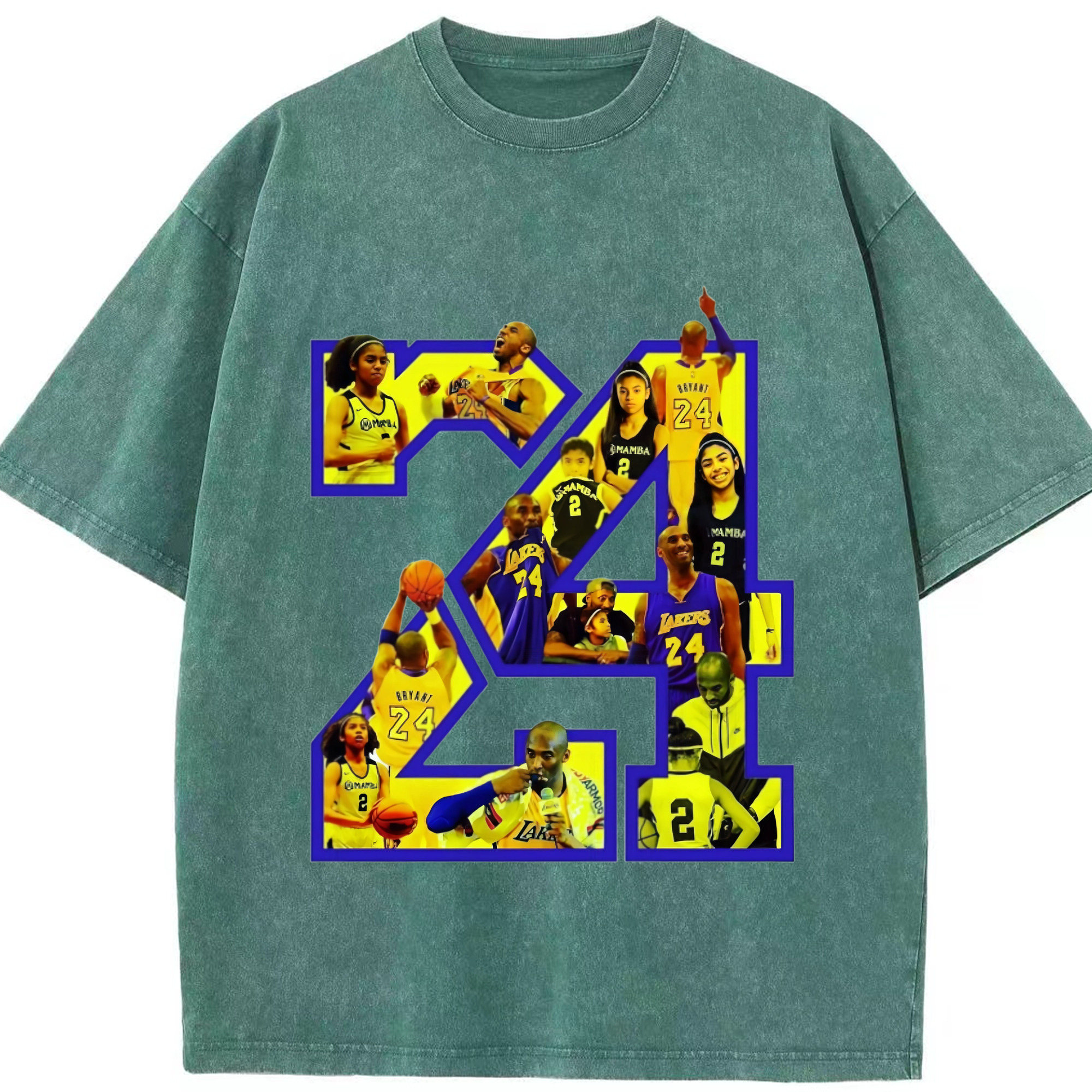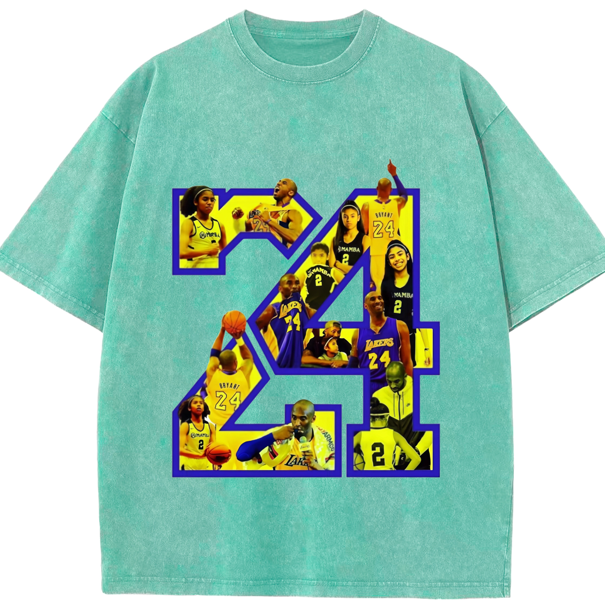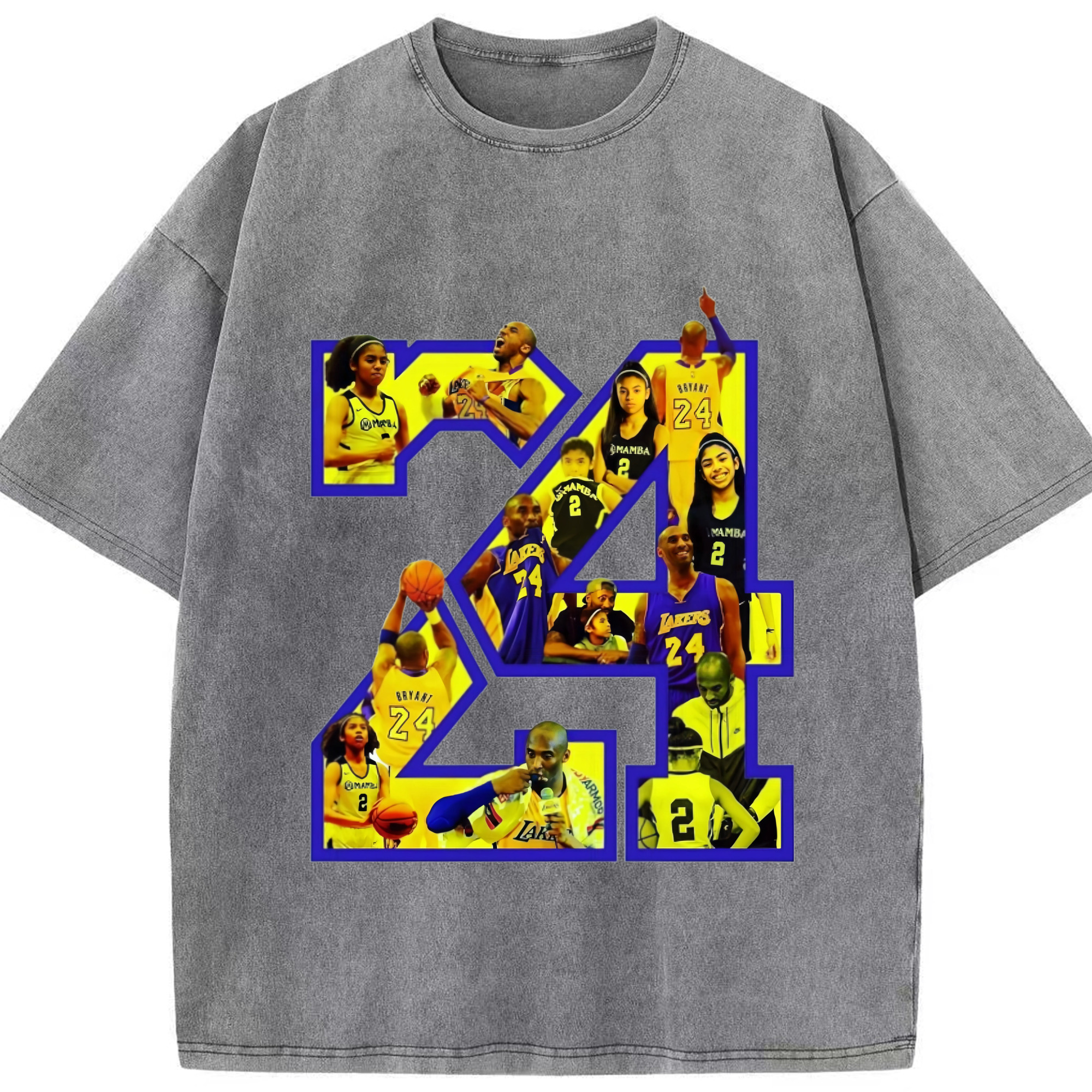 Kobe and gianna bryant #24 graphic T‑Shirt - Washed Vintage Look 230g Cotton Oversized T-Shirt With Front Heat Transfer Print – Soft, Lightweight, Stylish Fit – Comfortable Casual Wear For Sports & Everyday Use