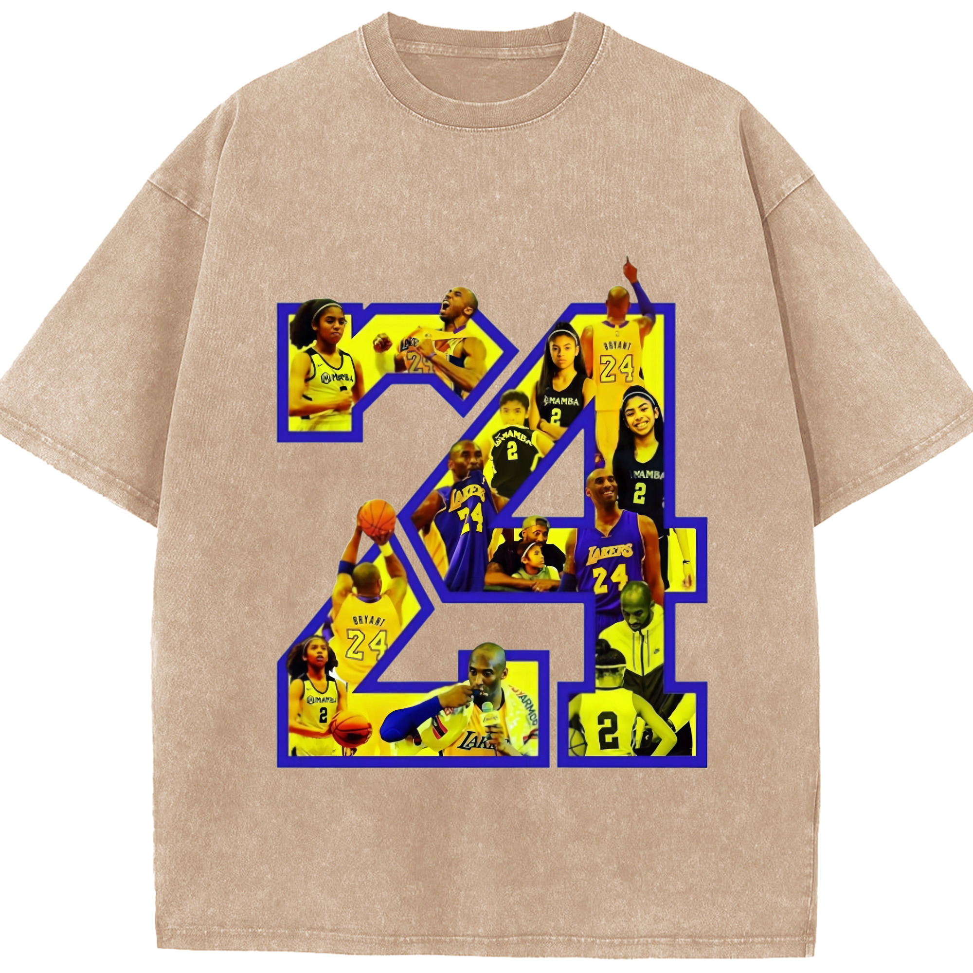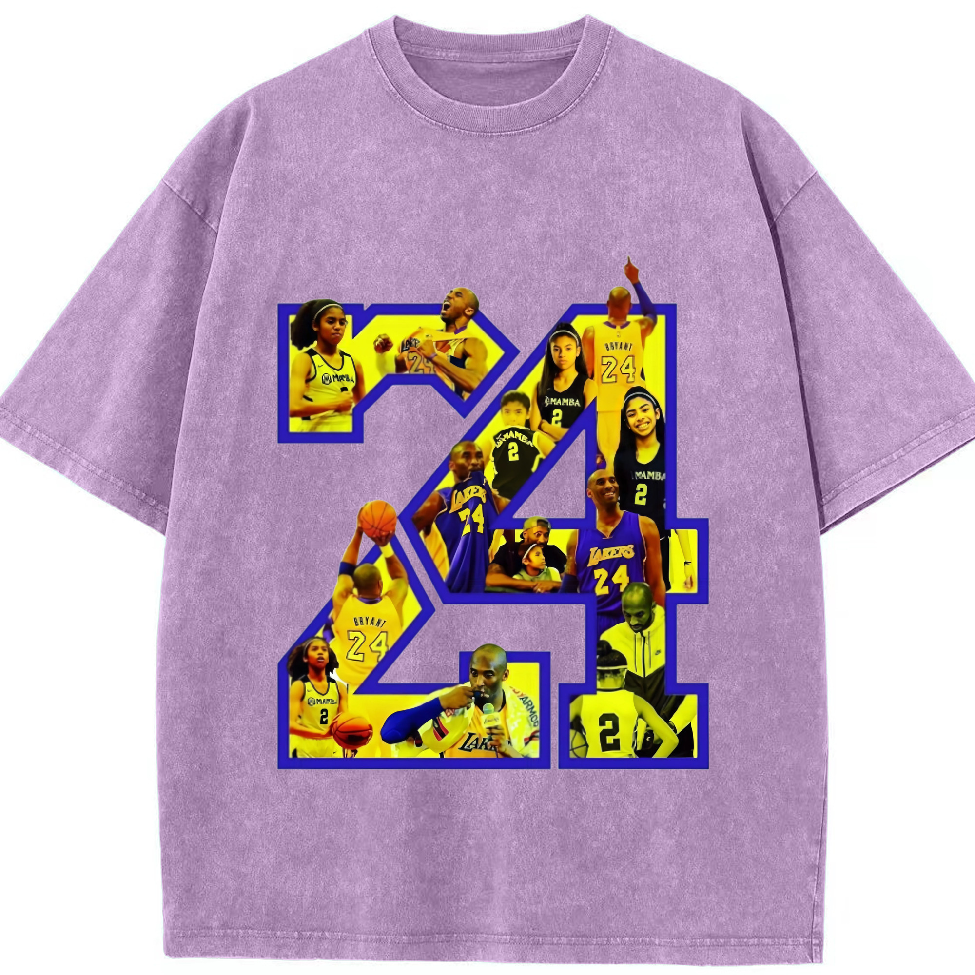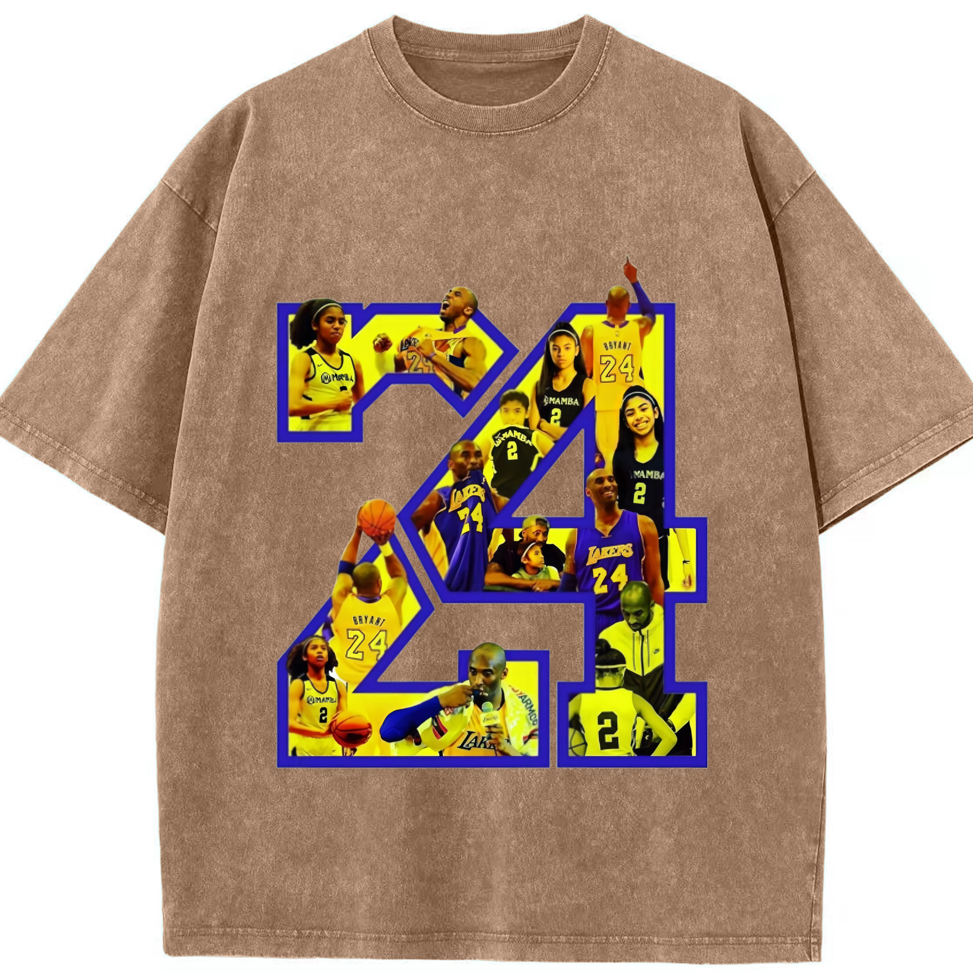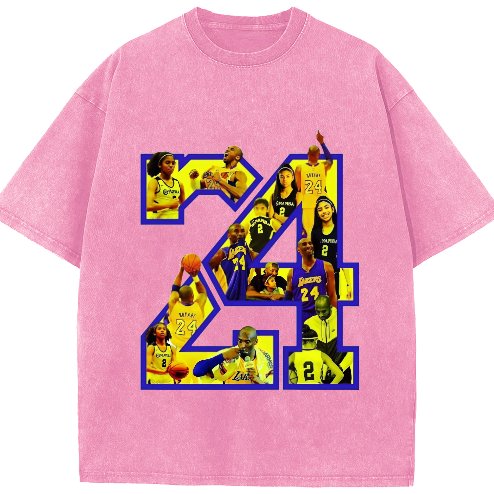 Kobe and gianna bryant #24 graphic T‑Shirt - Washed Vintage Look 230g Cotton Oversized T-Shirt With Front Heat Transfer Print – Soft, Lightweight, Stylish Fit – Comfortable Casual Wear For Sports & Everyday Use