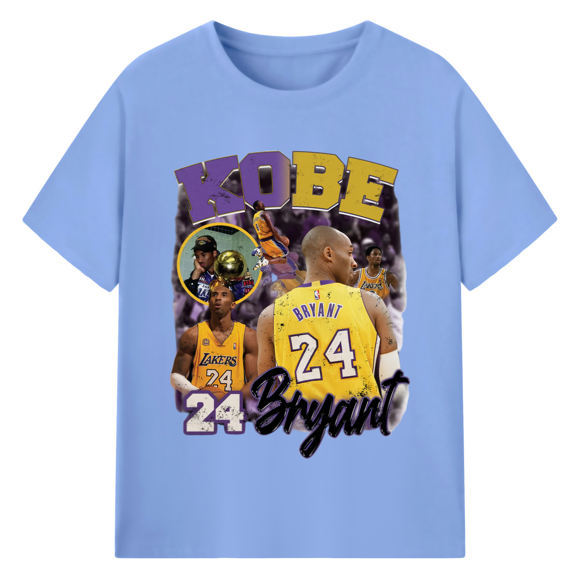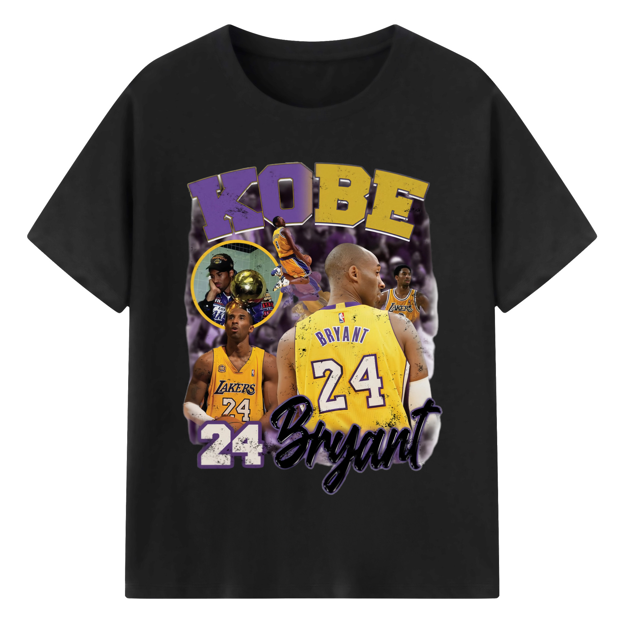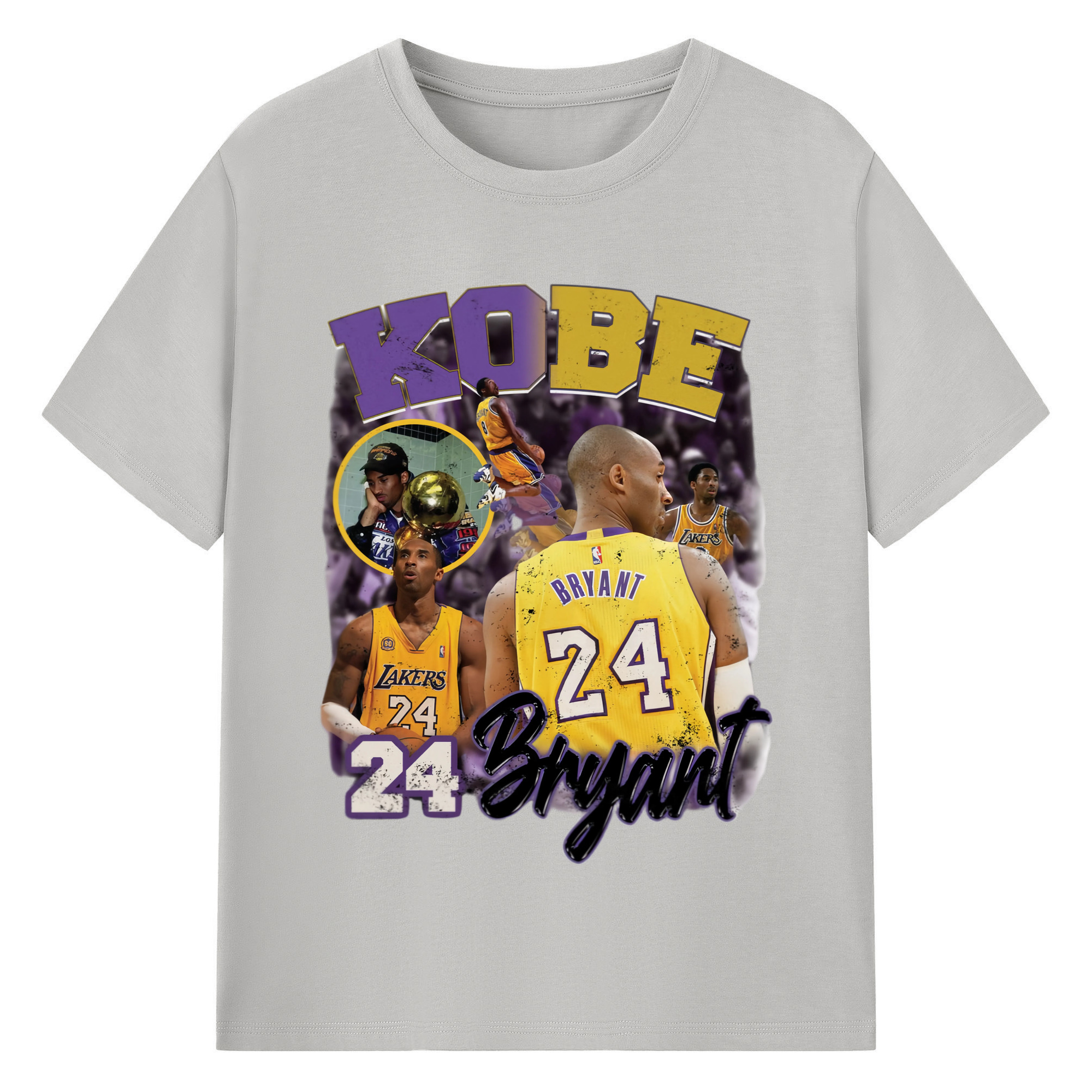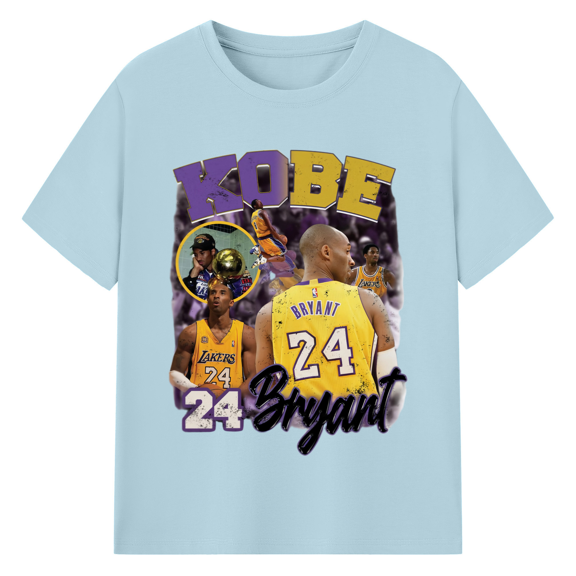 Kobe Bryant #24 collage T‑Shirt - 180g Cotton T-Shirt With Front Heat Transfer Print – Soft, Lightweight, Fitted Design – Comfortable Casual Wear For Sports & Everyday Use