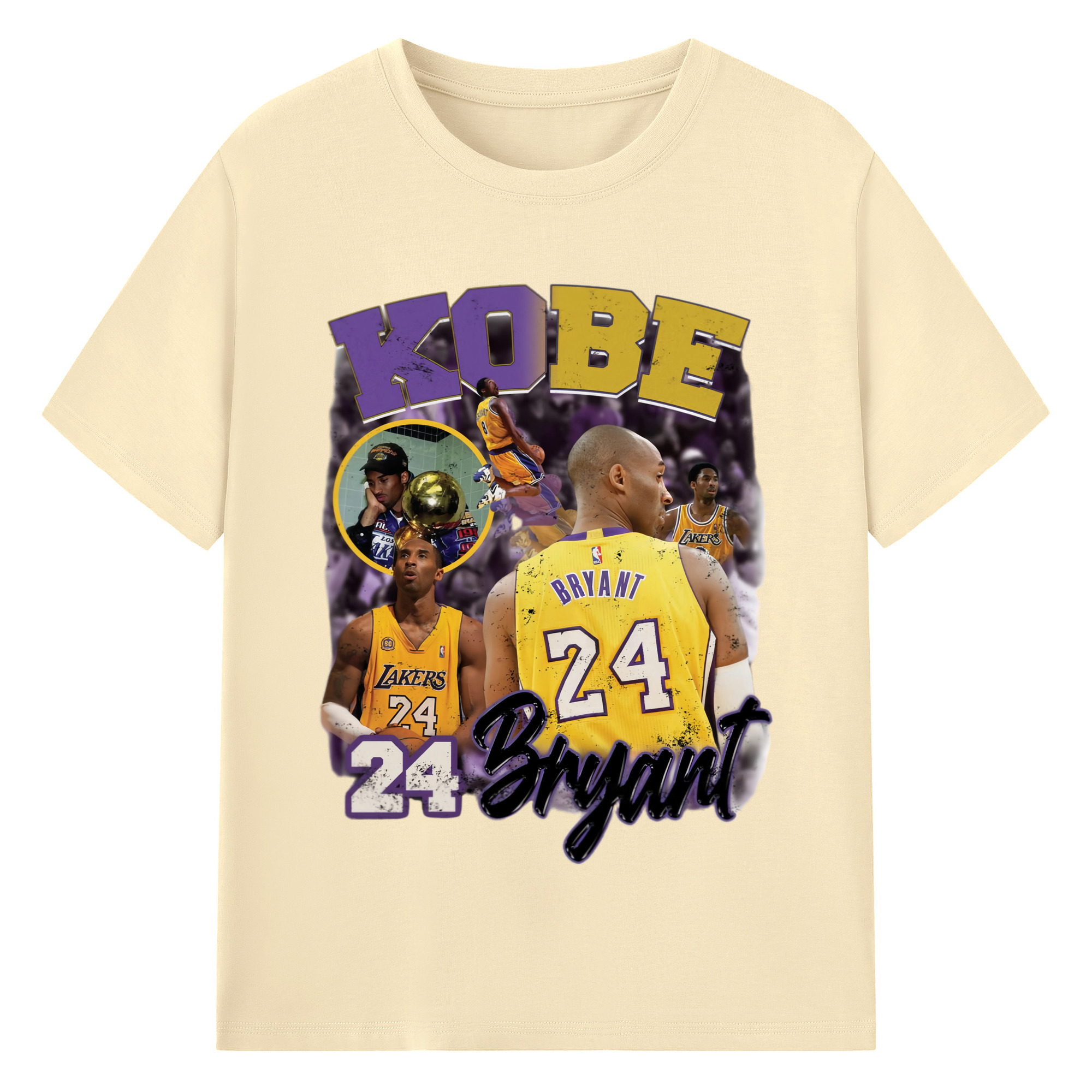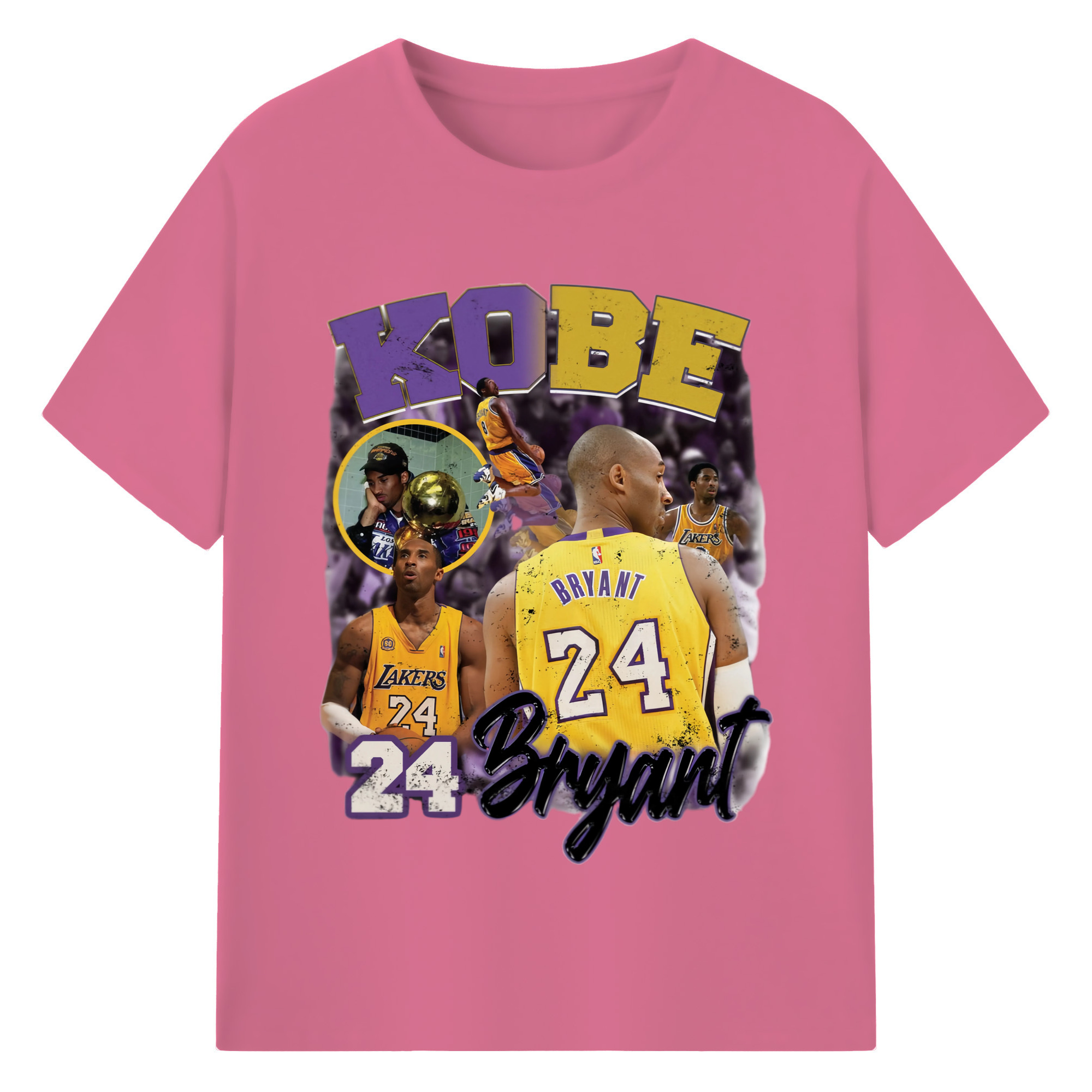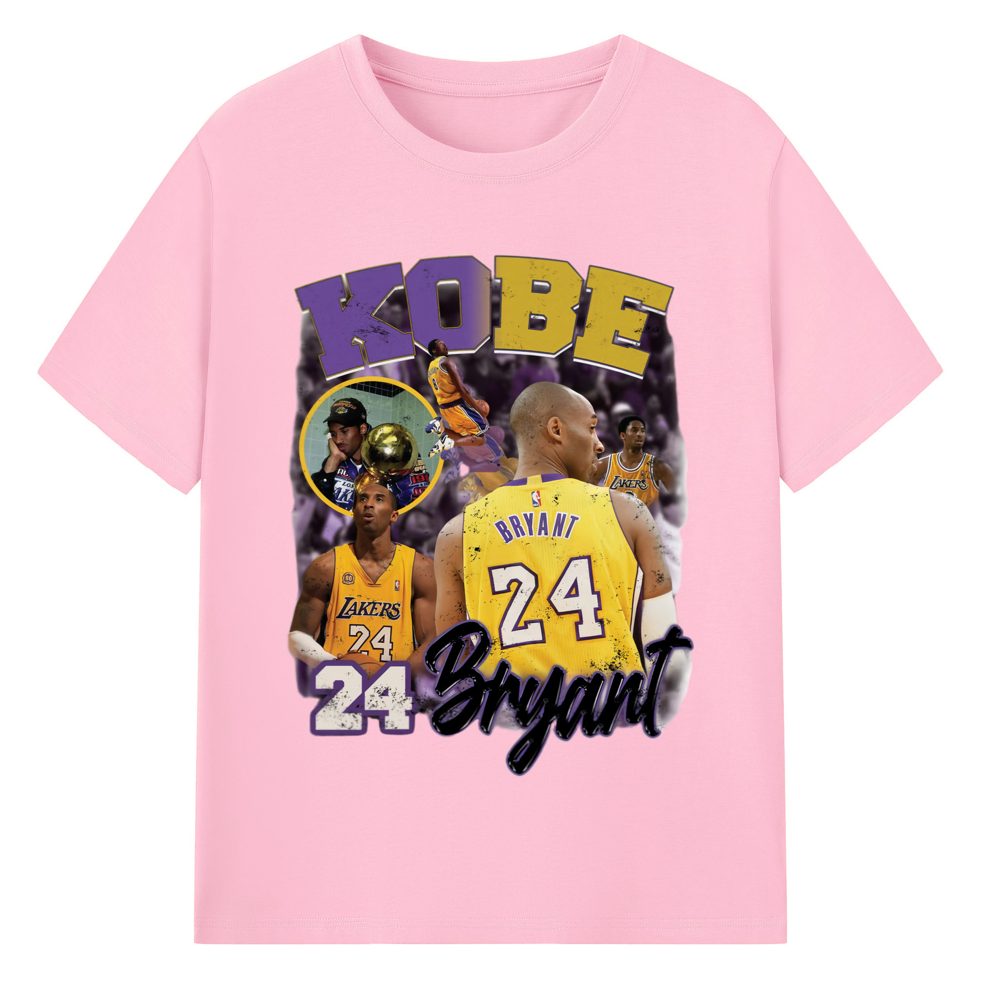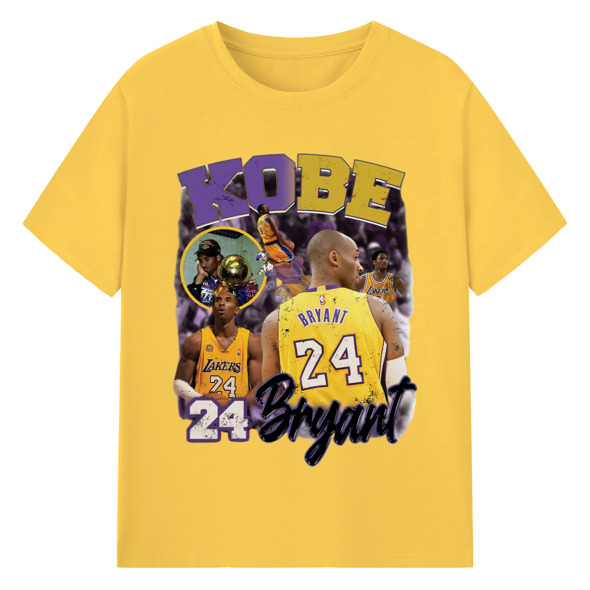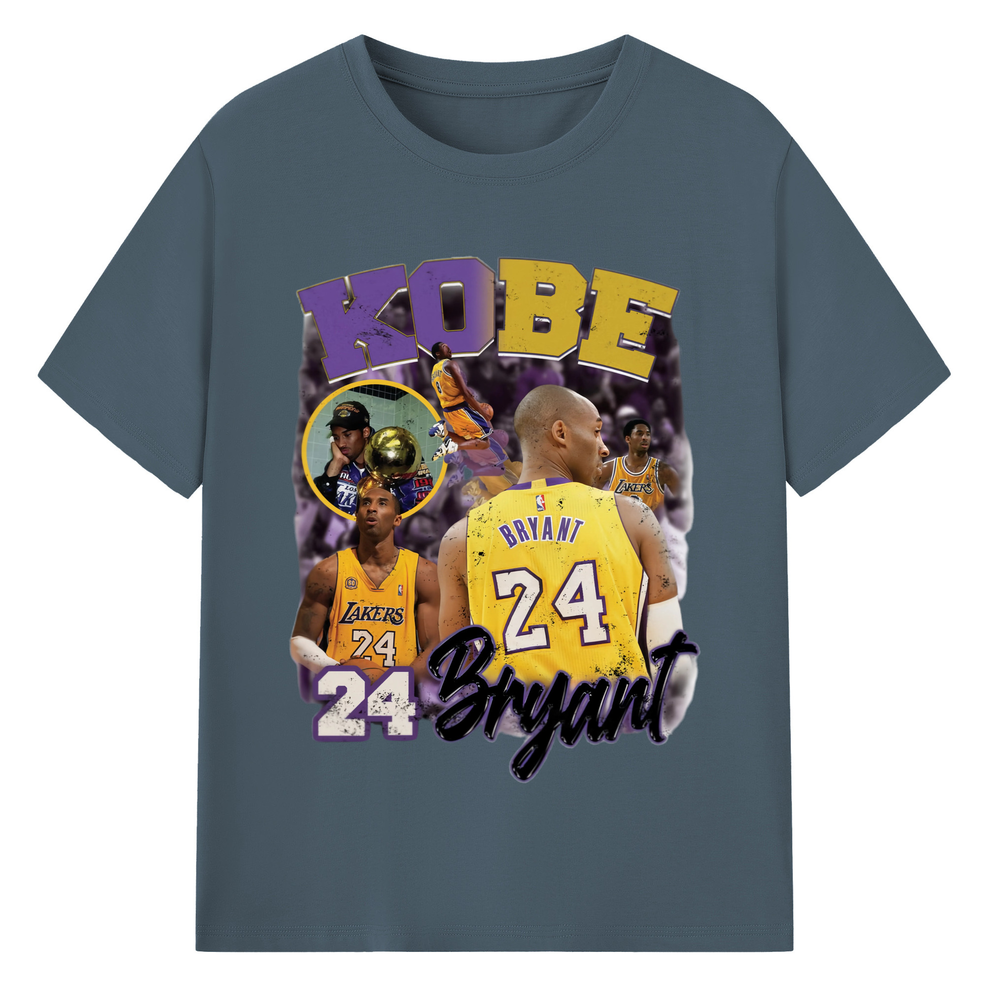 Kobe Bryant #24 collage T‑Shirt - 180g Cotton T-Shirt With Front Heat Transfer Print – Soft, Lightweight, Fitted Design – Comfortable Casual Wear For Sports & Everyday Use