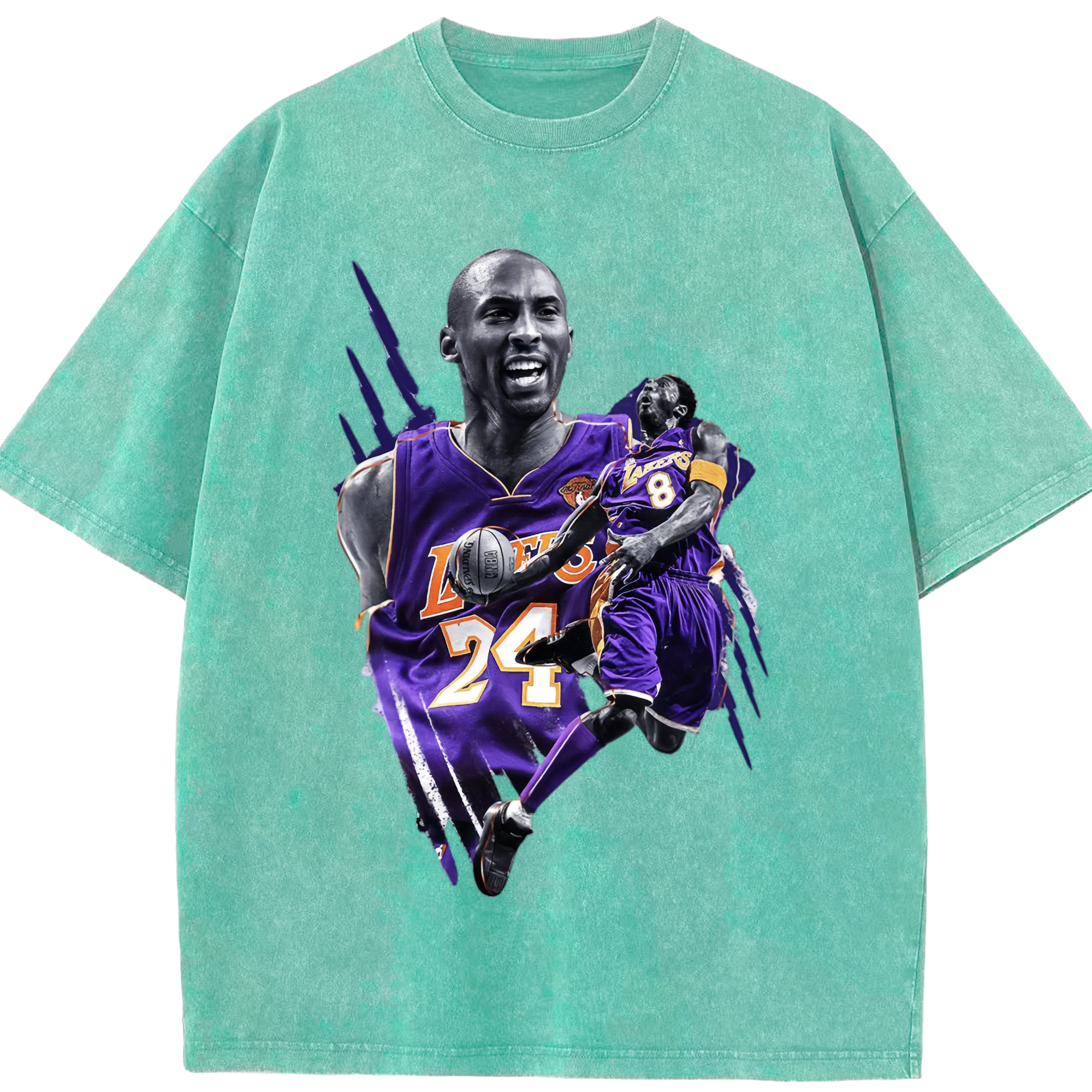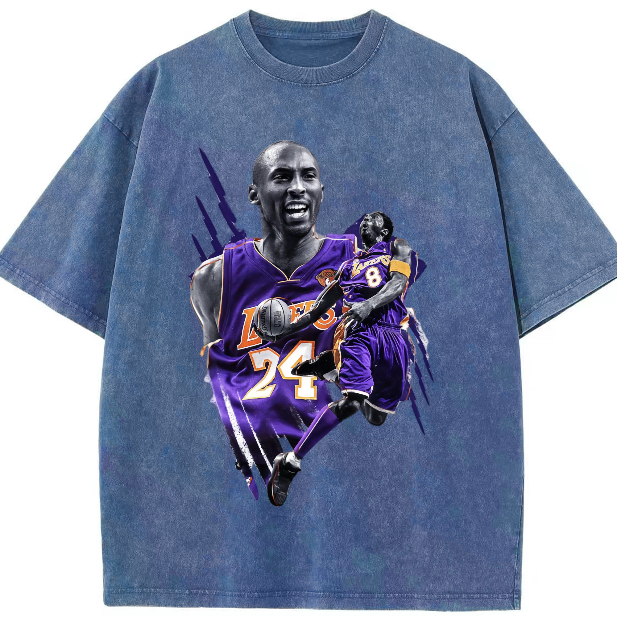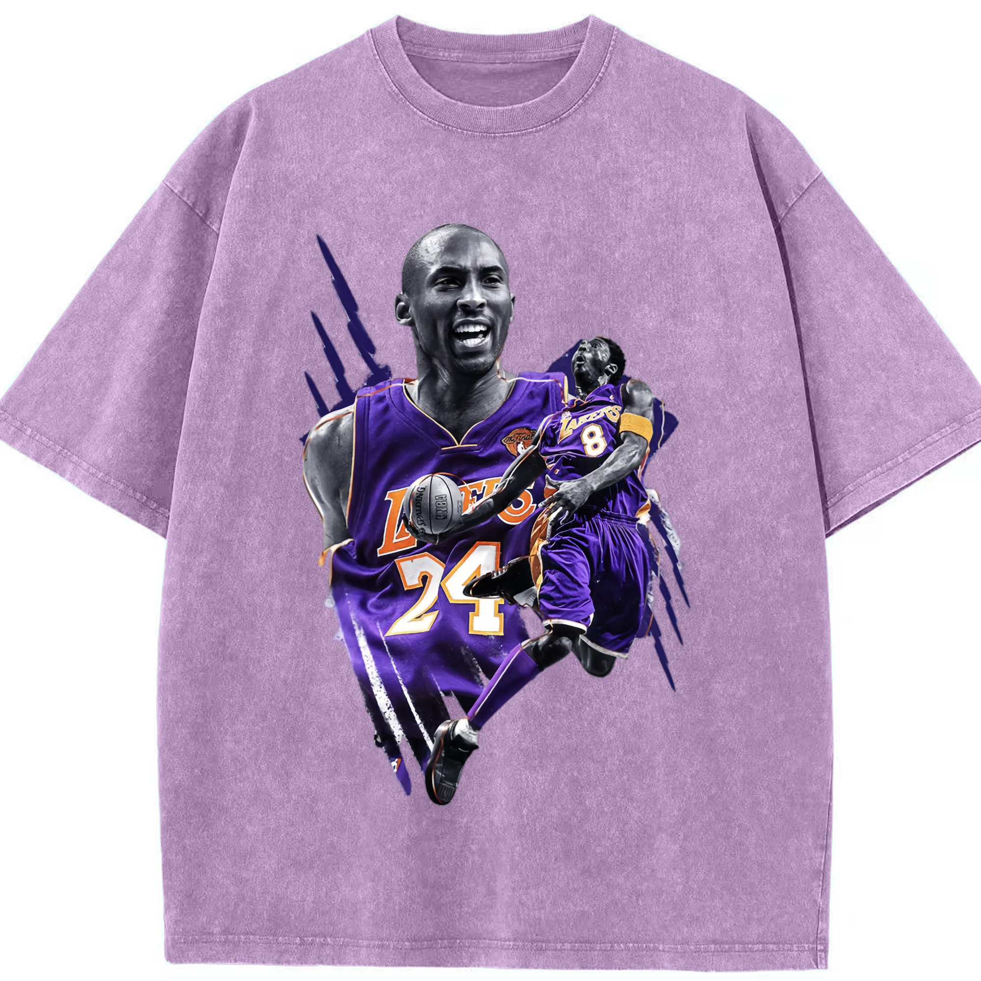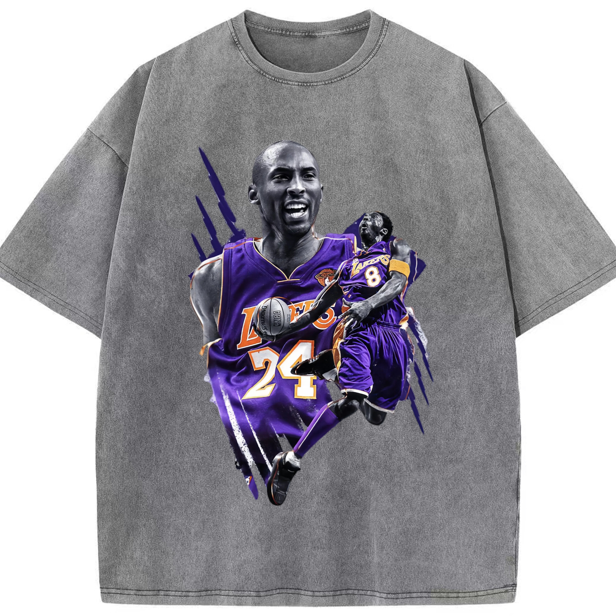 Kobe Bryant #24 Graphic T‑Shirt - Washed Vintage Look 230g Cotton Oversized T-Shirt With Front Heat Transfer Print – Soft, Lightweight, Stylish Fit – Comfortable Casual Wear For Sports & Everyday Use