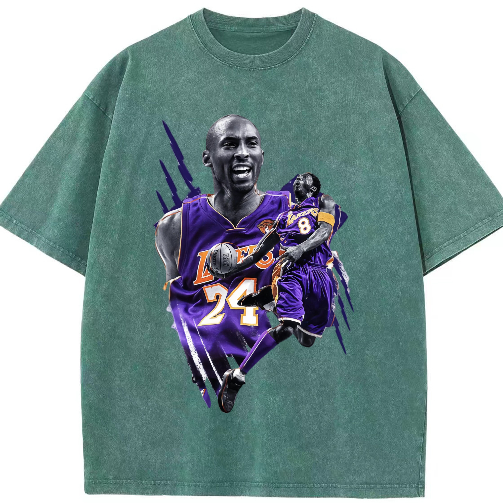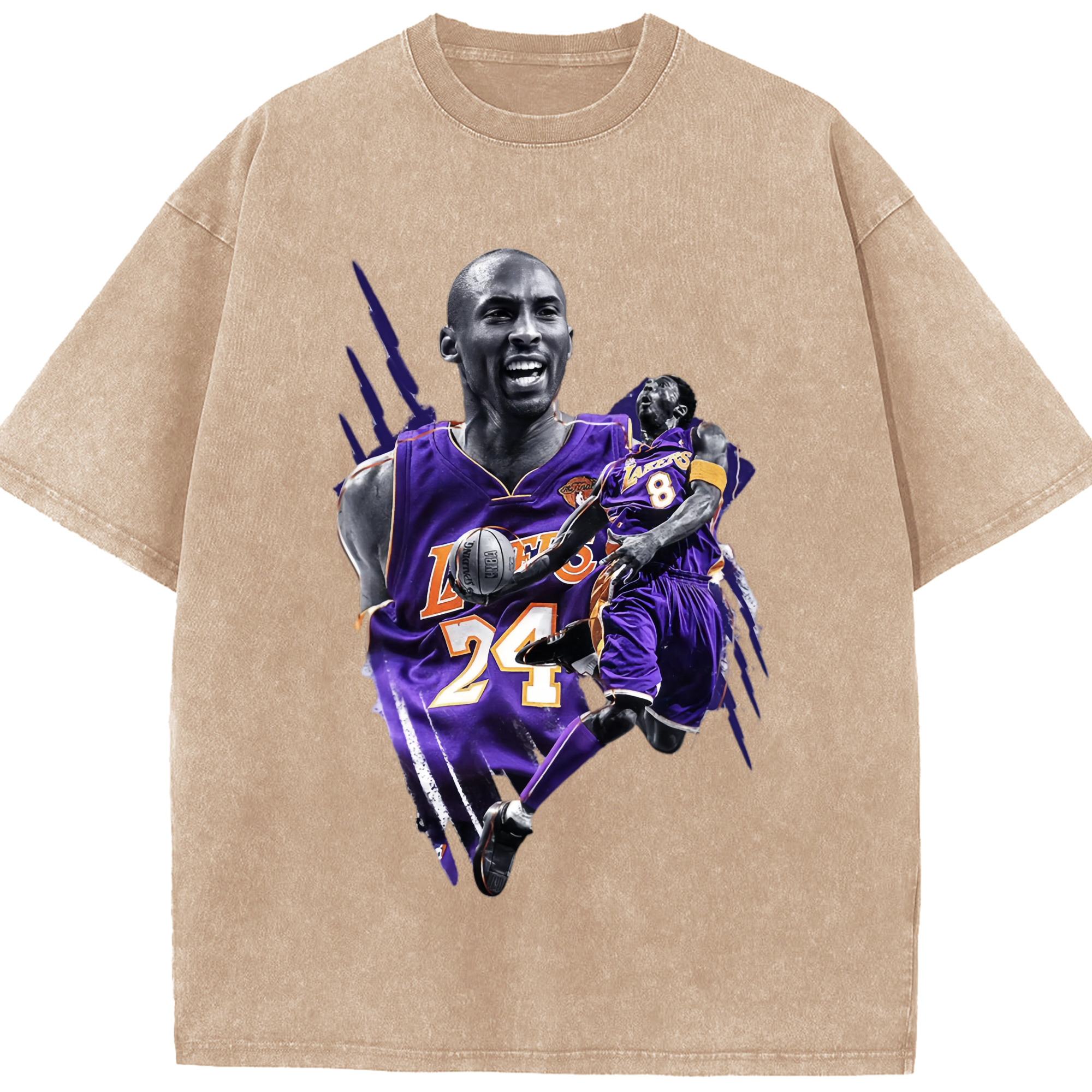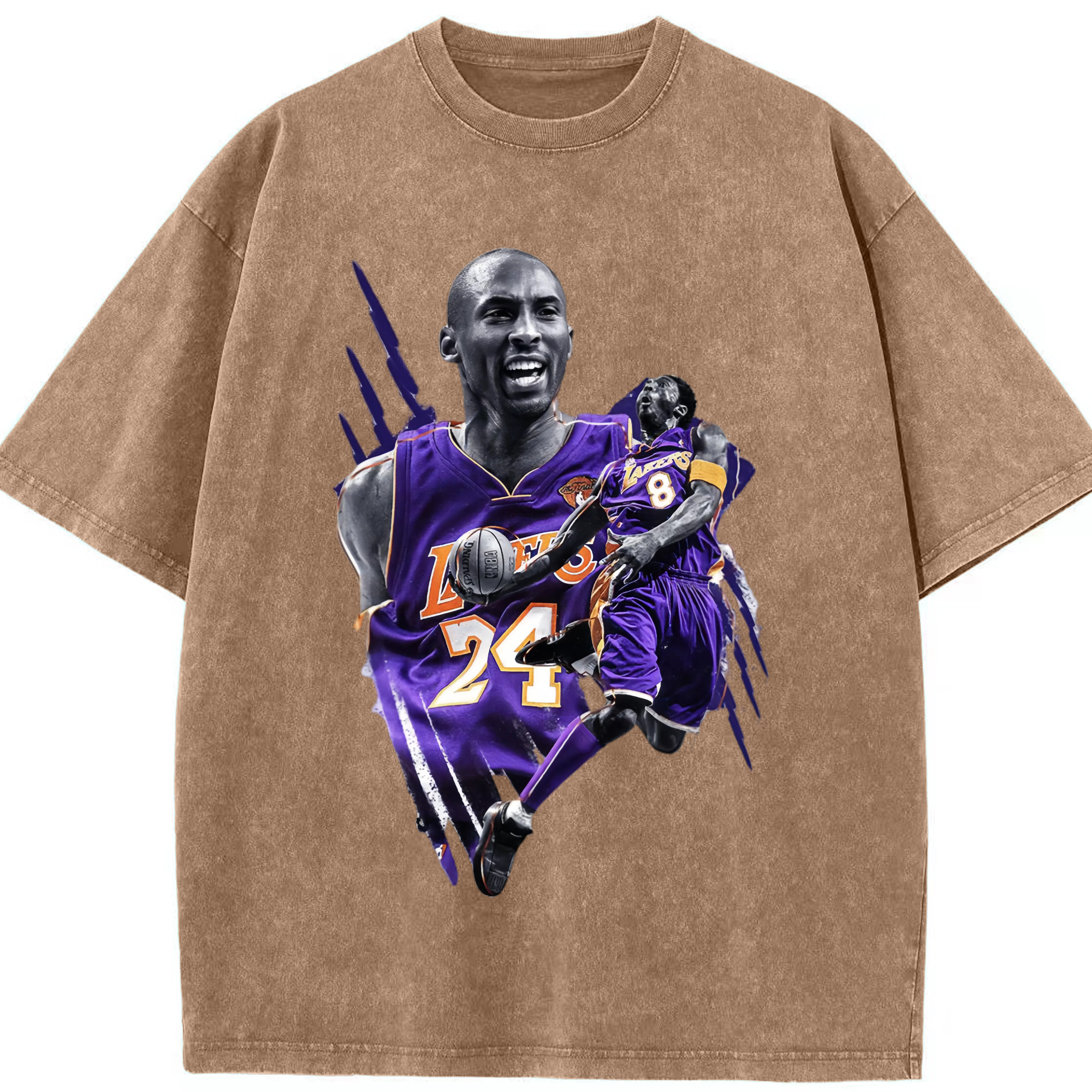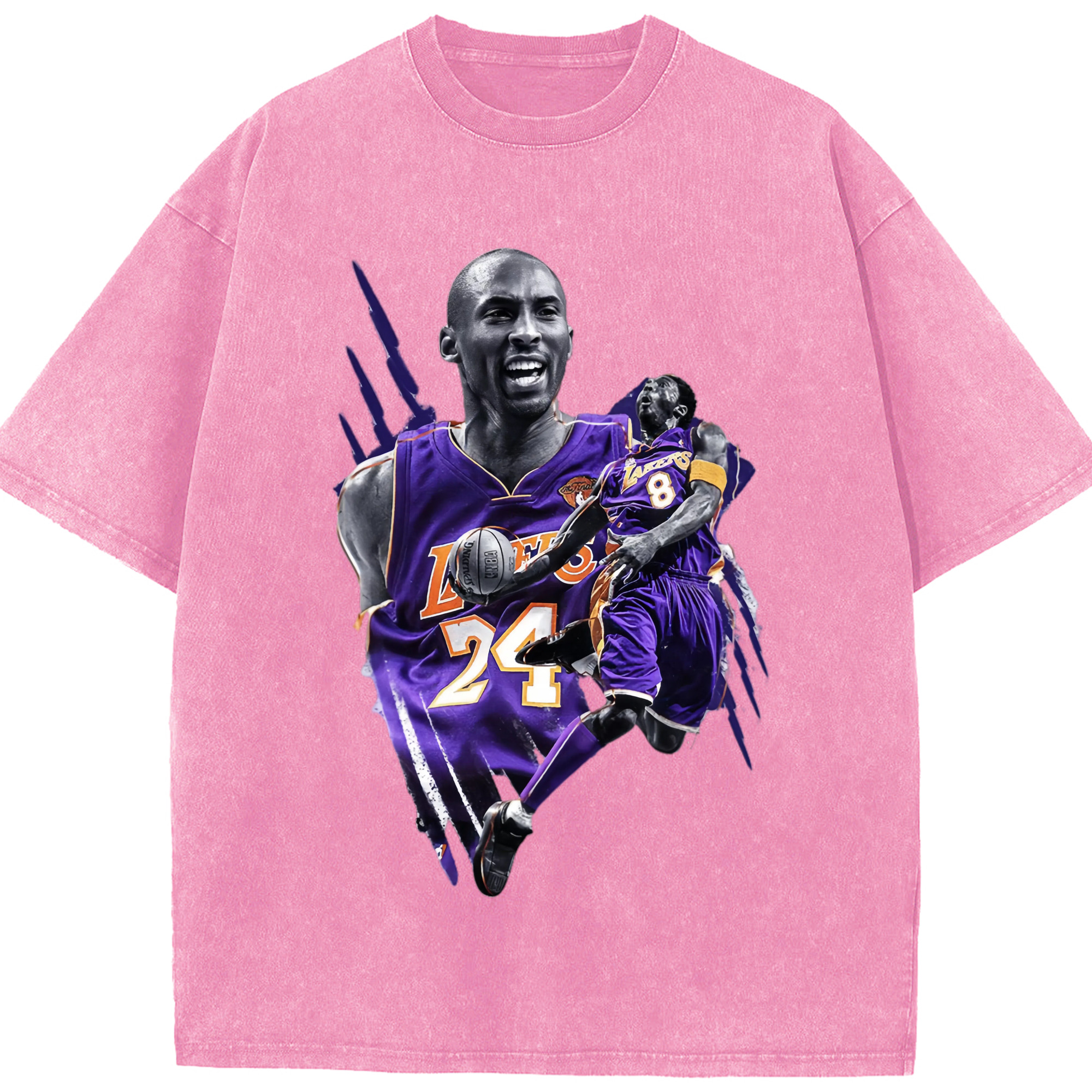 Kobe Bryant #24 Graphic T‑Shirt - Washed Vintage Look 230g Cotton Oversized T-Shirt With Front Heat Transfer Print – Soft, Lightweight, Stylish Fit – Comfortable Casual Wear For Sports & Everyday Use