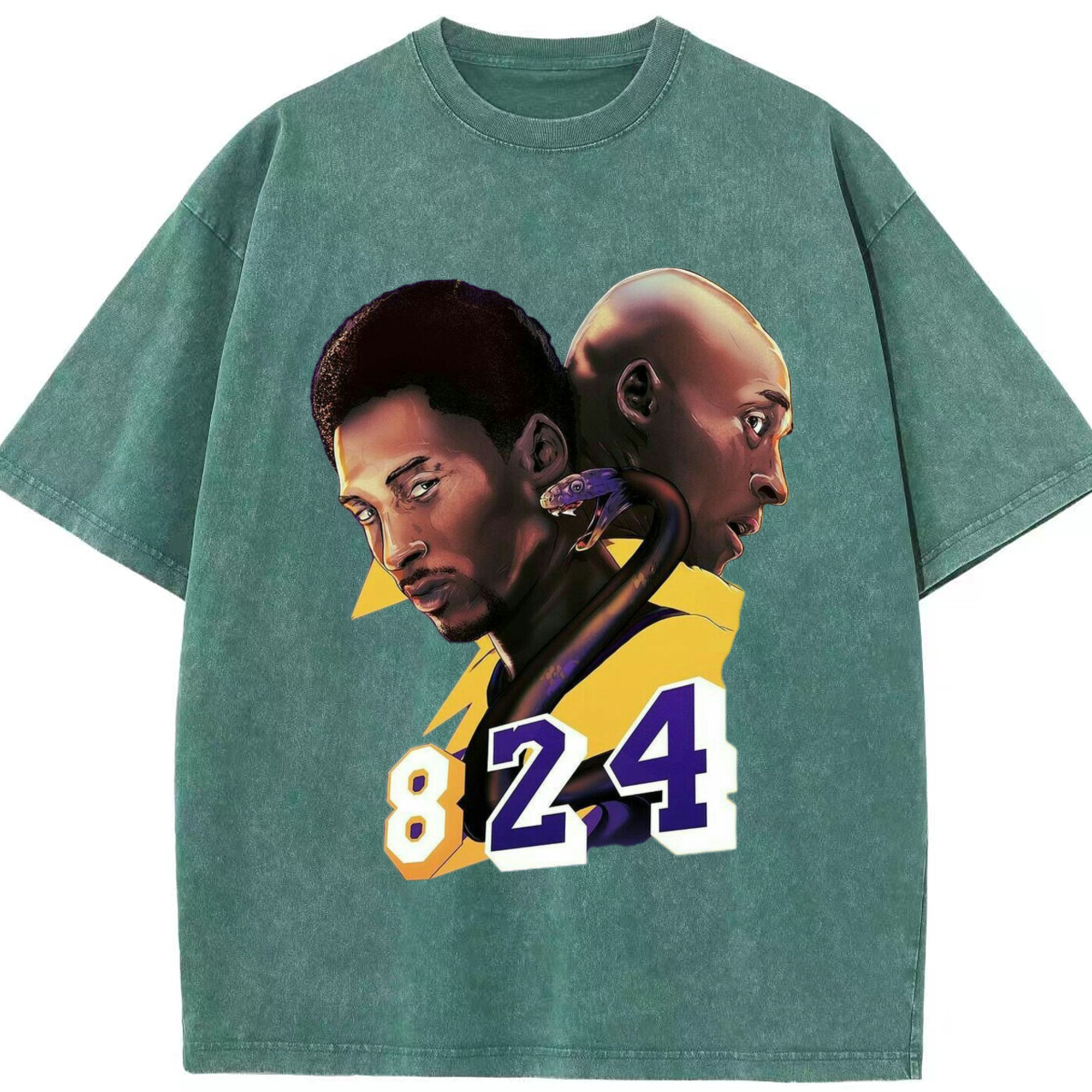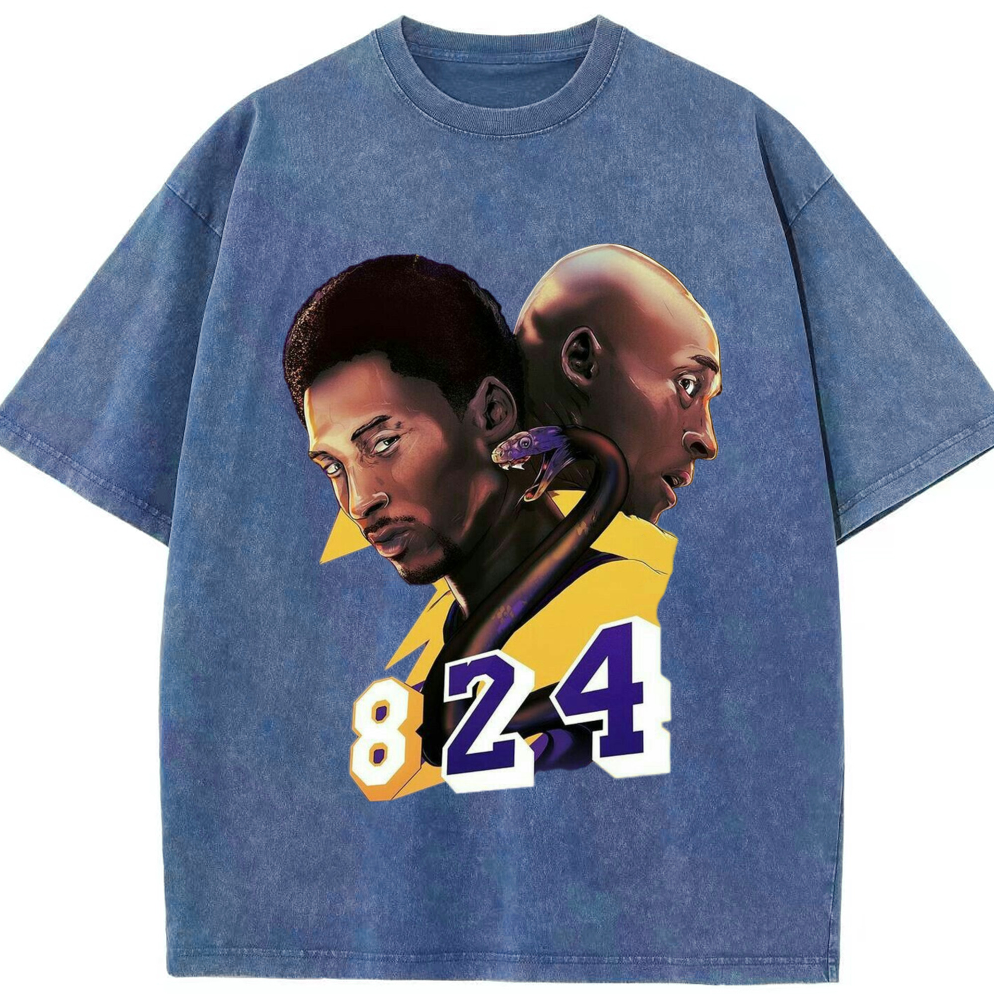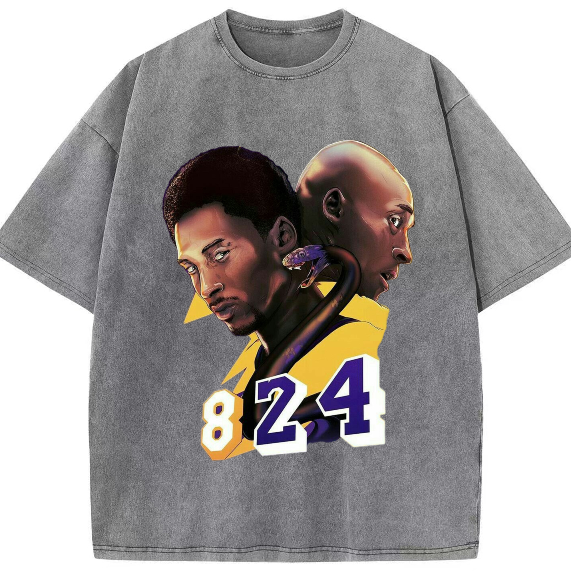 Kobe bryant #8 #24 cartoon T‑Shirt - Washed Vintage Look 230g Cotton Oversized T-Shirt With Front Heat Transfer Print – Soft, Lightweight, Stylish Fit – Comfortable Casual Wear For Sports & Everyday Use