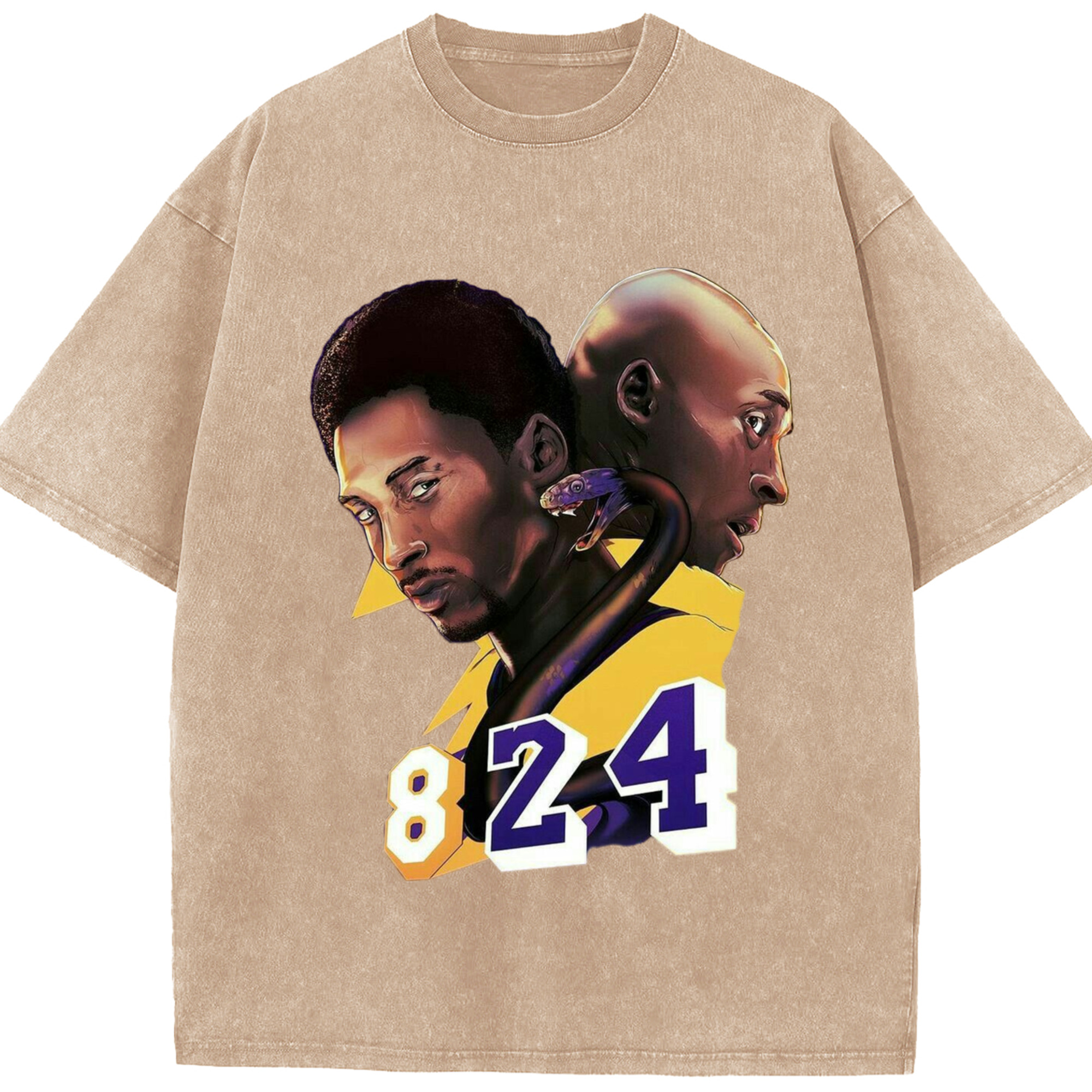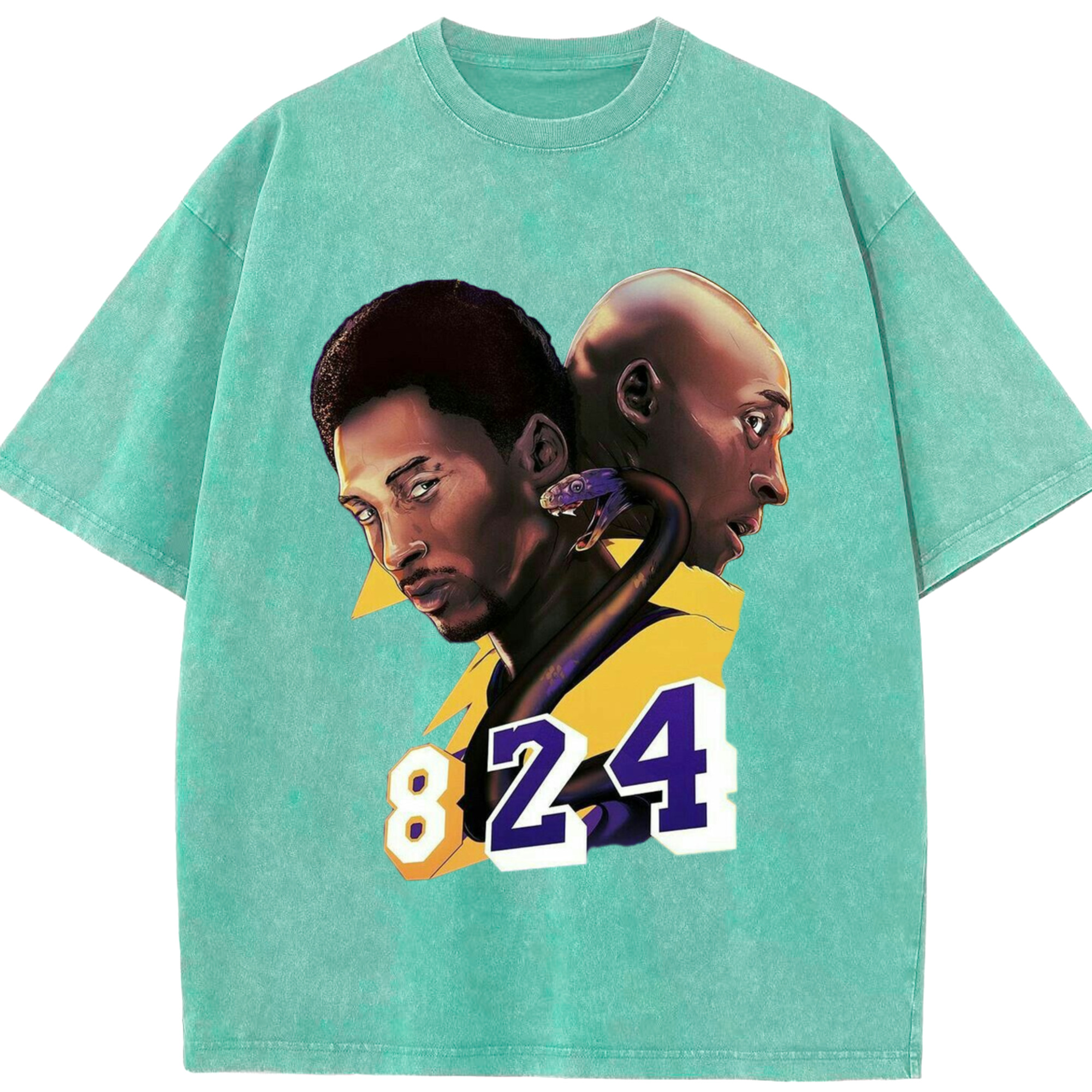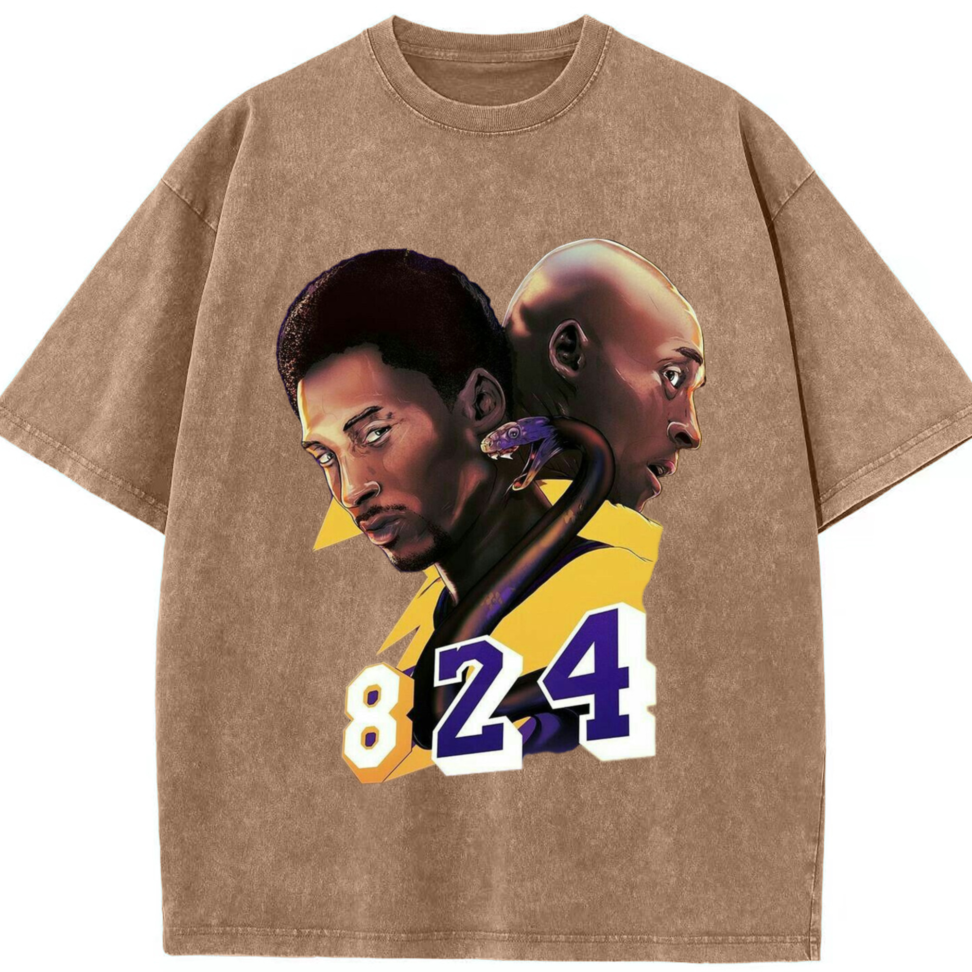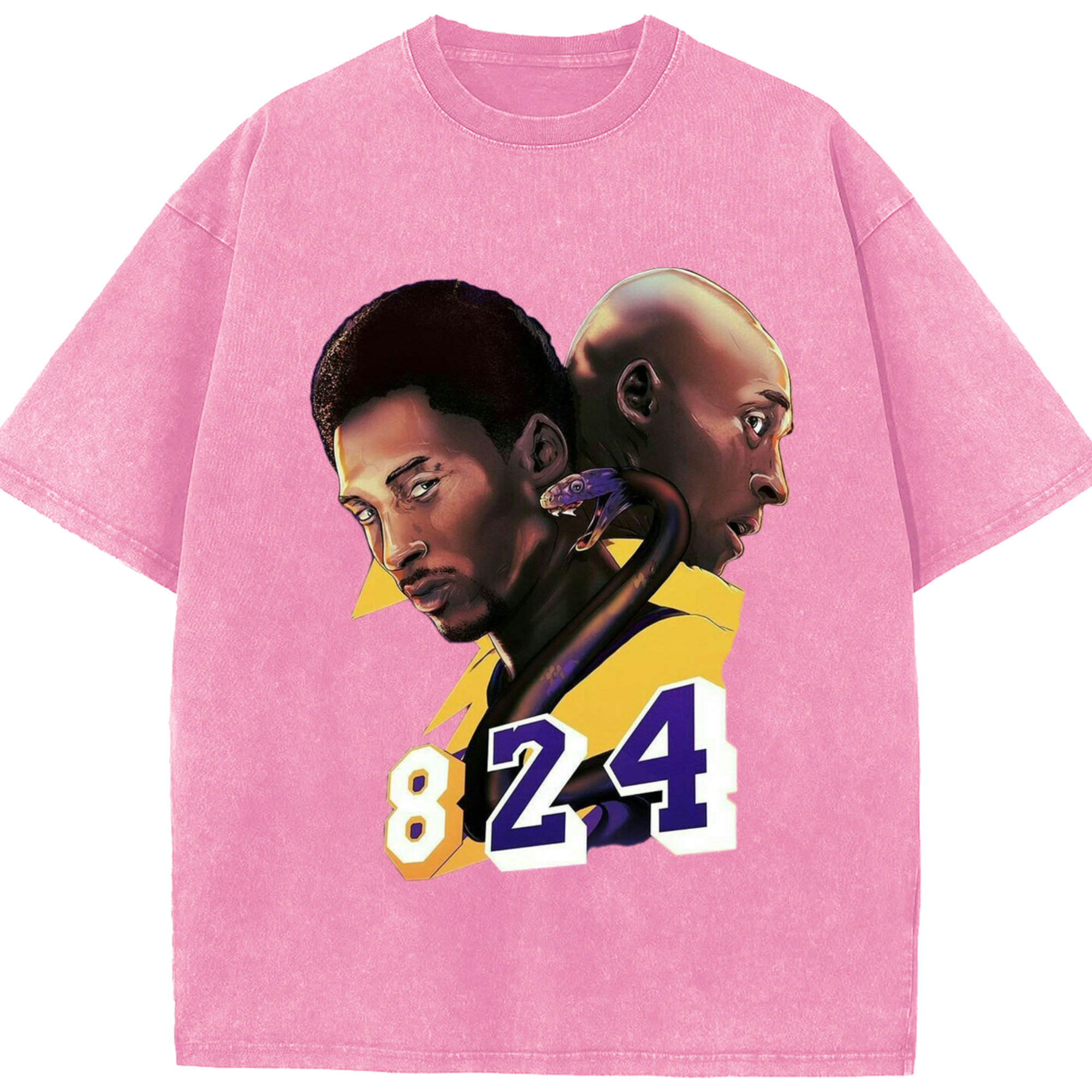 Kobe bryant #8 #24 cartoon T‑Shirt - Washed Vintage Look 230g Cotton Oversized T-Shirt With Front Heat Transfer Print – Soft, Lightweight, Stylish Fit – Comfortable Casual Wear For Sports & Everyday Use