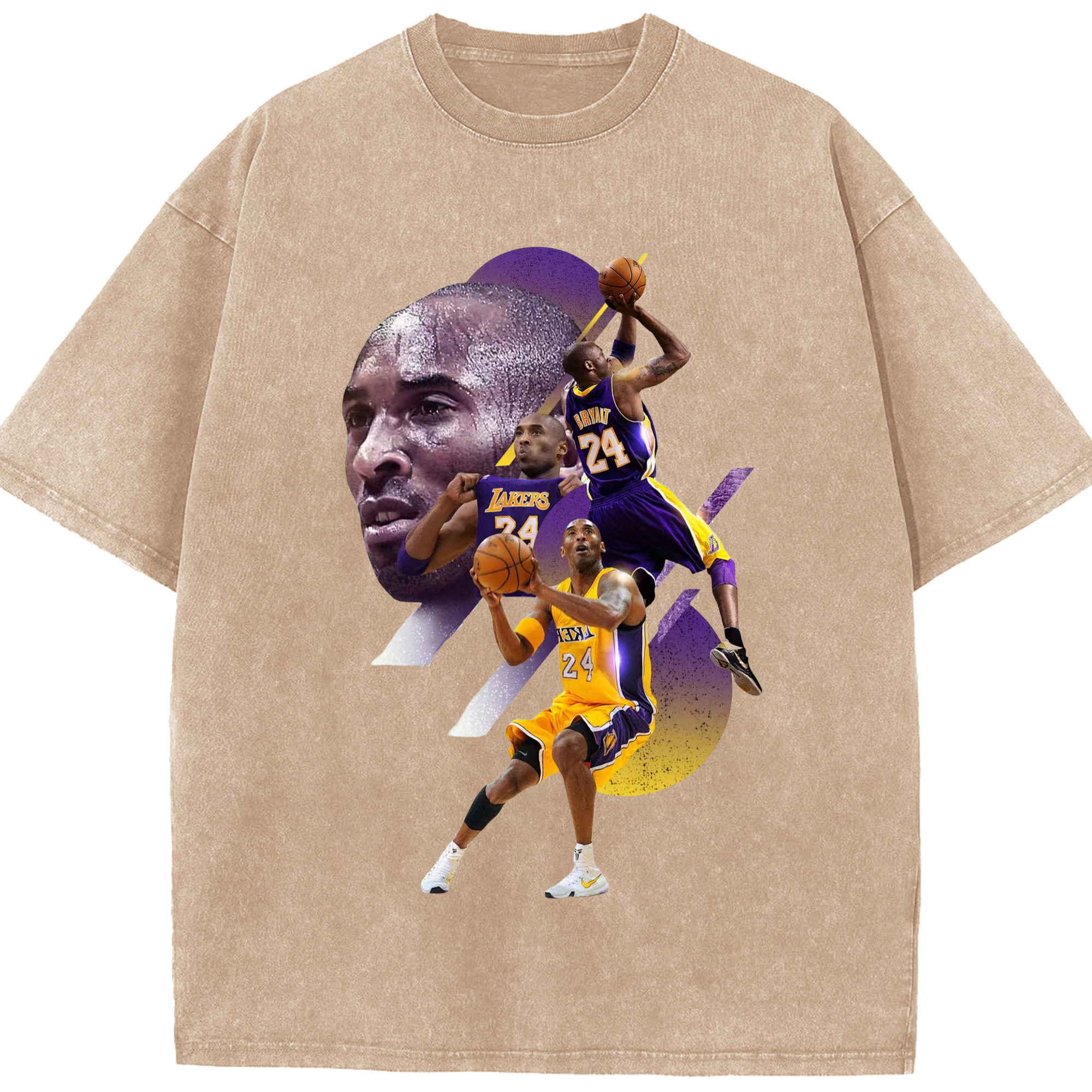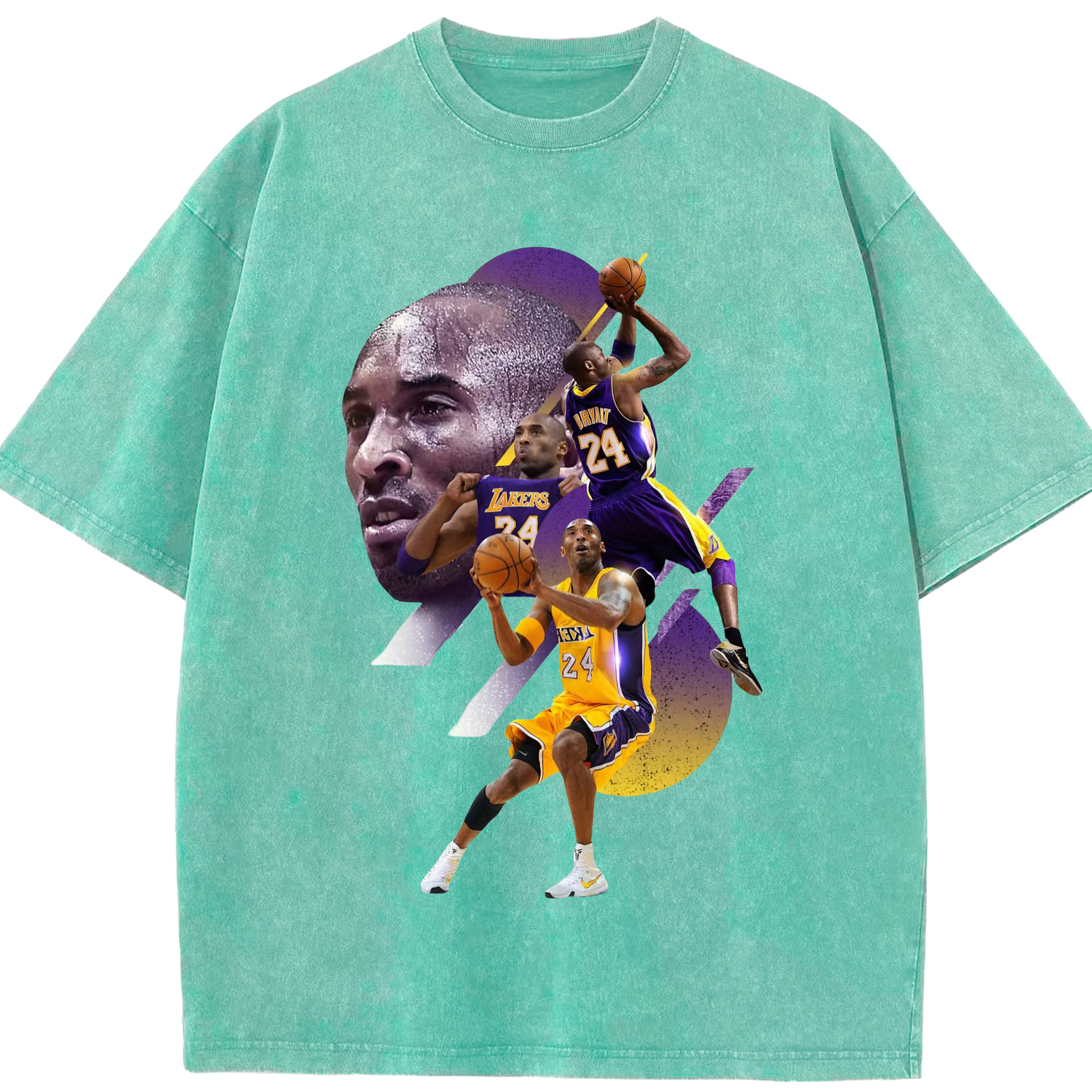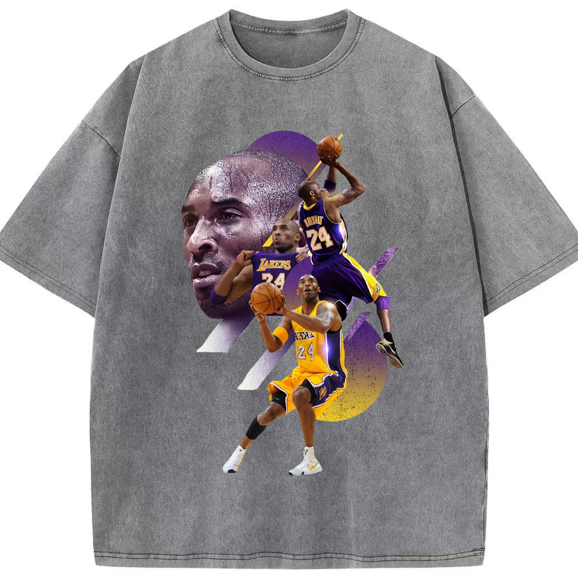 Kobe Bryant Graphic T‑Shirt - Washed Vintage Look 230g Cotton Oversized T-Shirt With Front Heat Transfer Print – Soft, Lightweight, Stylish Fit – Comfortable Casual Wear For Sports & Everyday Use