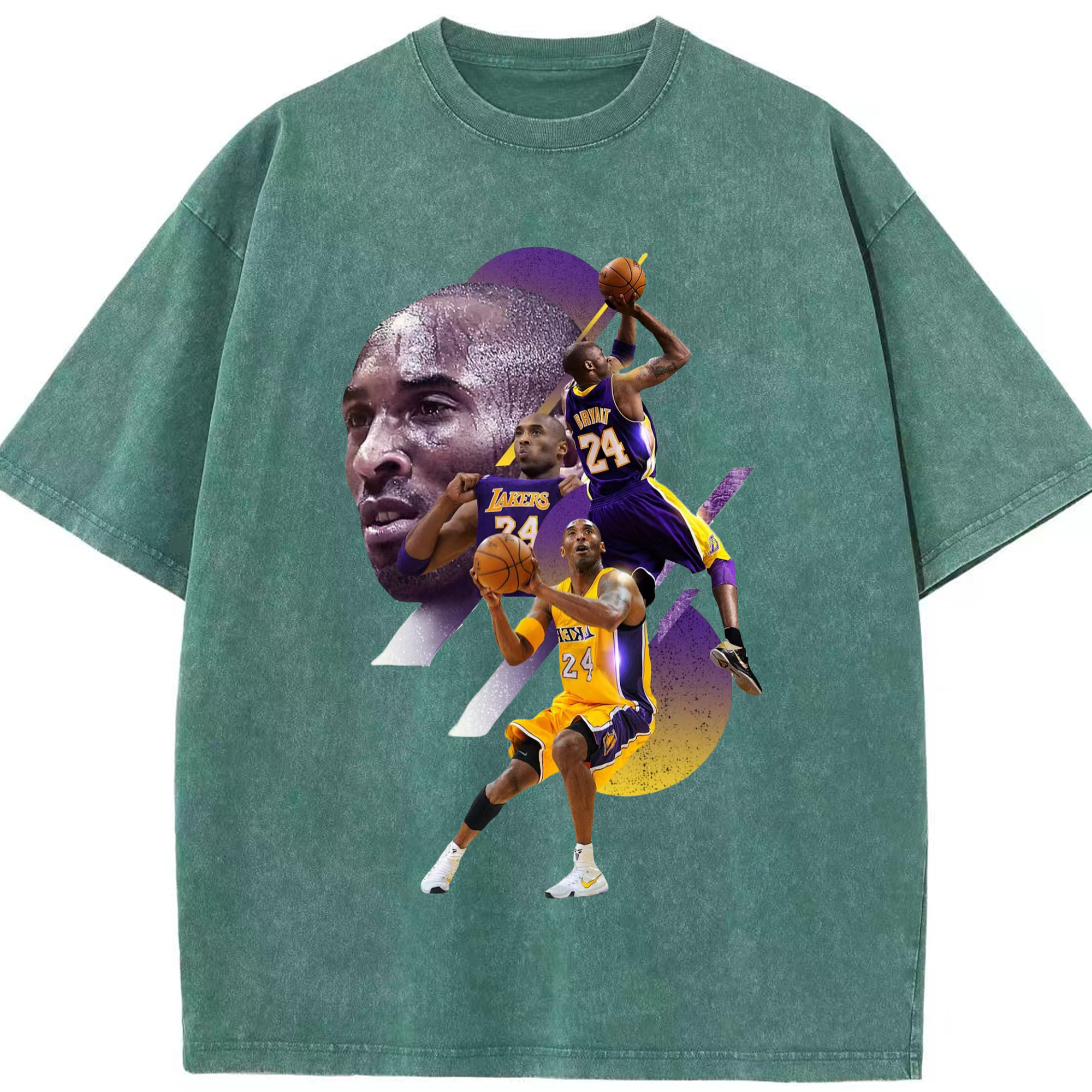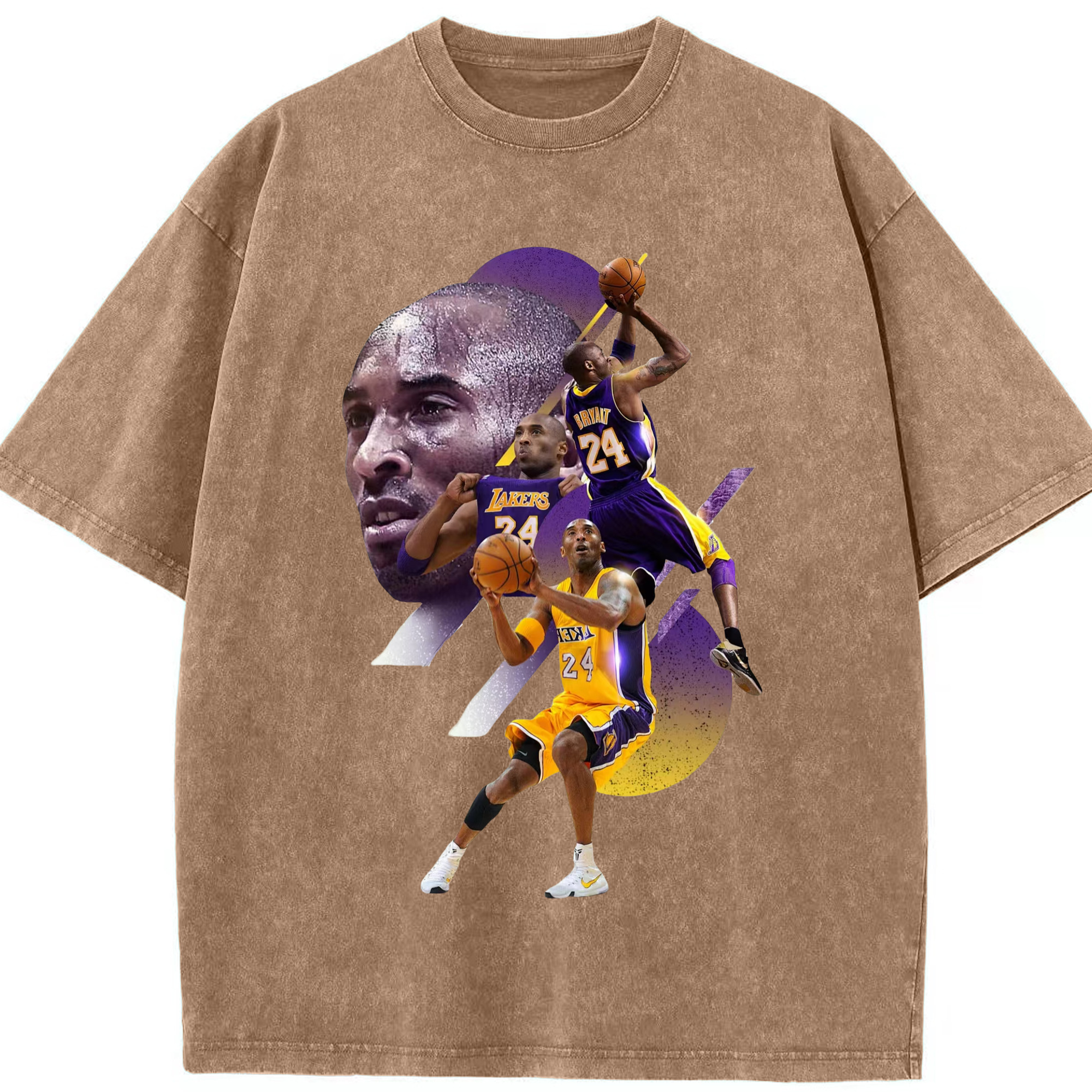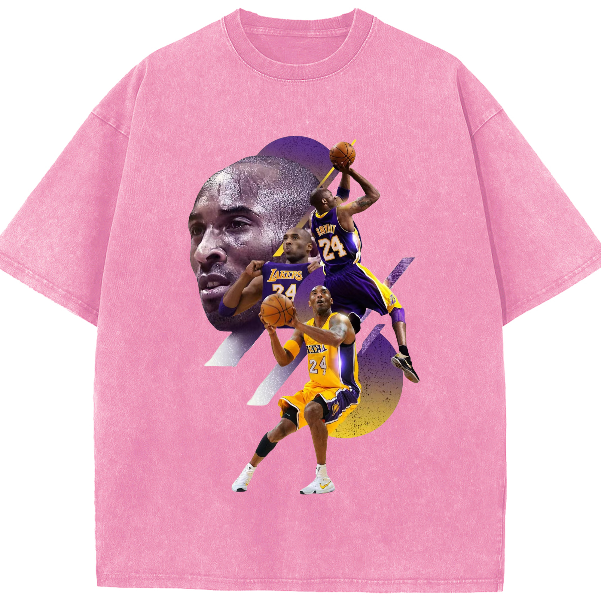 Kobe Bryant Graphic T‑Shirt - Washed Vintage Look 230g Cotton Oversized T-Shirt With Front Heat Transfer Print – Soft, Lightweight, Stylish Fit – Comfortable Casual Wear For Sports & Everyday Use