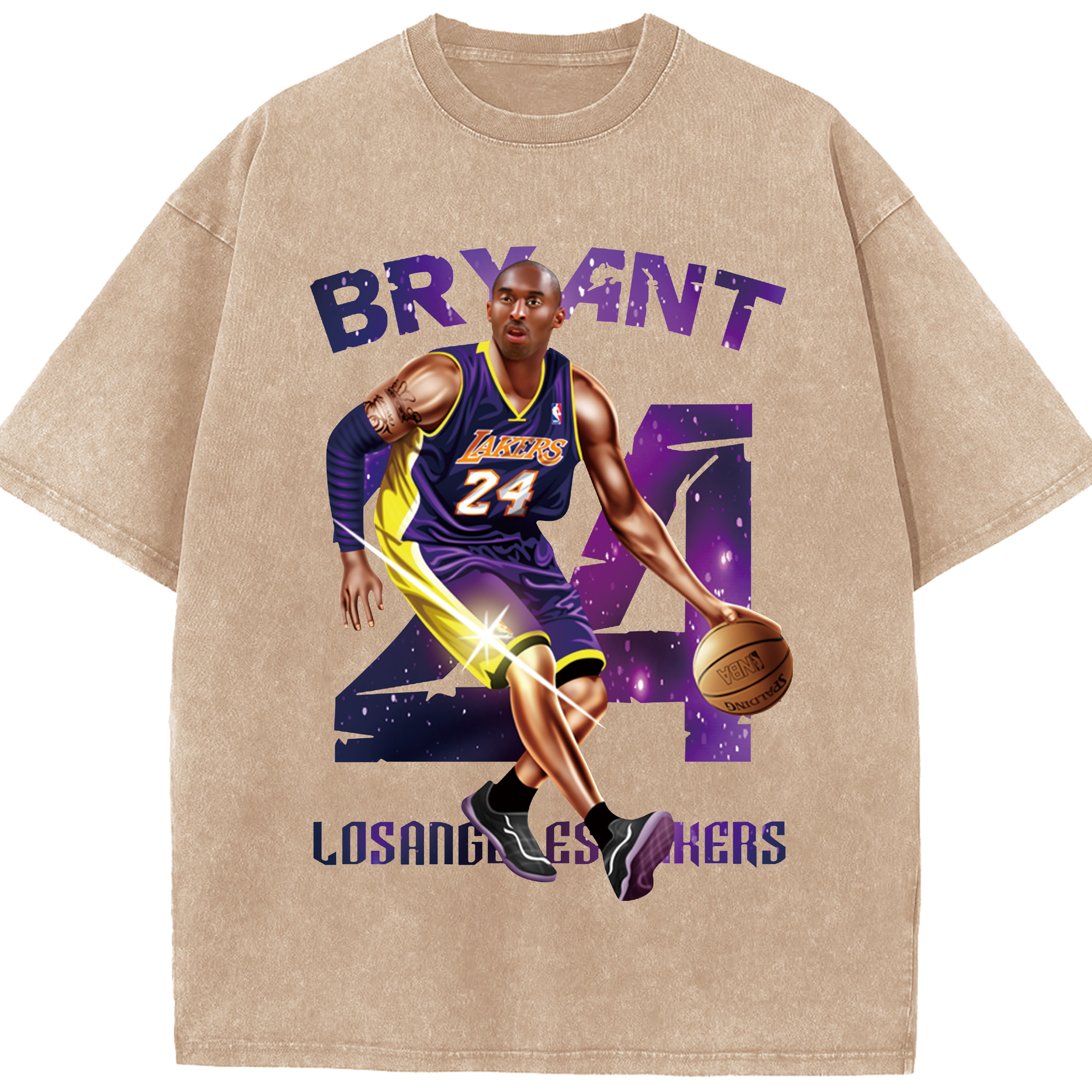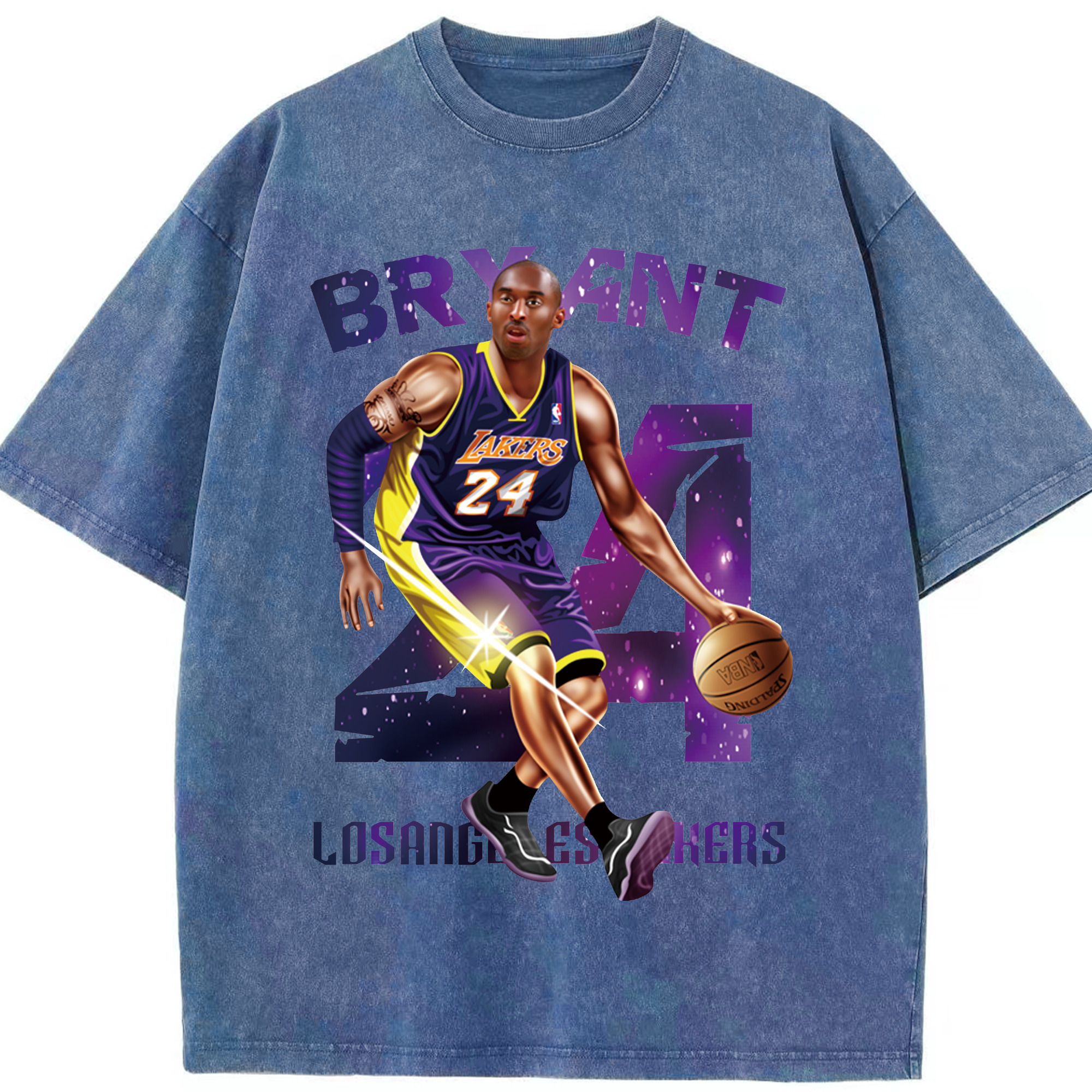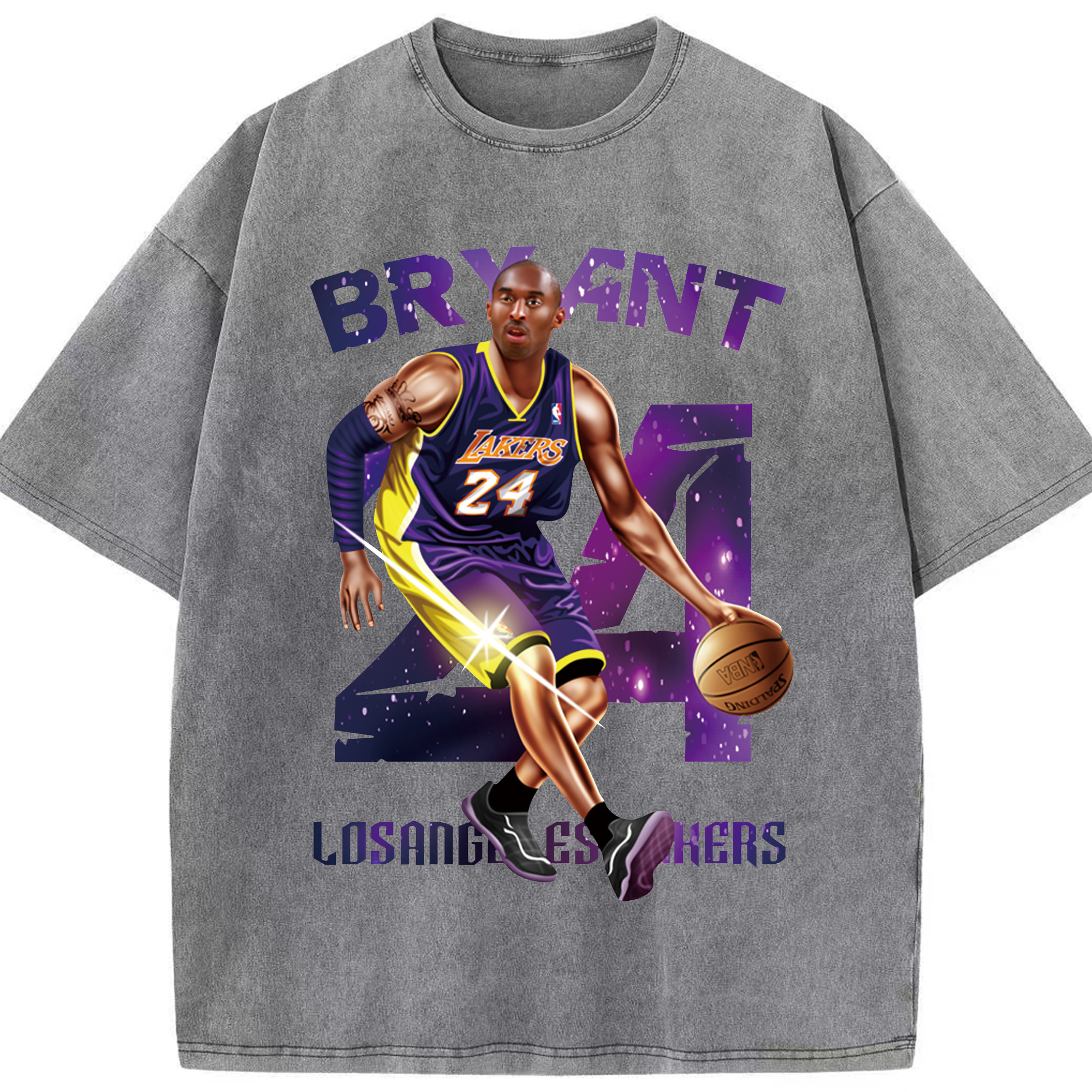 Kobe Bryant Lakers #24 T‑Shirt - Washed Vintage Look 230g Cotton Oversized T-Shirt With Front Heat Transfer Print – Soft, Lightweight, Stylish Fit – Comfortable Casual Wear For Sports & Everyday Use