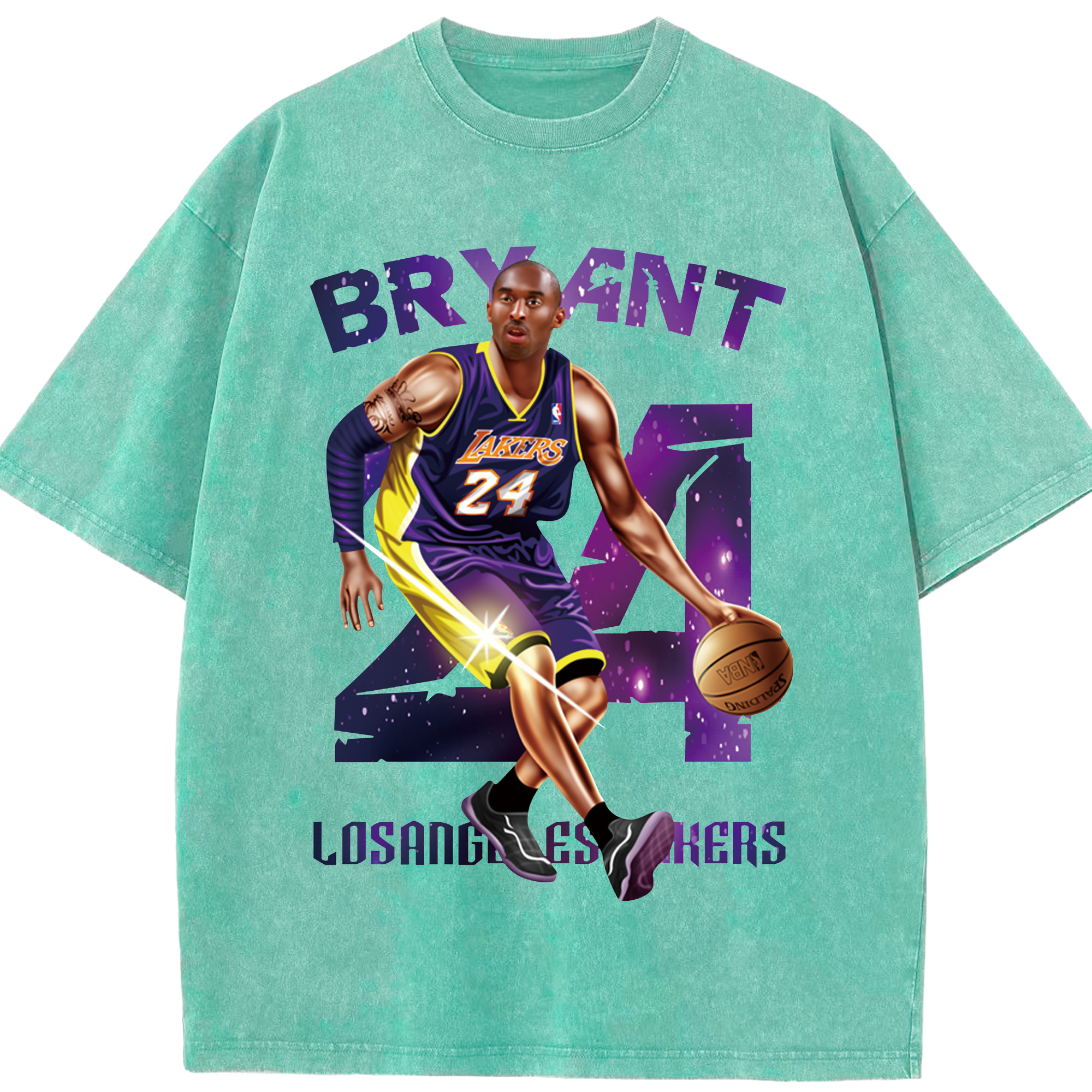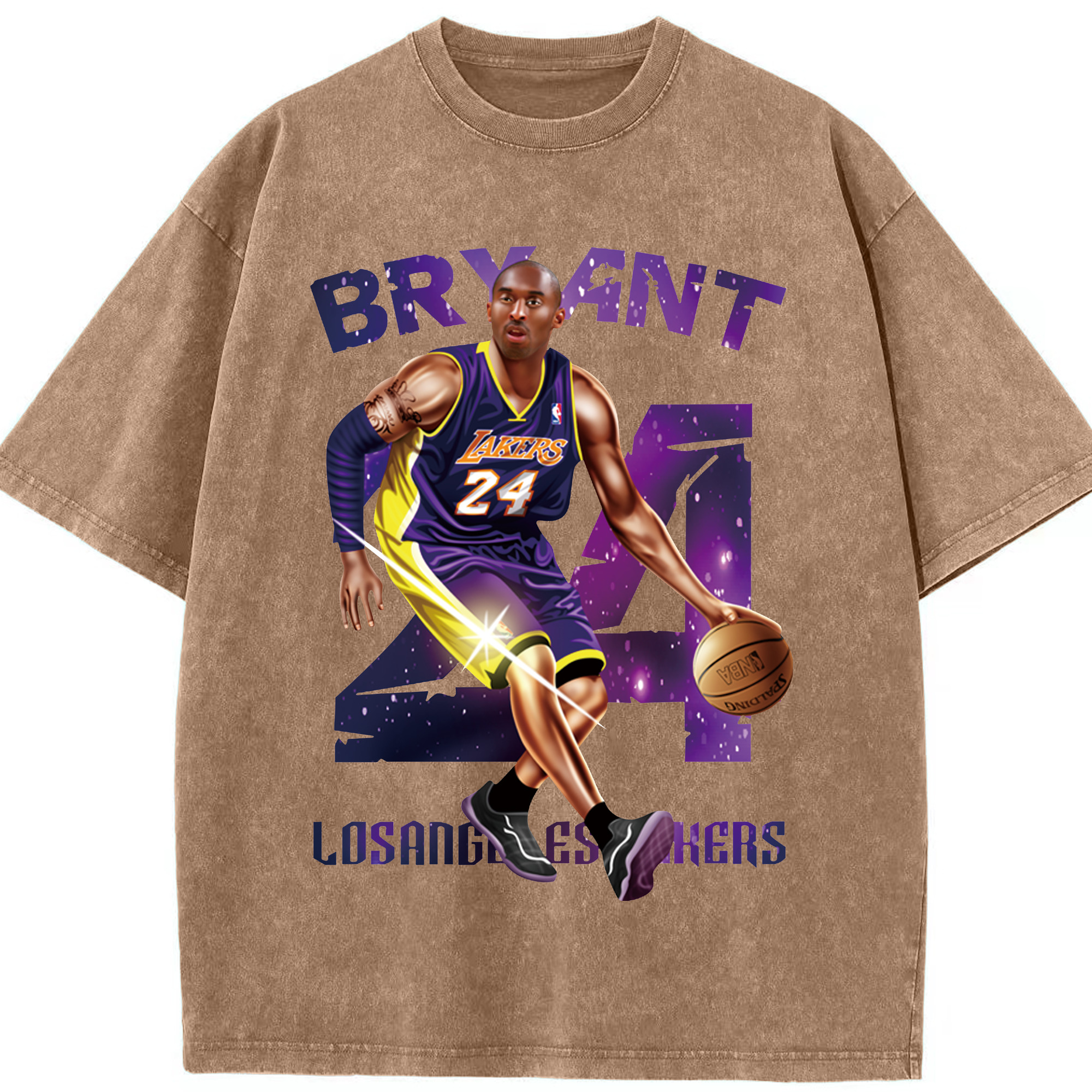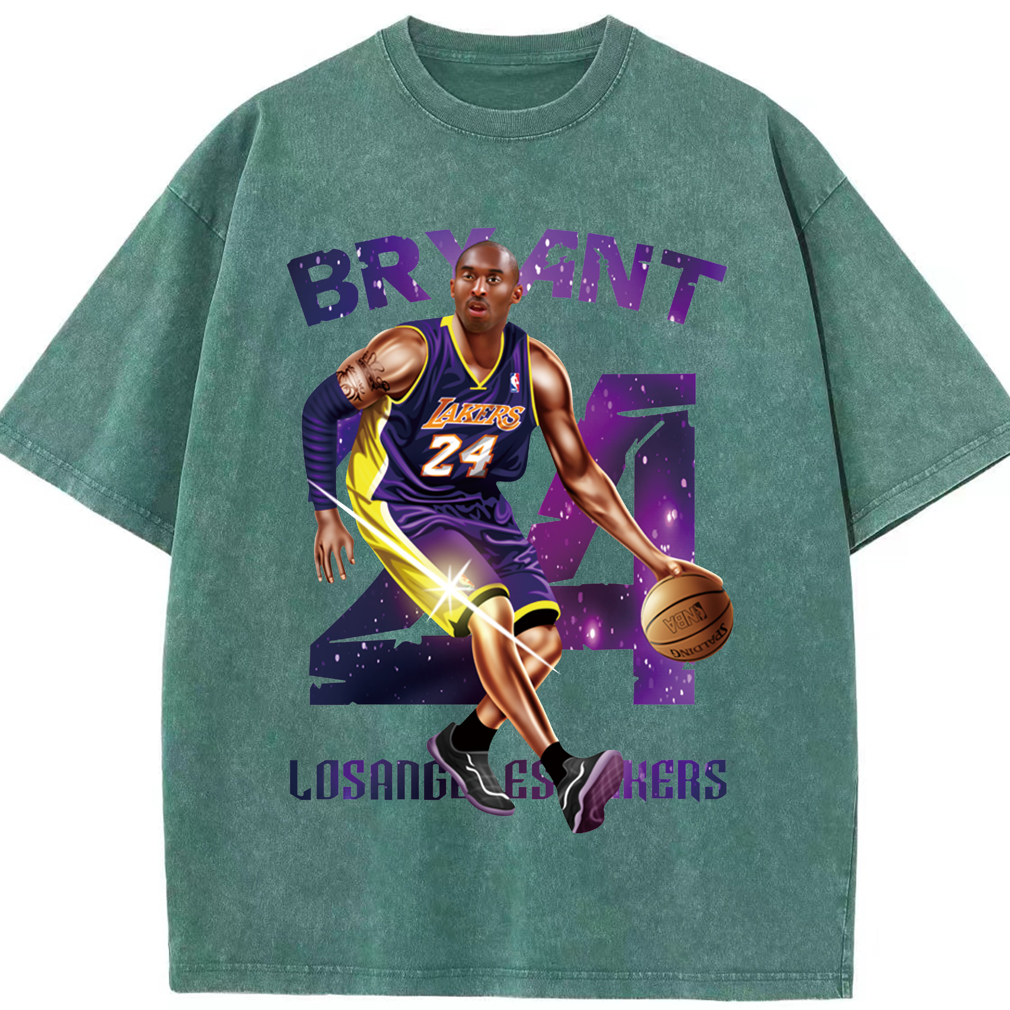 Kobe Bryant Lakers #24 T‑Shirt - Washed Vintage Look 230g Cotton Oversized T-Shirt With Front Heat Transfer Print – Soft, Lightweight, Stylish Fit – Comfortable Casual Wear For Sports & Everyday Use