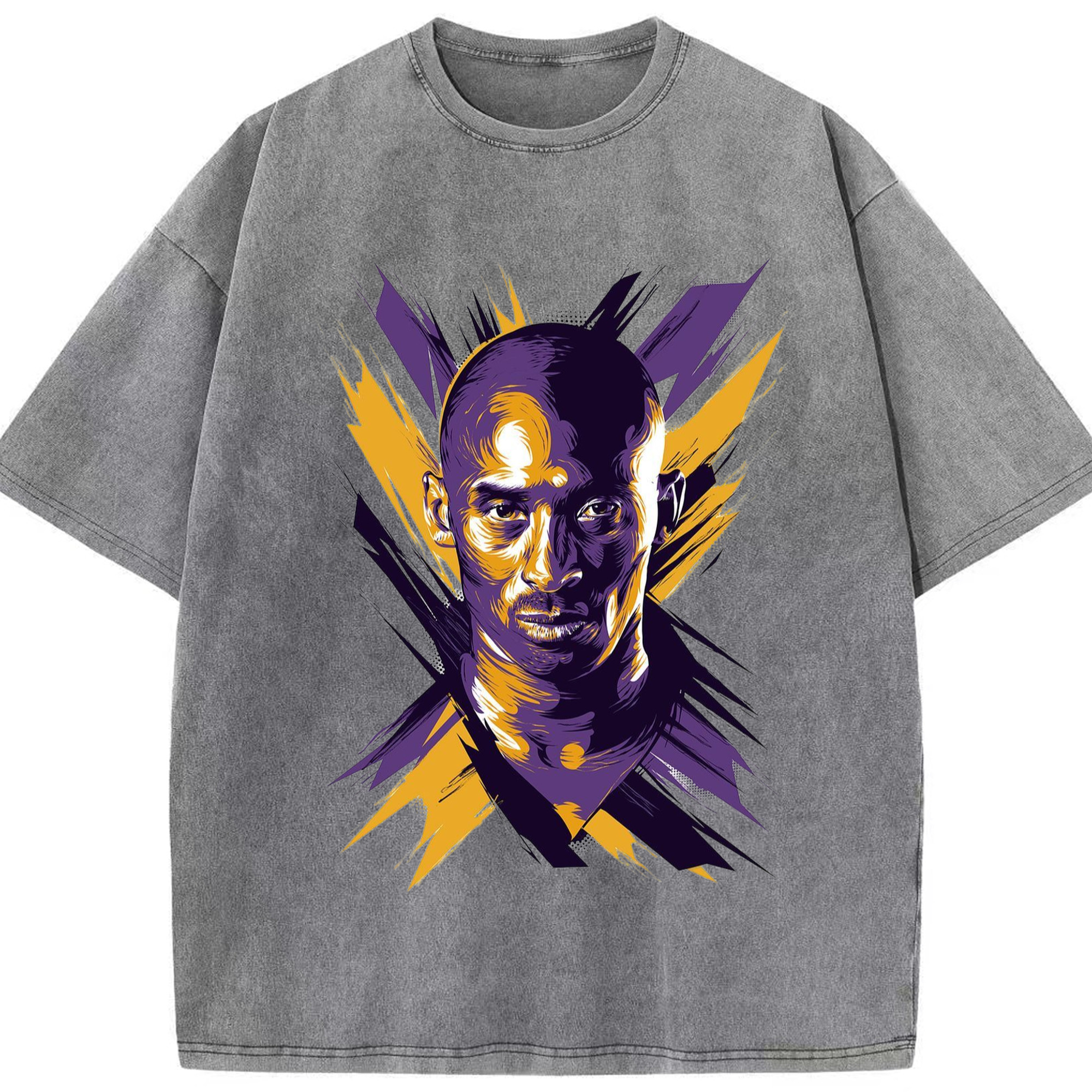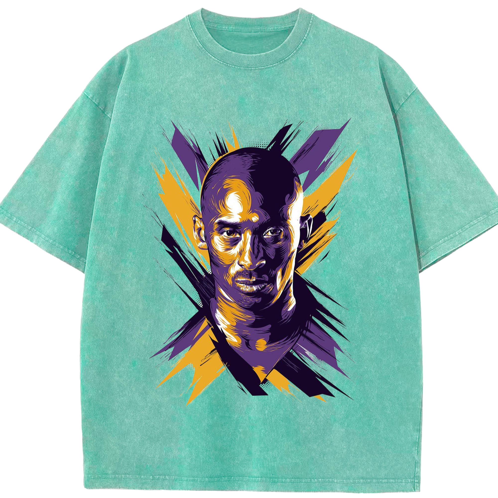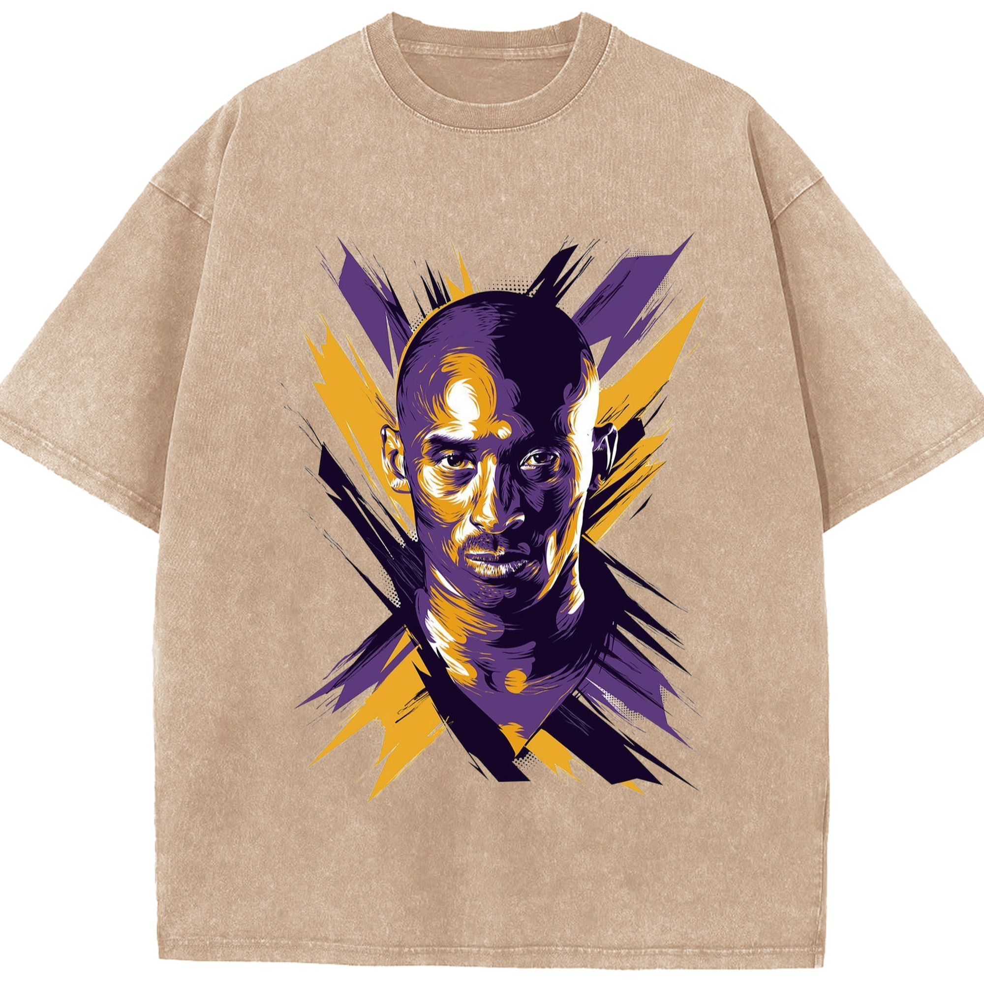 Kobe Painted portrait art tee - Washed Vintage Look 230g Cotton Oversized T-Shirt With Front Heat Transfer Print – Soft, Lightweight, Stylish Fit – Comfortable Casual Wear For Sports & Everyday Use