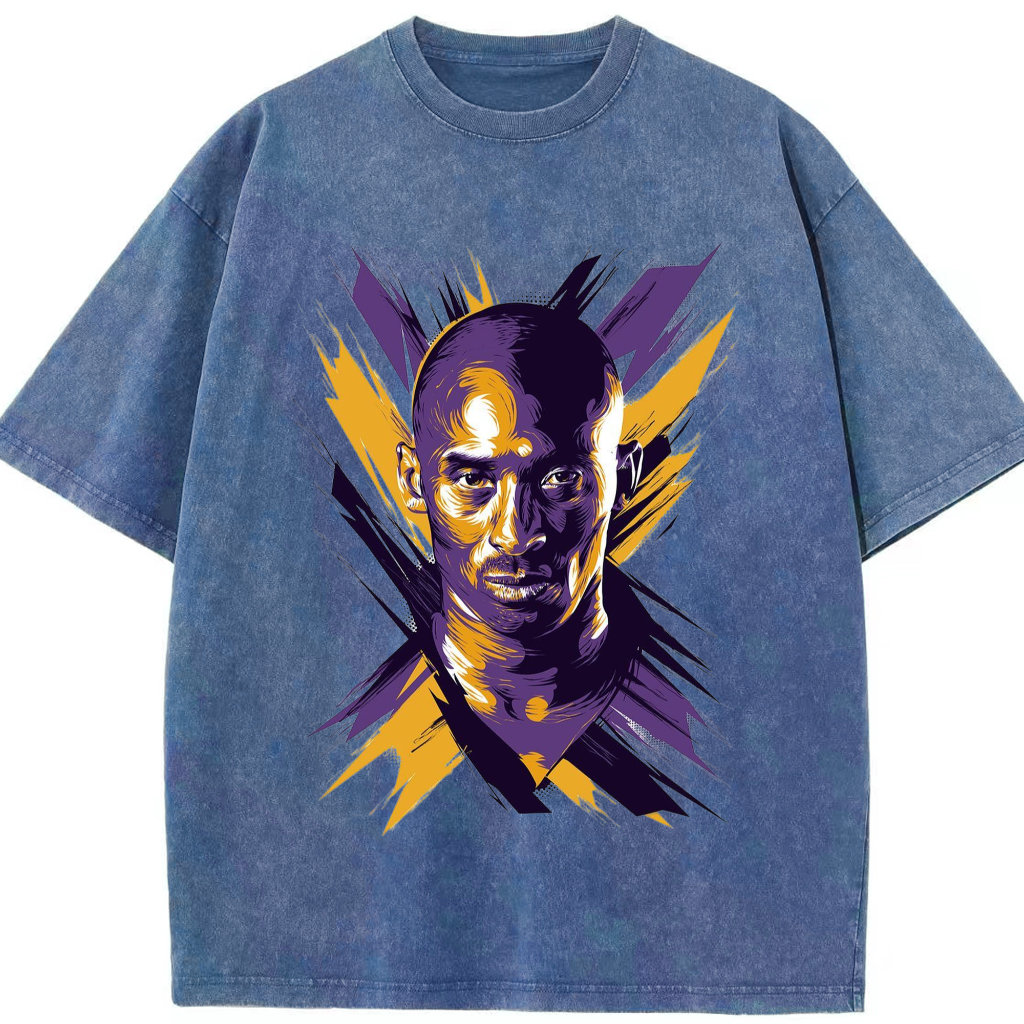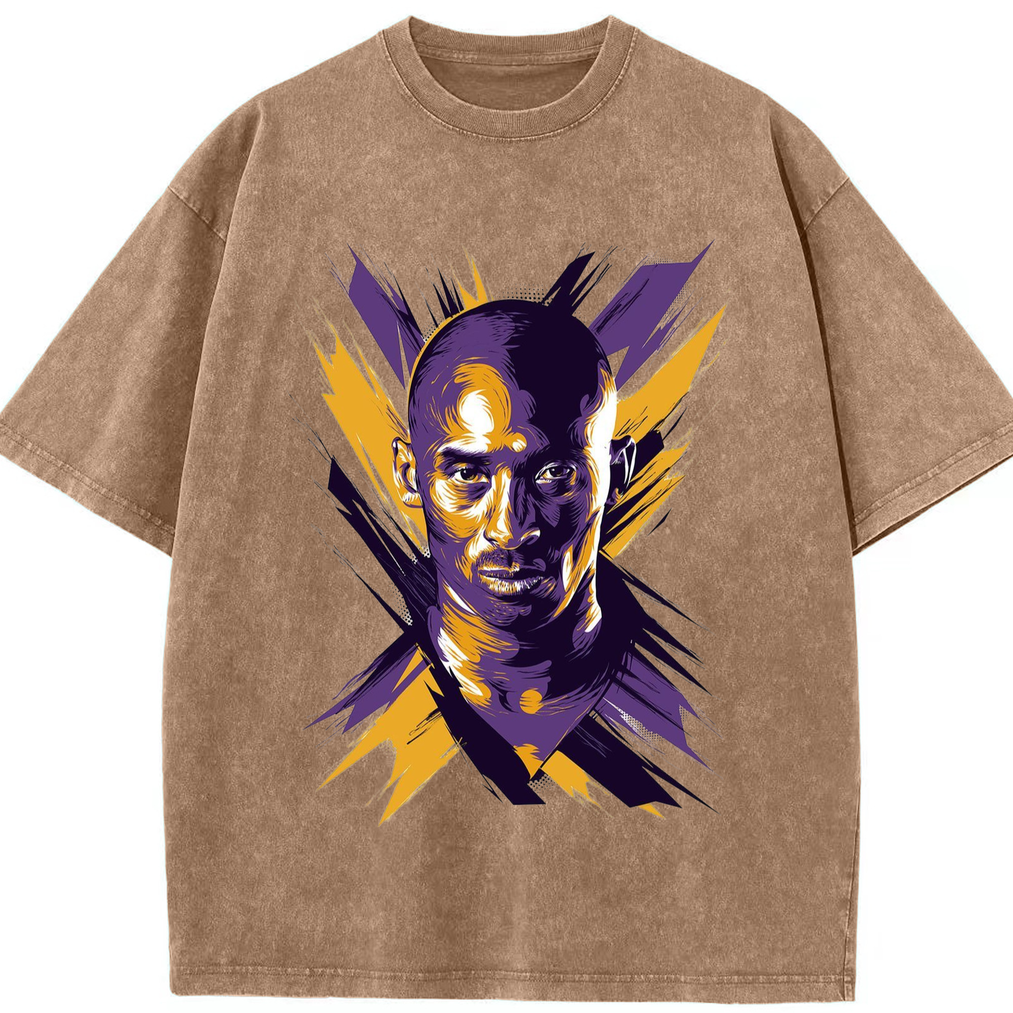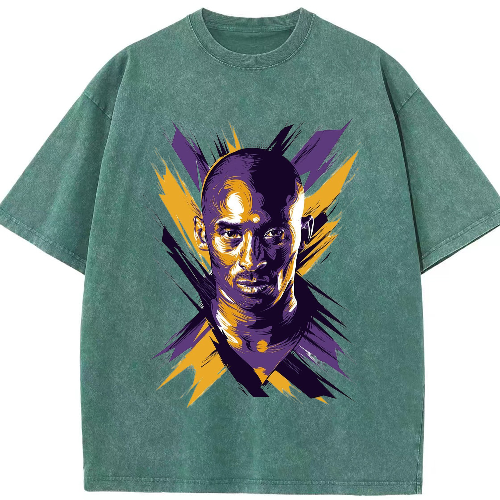 Kobe Painted portrait art tee - Washed Vintage Look 230g Cotton Oversized T-Shirt With Front Heat Transfer Print – Soft, Lightweight, Stylish Fit – Comfortable Casual Wear For Sports & Everyday Use