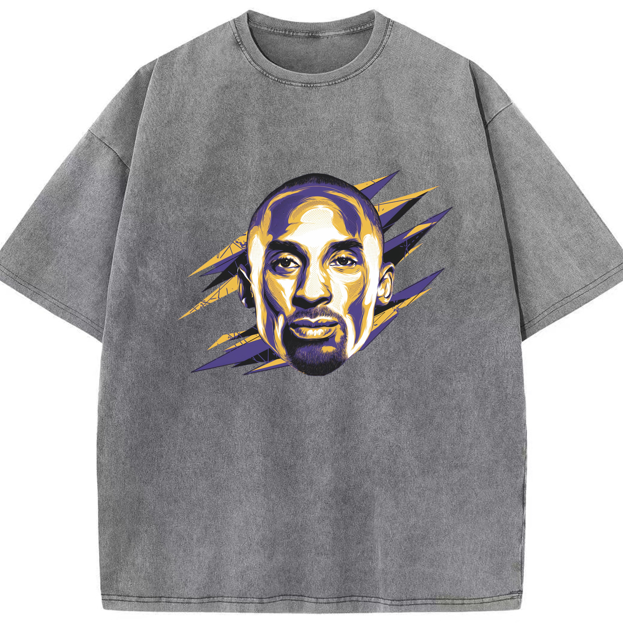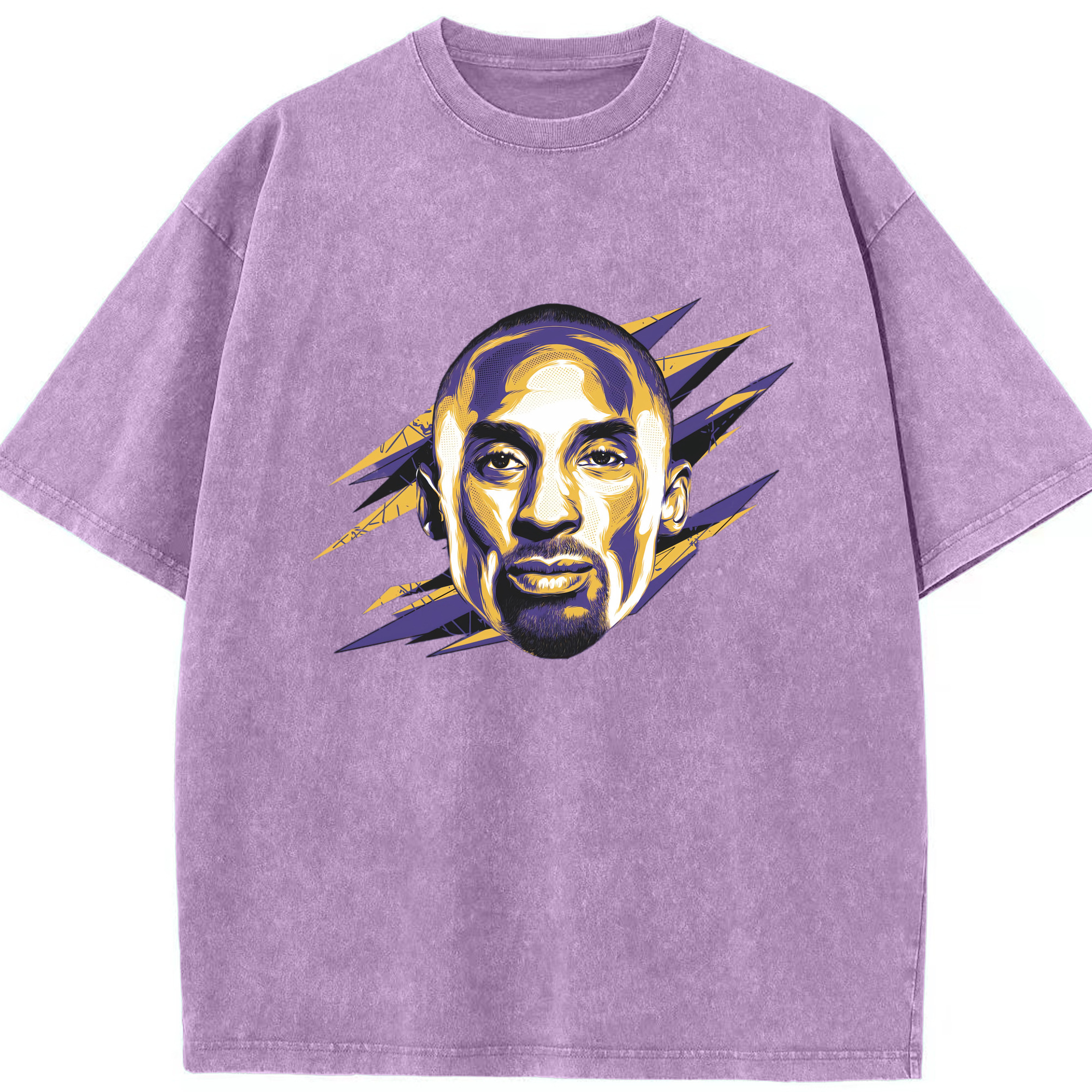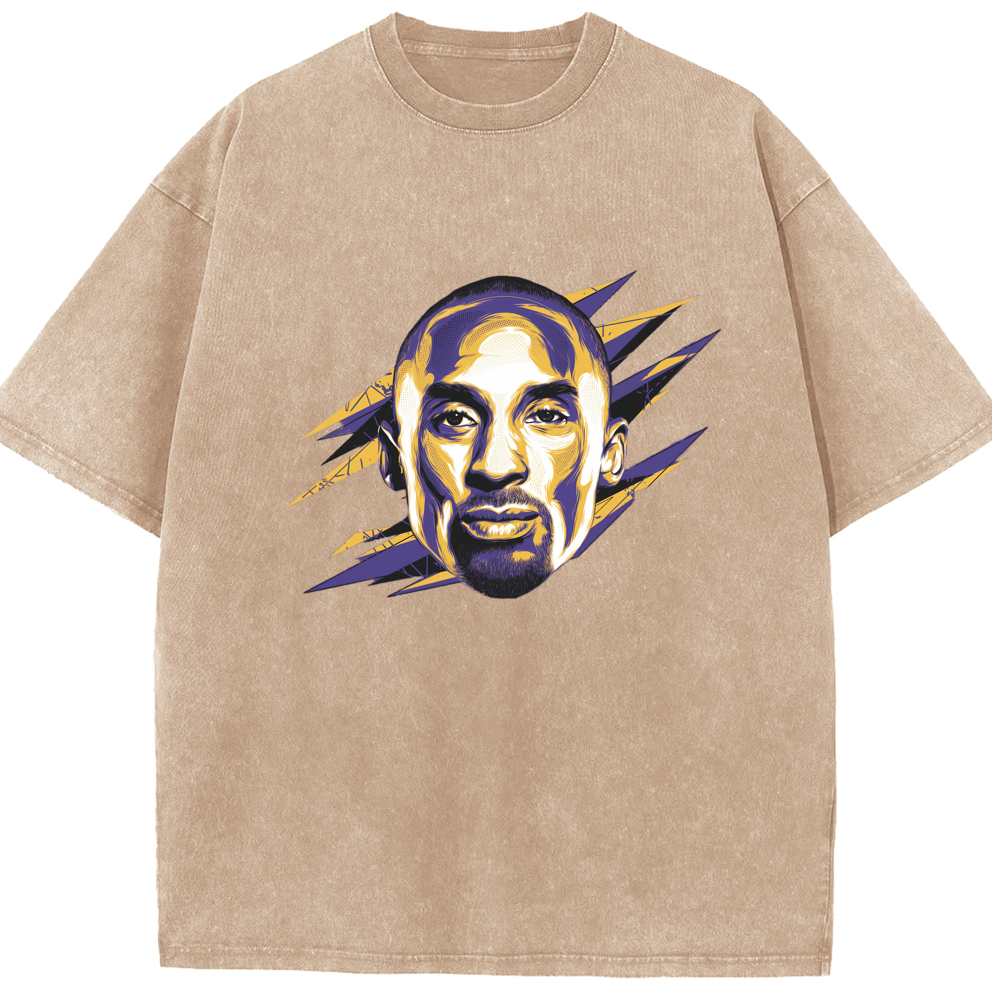 Kobe Painted portrait t-shirt - Washed Vintage Look 230g Cotton Oversized T-Shirt With Front Heat Transfer Print – Soft, Lightweight, Stylish Fit – Comfortable Casual Wear For Sports & Everyday Use