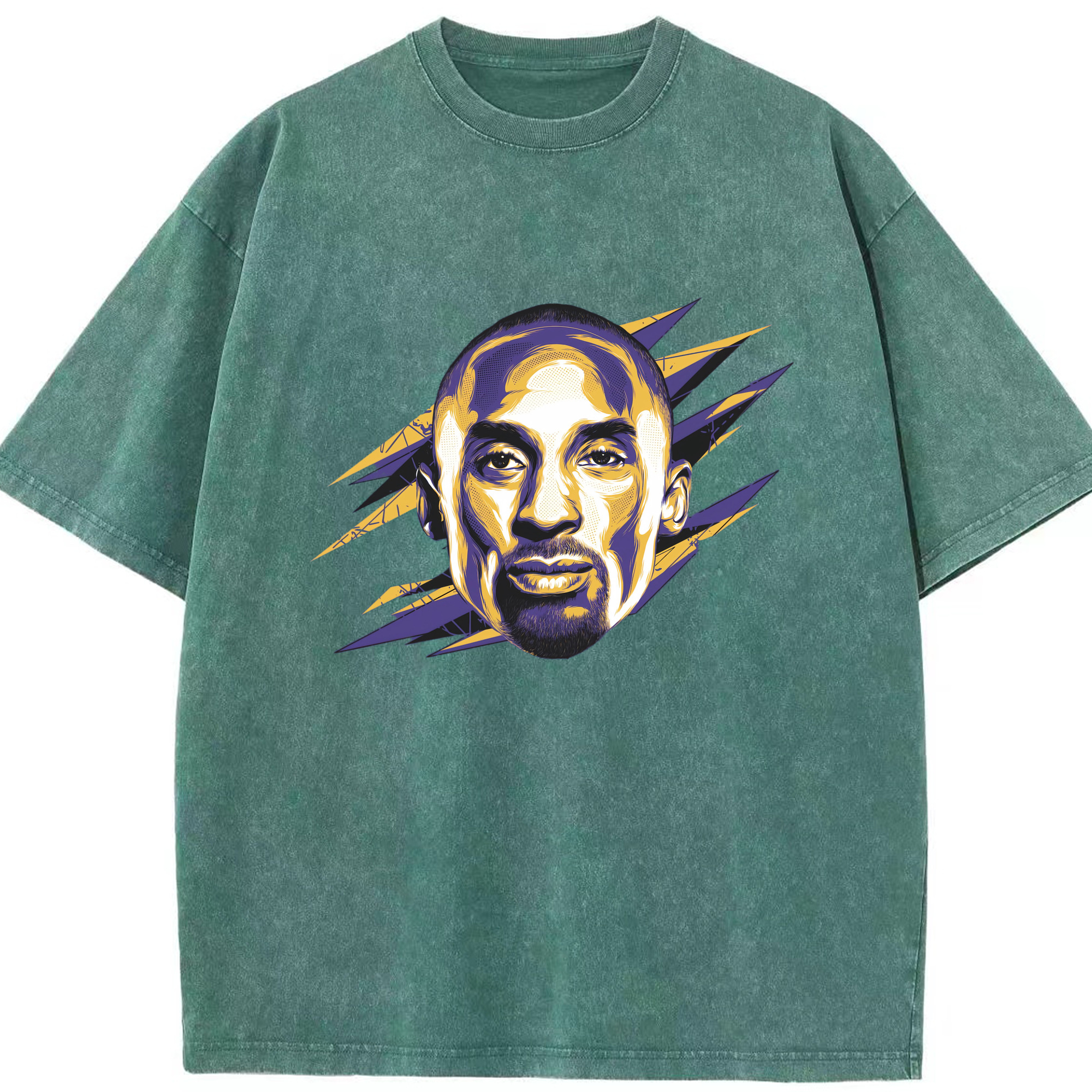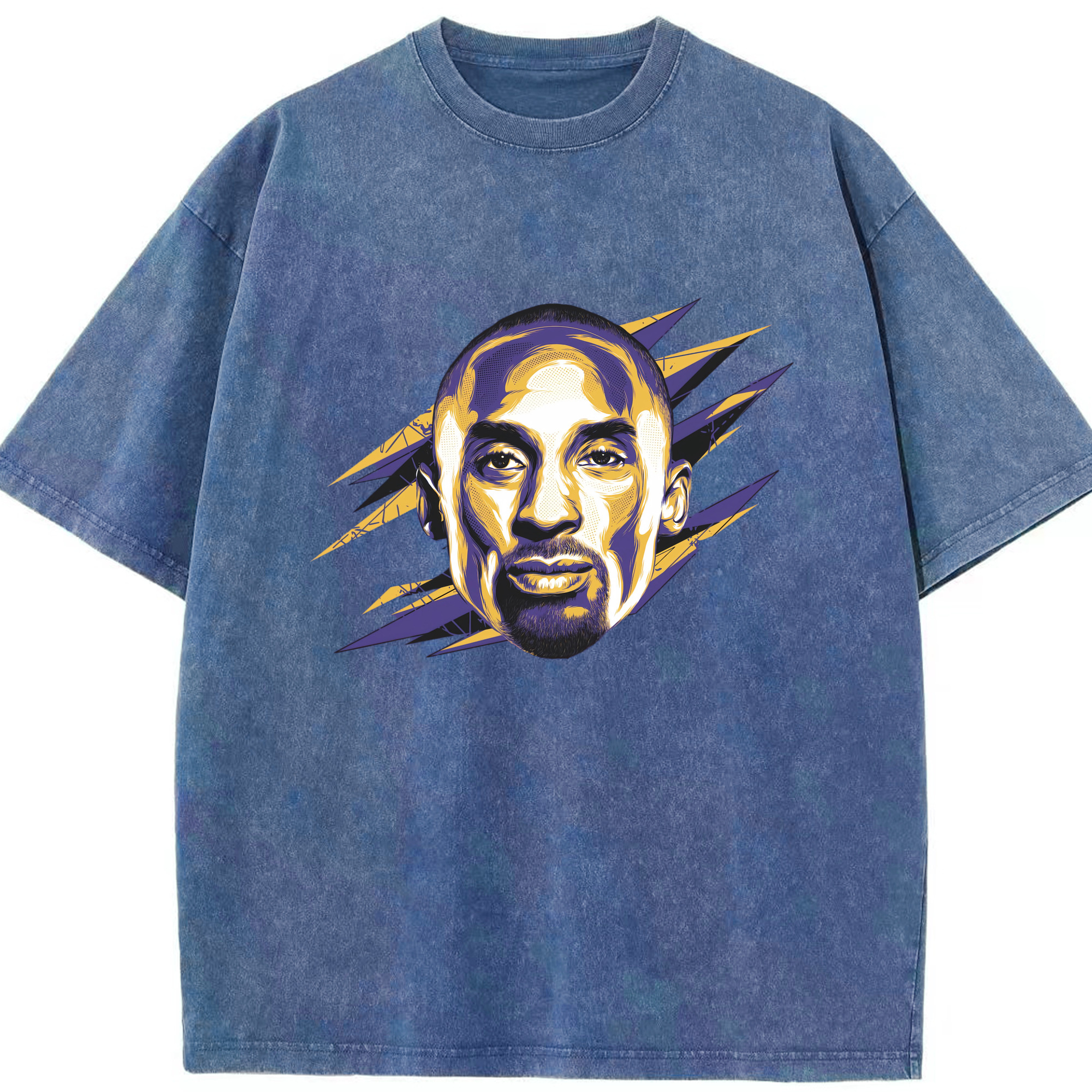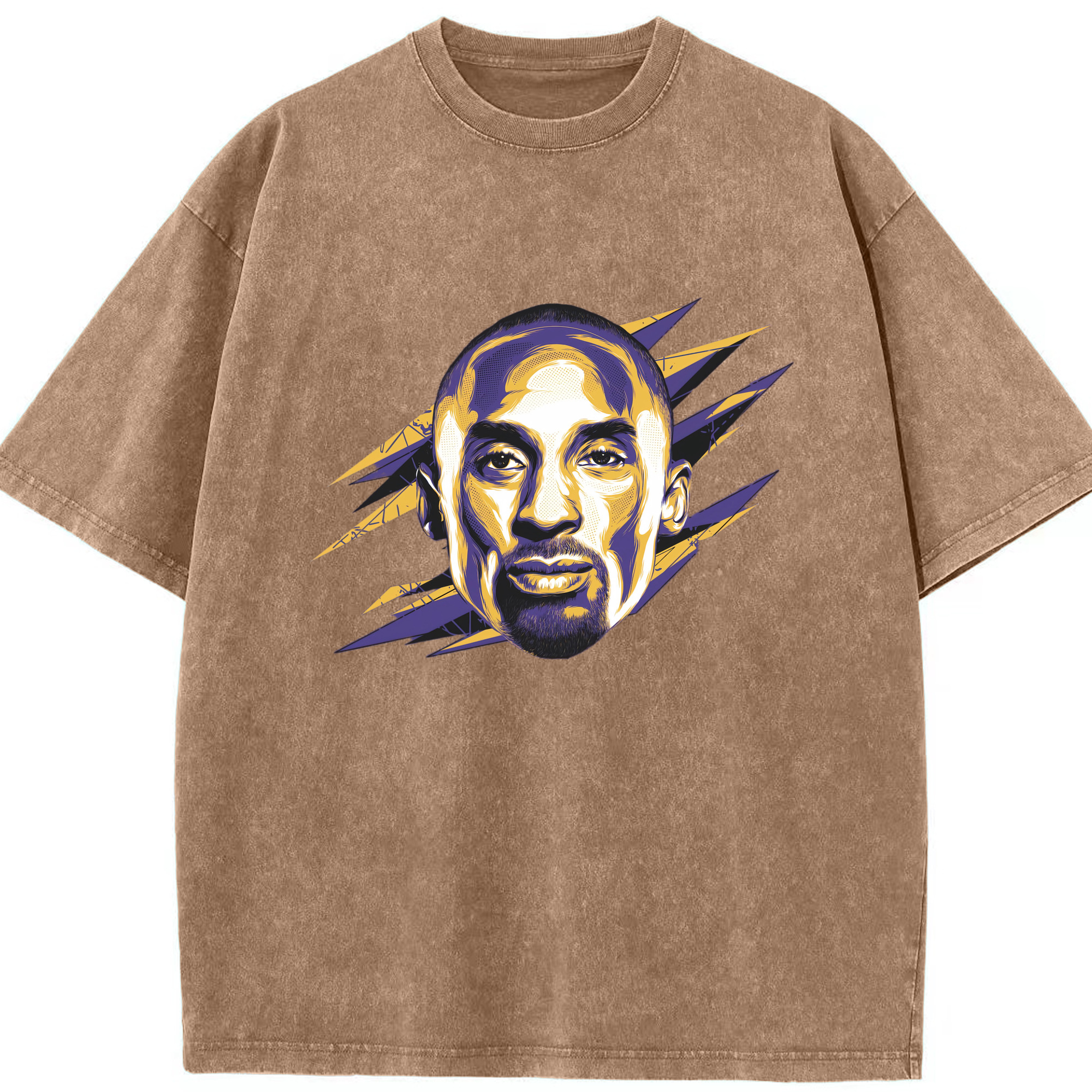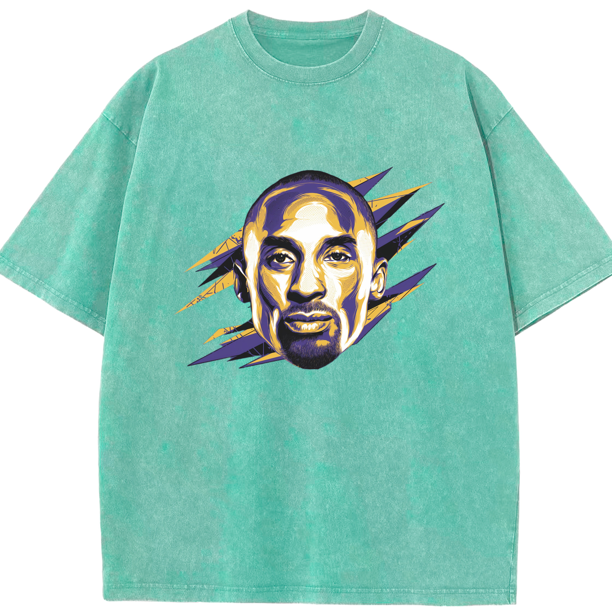 Kobe Painted portrait t-shirt - Washed Vintage Look 230g Cotton Oversized T-Shirt With Front Heat Transfer Print – Soft, Lightweight, Stylish Fit – Comfortable Casual Wear For Sports & Everyday Use