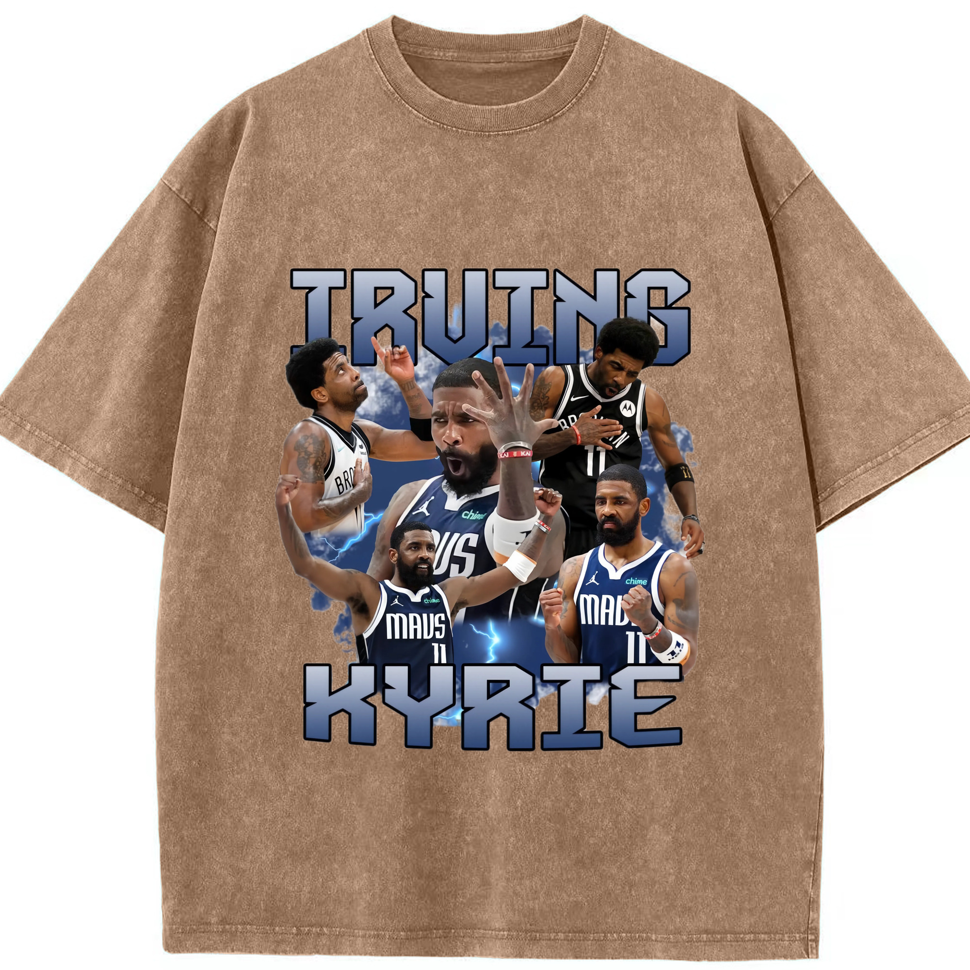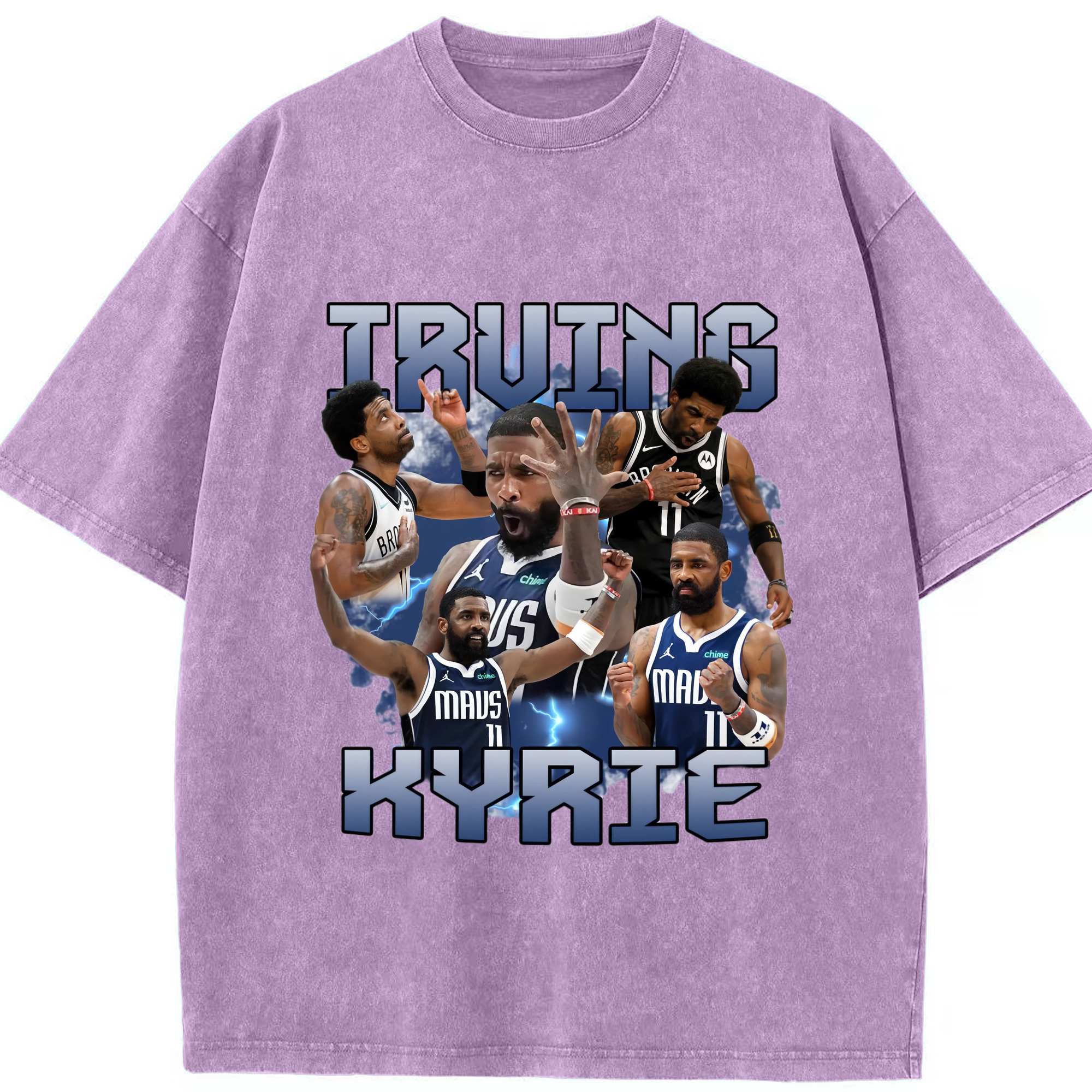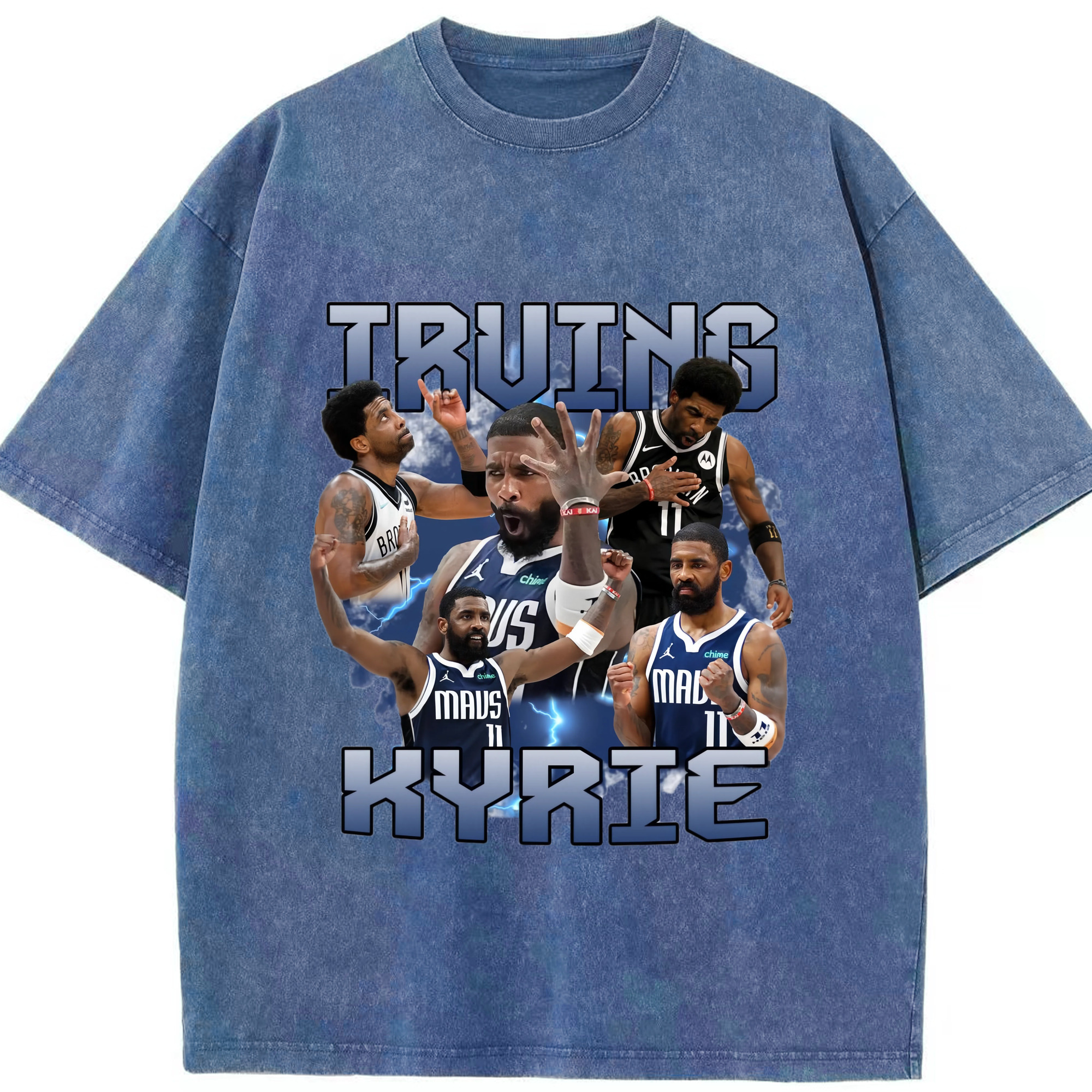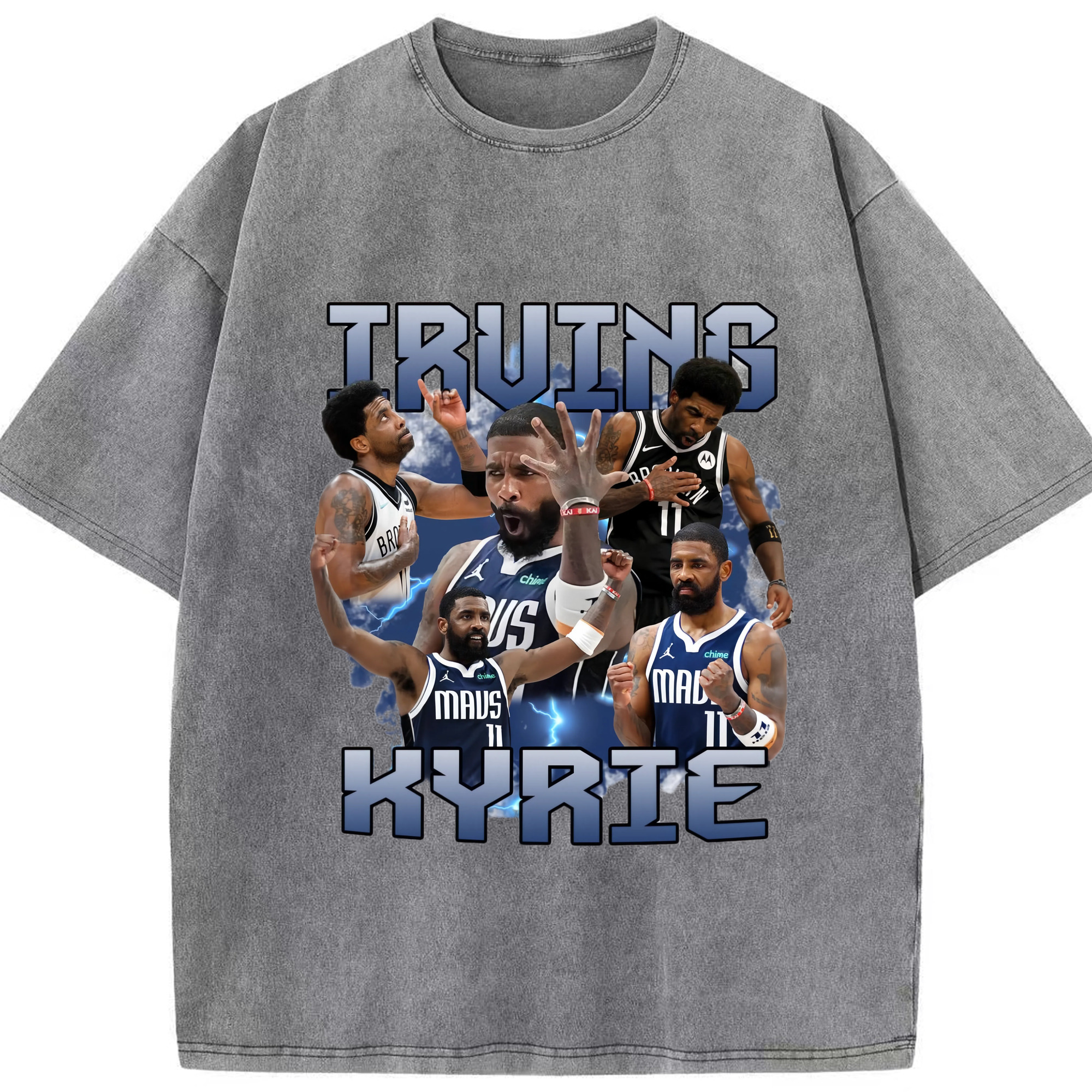 Kyrie Irving Dallas Mavericks Retro T‑shirt - Washed Vintage Look 230g Cotton Oversized T-Shirt With Front Heat Transfer Print – Soft, Lightweight, Stylish Fit – Comfortable Casual Wear For Sports & Everyday Use