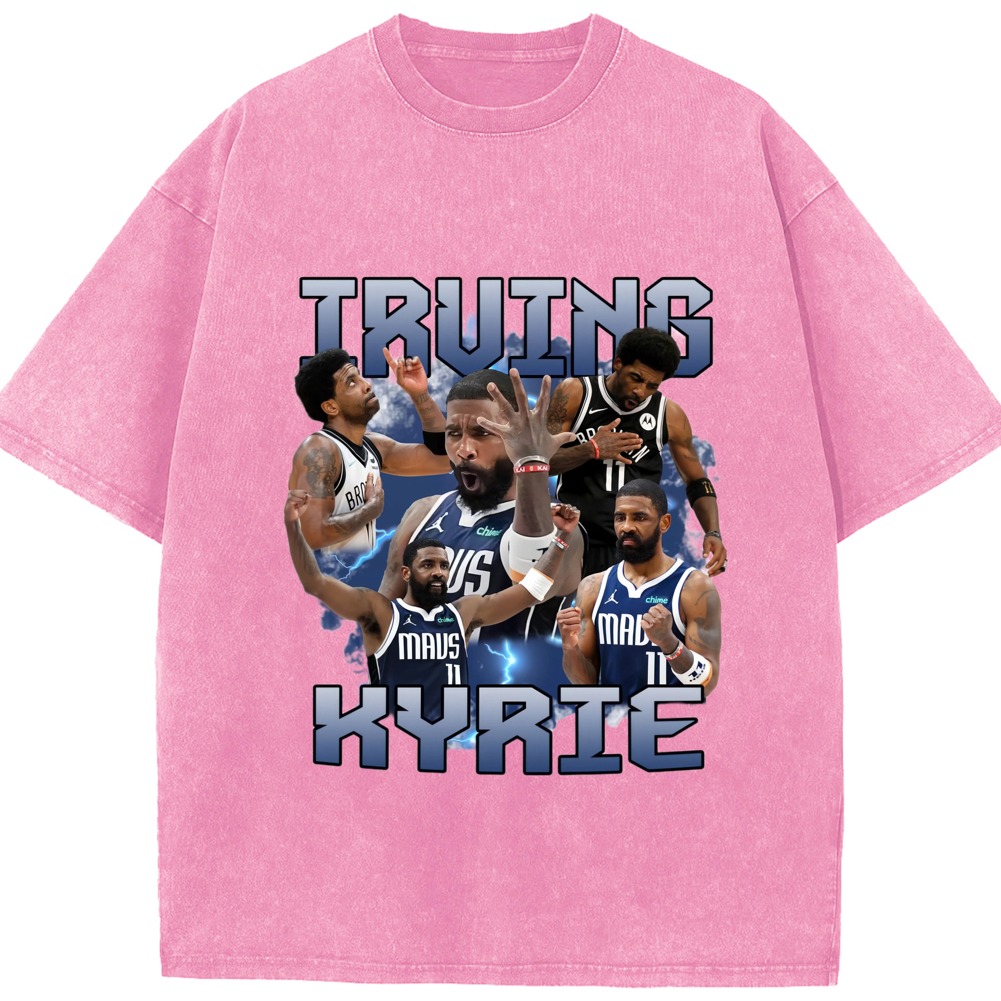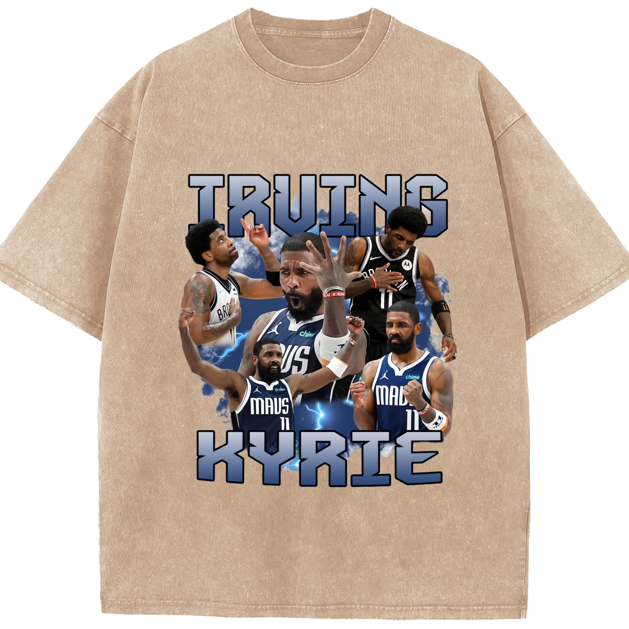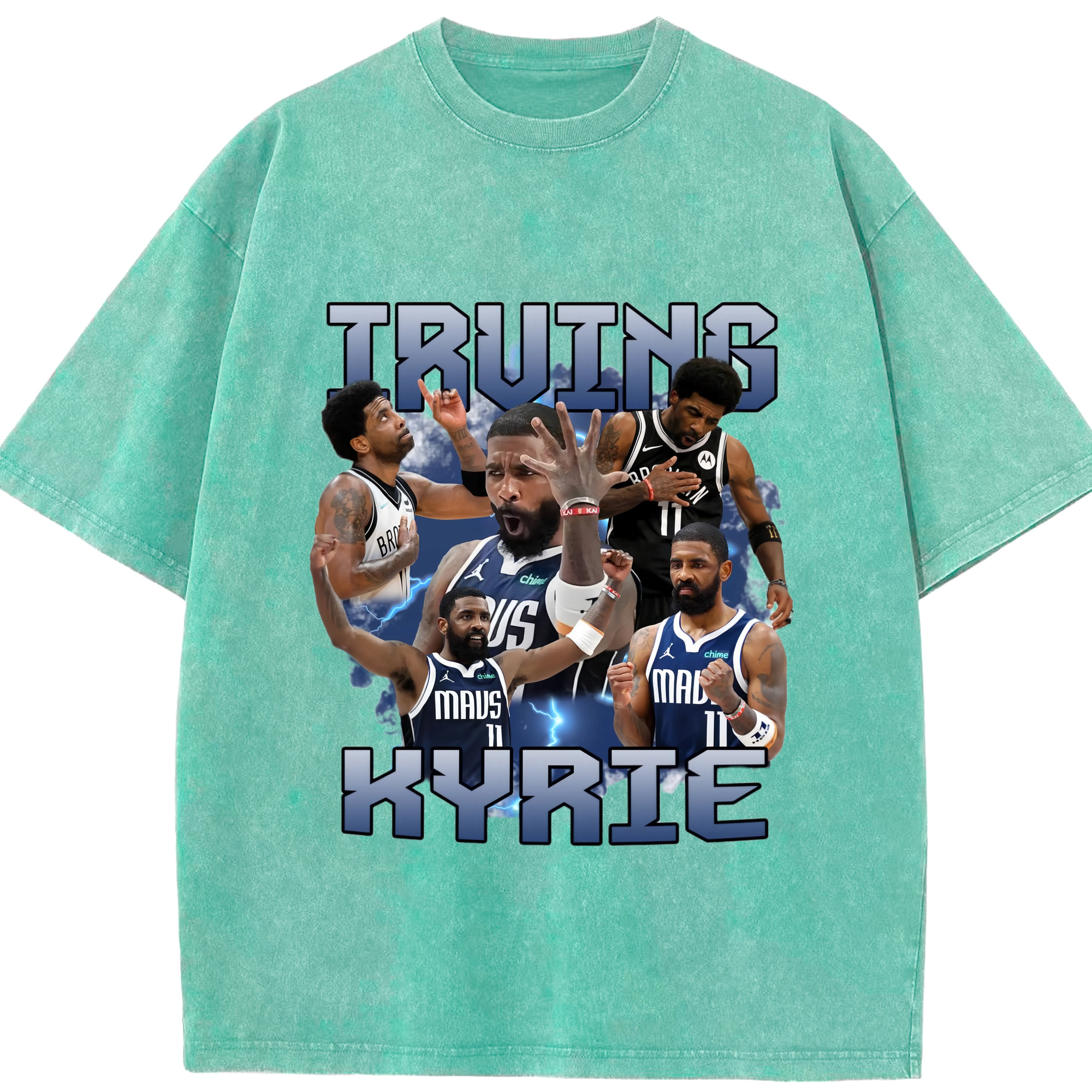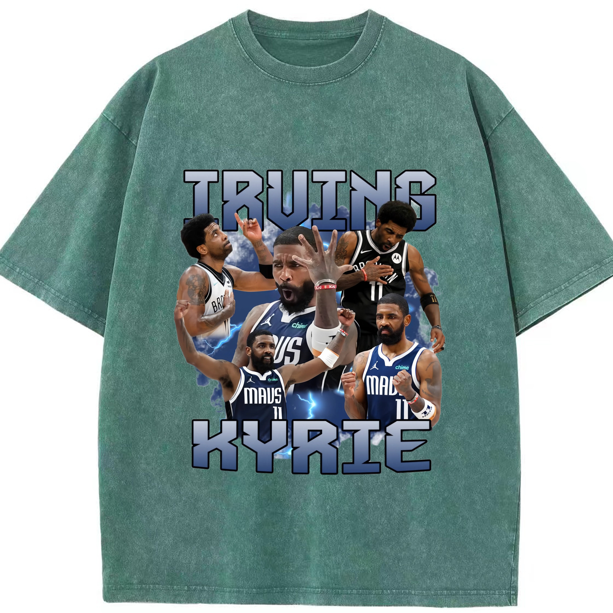 Kyrie Irving Dallas Mavericks Retro T‑shirt - Washed Vintage Look 230g Cotton Oversized T-Shirt With Front Heat Transfer Print – Soft, Lightweight, Stylish Fit – Comfortable Casual Wear For Sports & Everyday Use