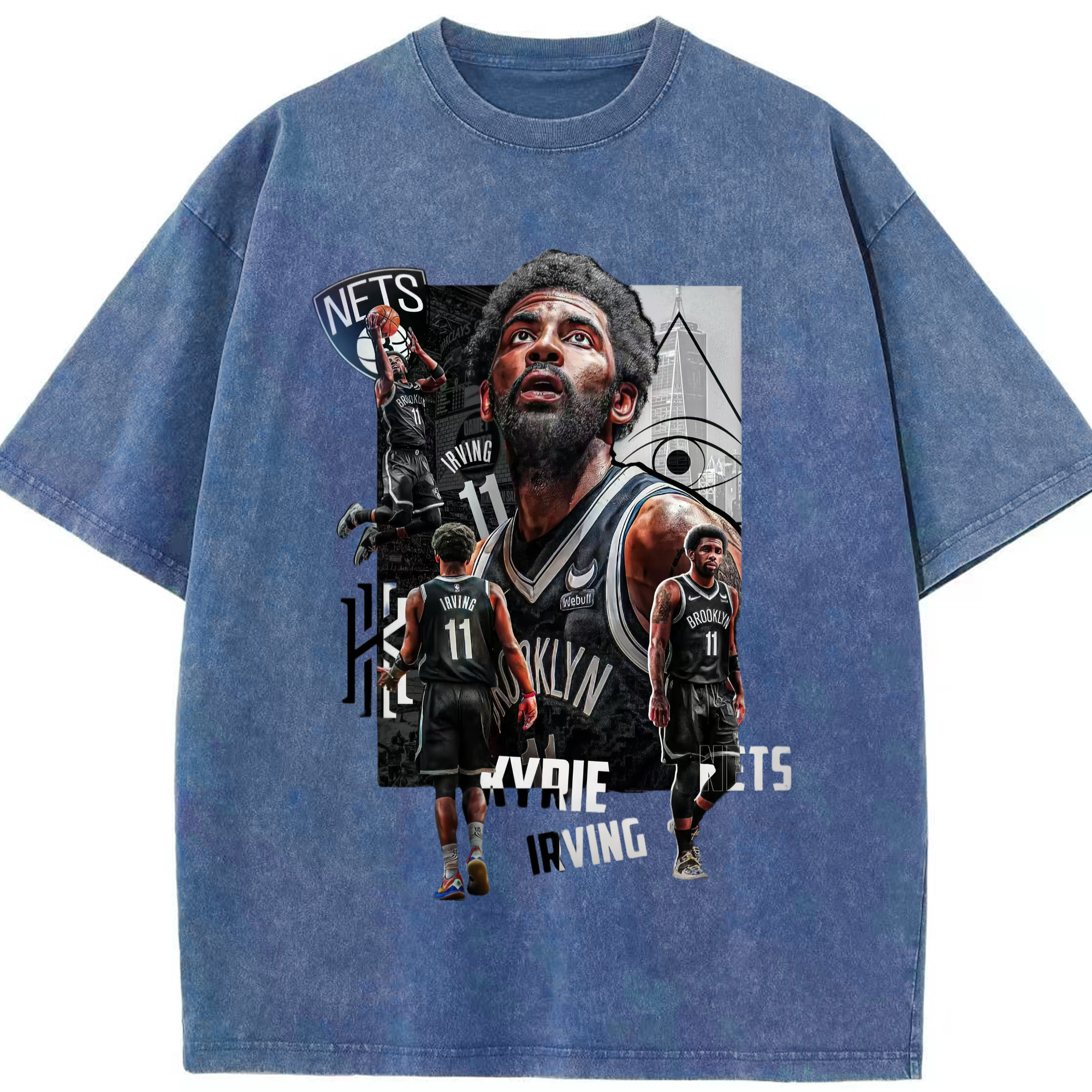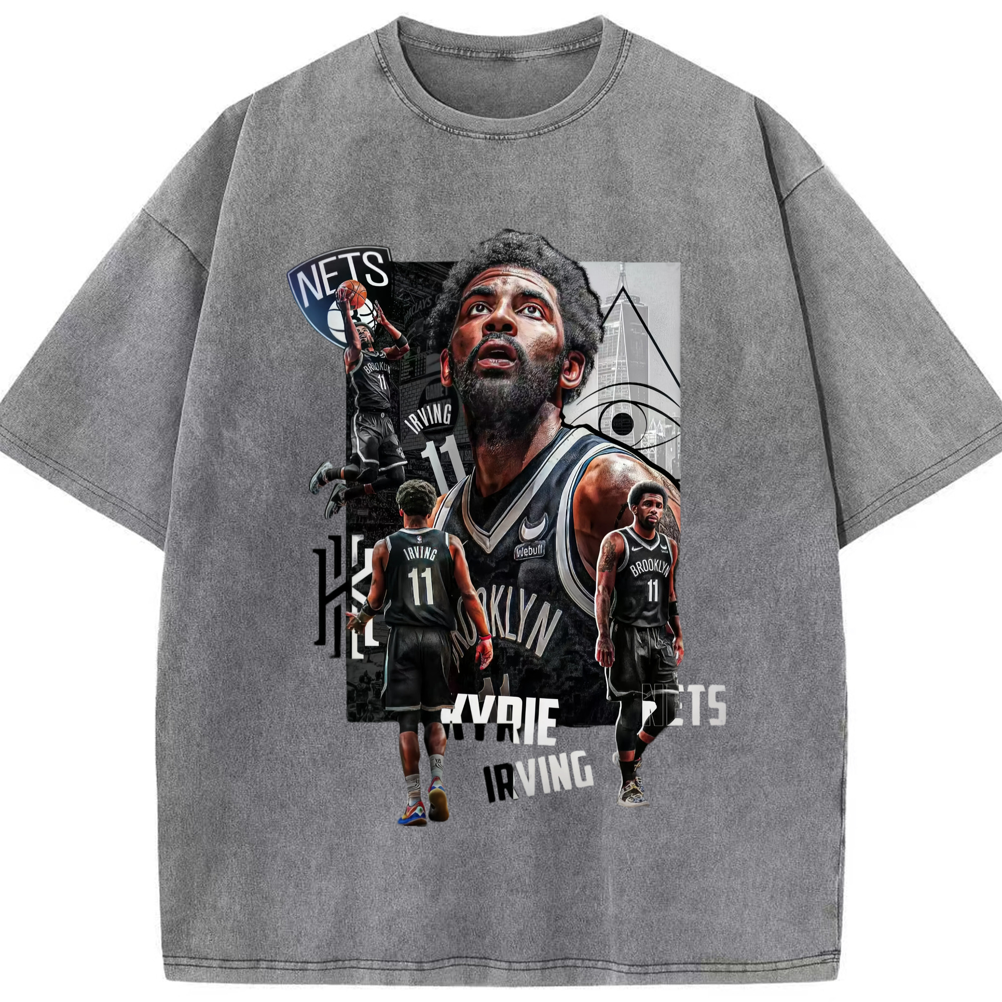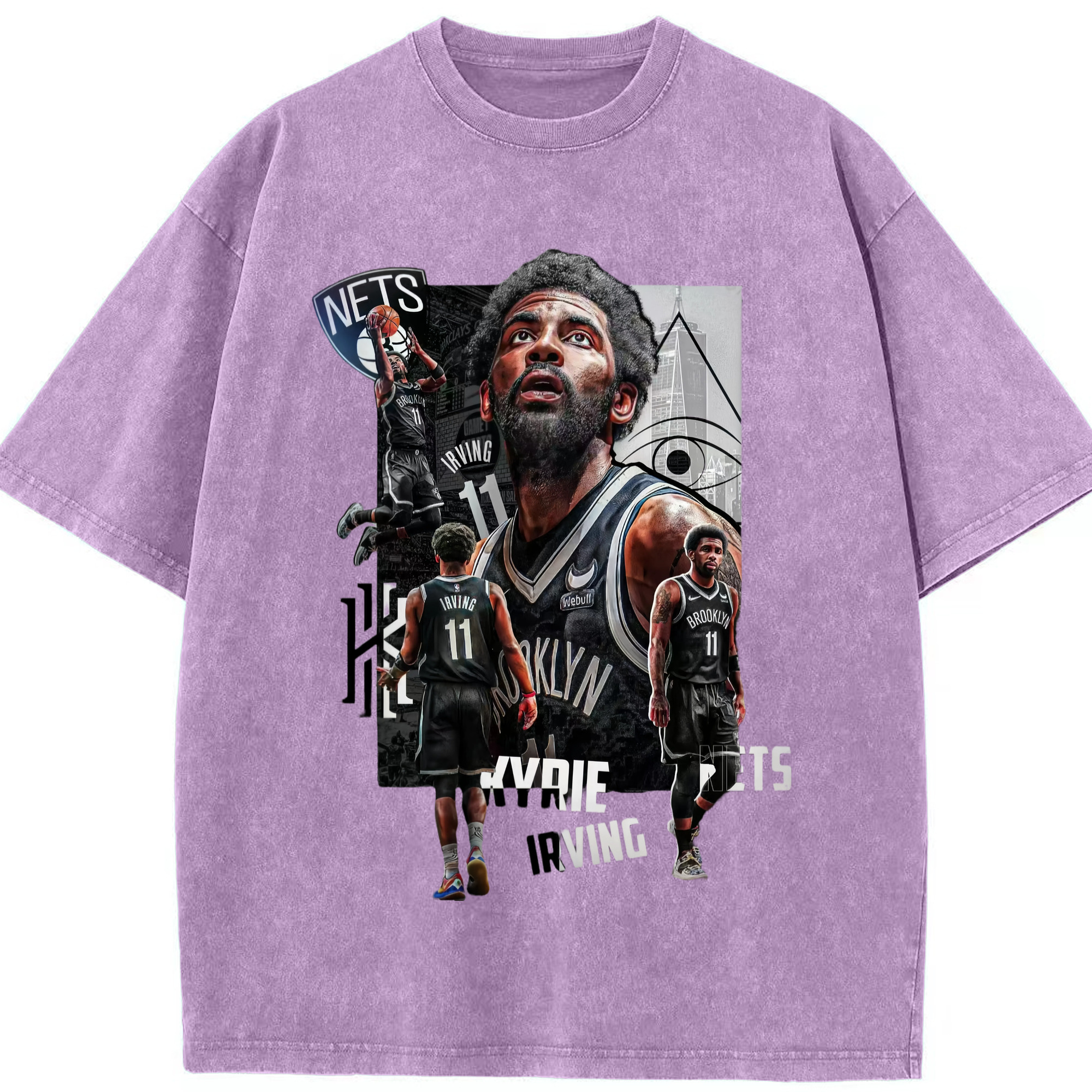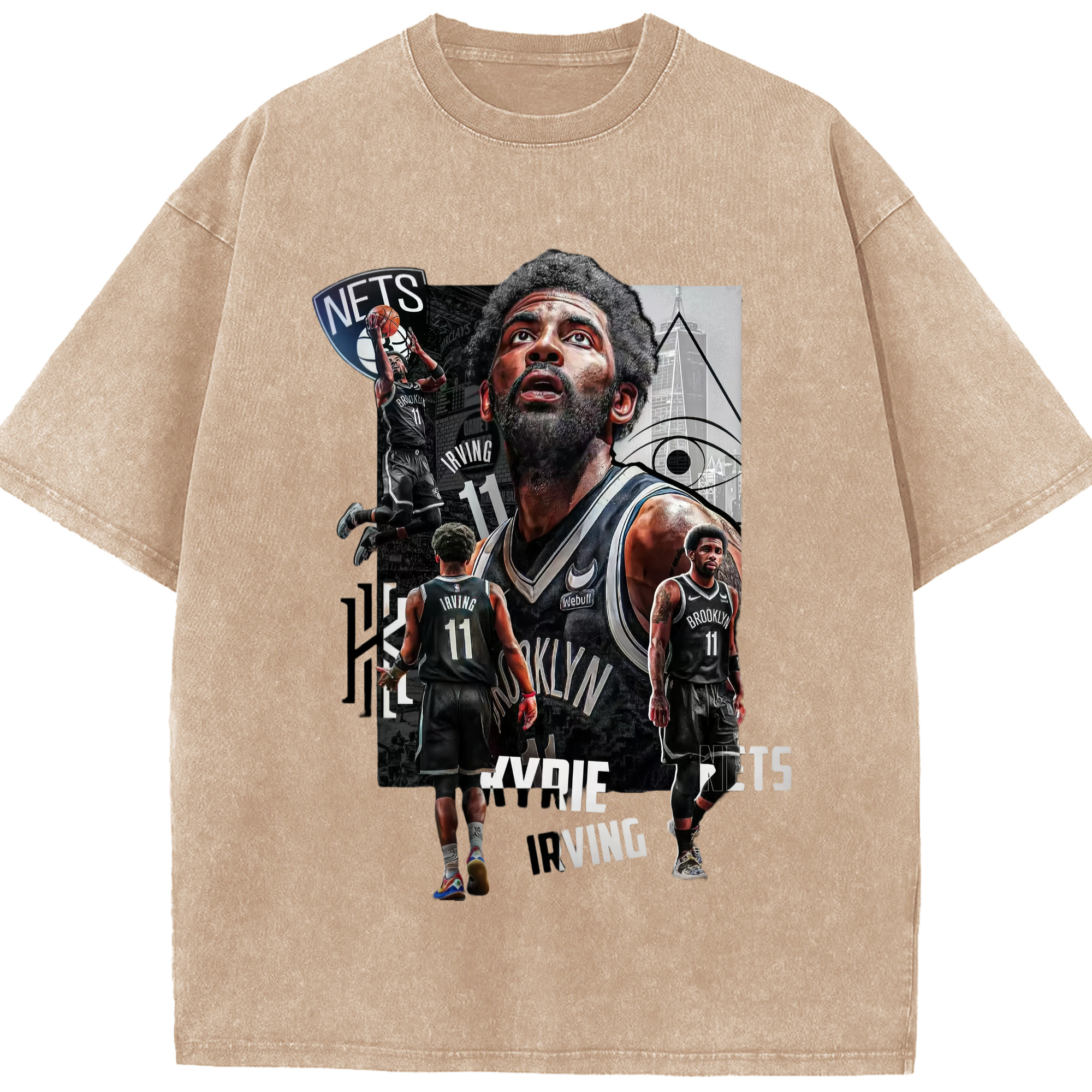 Kyrie Irving Nets T‑shirt - Washed Vintage Look 230g Cotton Oversized T-Shirt With Front Heat Transfer Print – Soft, Lightweight, Stylish Fit – Comfortable Casual Wear For Sports & Everyday Use