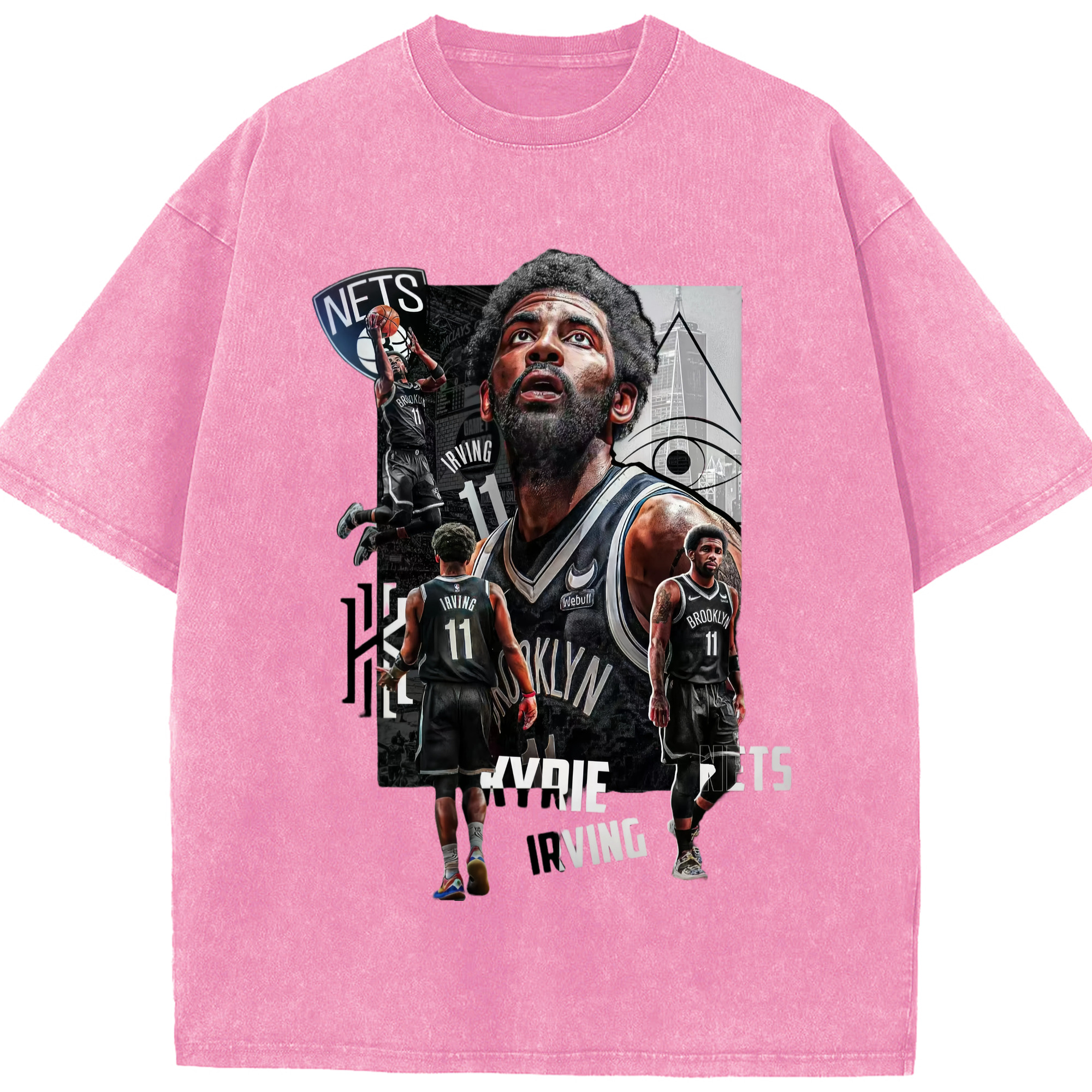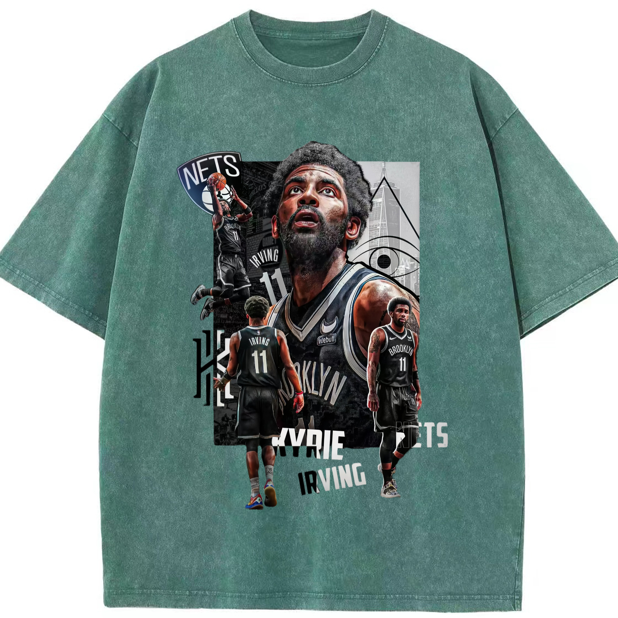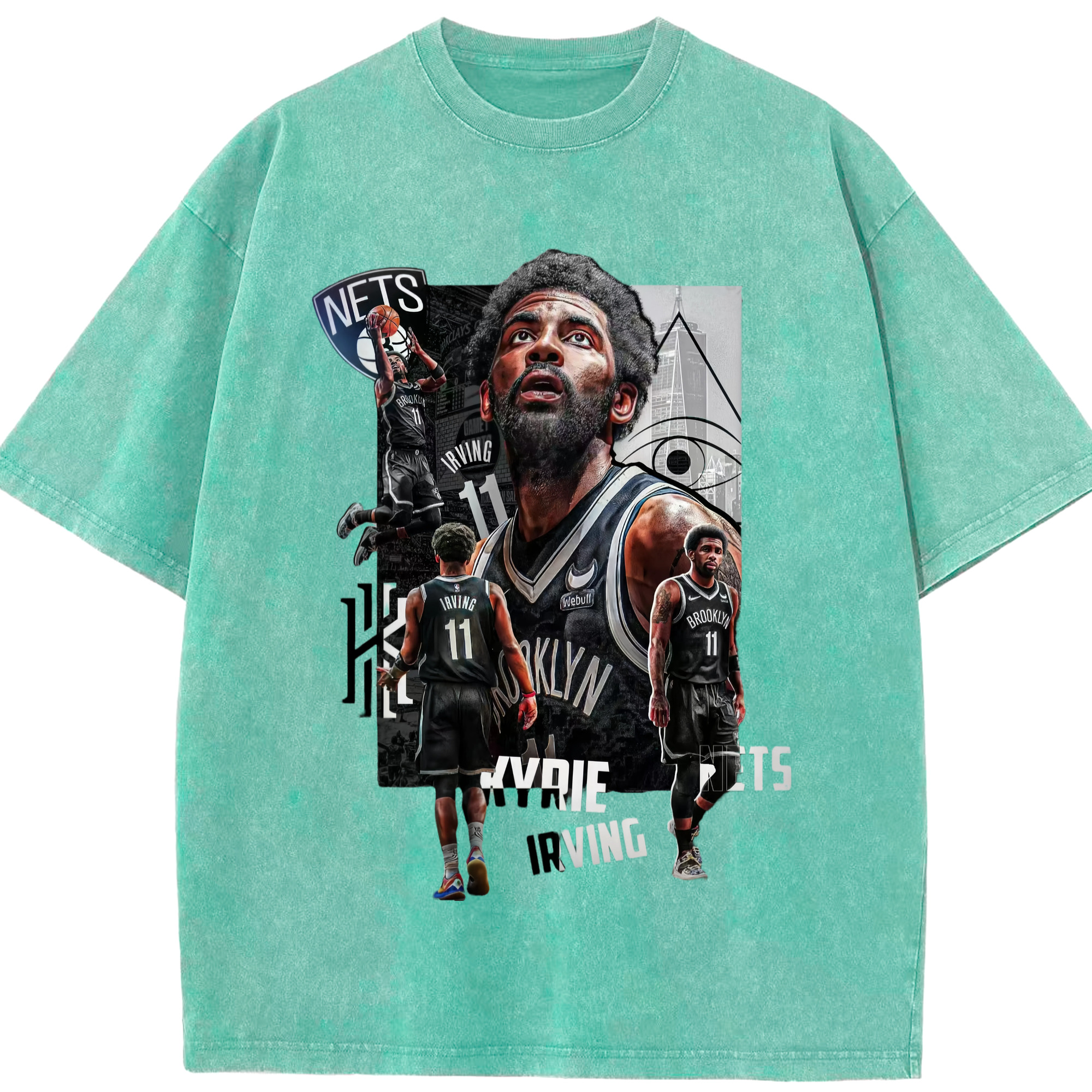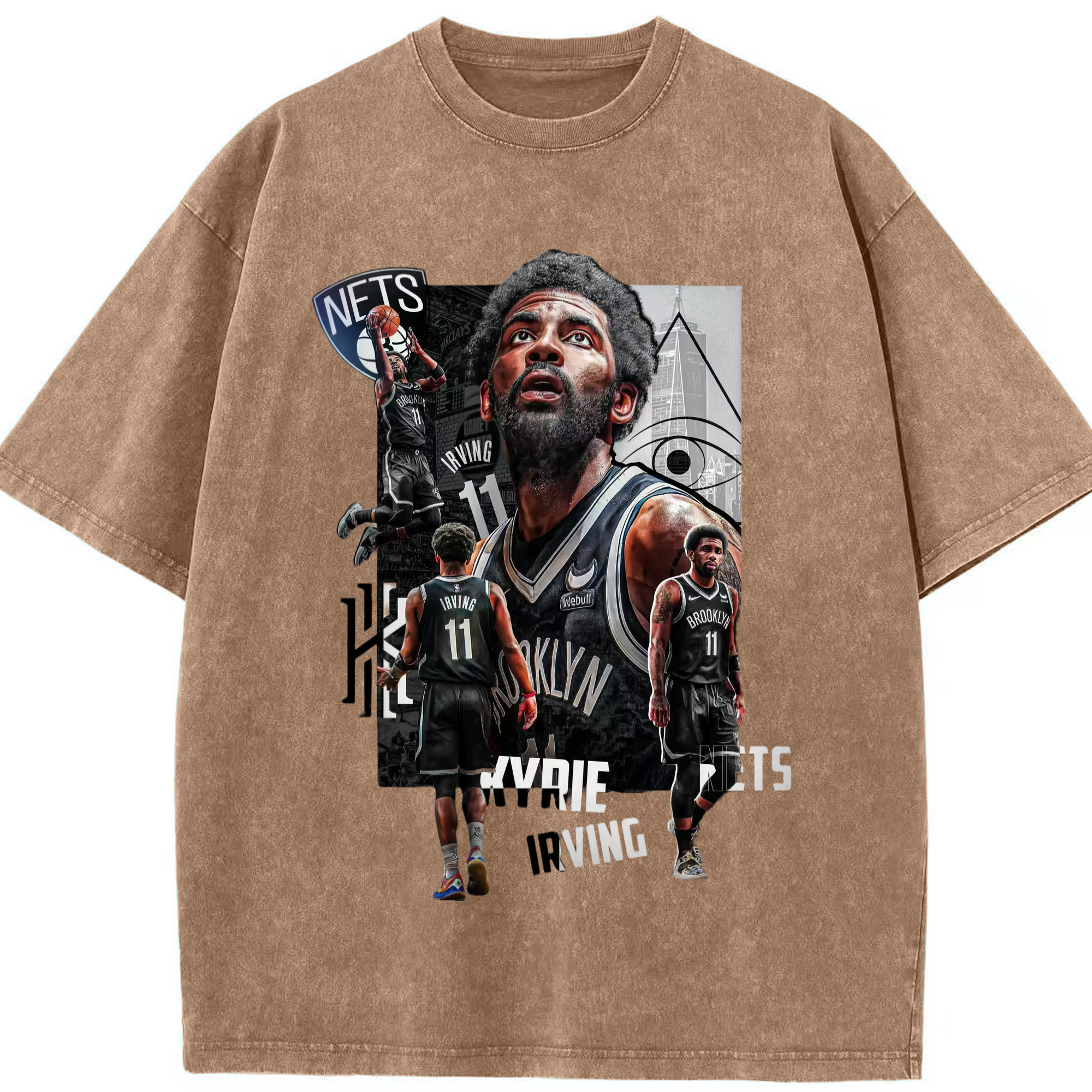 Kyrie Irving Nets T‑shirt - Washed Vintage Look 230g Cotton Oversized T-Shirt With Front Heat Transfer Print – Soft, Lightweight, Stylish Fit – Comfortable Casual Wear For Sports & Everyday Use