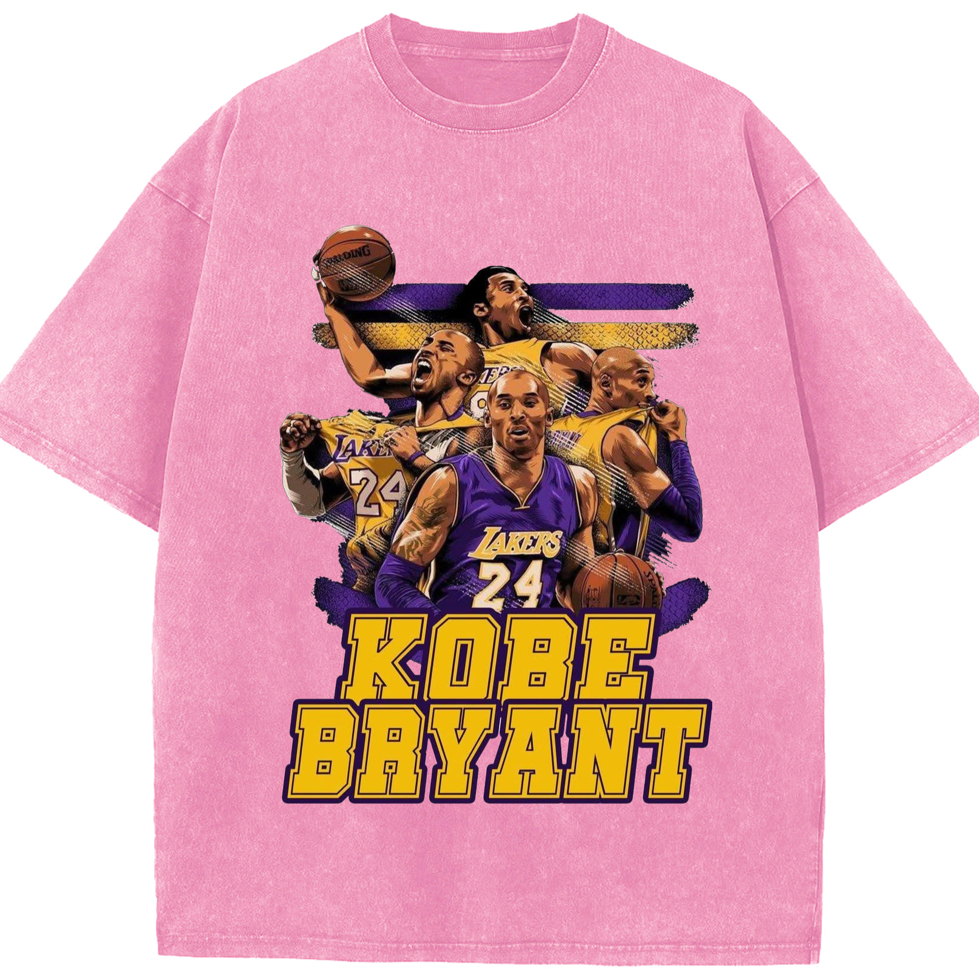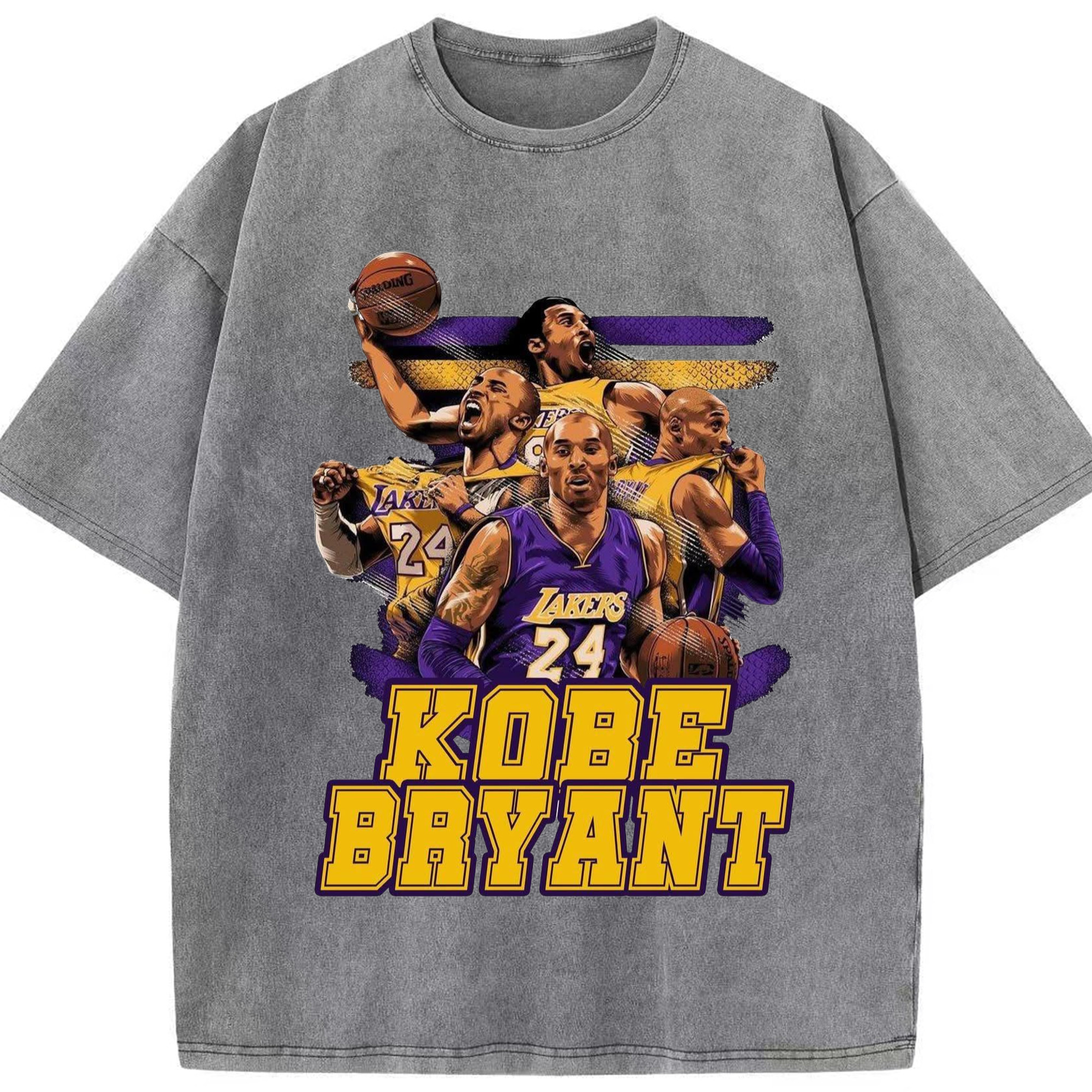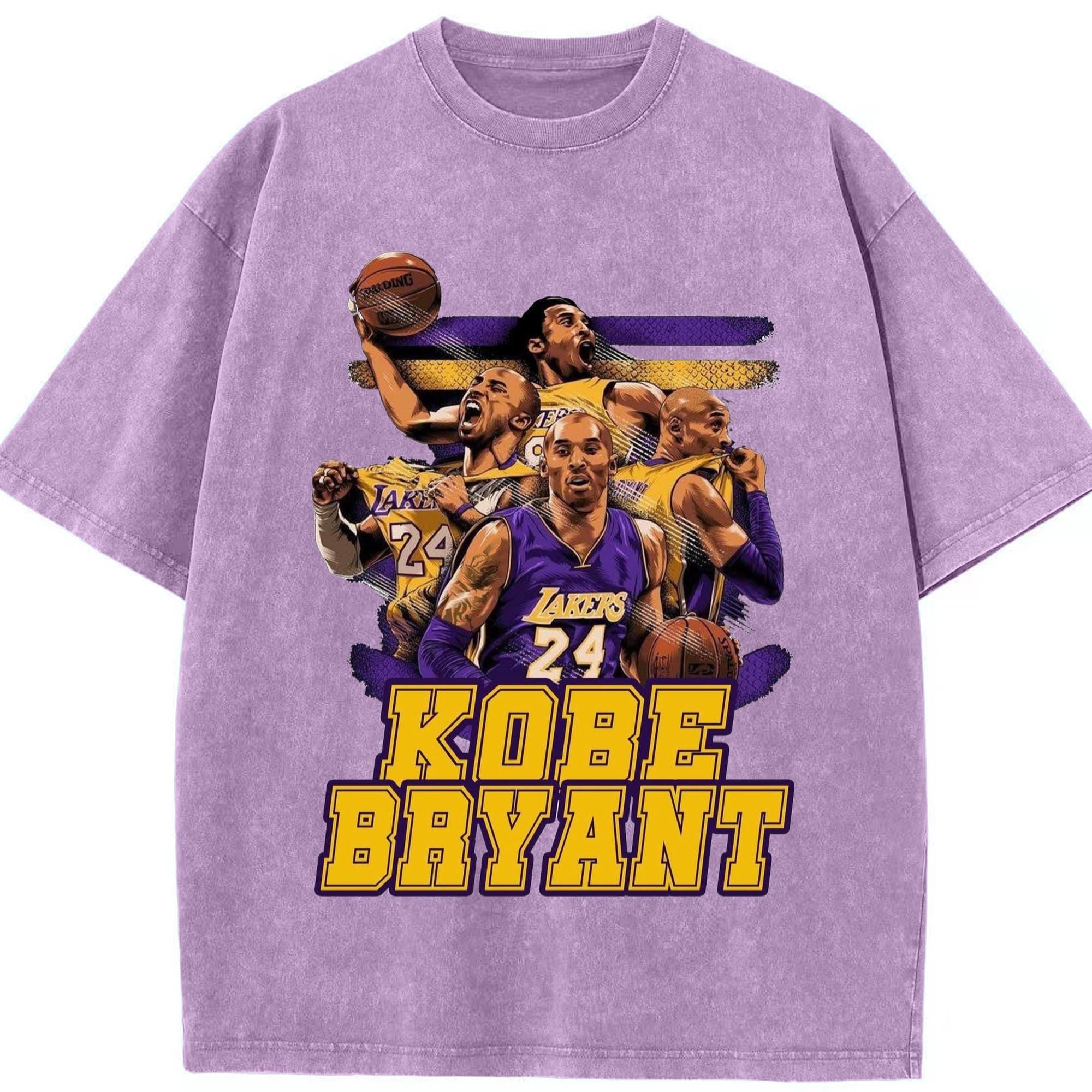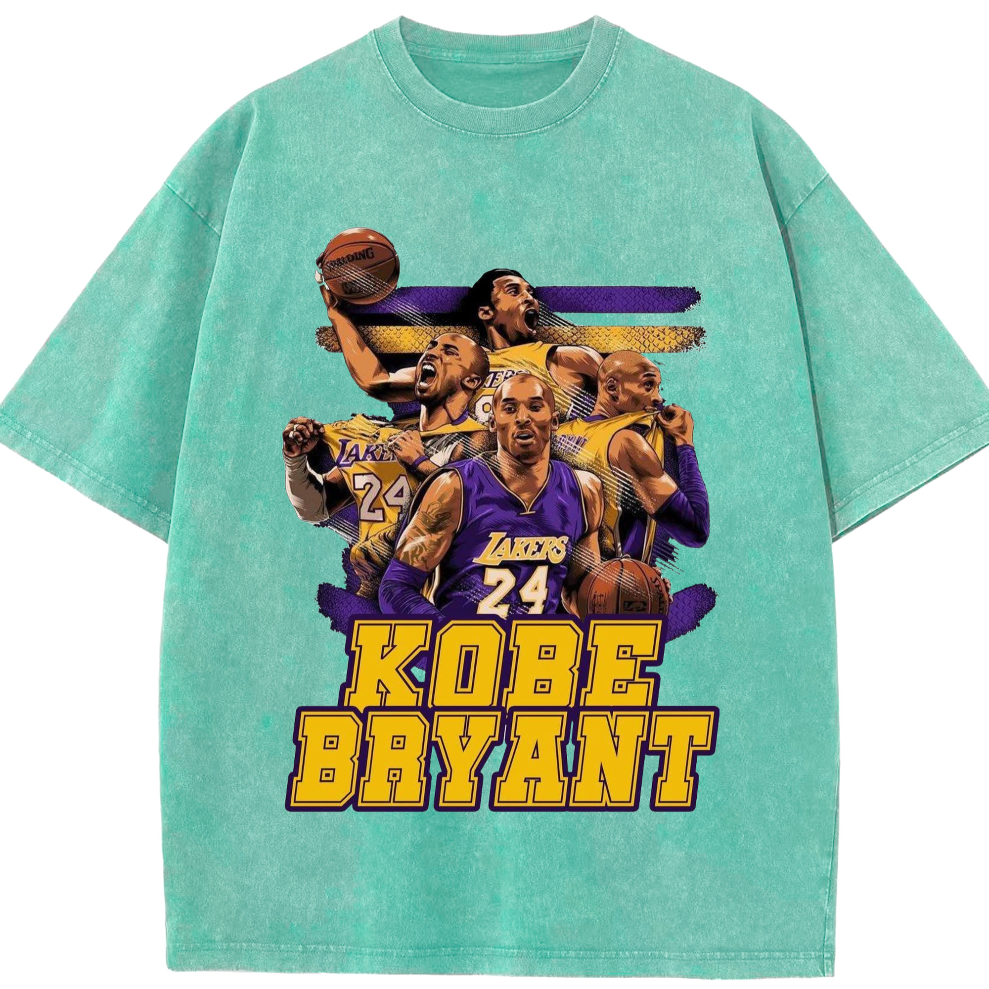 Lakers kobe bryant #24 #8 graphic T‑Shirt - Washed Vintage Look 230g Cotton Oversized T-Shirt With Front Heat Transfer Print – Soft, Lightweight, Stylish Fit – Comfortable Casual Wear For Sports & Everyday Use
