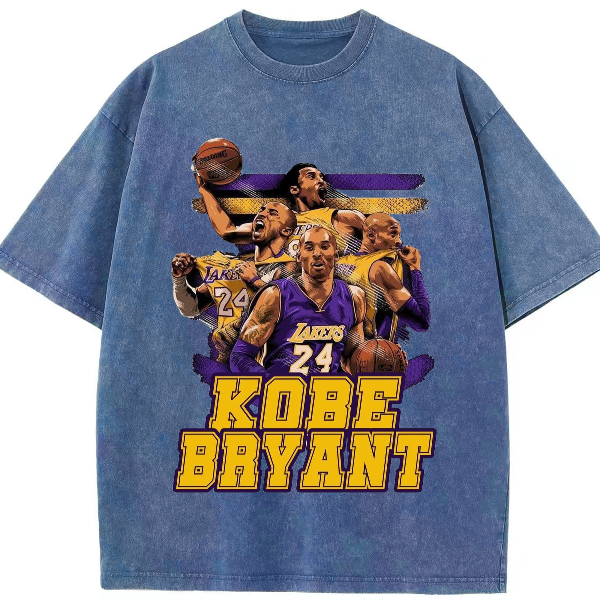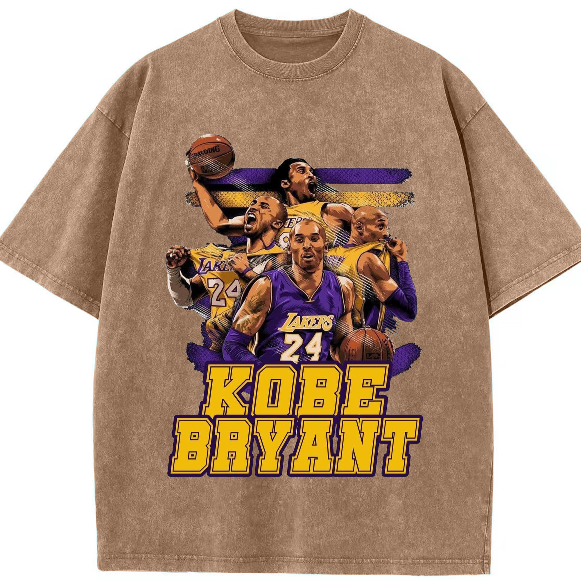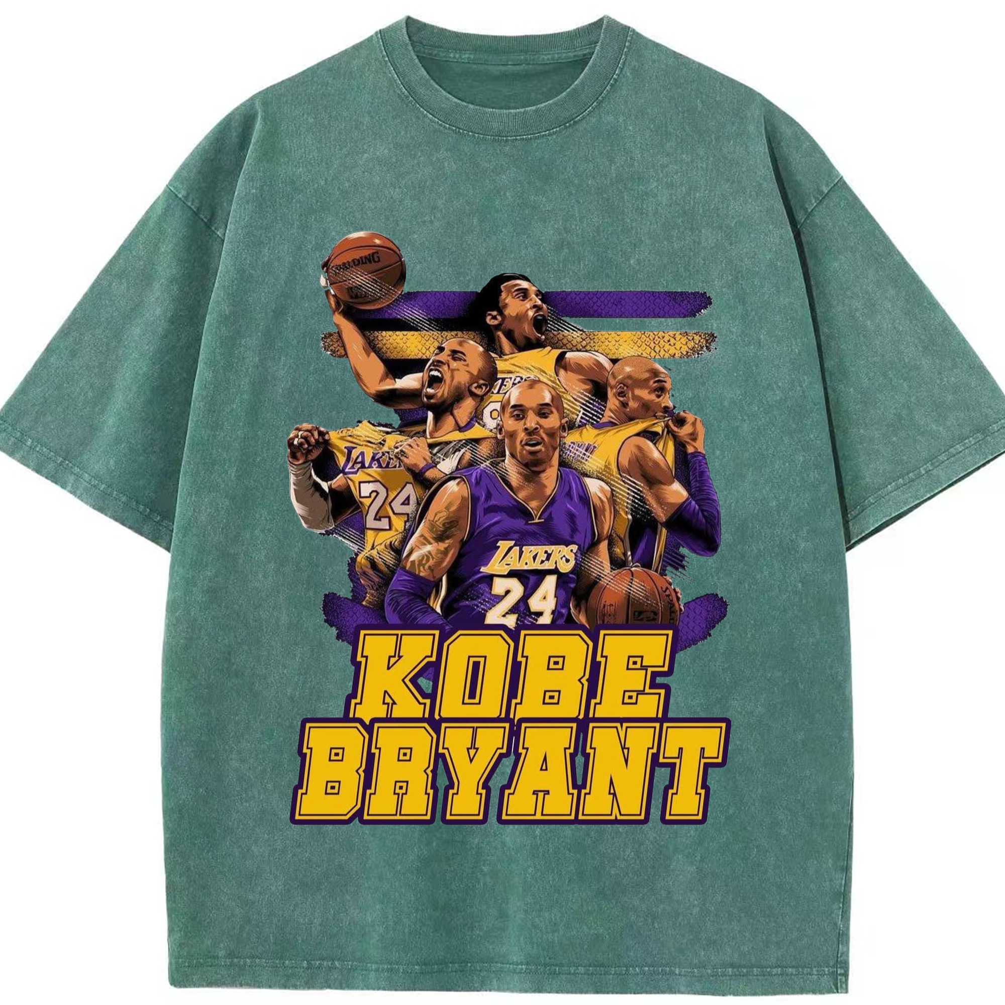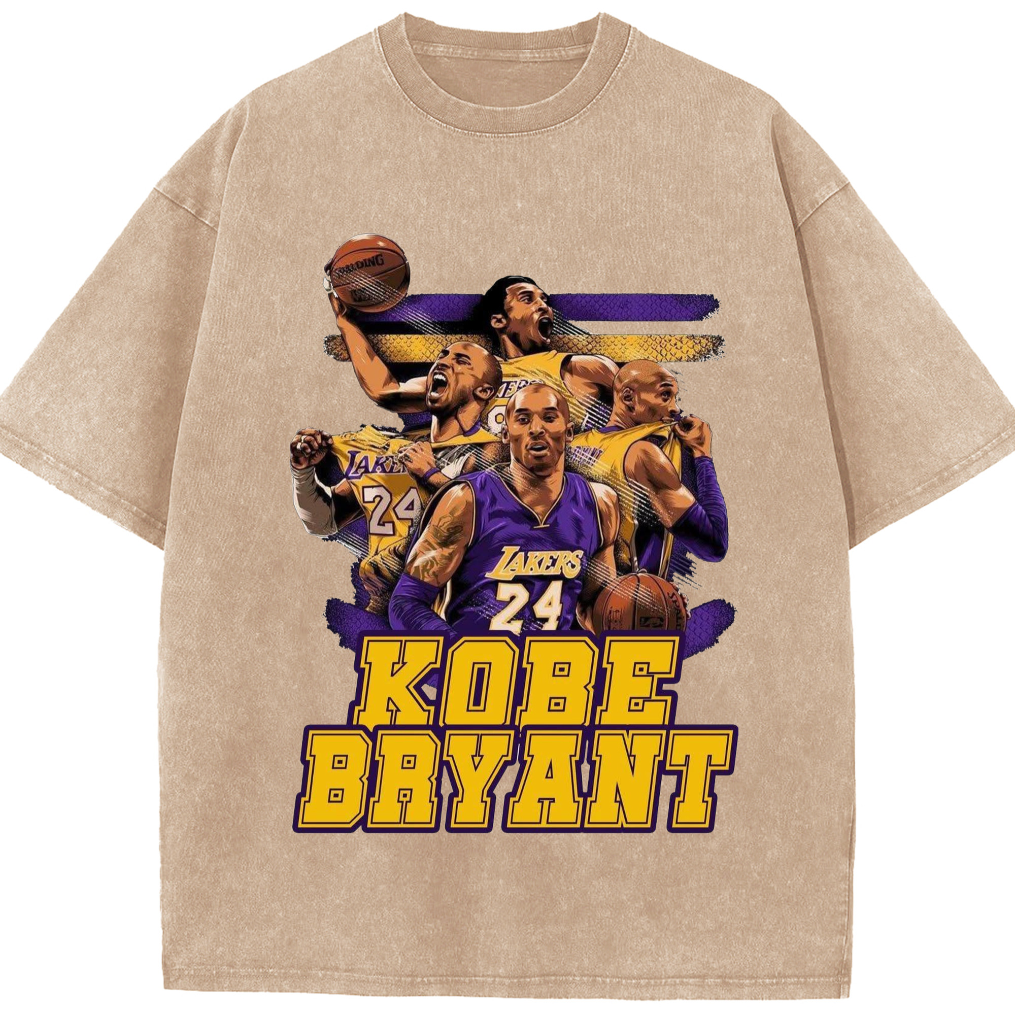 Lakers kobe bryant #24 #8 graphic T‑Shirt - Washed Vintage Look 230g Cotton Oversized T-Shirt With Front Heat Transfer Print – Soft, Lightweight, Stylish Fit – Comfortable Casual Wear For Sports & Everyday Use
