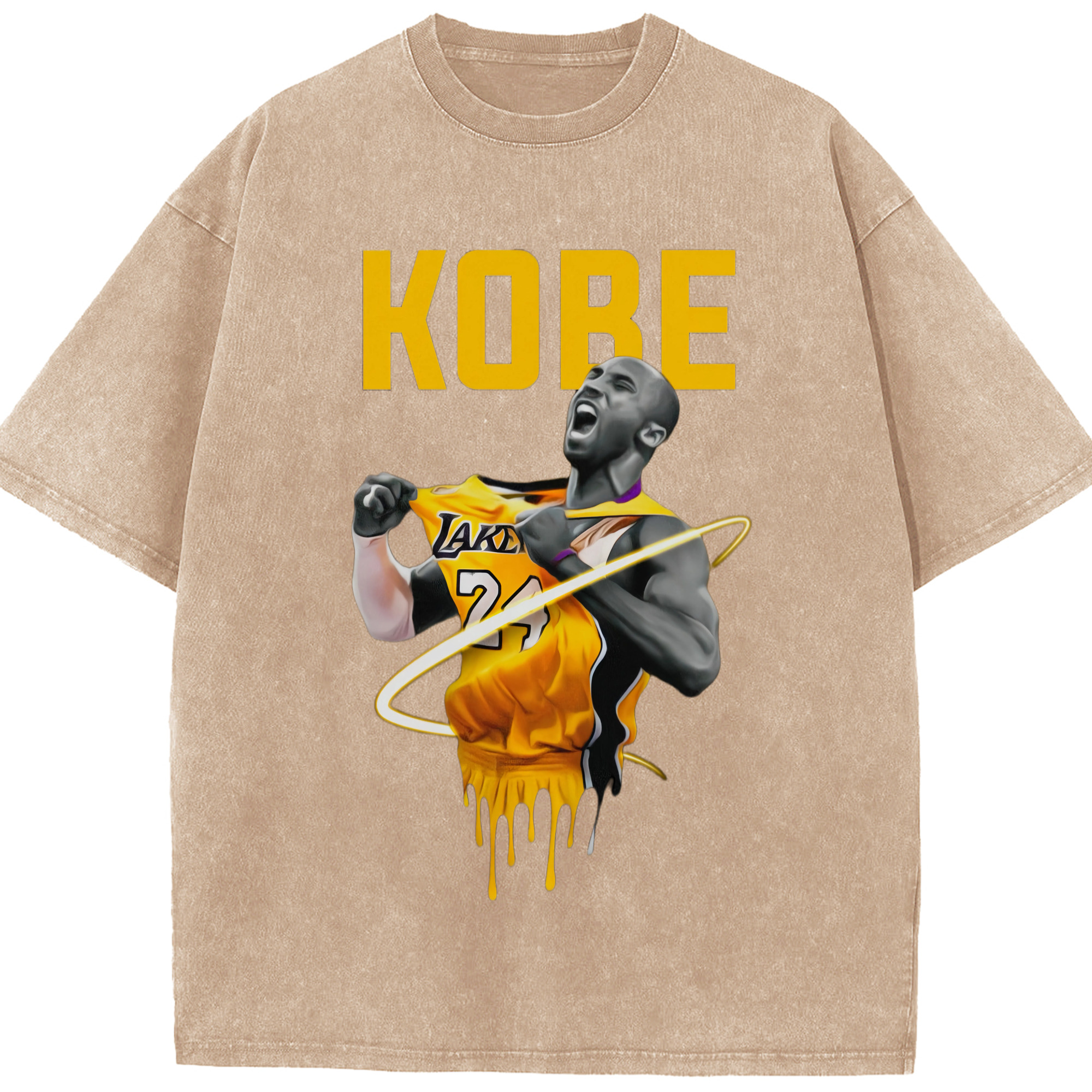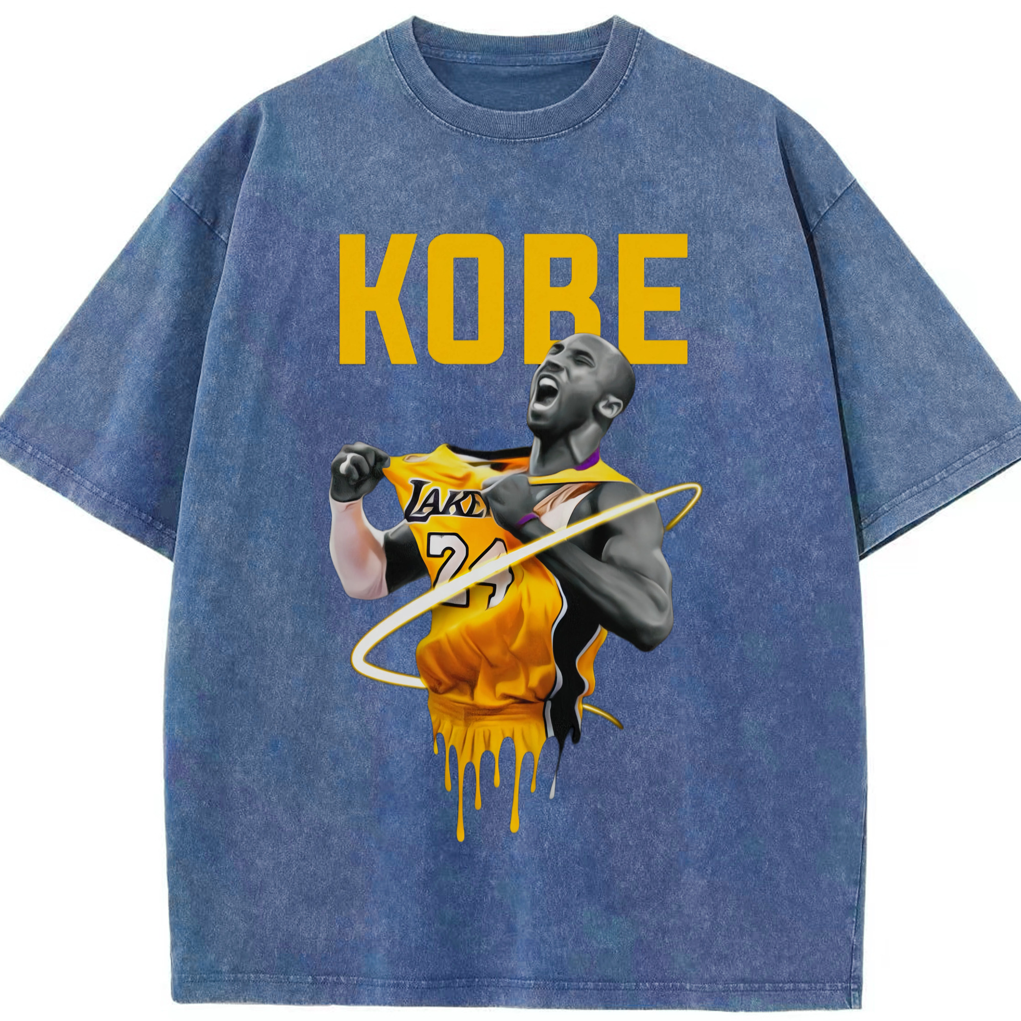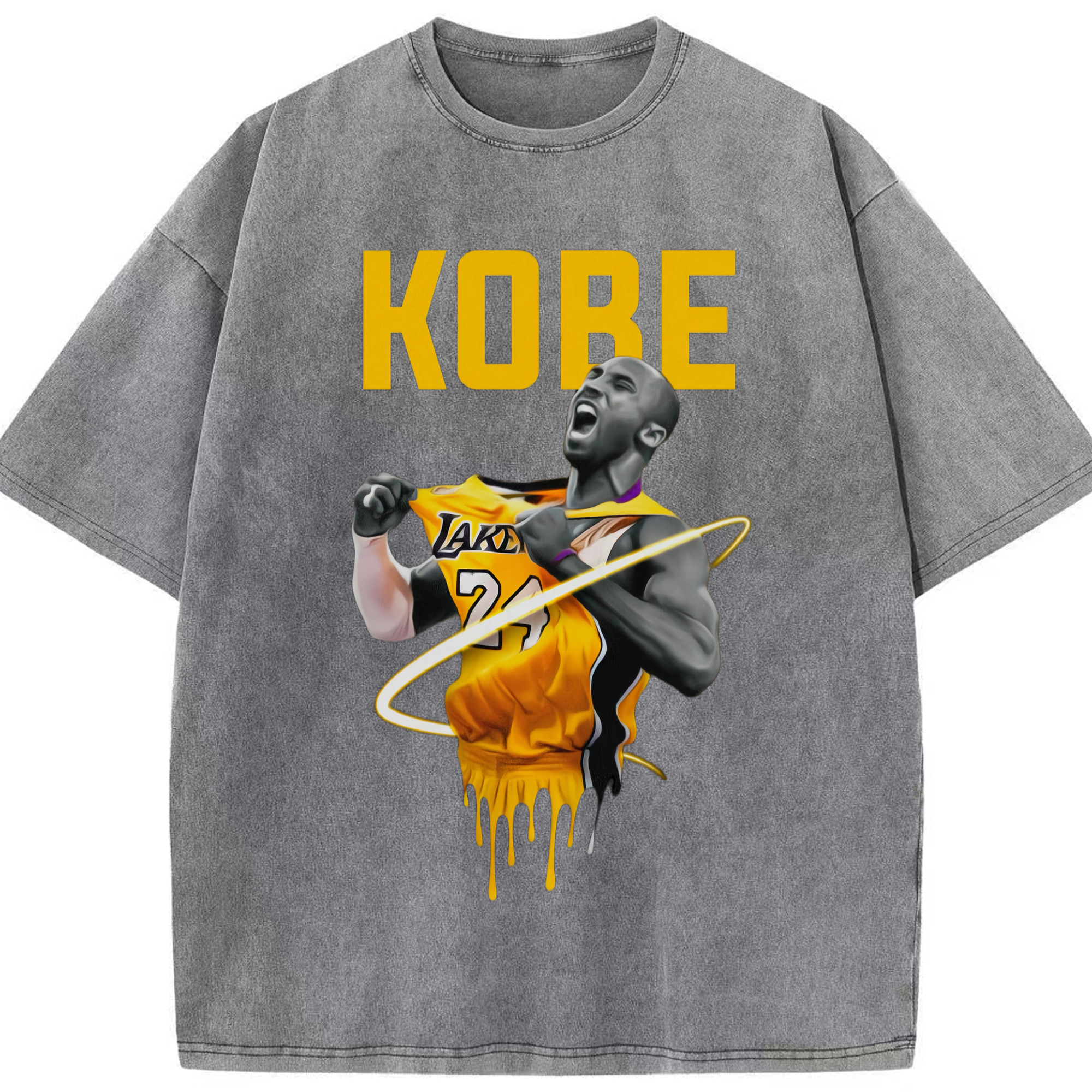 Lakers Kobe Bryant Pull the jersey Comic t-shirt - Washed Vintage Look 230g Cotton Oversized T-Shirt With Front Heat Transfer Print – Soft, Lightweight, Stylish Fit – Comfortable Casual Wear For Sports & Everyday Use