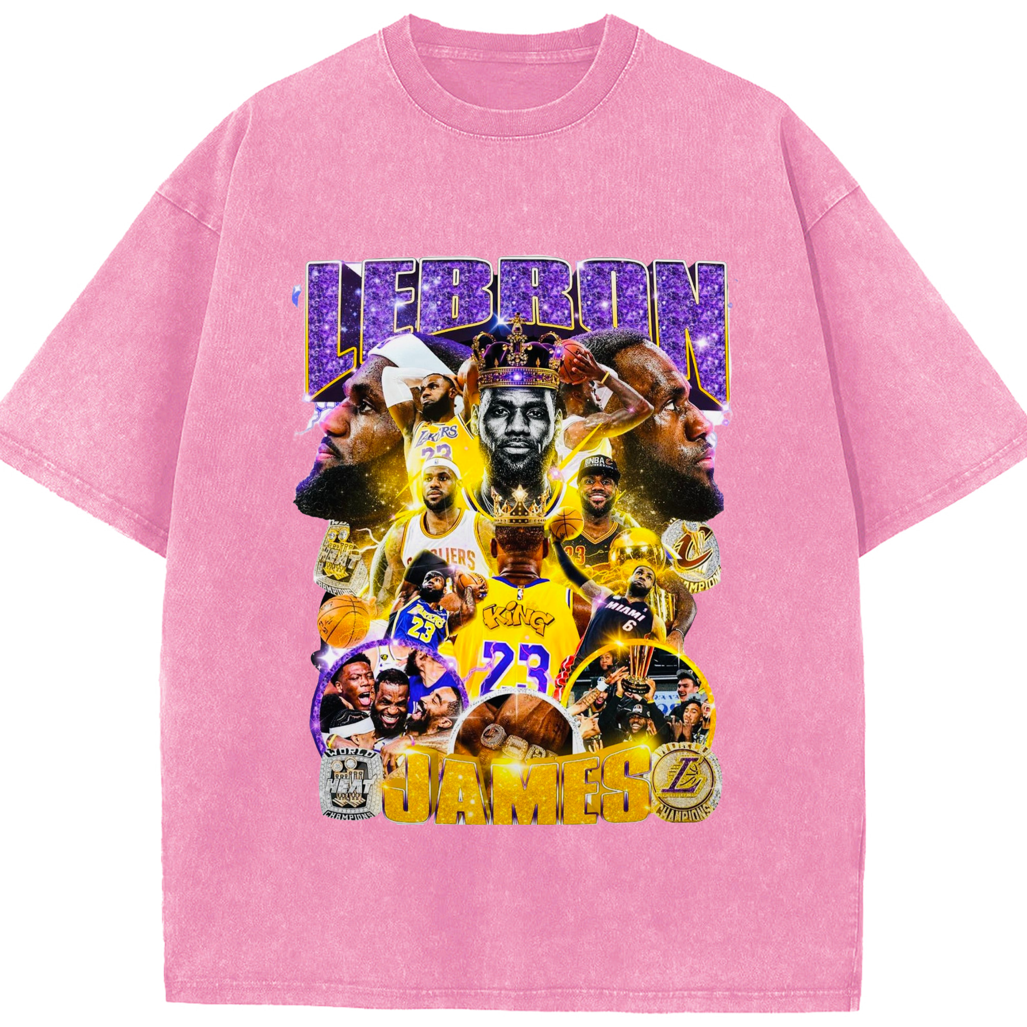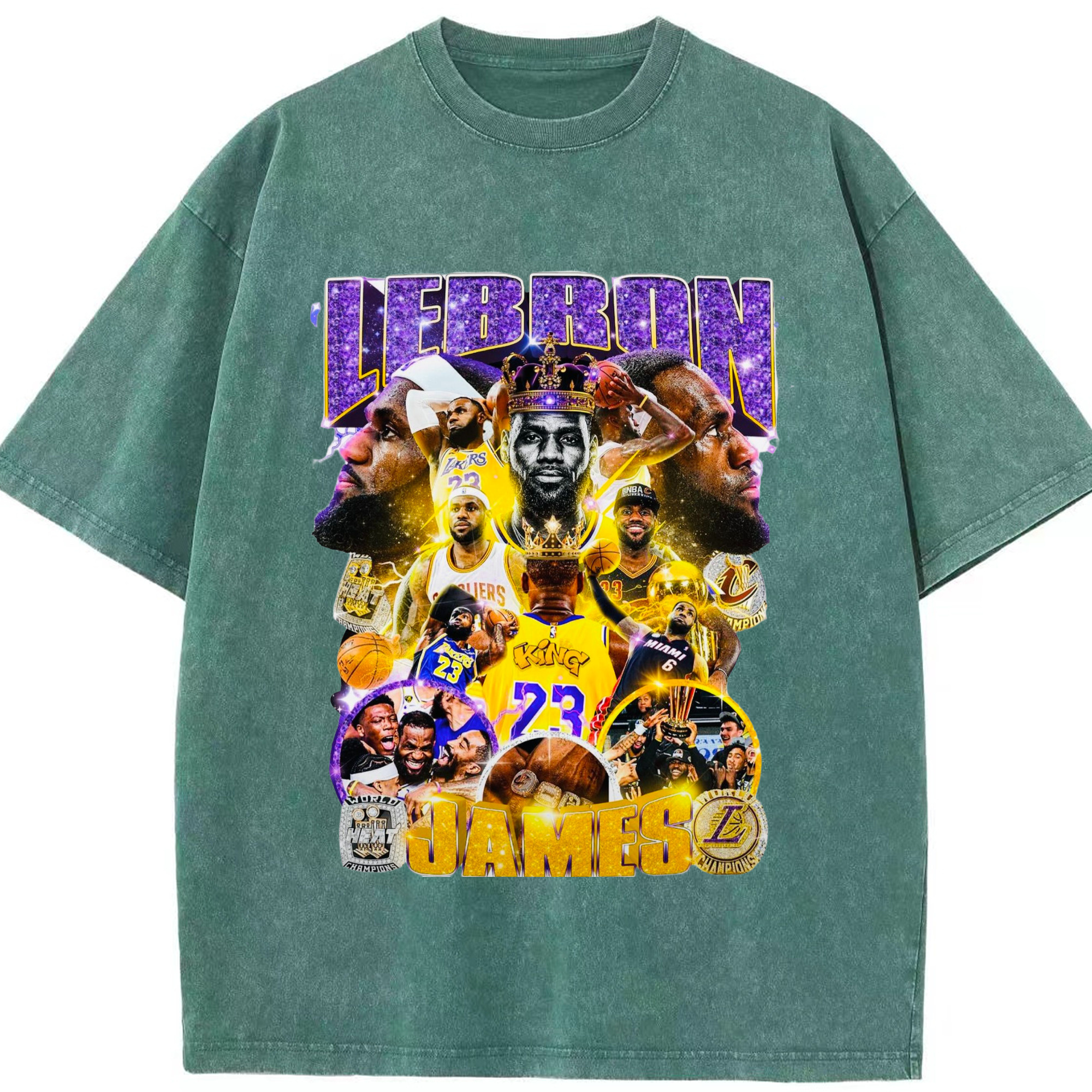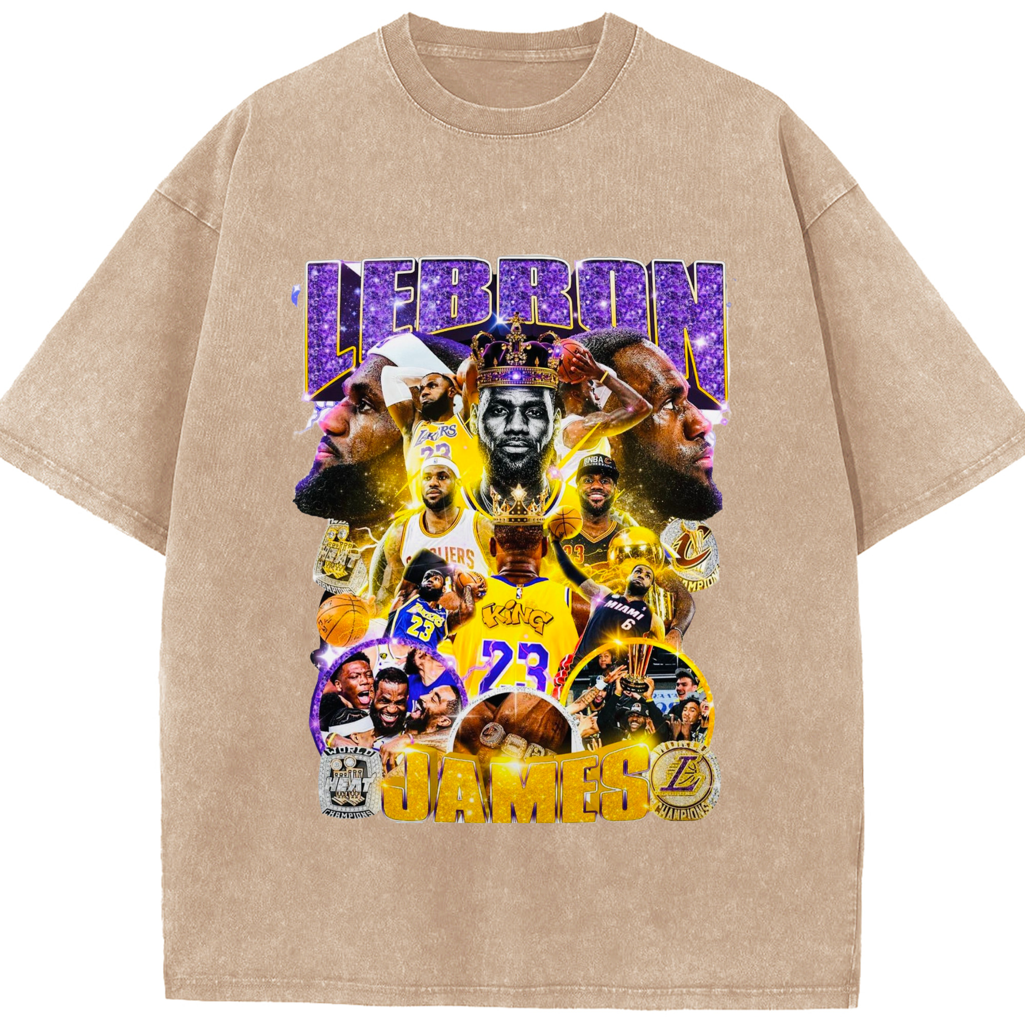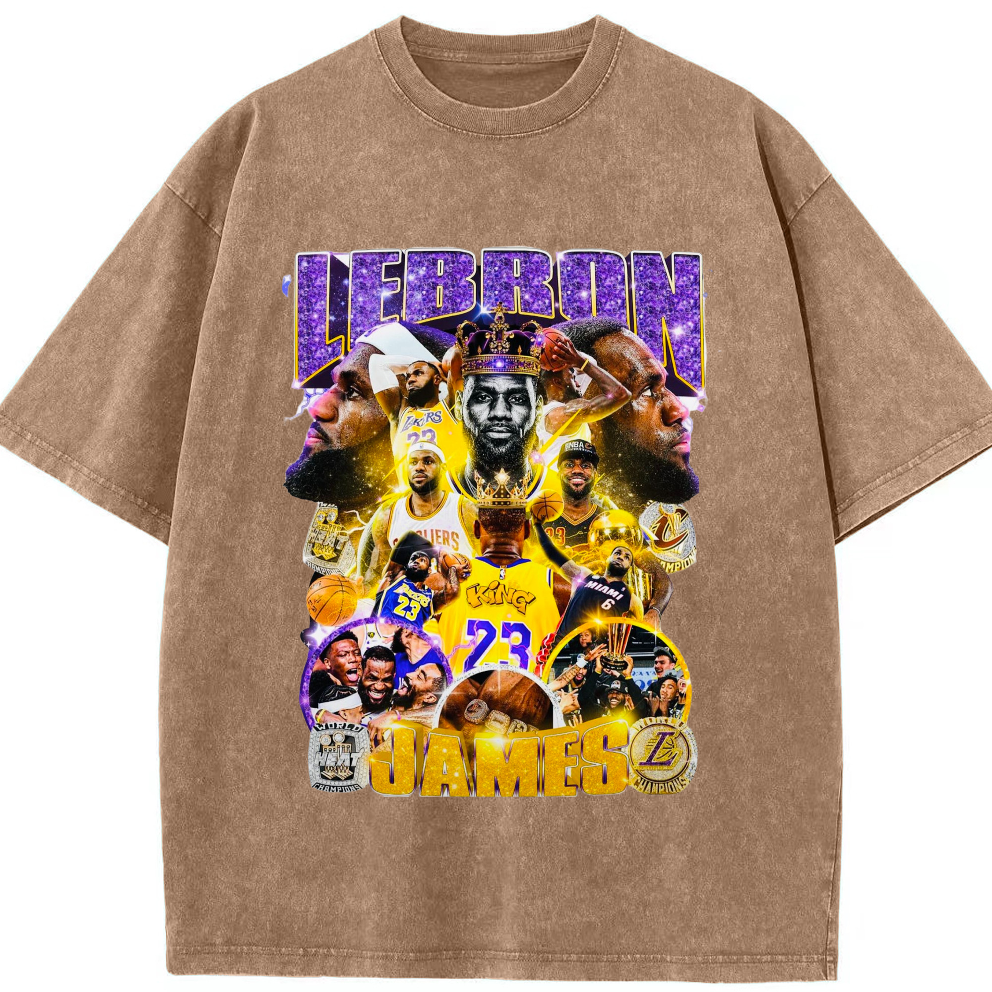Lakers lebron james #6 #23 collage graphic T‑Shirt - Washed Vintage Look 230g Cotton Oversized T-Shirt With Front Heat Transfer Print – Soft, Lightweight, Stylish Fit – Comfortable Casual Wear For Sports & Everyday Use
