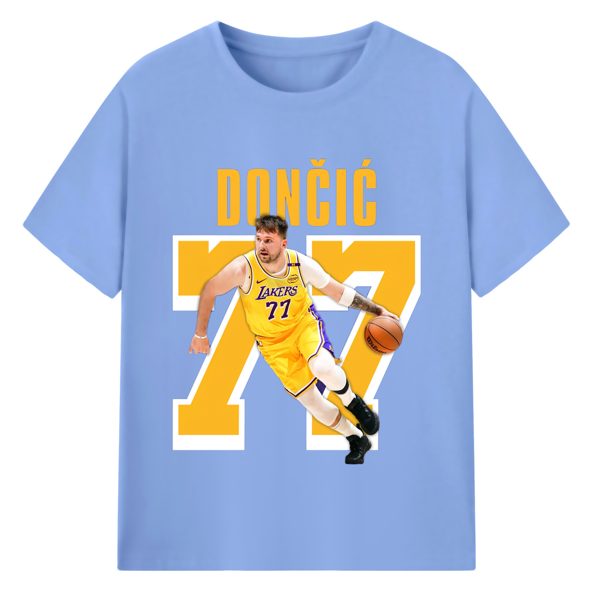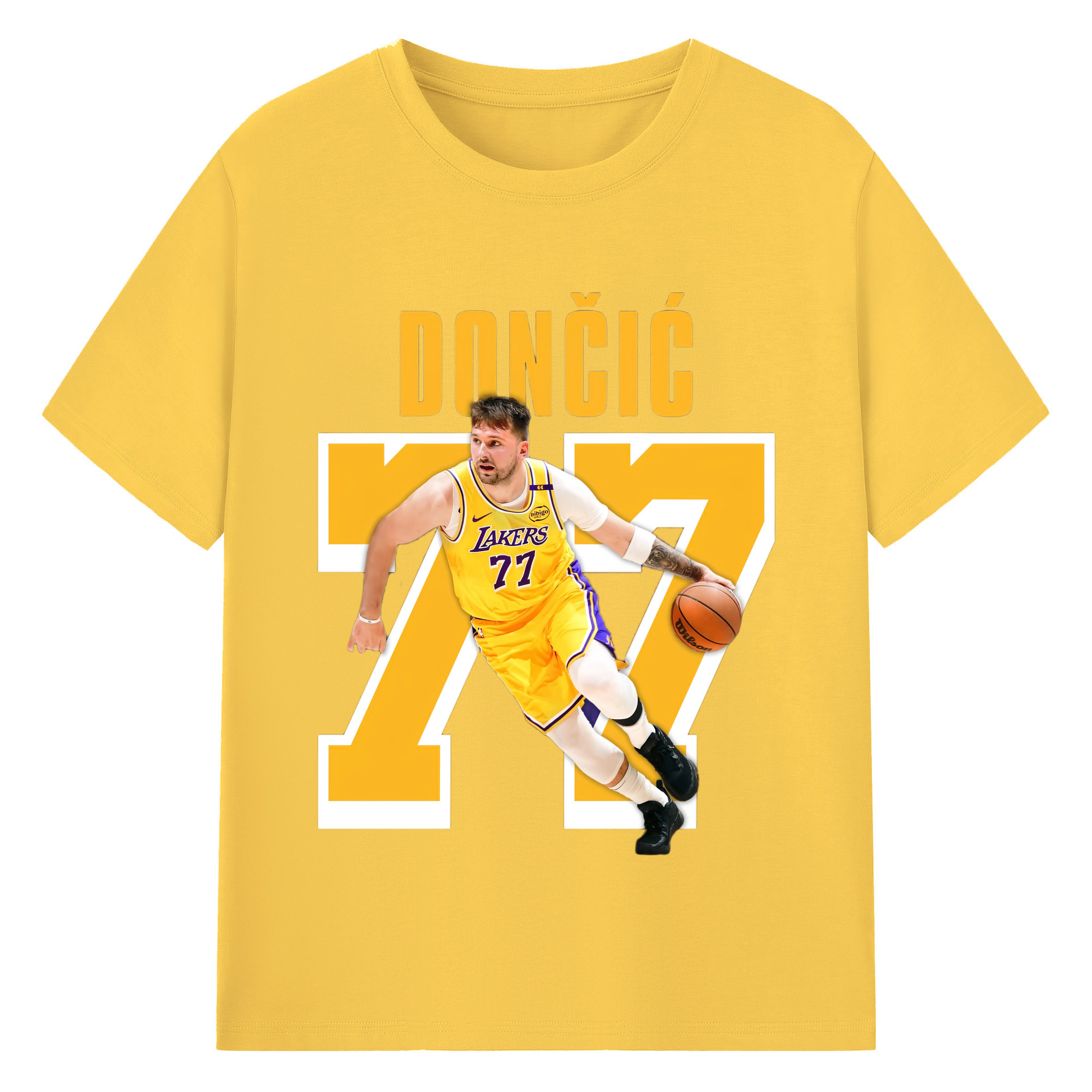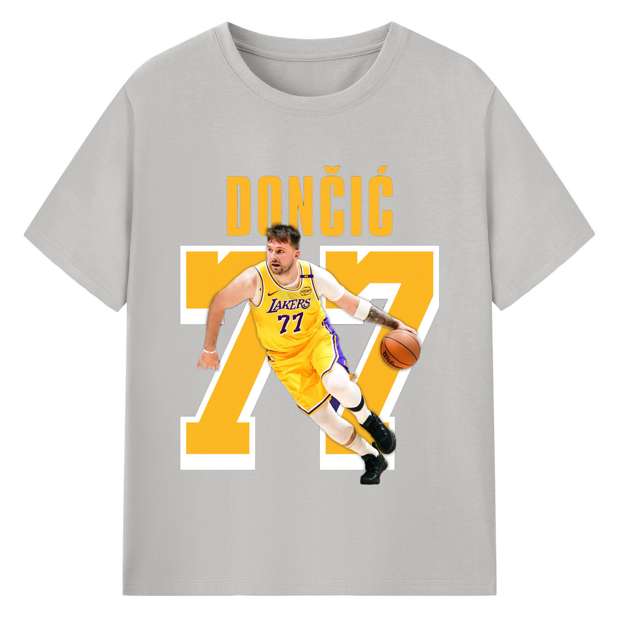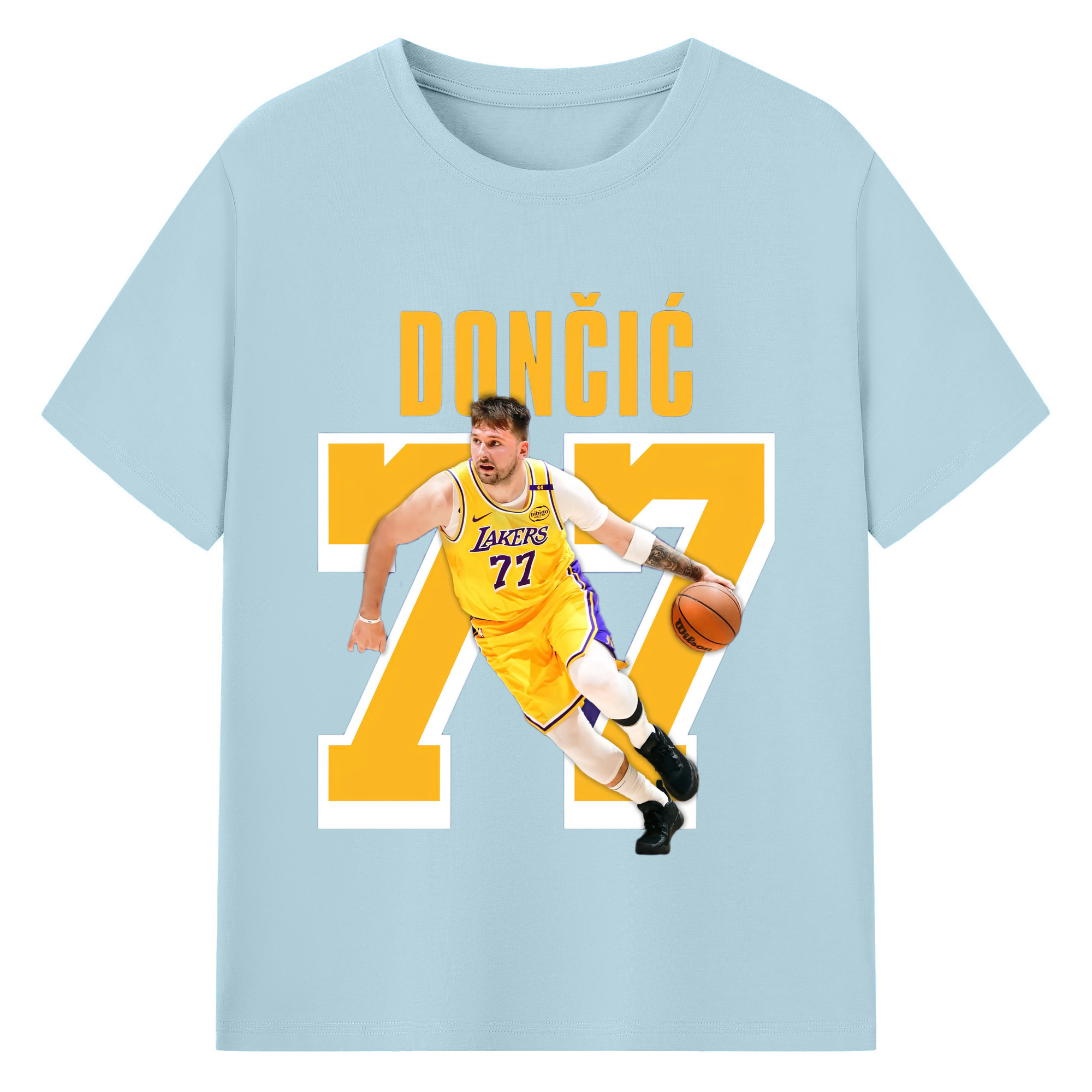 Lakers Luka Doncic #77 Shirt - 180g Cotton T-Shirt With Front Heat Transfer Print – Soft, Lightweight, Fitted Design – Comfortable Casual Wear For Sports & Everyday Use