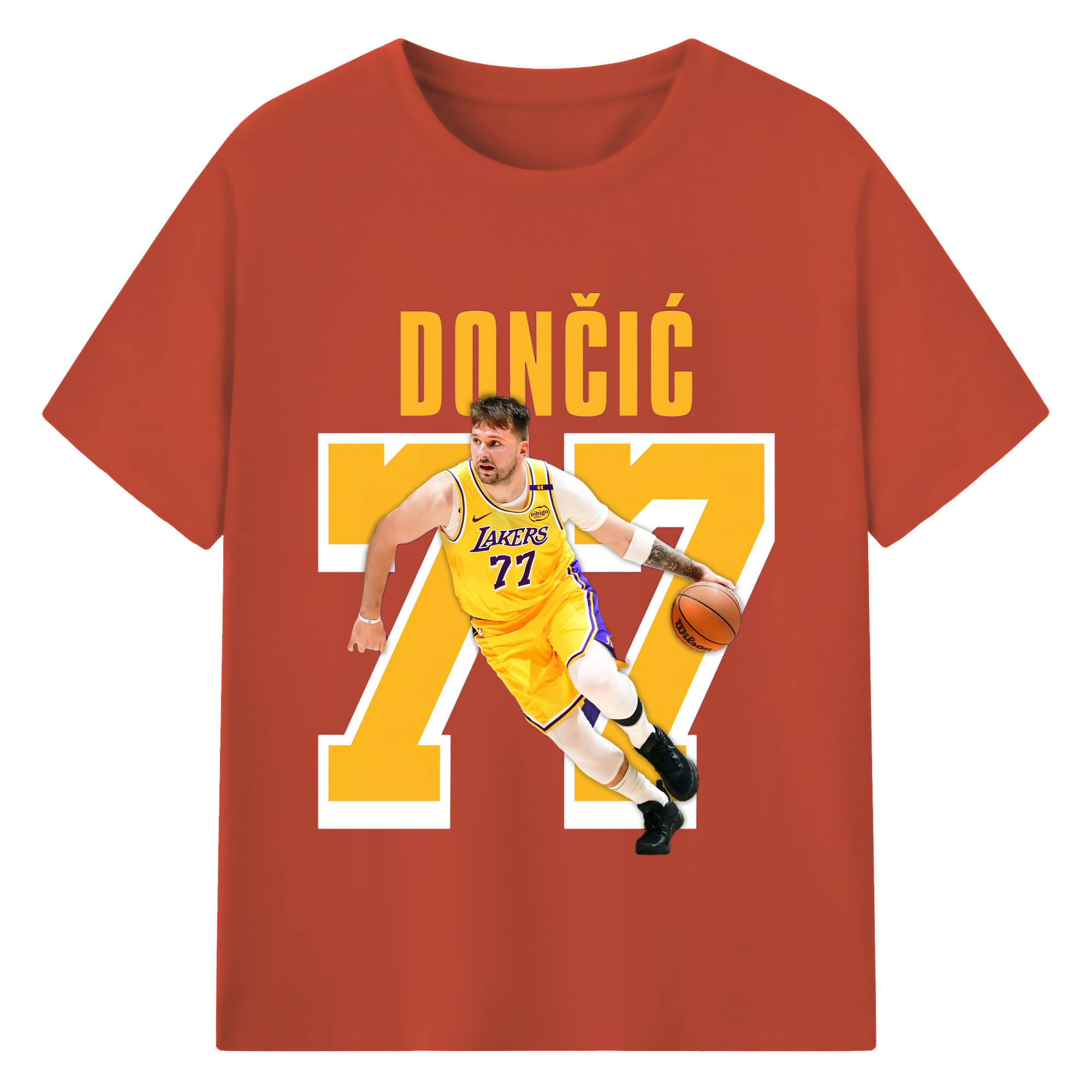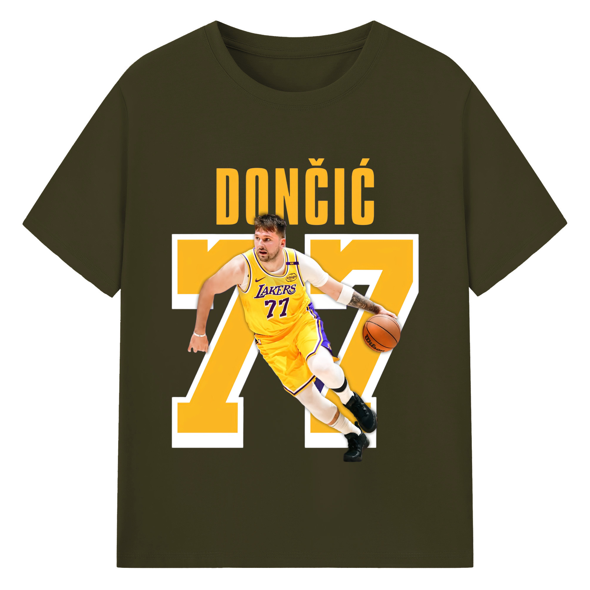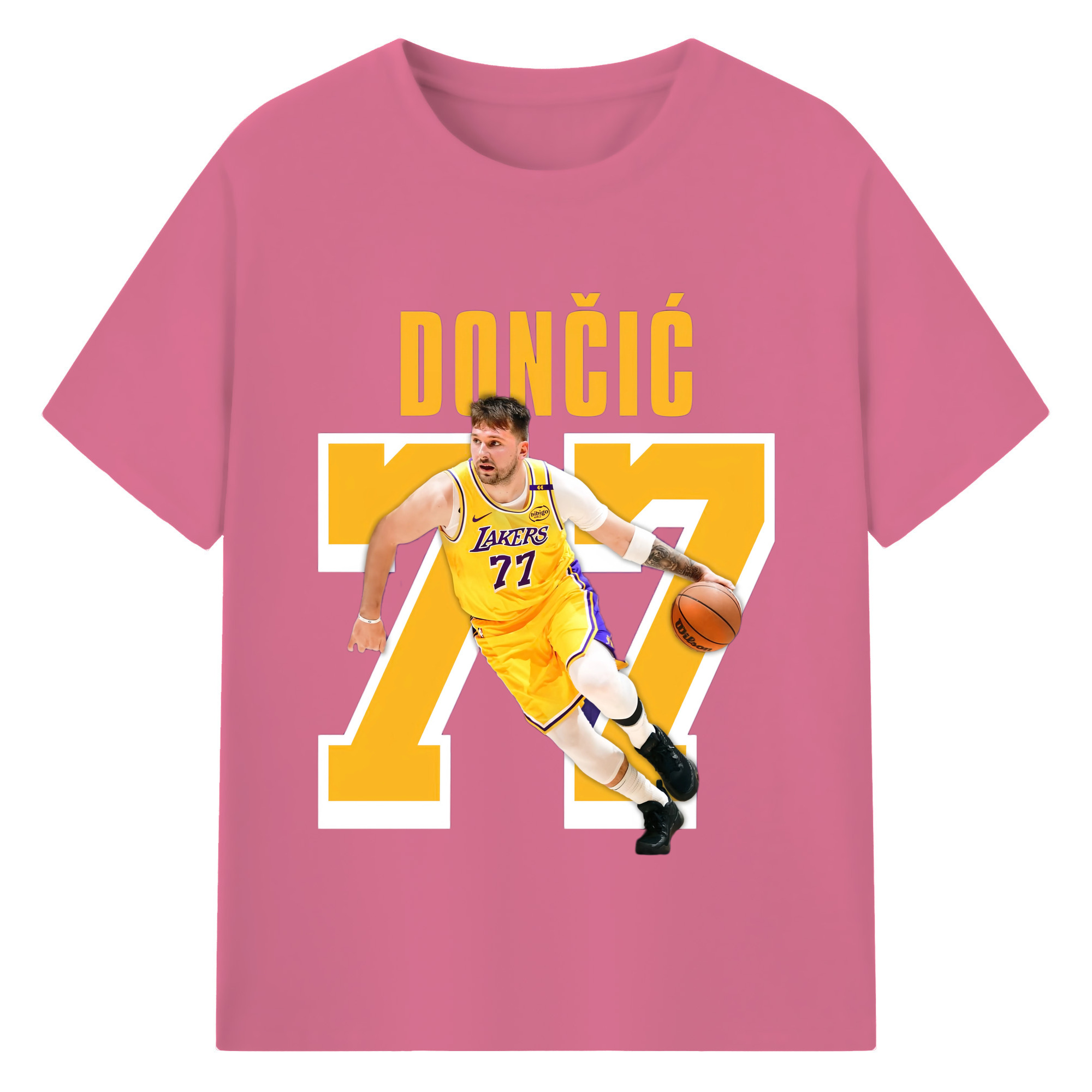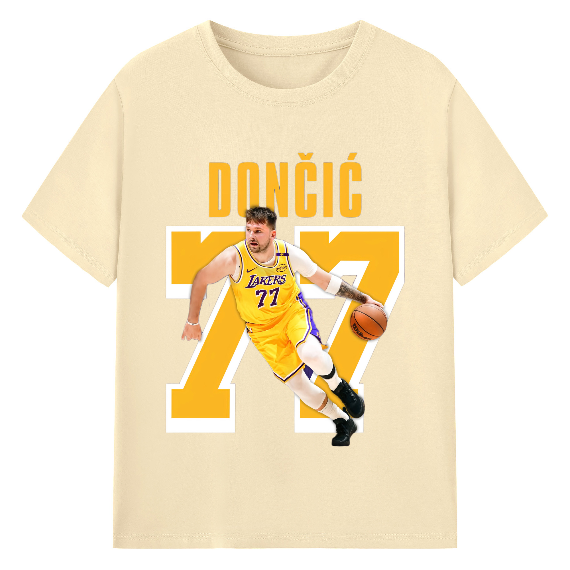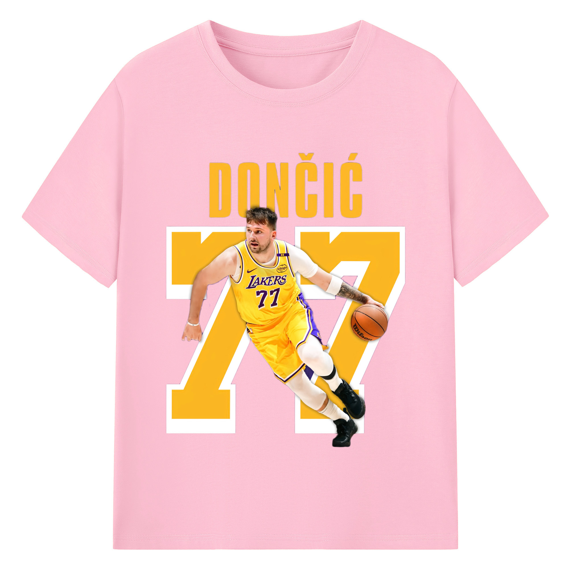 Lakers Luka Doncic #77 Shirt - 180g Cotton T-Shirt With Front Heat Transfer Print – Soft, Lightweight, Fitted Design – Comfortable Casual Wear For Sports & Everyday Use