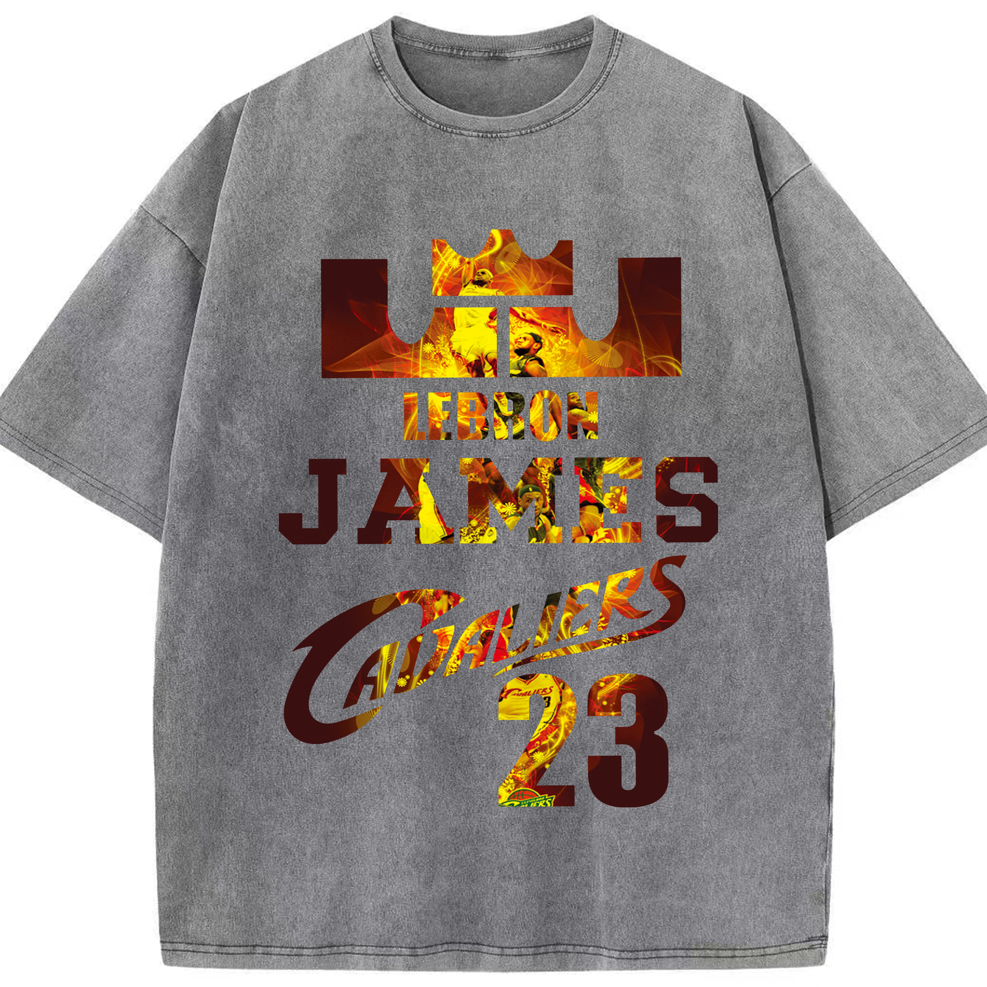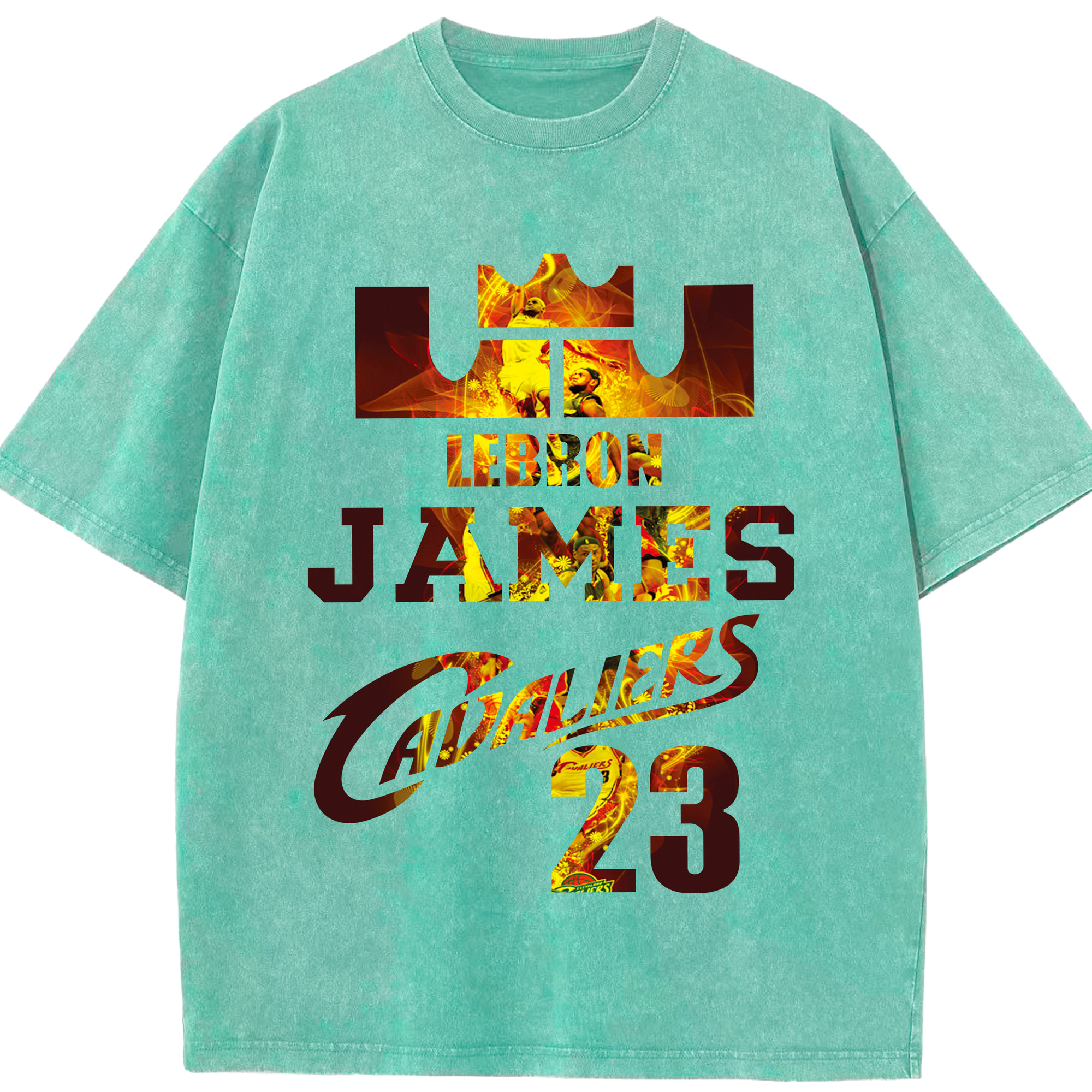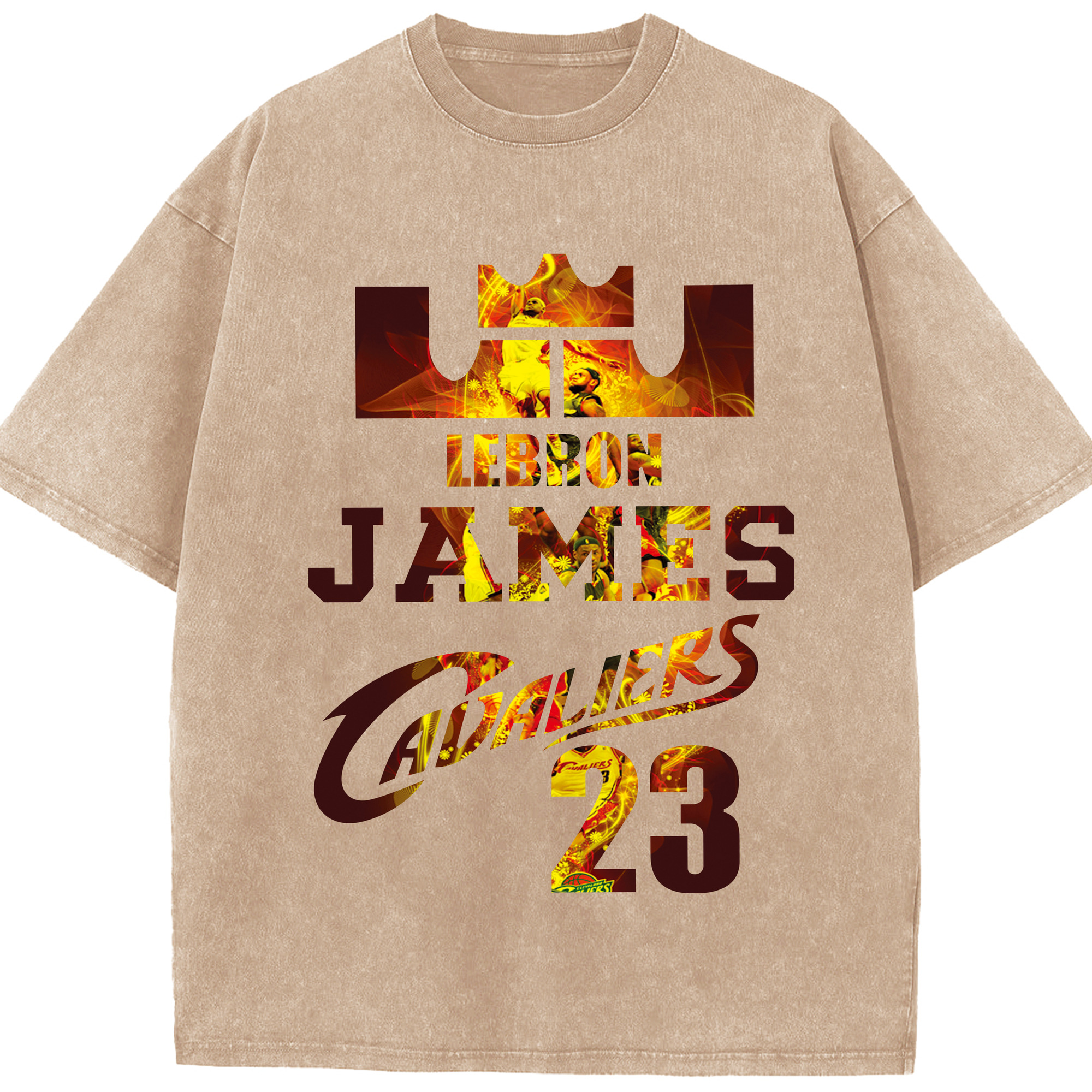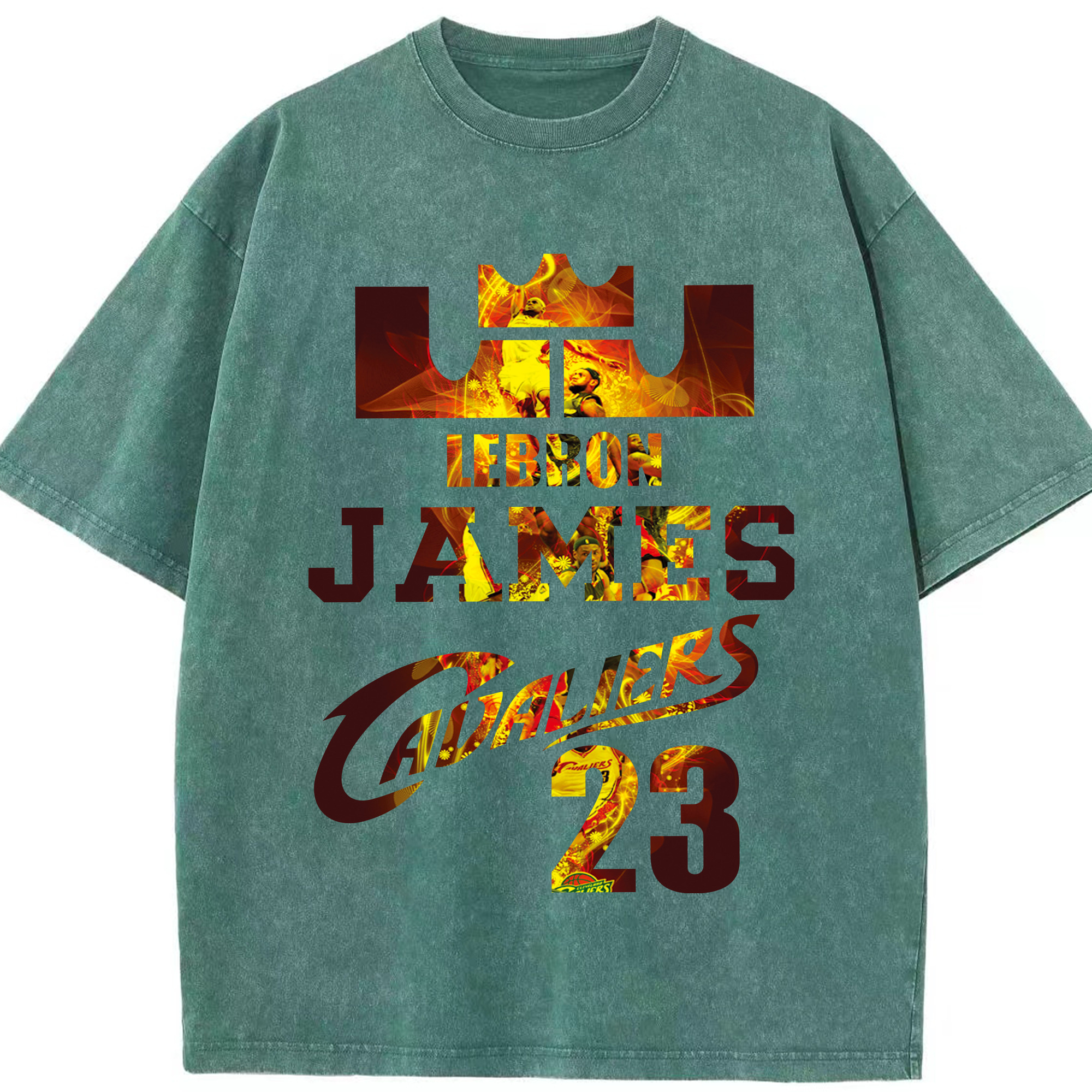 LeBron James #23 cavaliers logo t-shirt - Washed Vintage Look 230g Cotton Oversized T-Shirt With Front Heat Transfer Print – Soft, Lightweight, Stylish Fit – Comfortable Casual Wear For Sports & Everyday Use