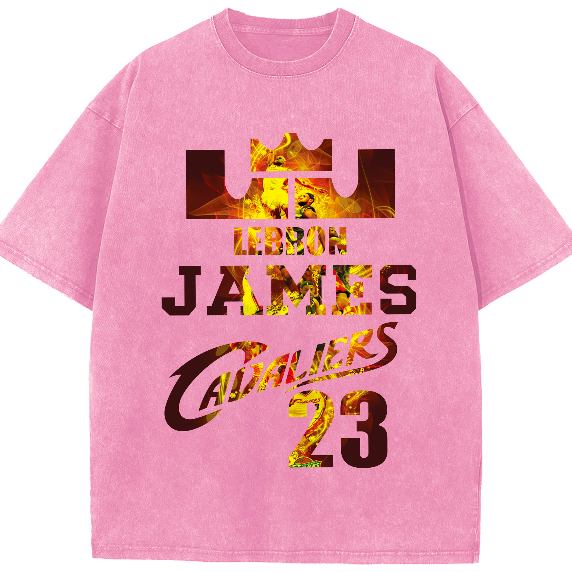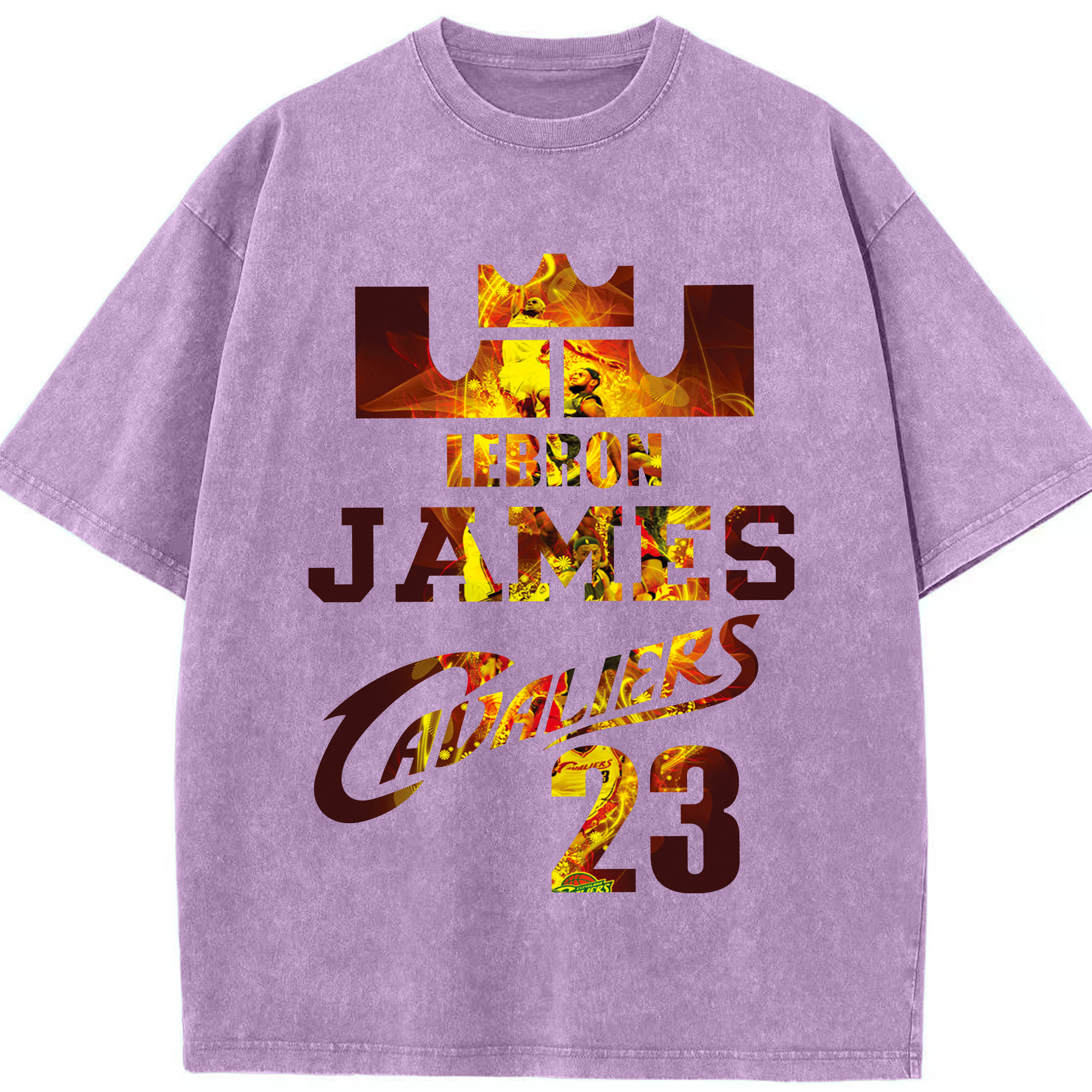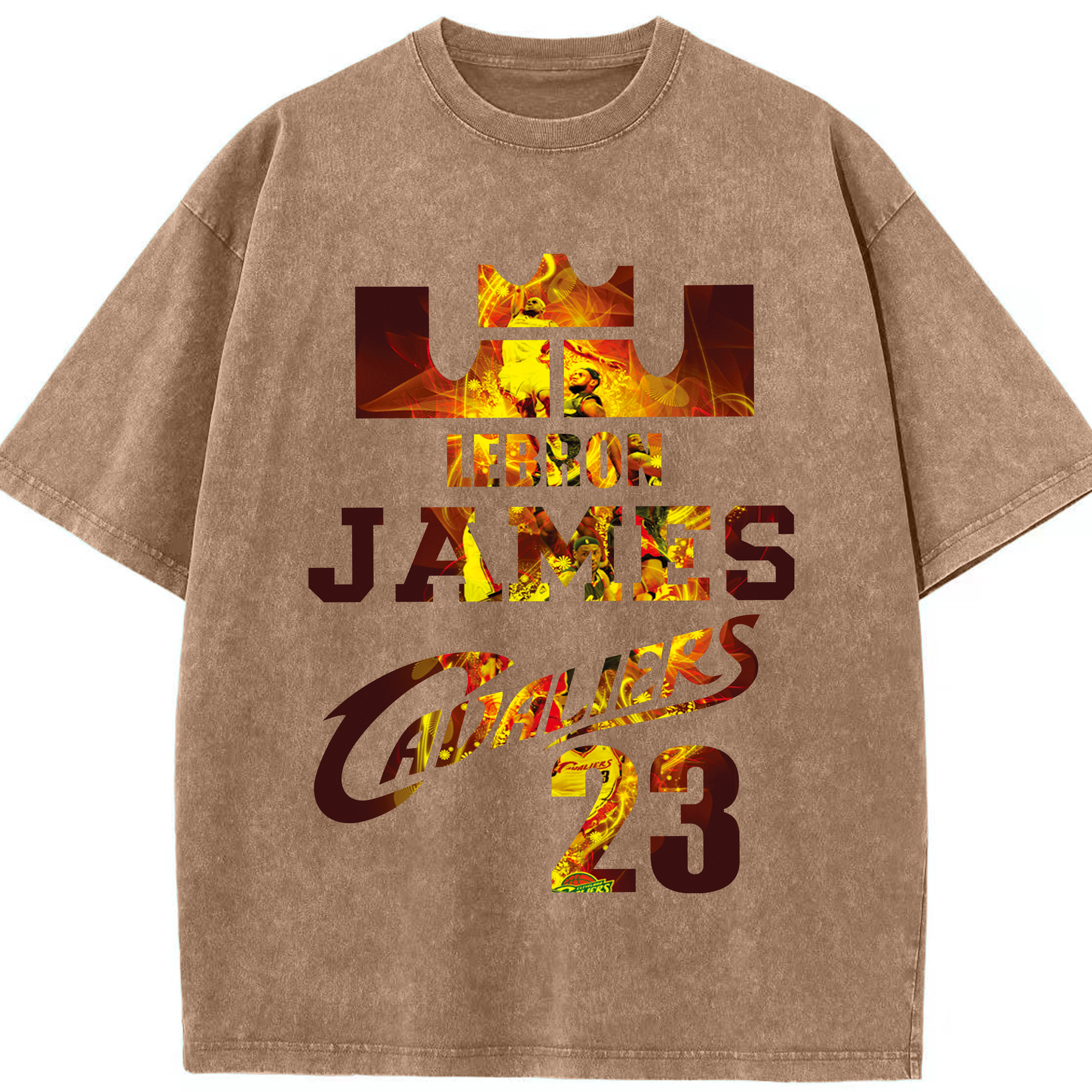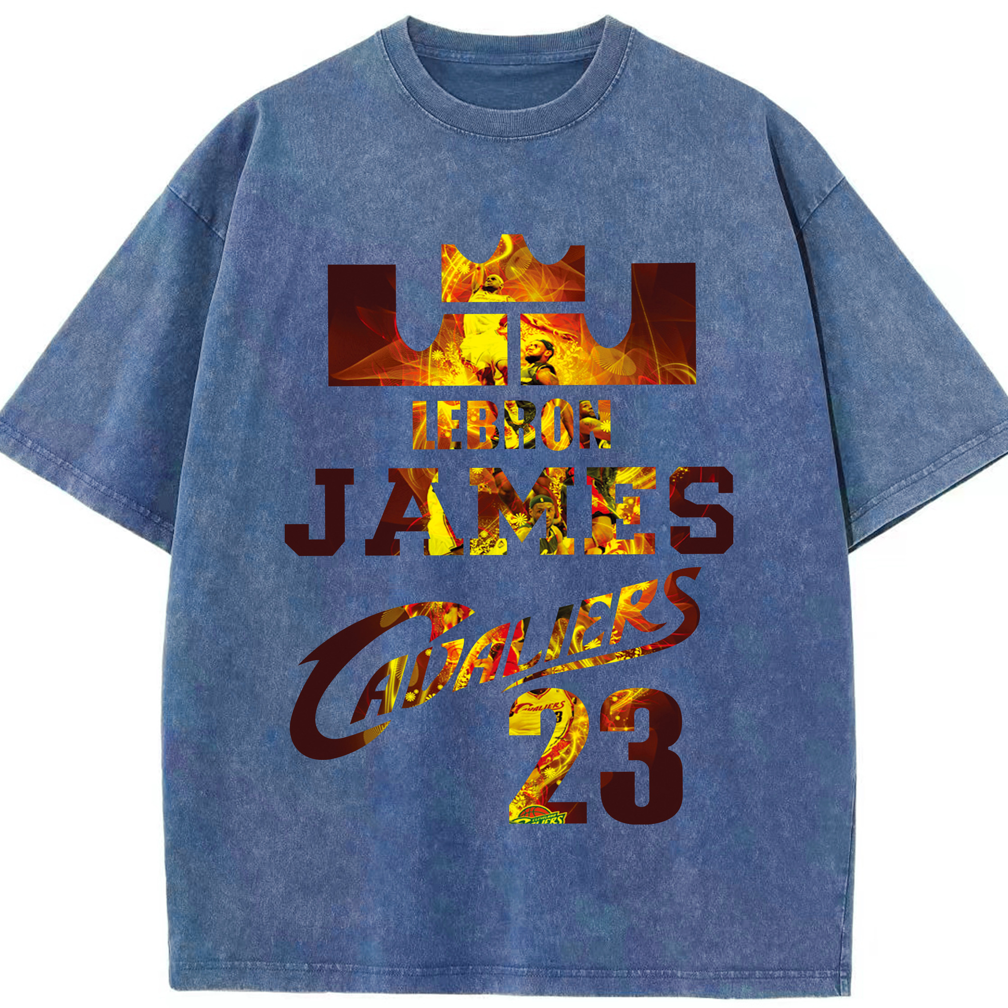 LeBron James #23 cavaliers logo t-shirt - Washed Vintage Look 230g Cotton Oversized T-Shirt With Front Heat Transfer Print – Soft, Lightweight, Stylish Fit – Comfortable Casual Wear For Sports & Everyday Use