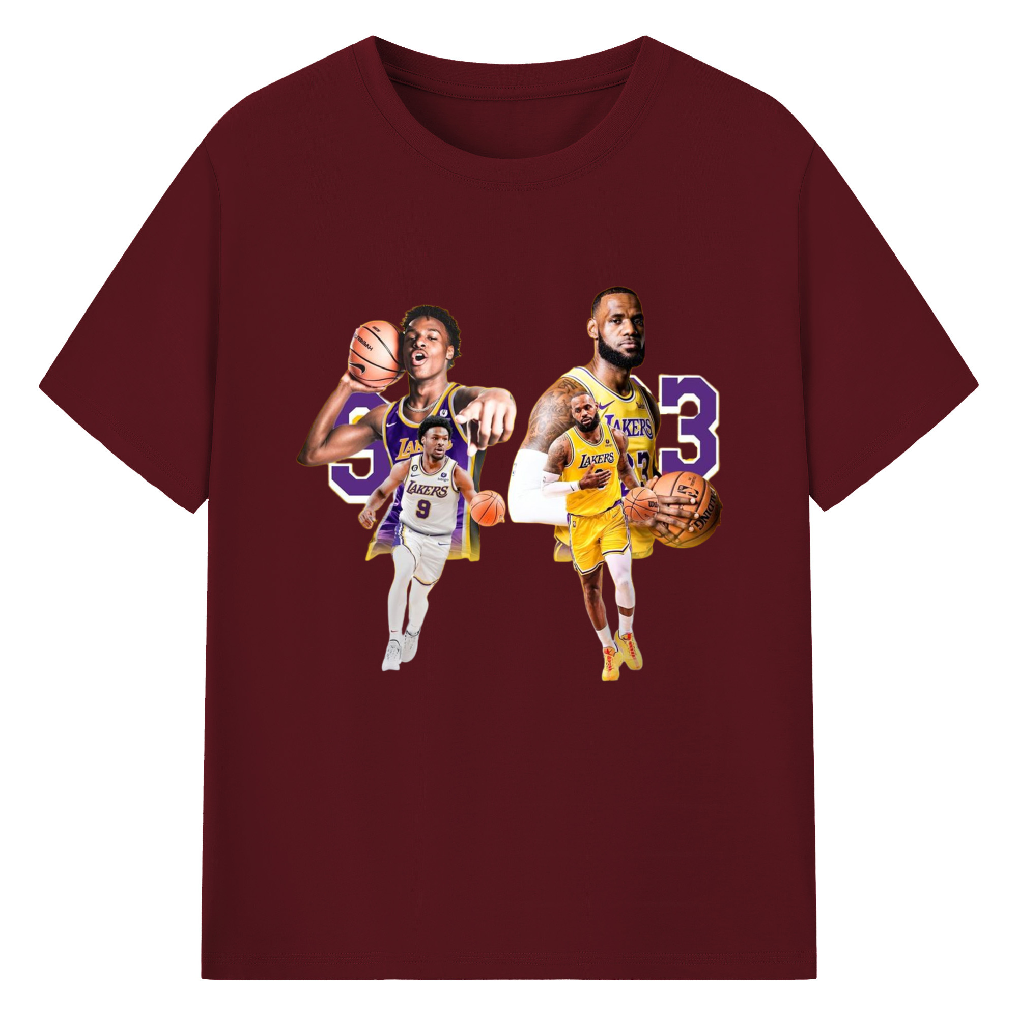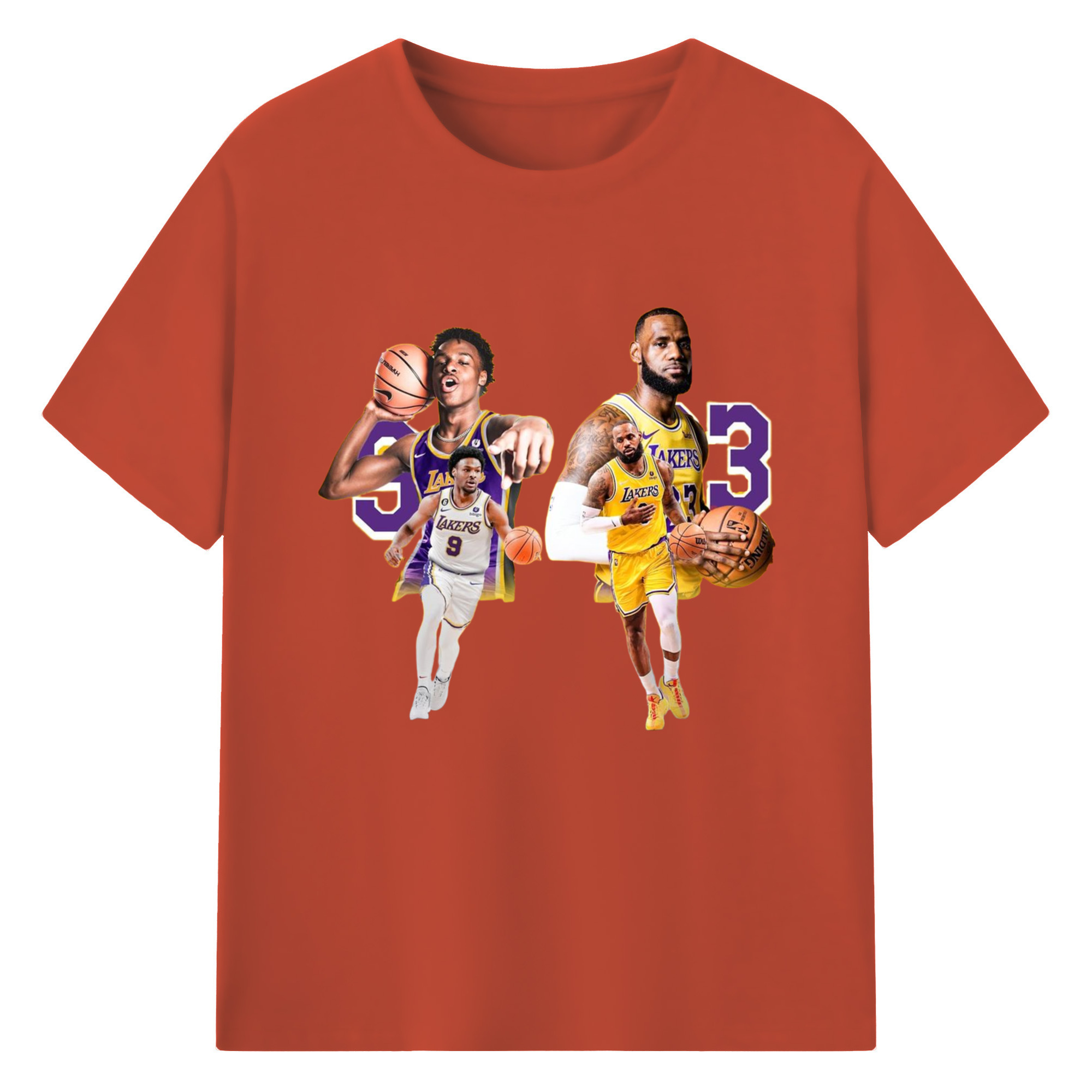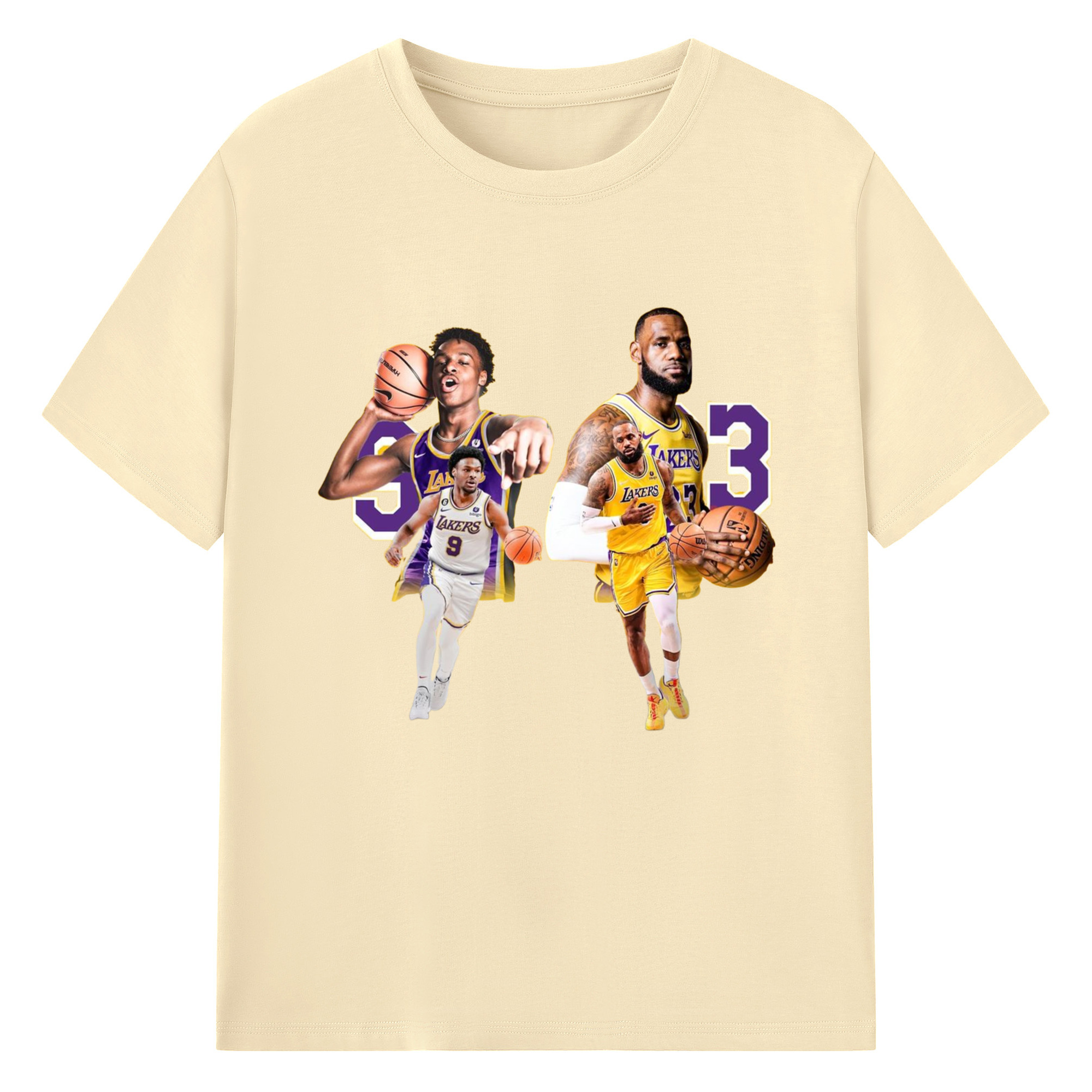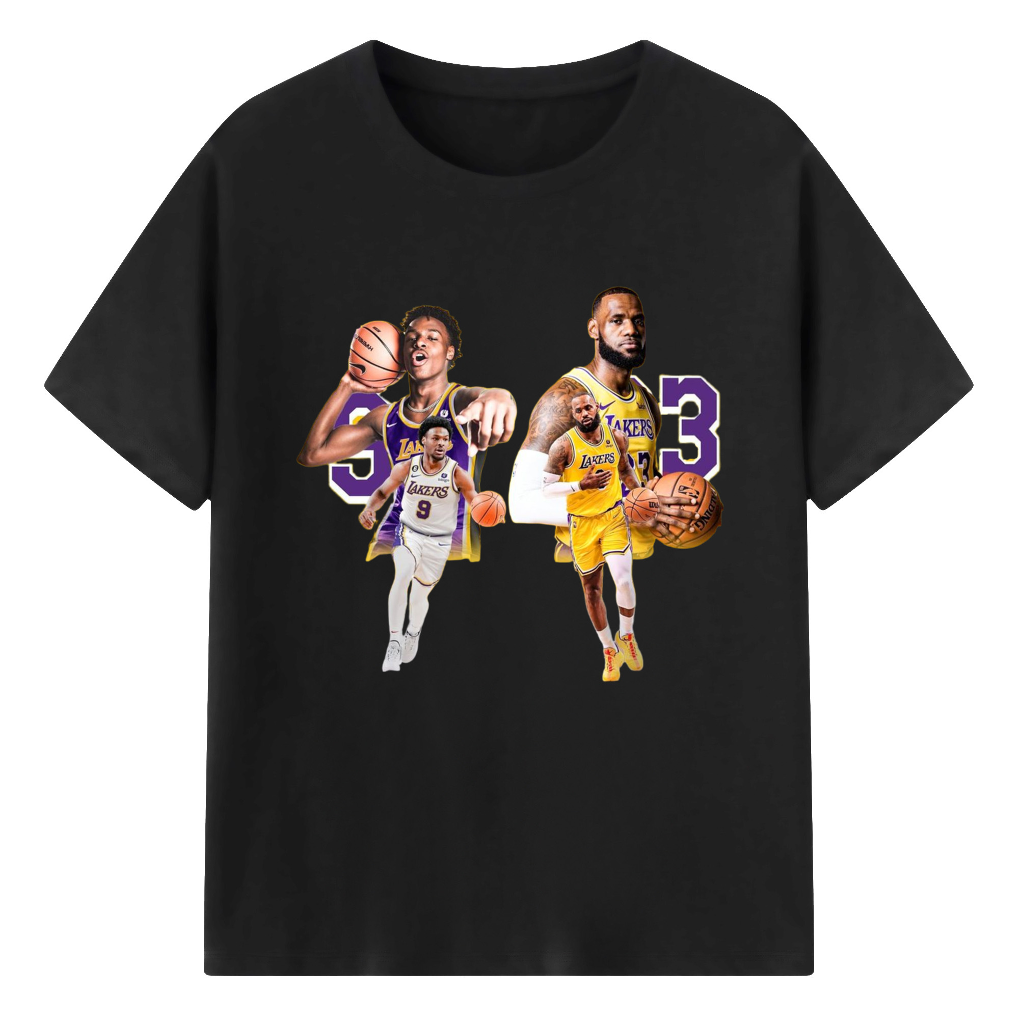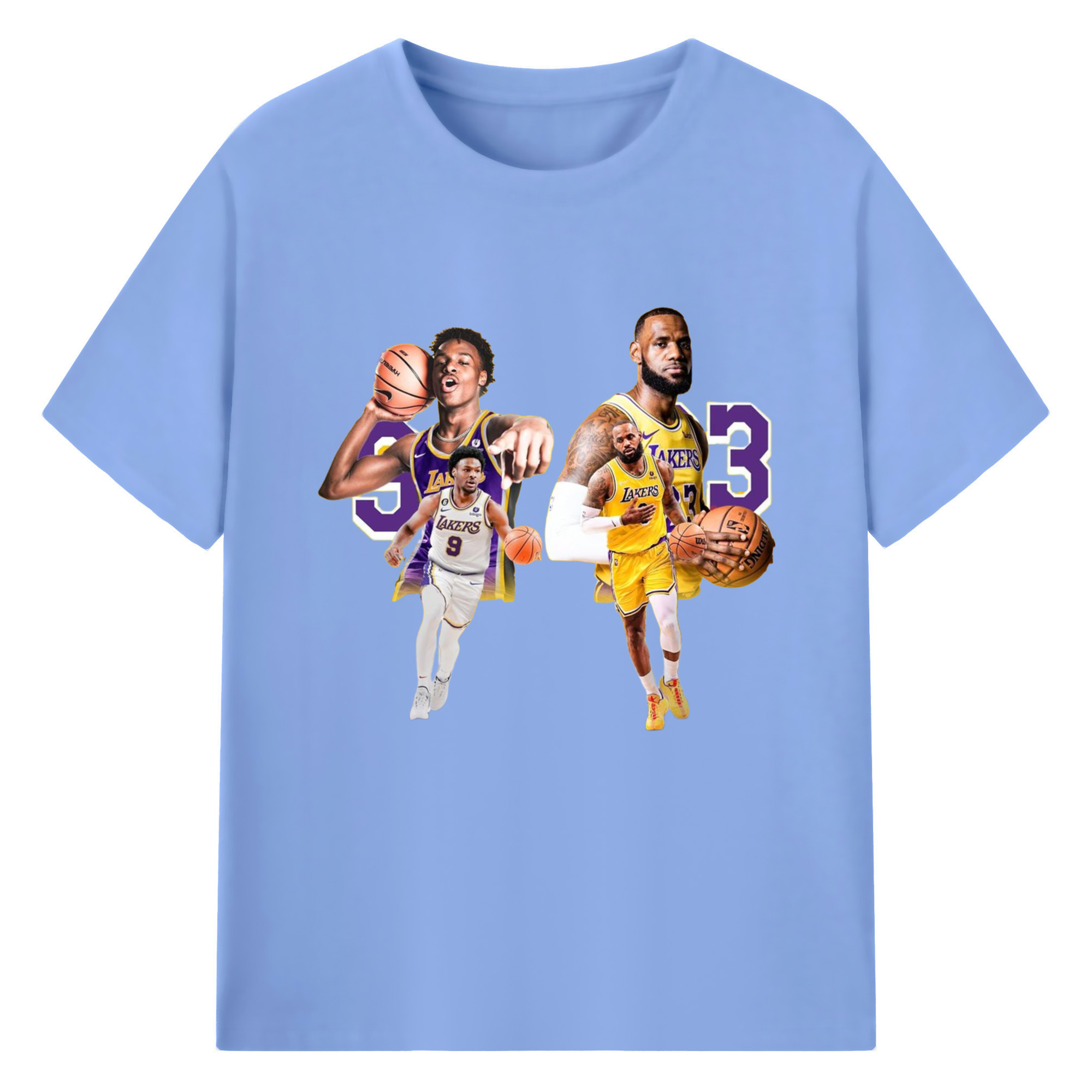 Lebron James and Bronny James Lakers ball control T-Shirt - 180g Cotton T-Shirt With Front Heat Transfer Print – Soft, Lightweight, Fitted Design – Comfortable Casual Wear For Sports & Everyday Use