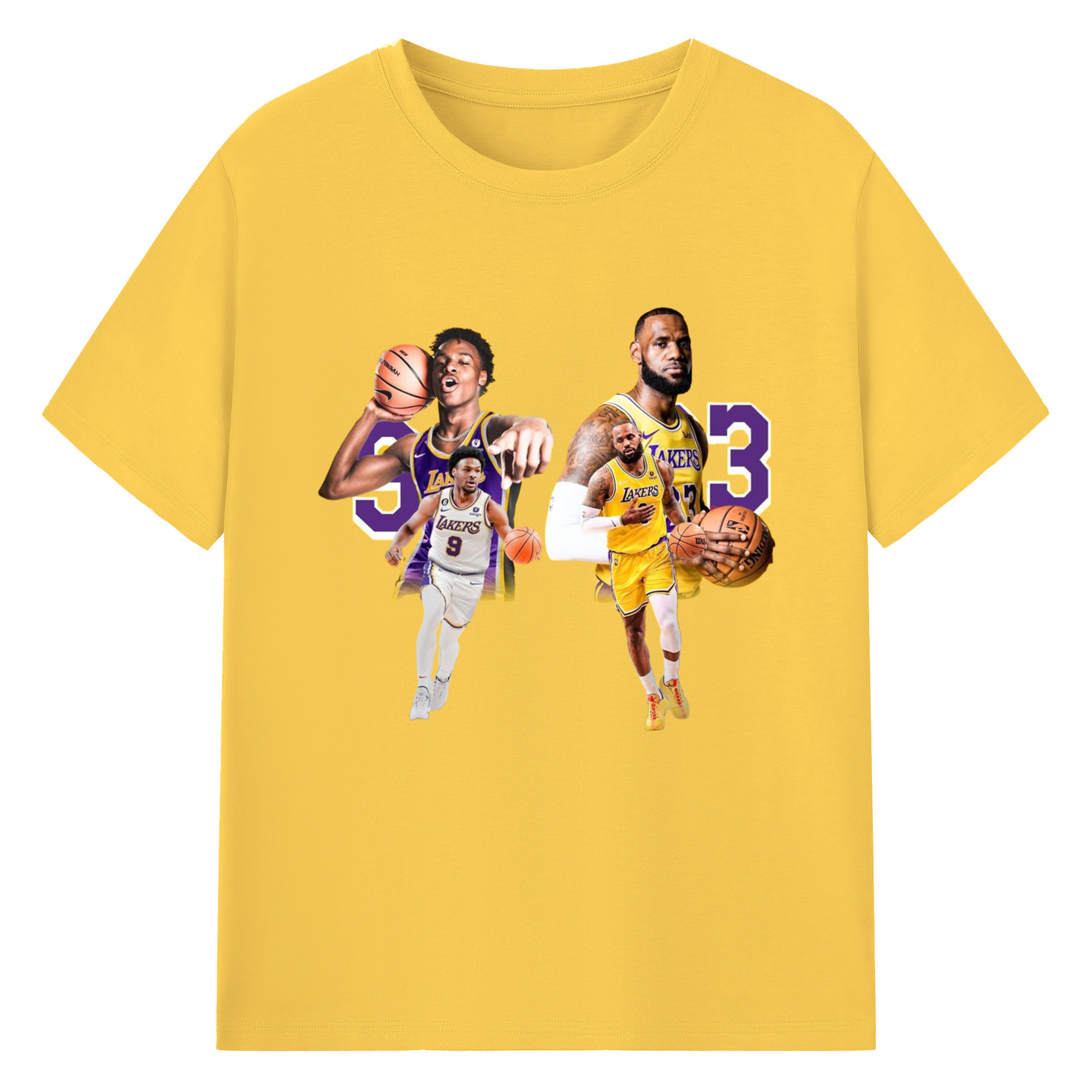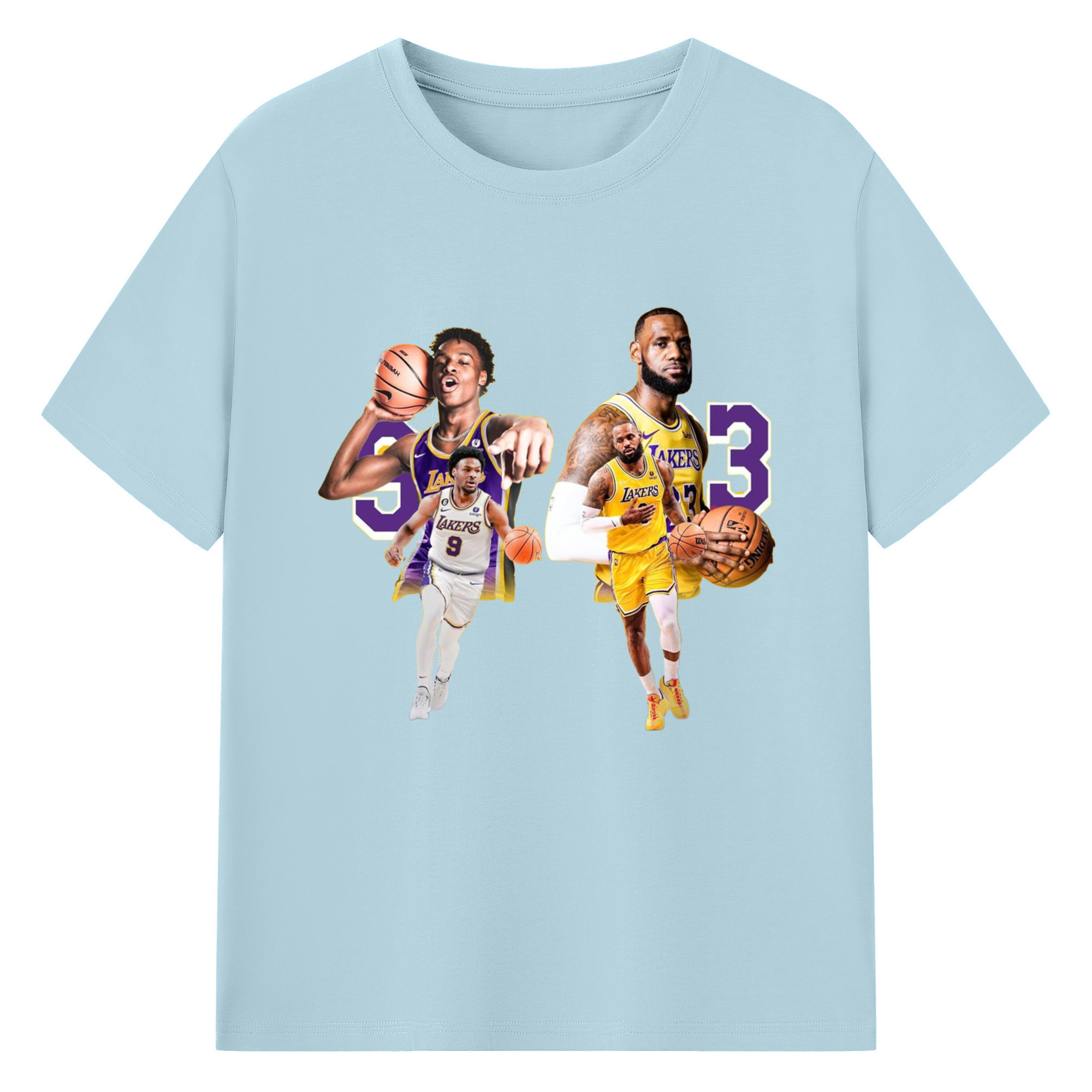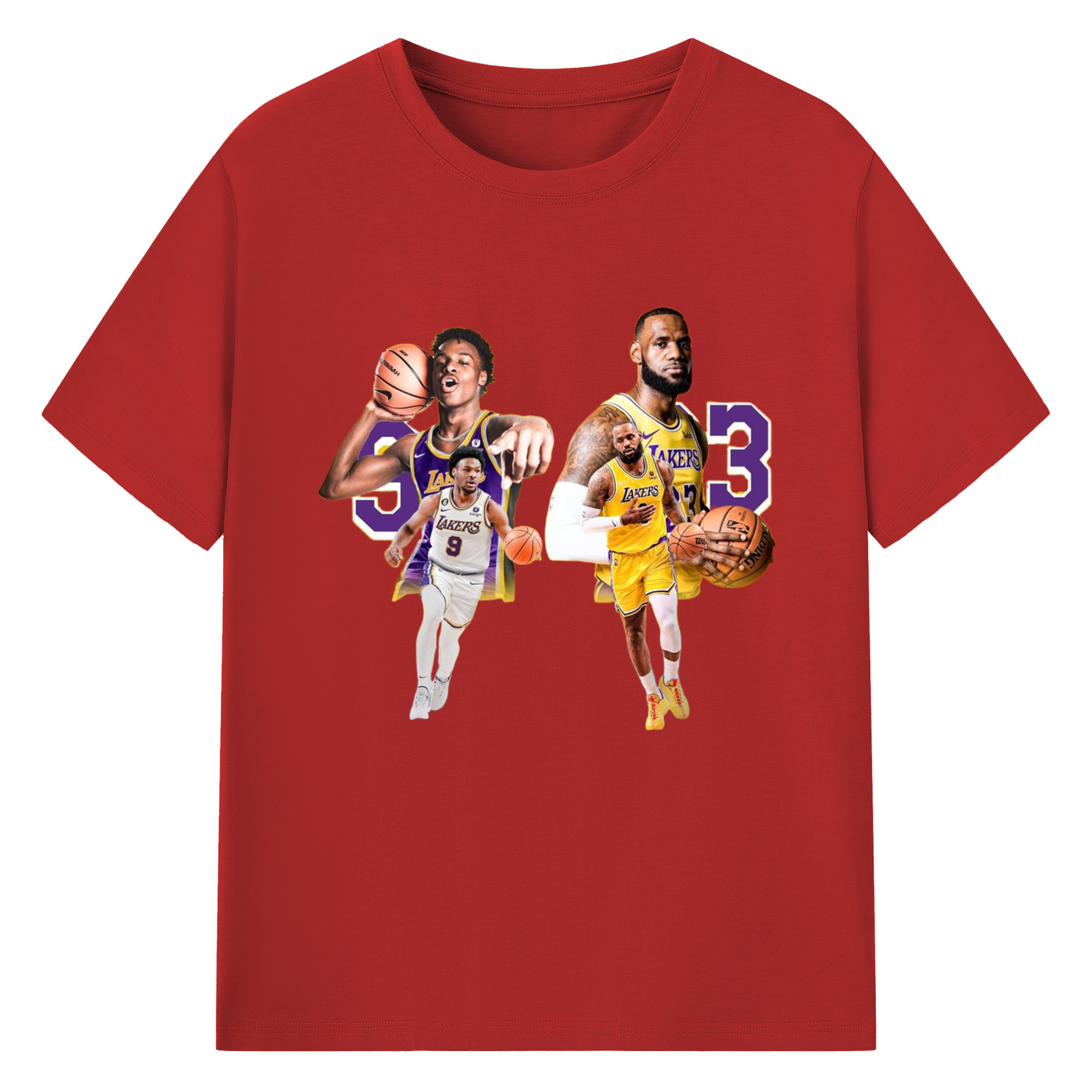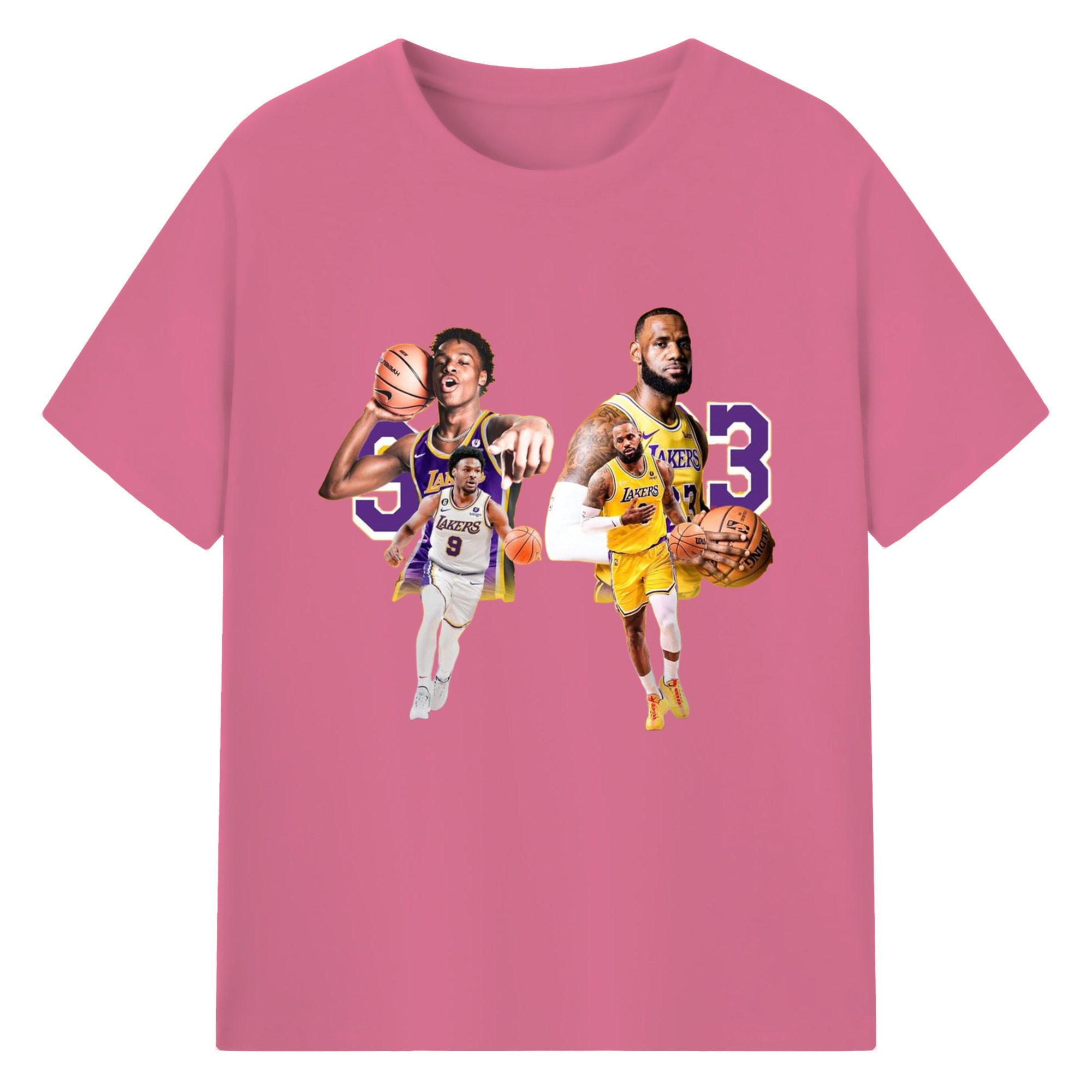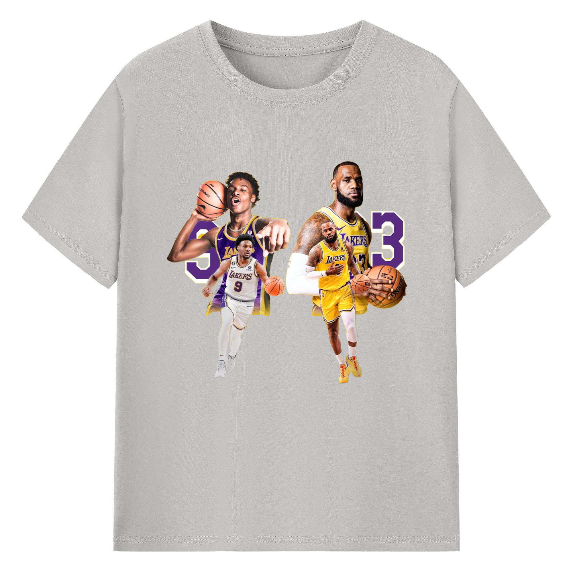 Lebron James and Bronny James Lakers ball control T-Shirt - 180g Cotton T-Shirt With Front Heat Transfer Print – Soft, Lightweight, Fitted Design – Comfortable Casual Wear For Sports & Everyday Use