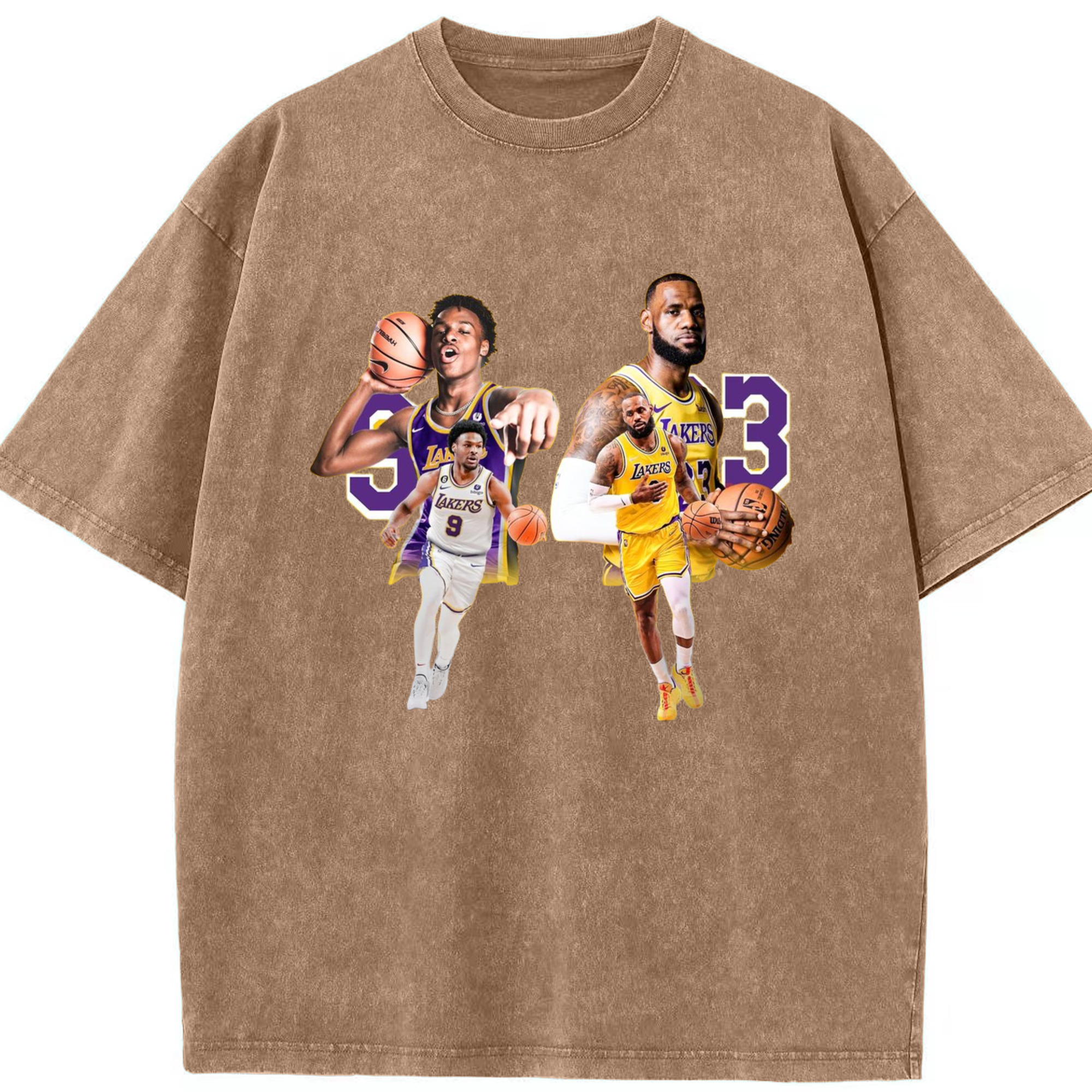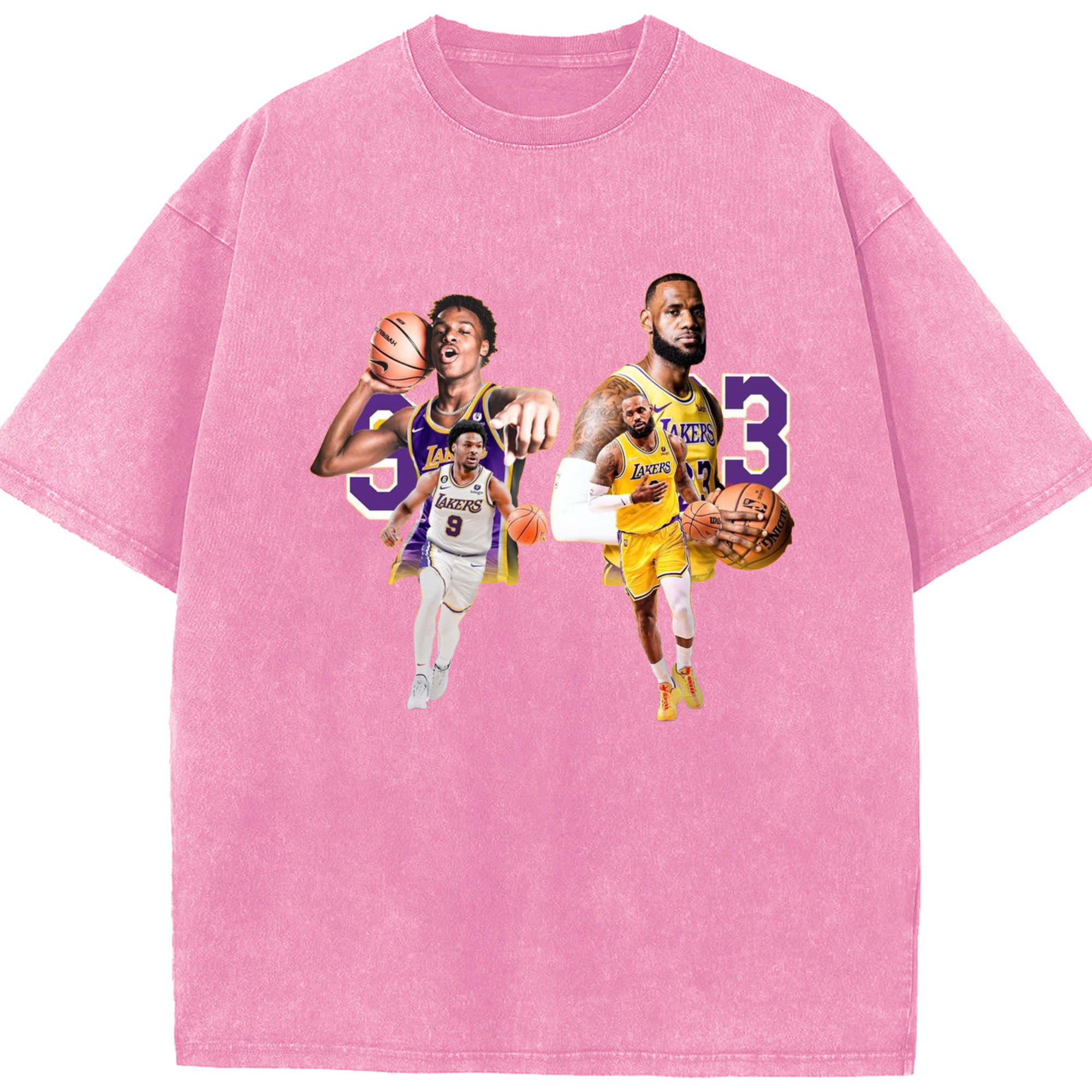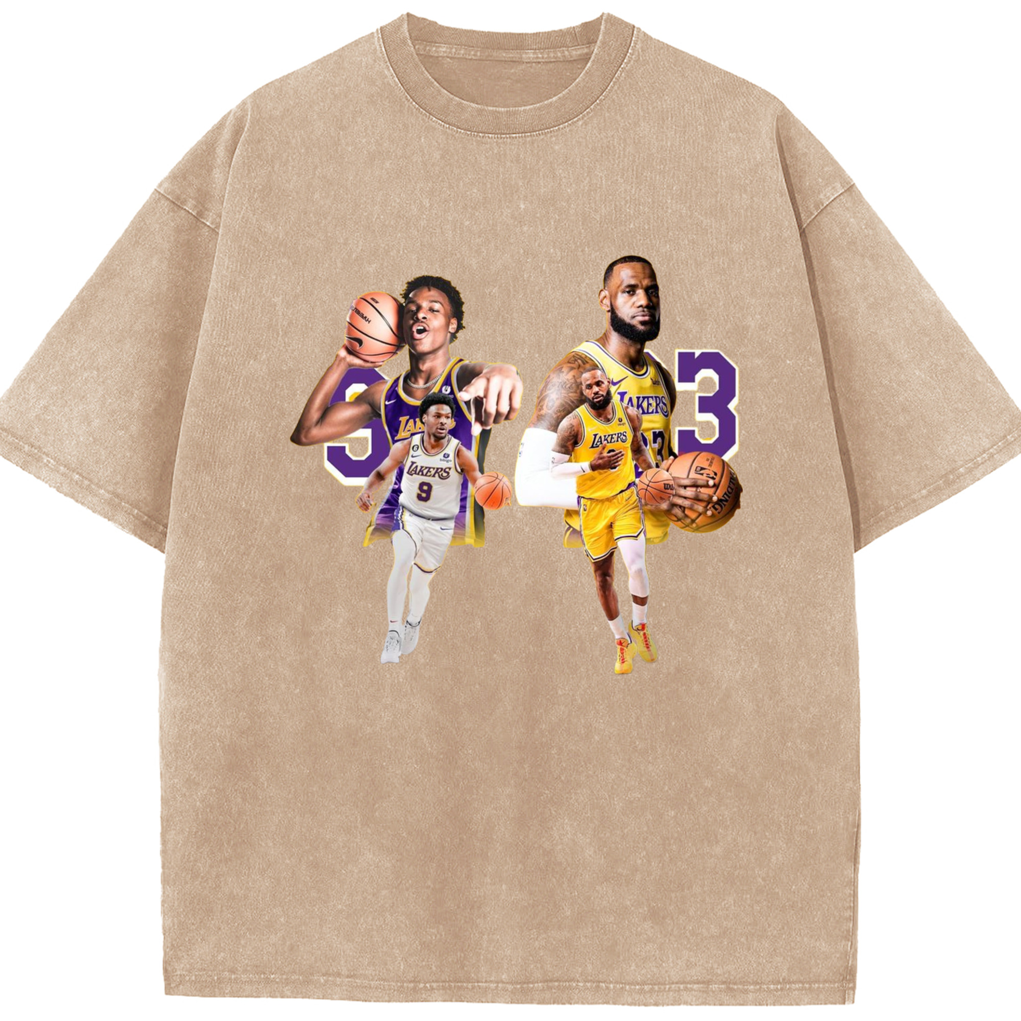 Lebron James and Bronny James Lakers ball control T-Shirt - Washed Vintage Look 230g Cotton Oversized T-Shirt With Front Heat Transfer Print – Soft, Lightweight, Stylish Fit – Comfortable Casual Wear For Sports & Everyday Use