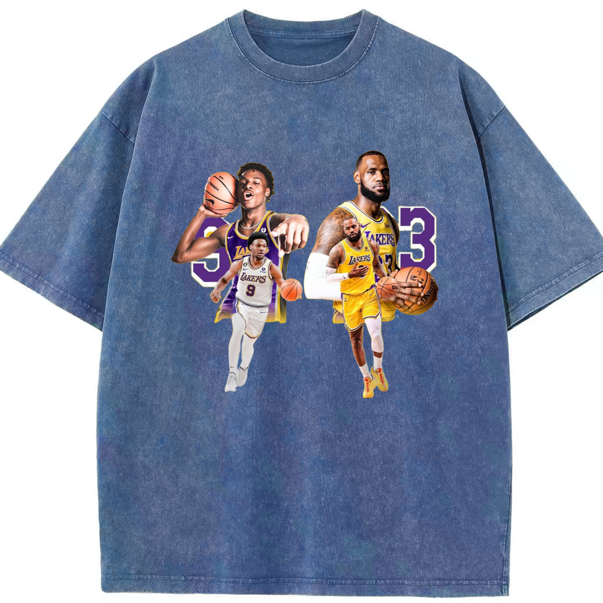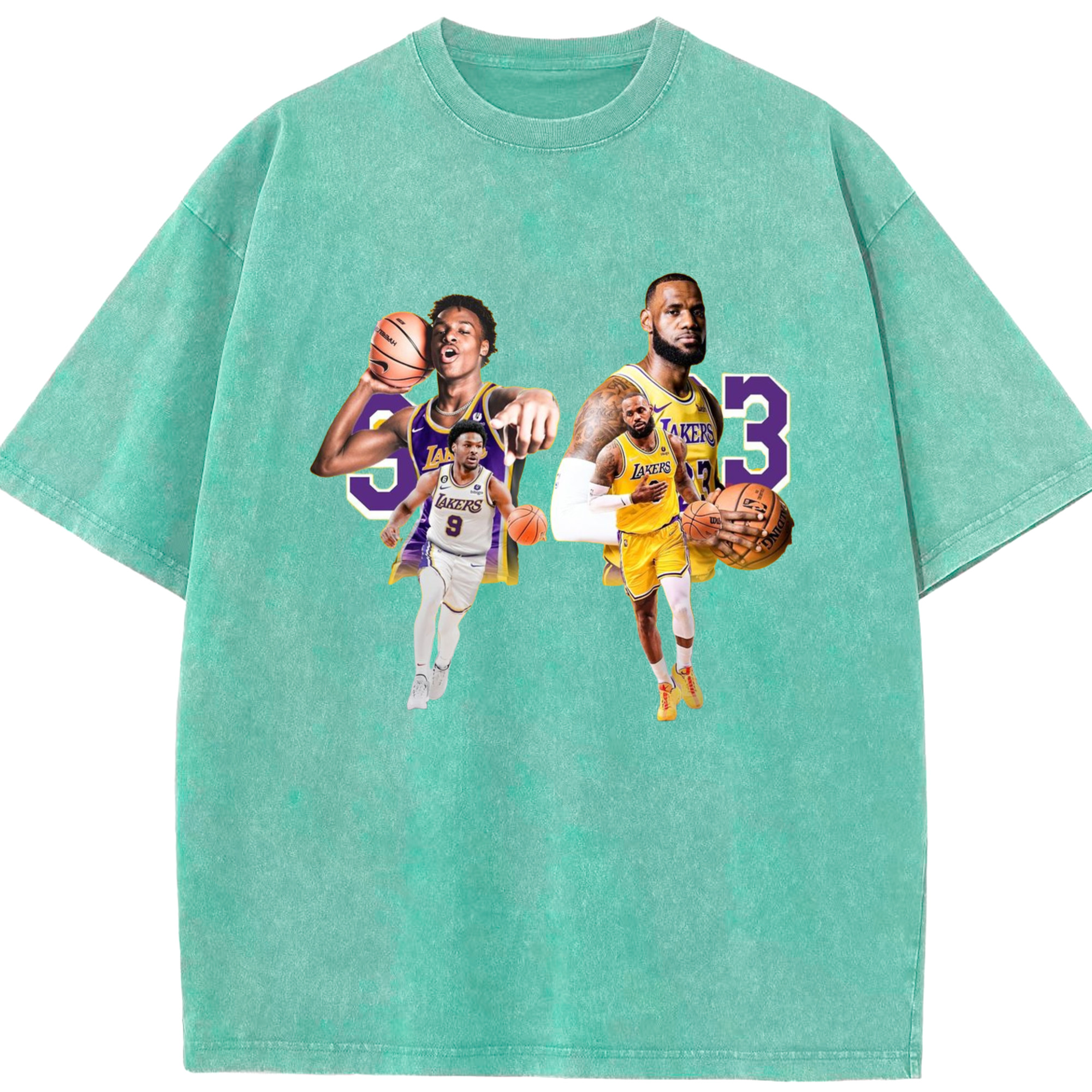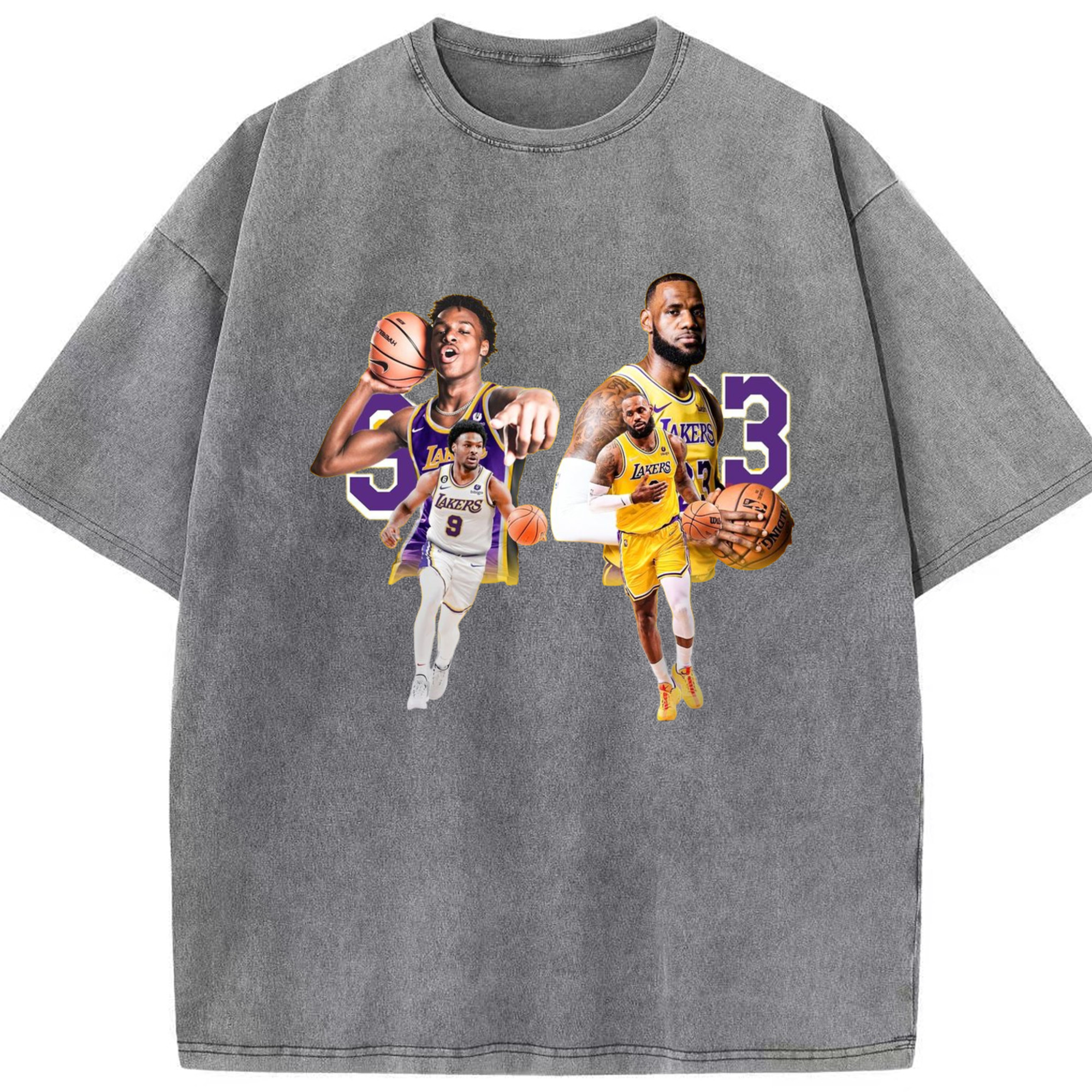 Lebron James and Bronny James Lakers ball control T-Shirt - Washed Vintage Look 230g Cotton Oversized T-Shirt With Front Heat Transfer Print – Soft, Lightweight, Stylish Fit – Comfortable Casual Wear For Sports & Everyday Use