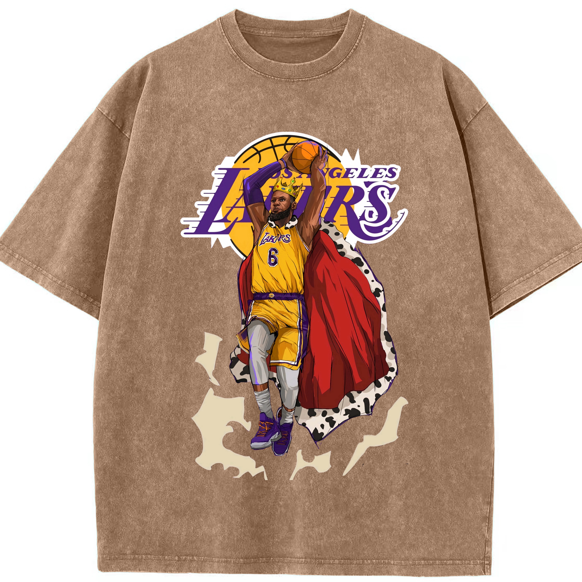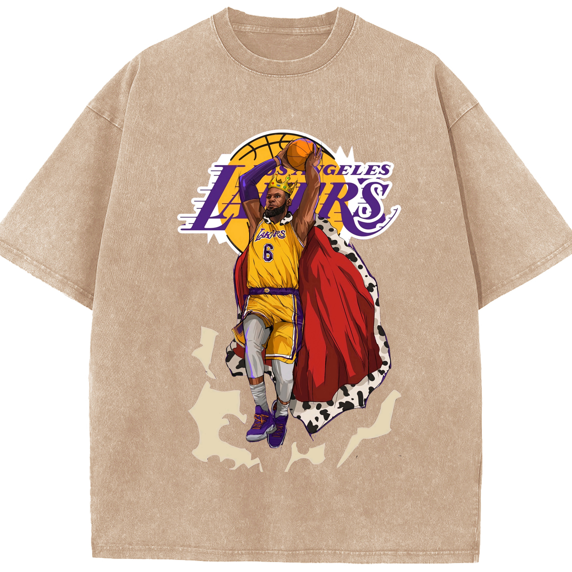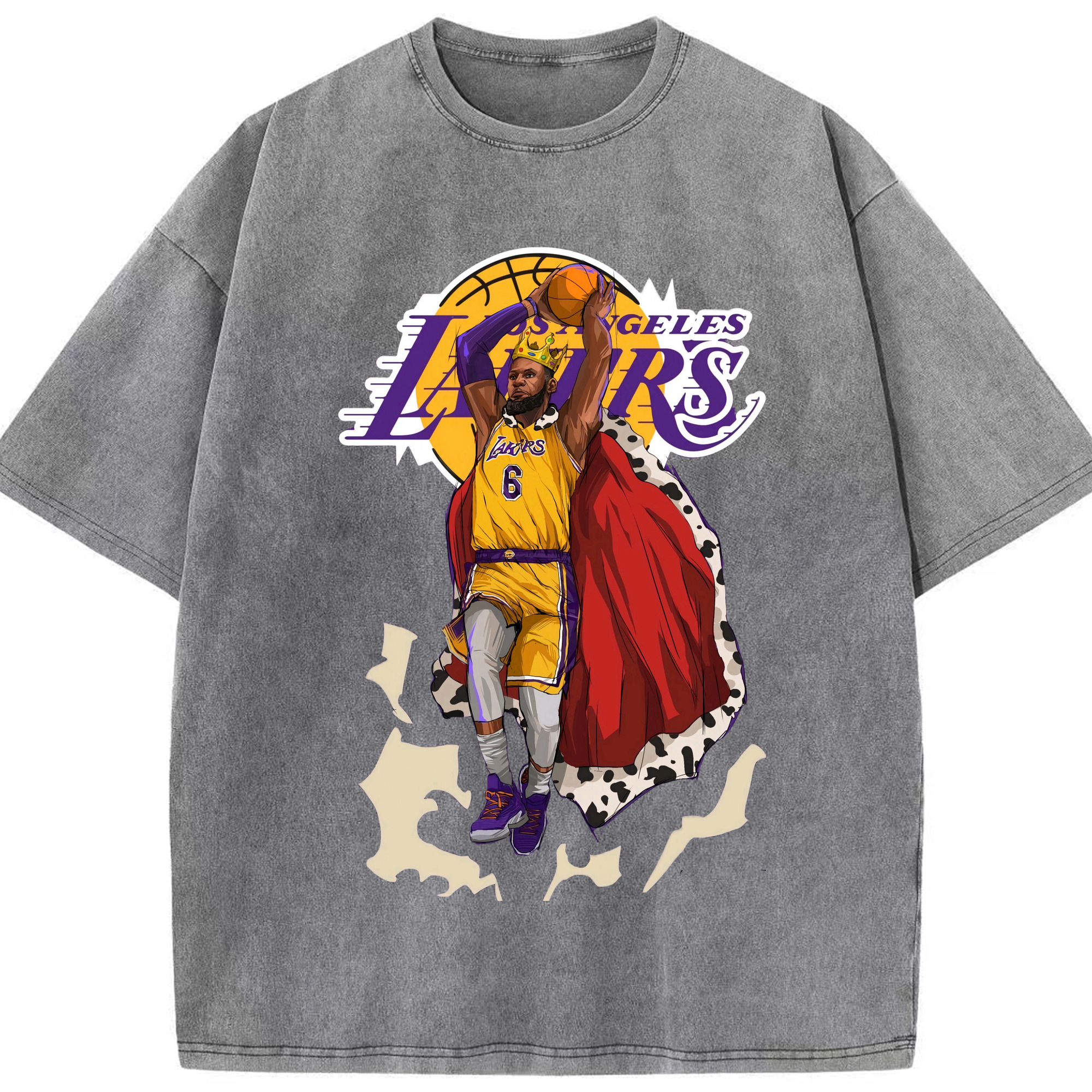 Lebron james dank Cartoon style graphic T‑Shirt - Washed Vintage Look 230g Cotton Oversized T-Shirt With Front Heat Transfer Print – Soft, Lightweight, Stylish Fit – Comfortable Casual Wear For Sports & Everyday Use