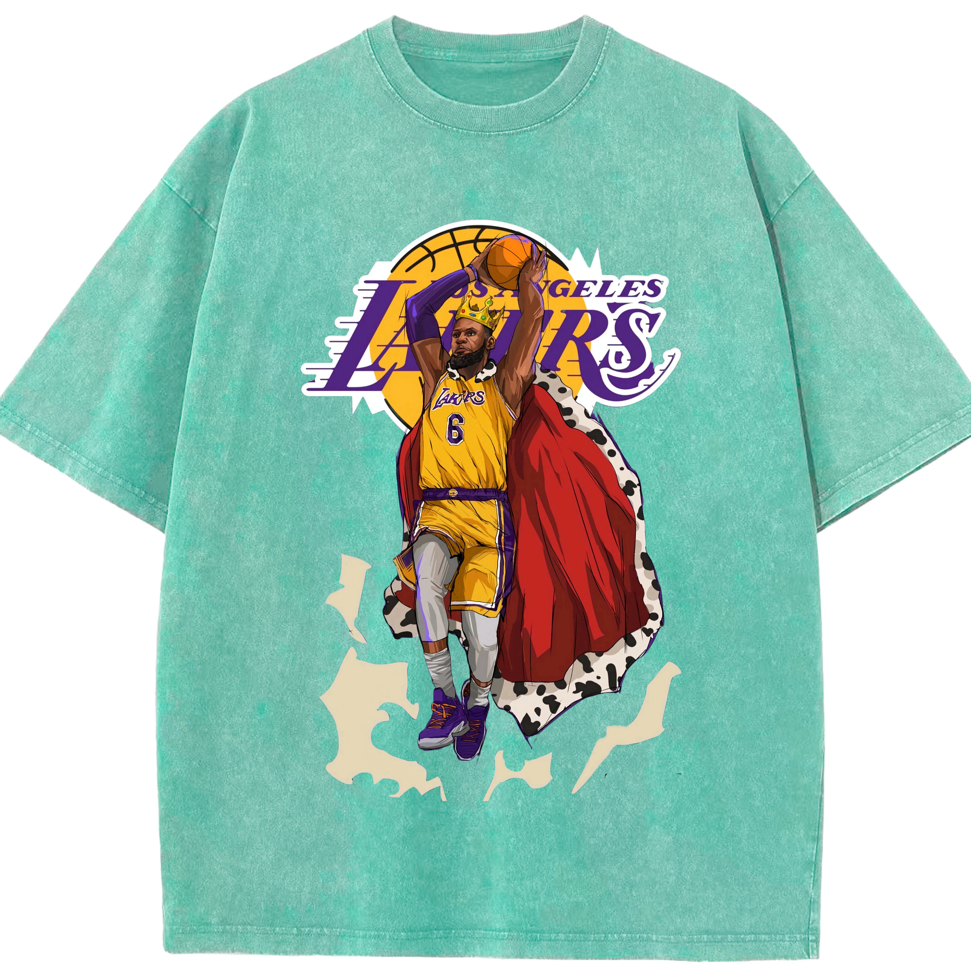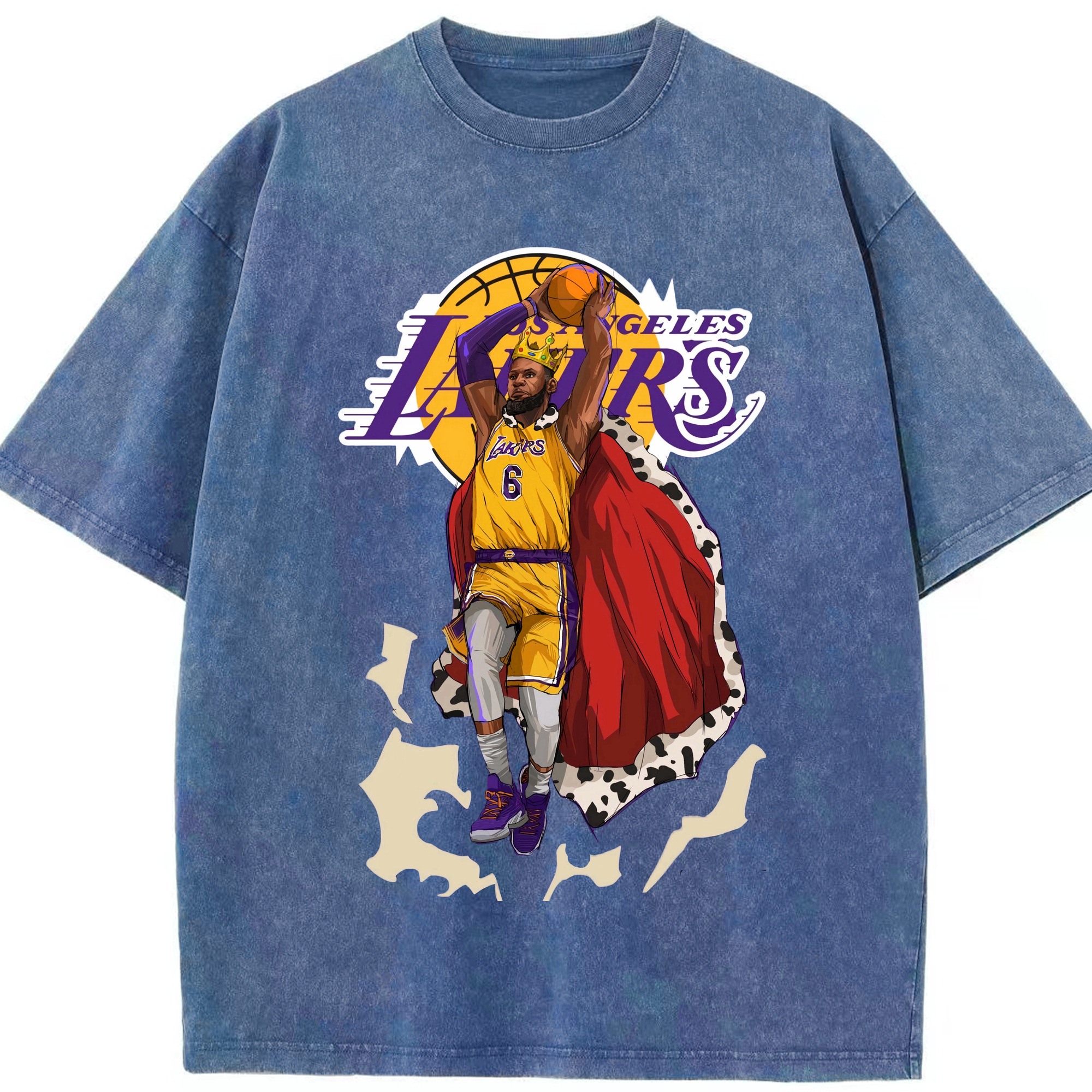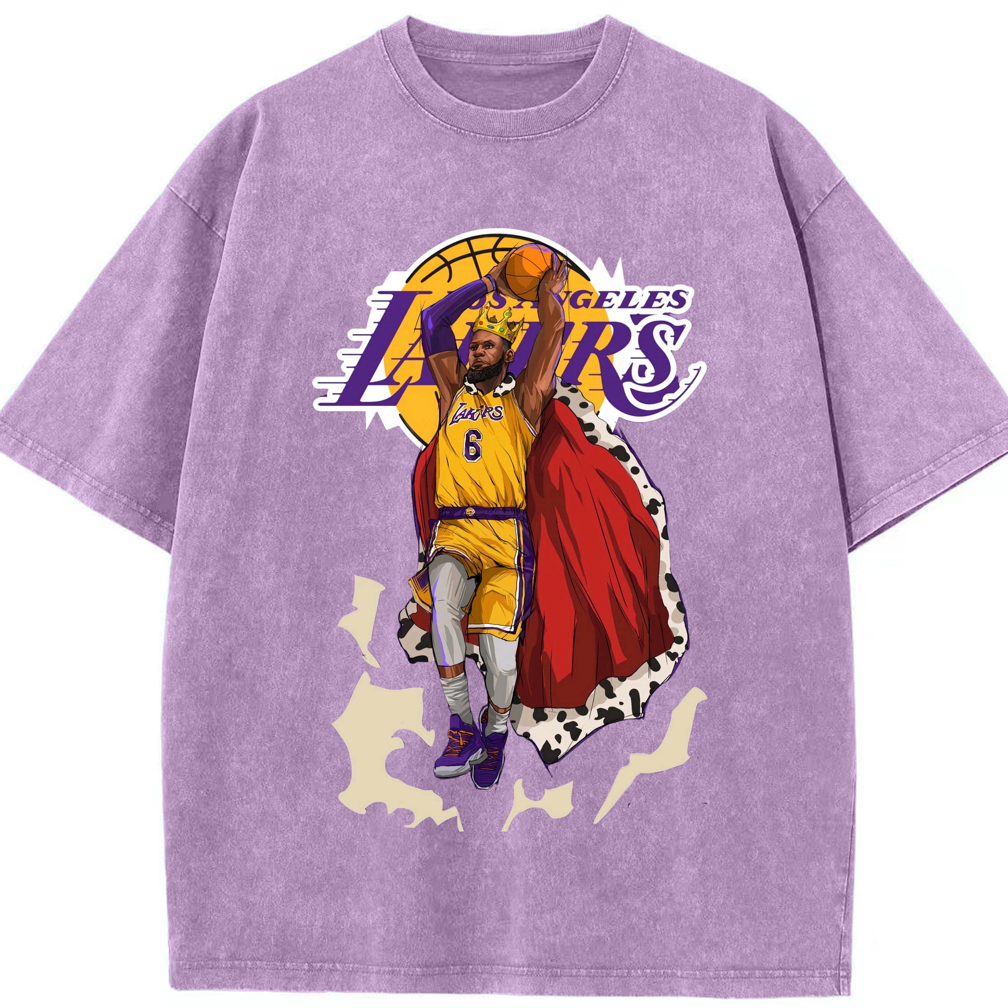 Lebron james dank Cartoon style graphic T‑Shirt - Washed Vintage Look 230g Cotton Oversized T-Shirt With Front Heat Transfer Print – Soft, Lightweight, Stylish Fit – Comfortable Casual Wear For Sports & Everyday Use