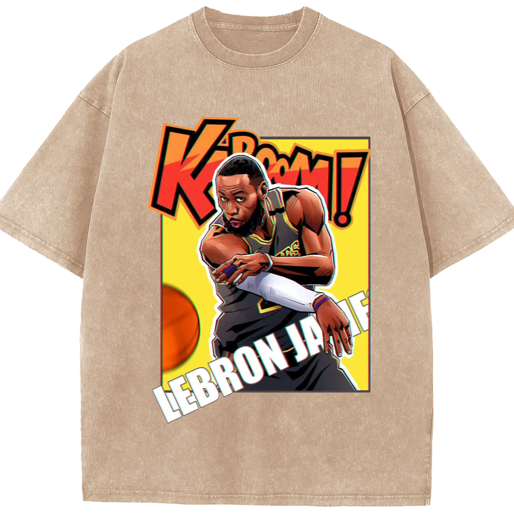 Lebron james funny t shirts - Washed Vintage Look 230g Cotton Oversized T-Shirt With Front Heat Transfer Print – Soft, Lightweight, Stylish Fit – Comfortable Casual Wear For Sports & Everyday Use
