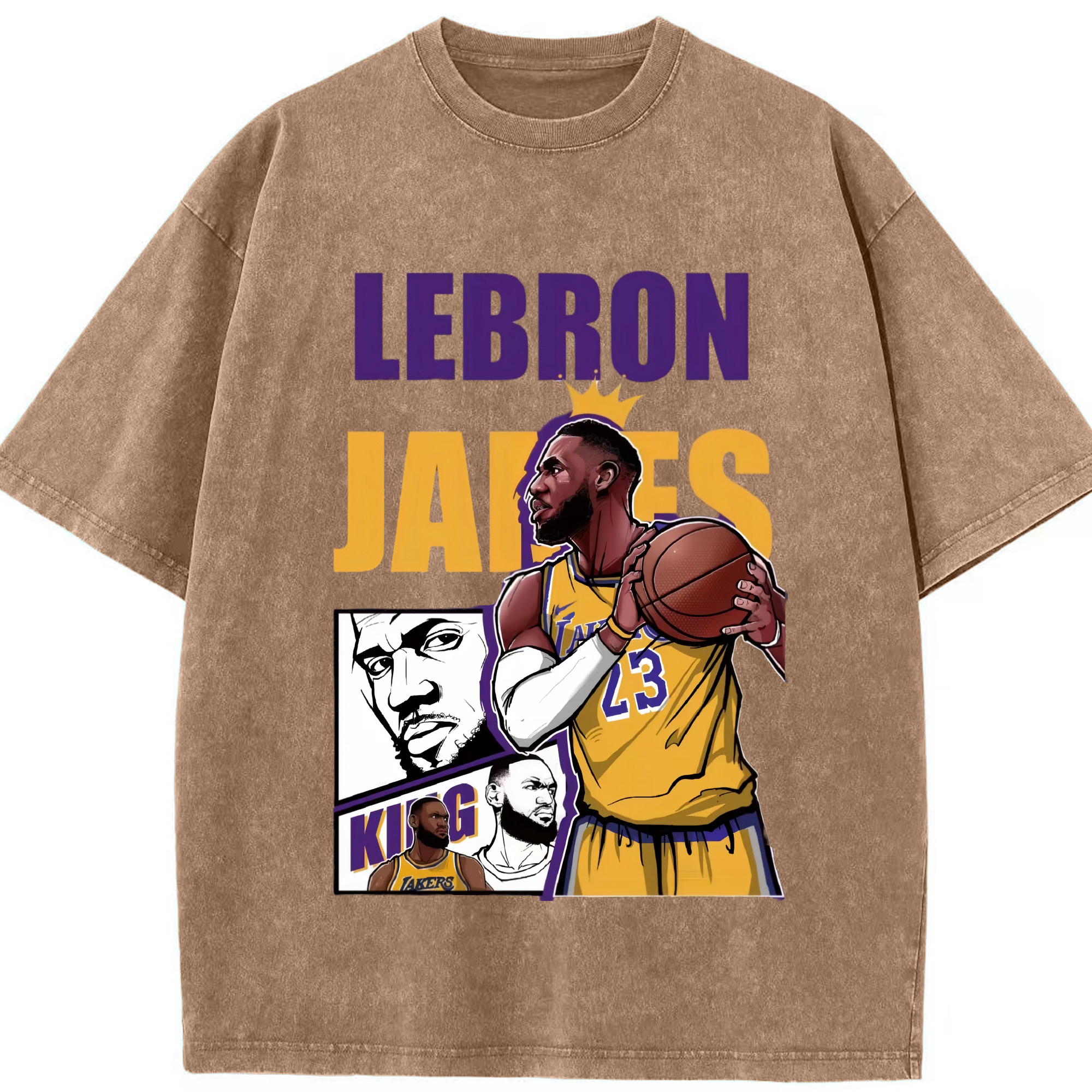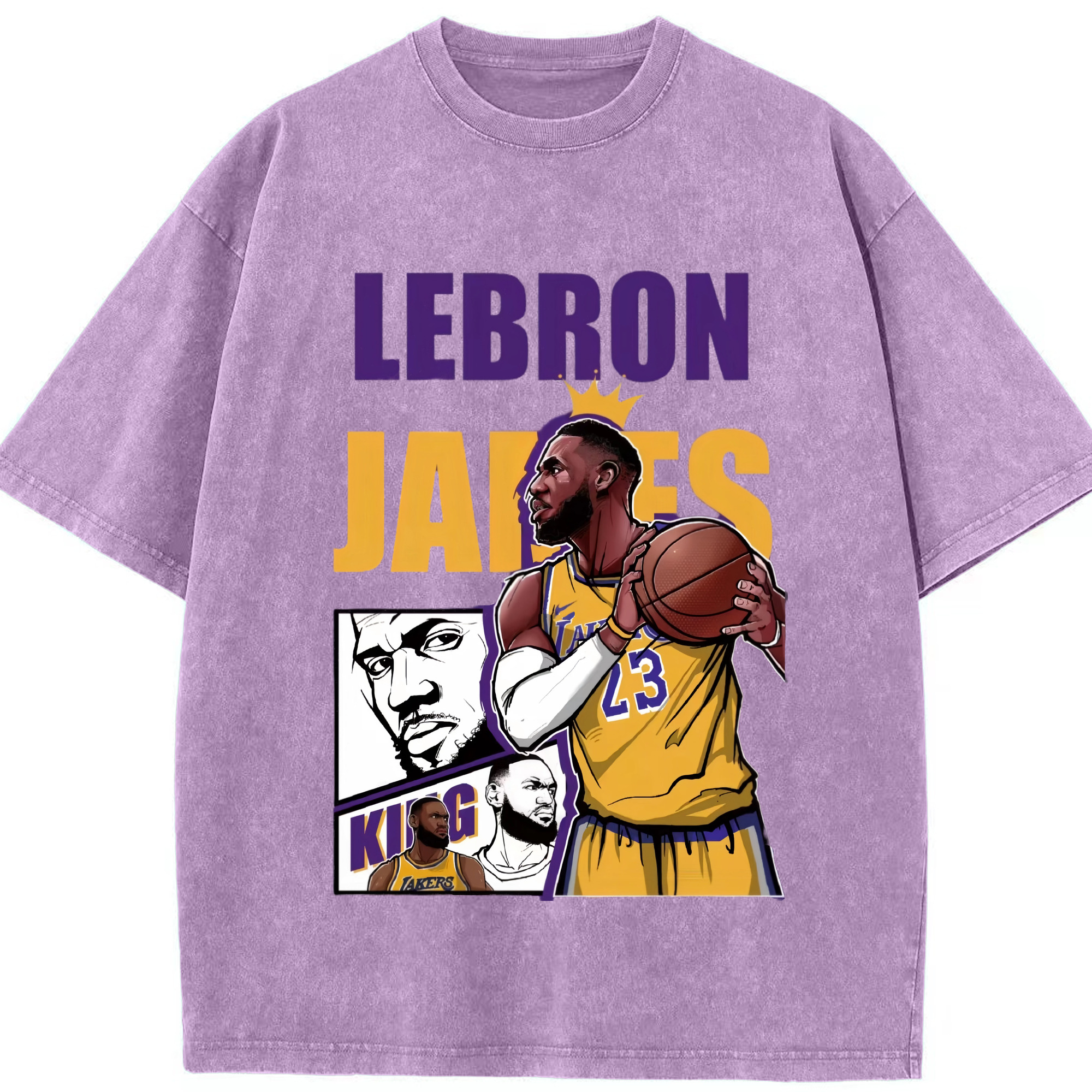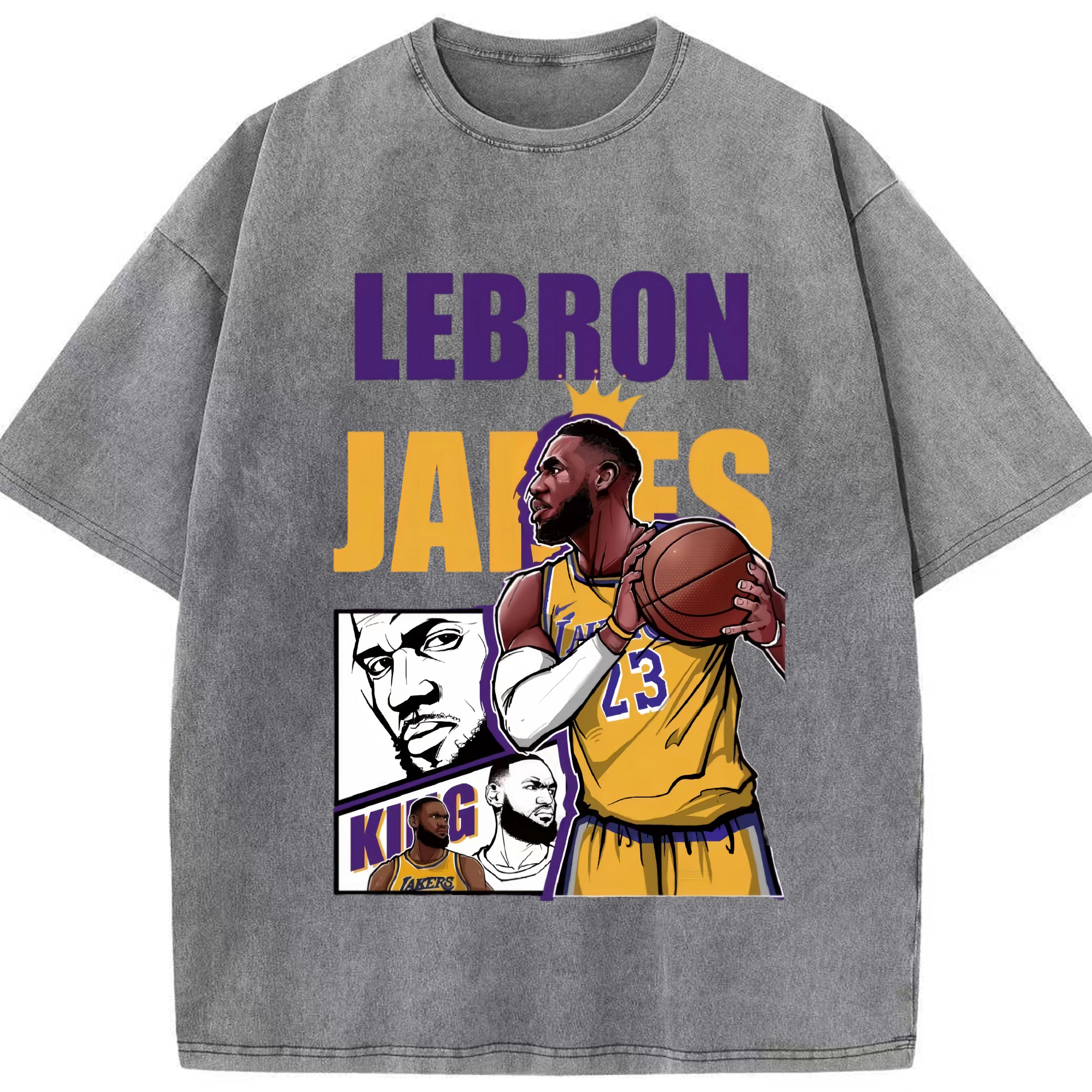LeBron James king T‑Shirt - Washed Vintage Look 230g Cotton Oversized T-Shirt With Front Heat Transfer Print – Soft, Lightweight, Stylish Fit – Comfortable Casual Wear For Sports & Everyday Use