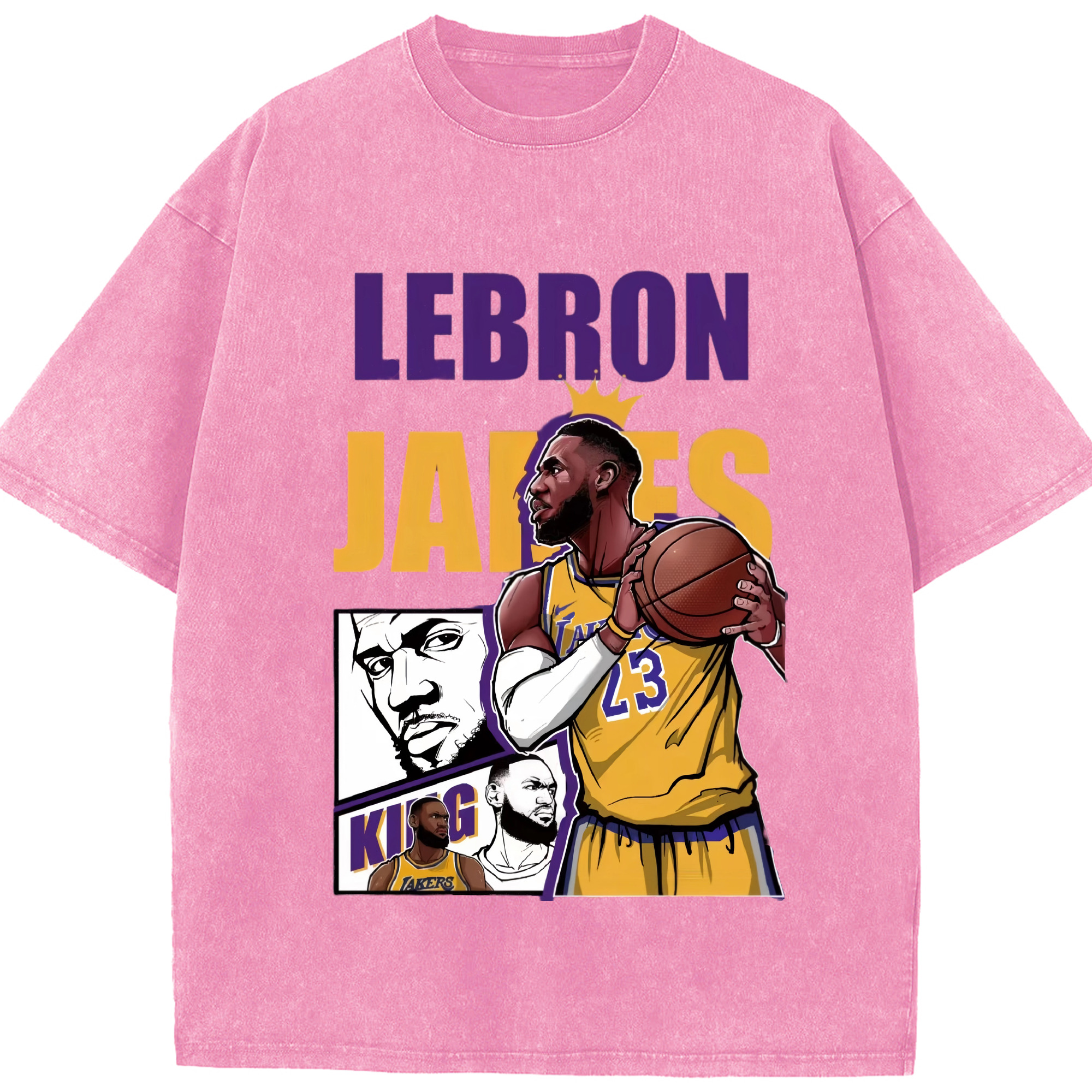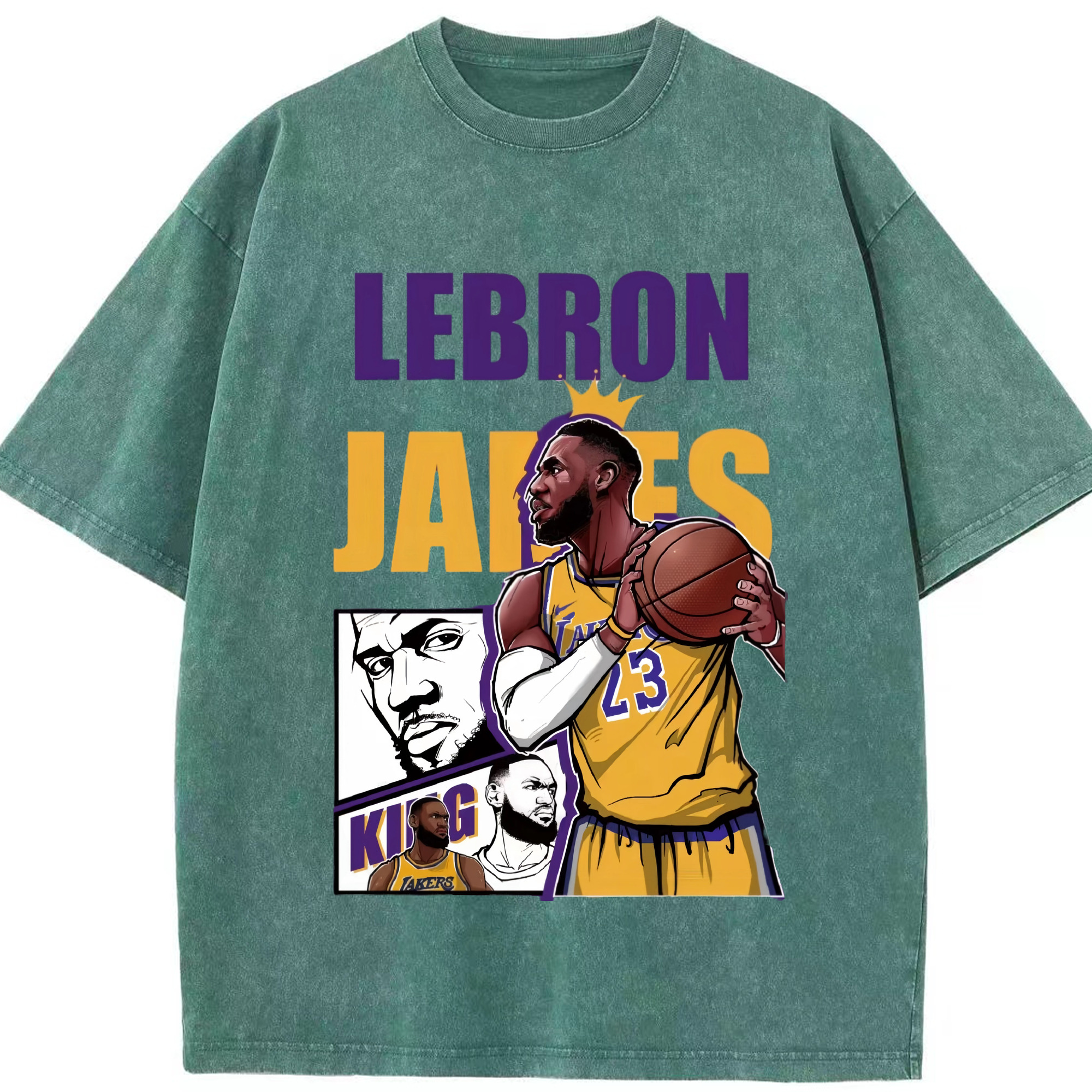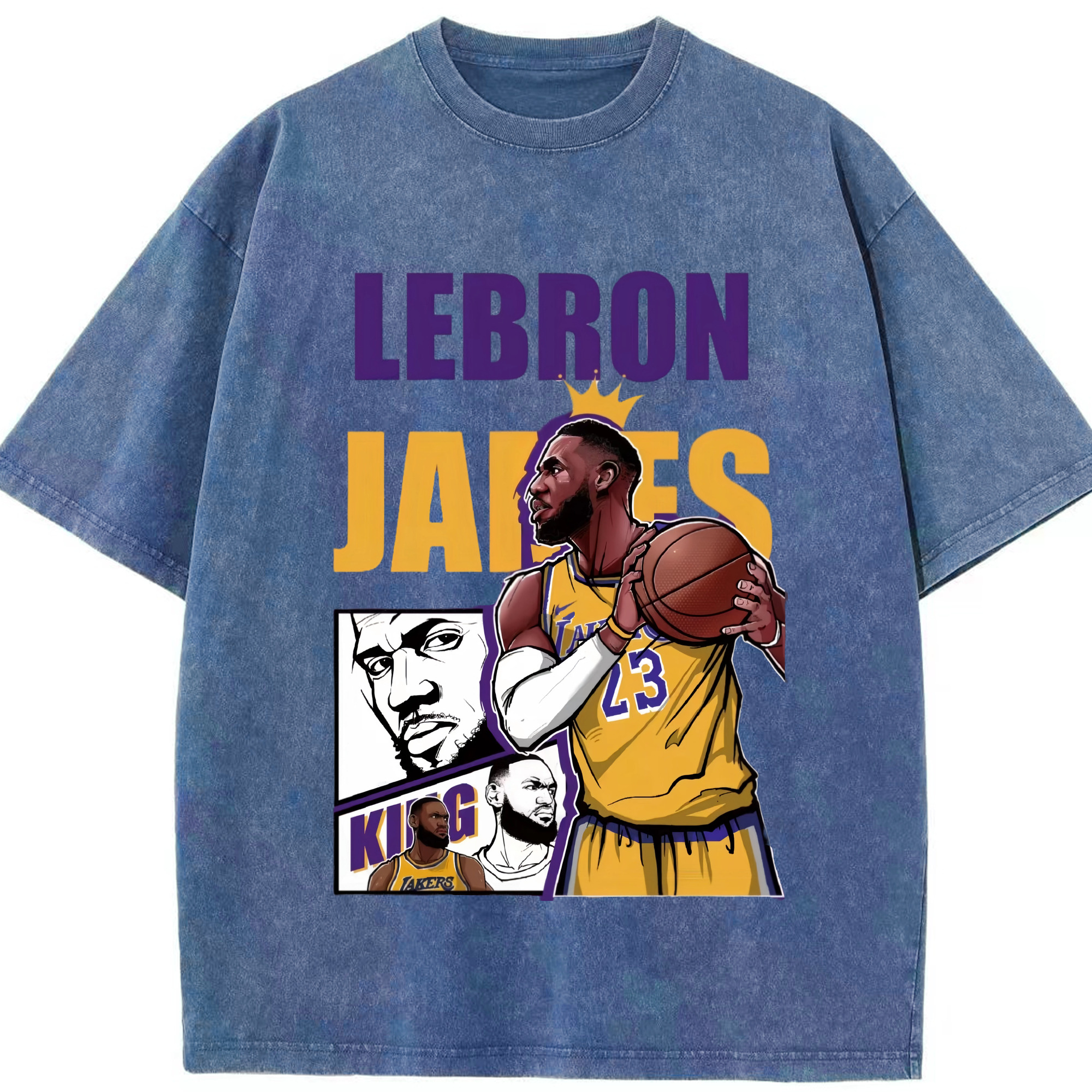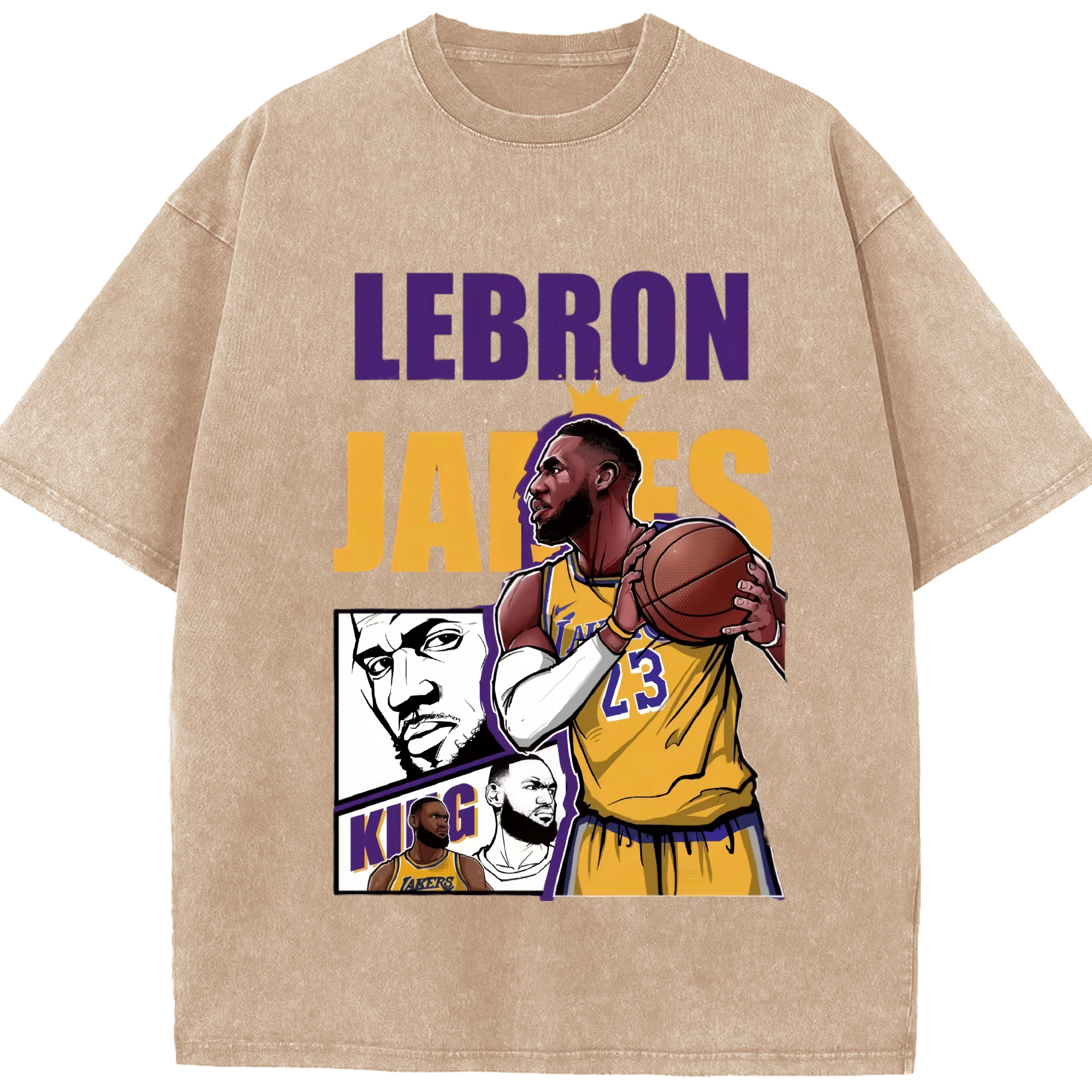 LeBron James king T‑Shirt - Washed Vintage Look 230g Cotton Oversized T-Shirt With Front Heat Transfer Print – Soft, Lightweight, Stylish Fit – Comfortable Casual Wear For Sports & Everyday Use