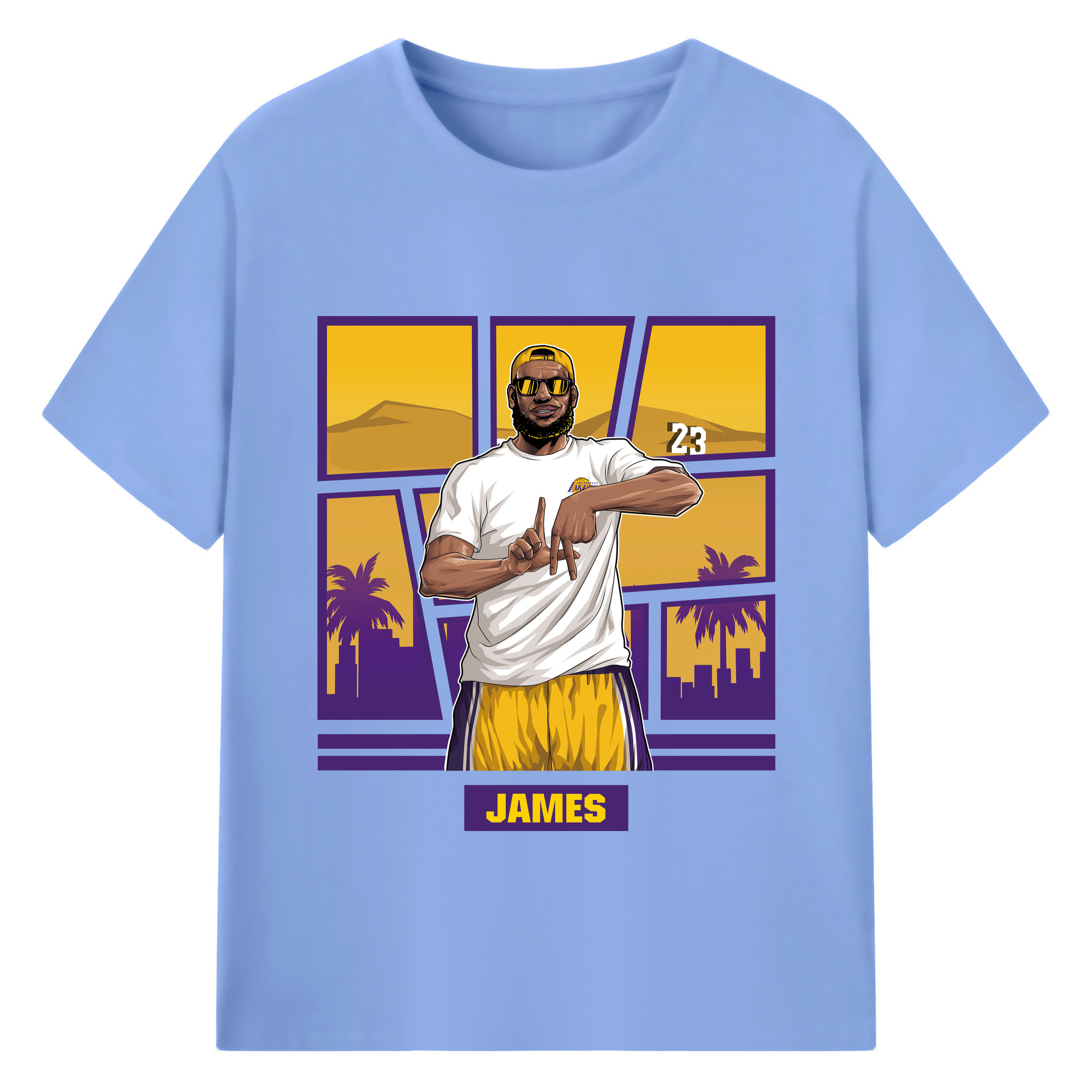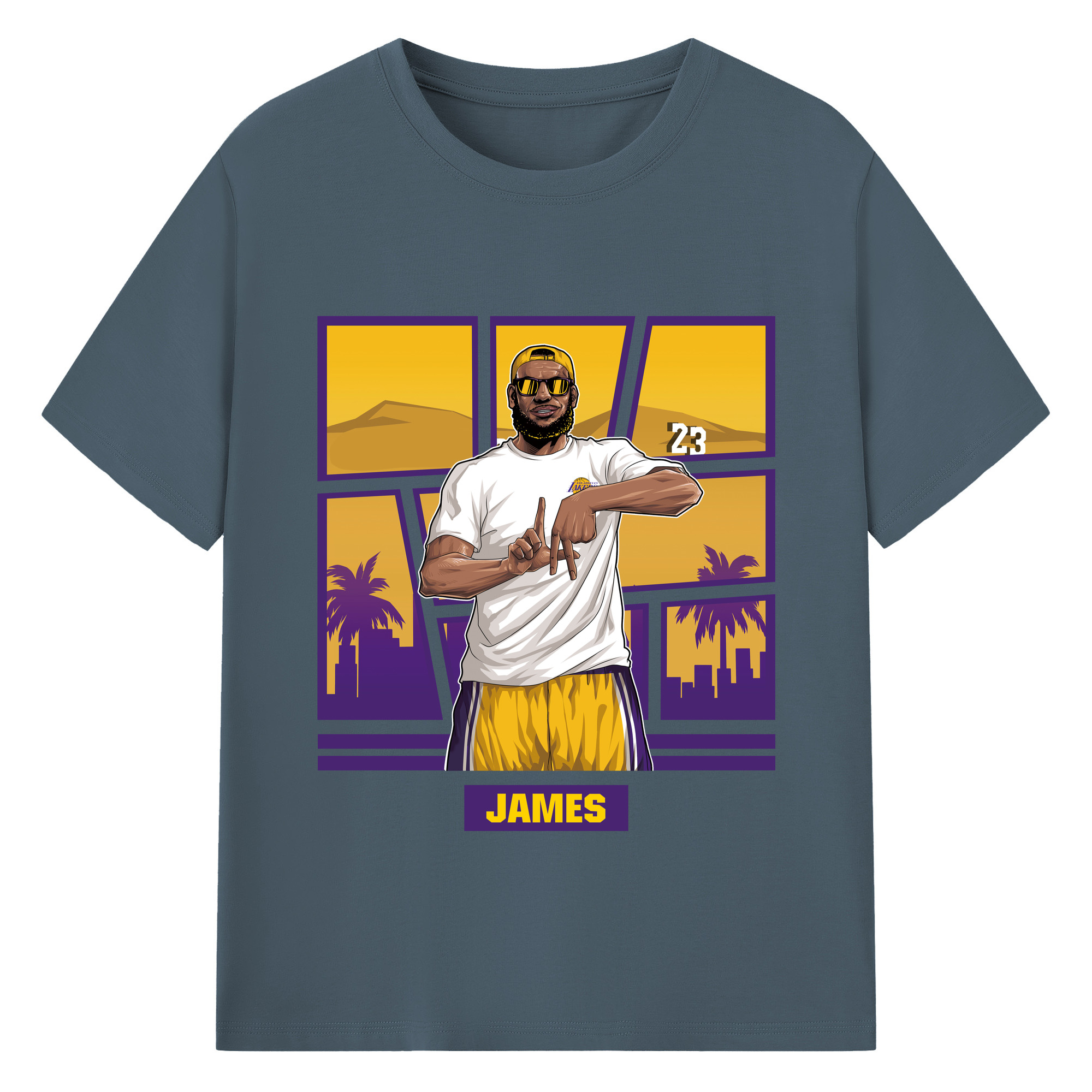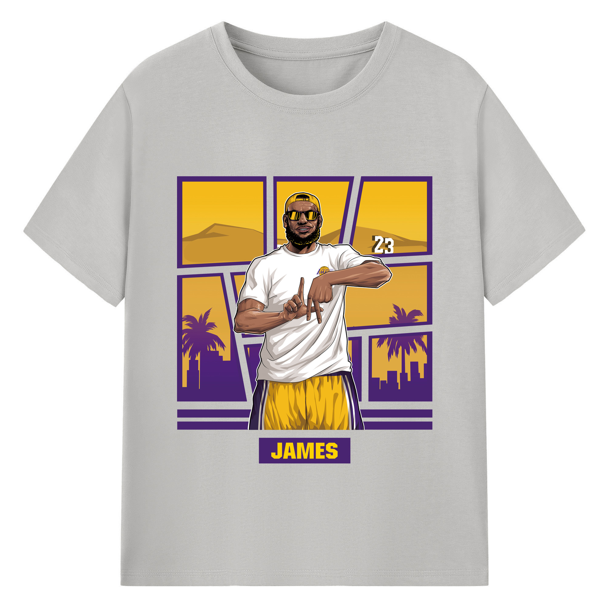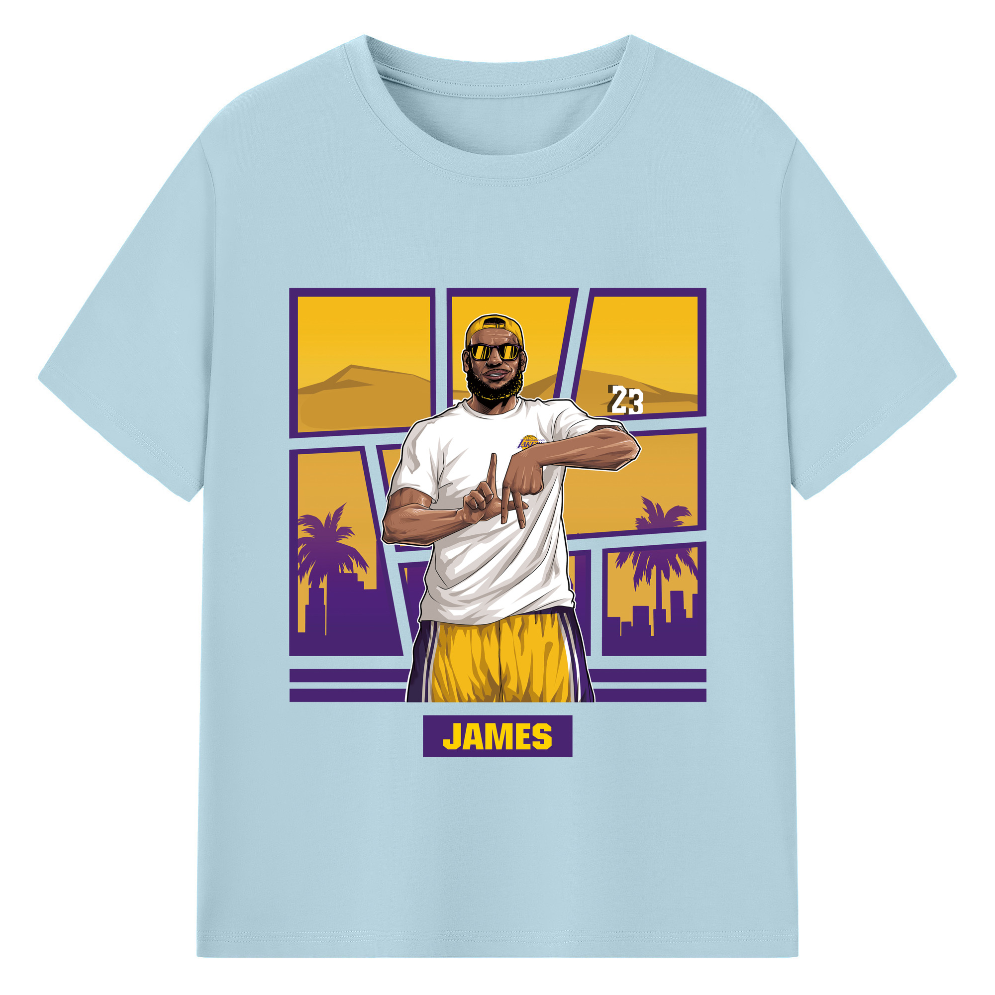 LeBron James 'LA' gesture c - 180g Cotton T-Shirt With Front Heat Transfer Print – Soft, Lightweight, Fitted Design – Comfortable Casual Wear For Sports & Everyday Use