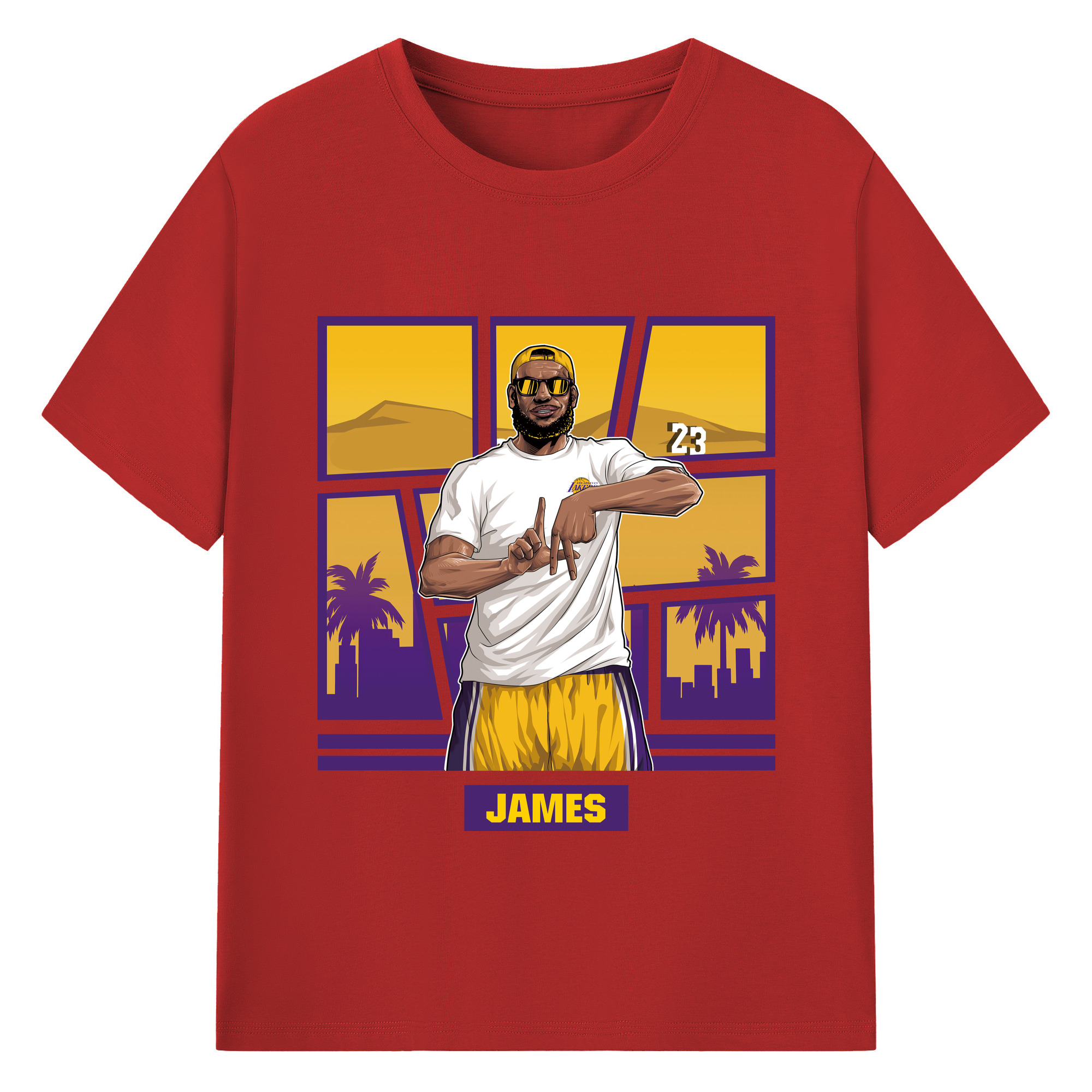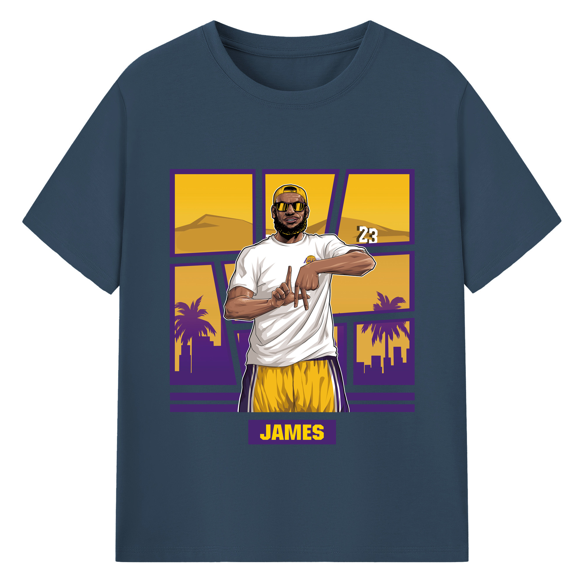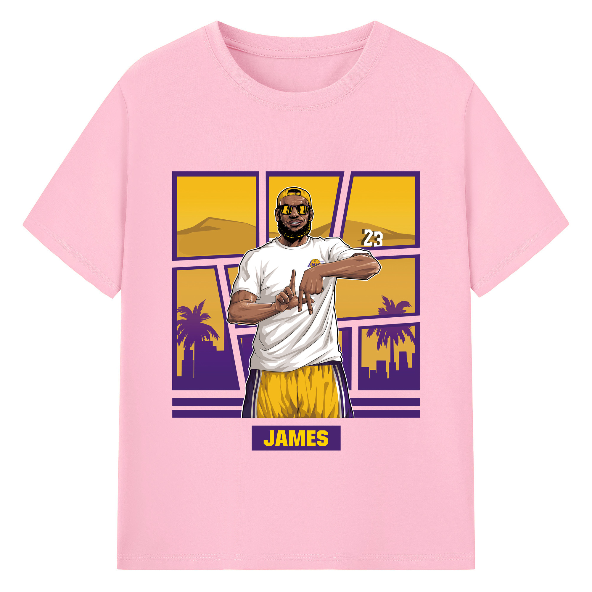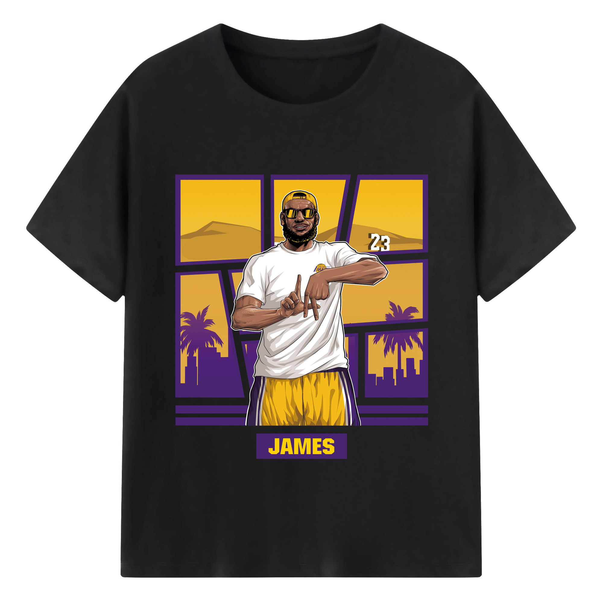 LeBron James 'LA' gesture c - 180g Cotton T-Shirt With Front Heat Transfer Print – Soft, Lightweight, Fitted Design – Comfortable Casual Wear For Sports & Everyday Use