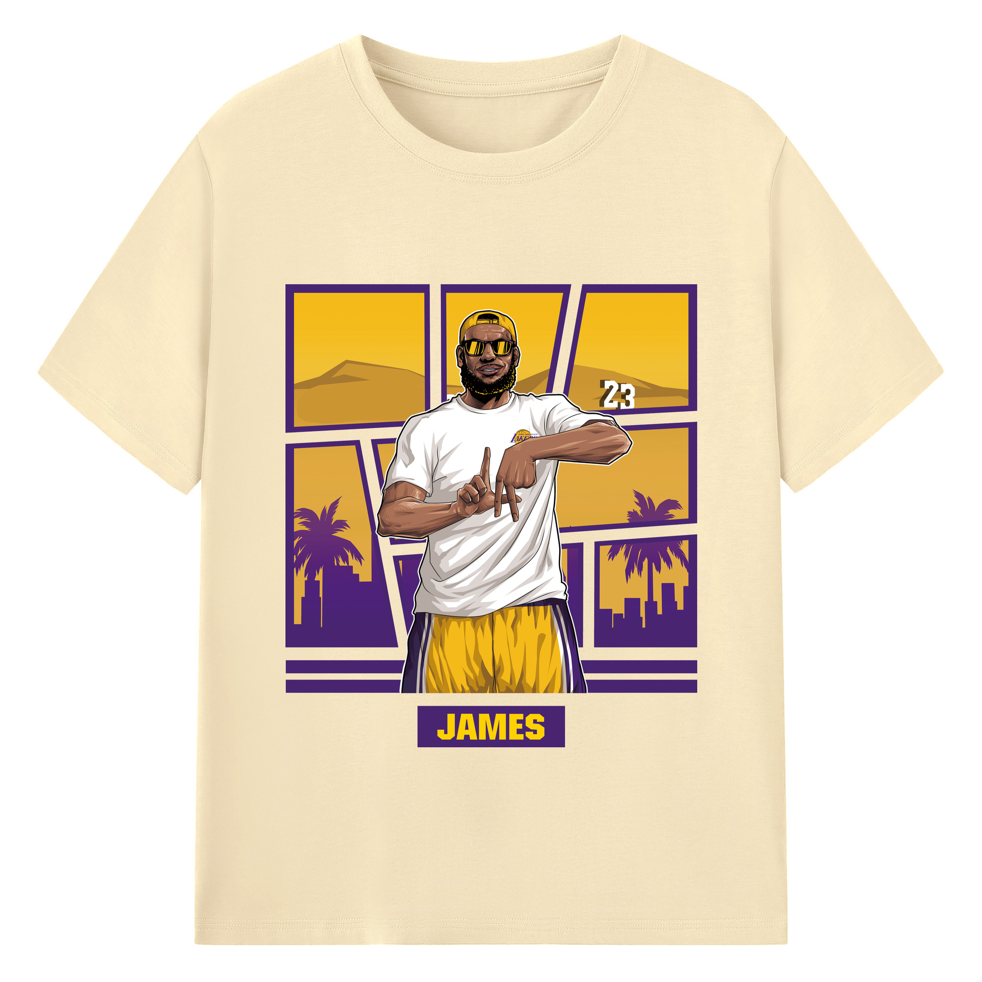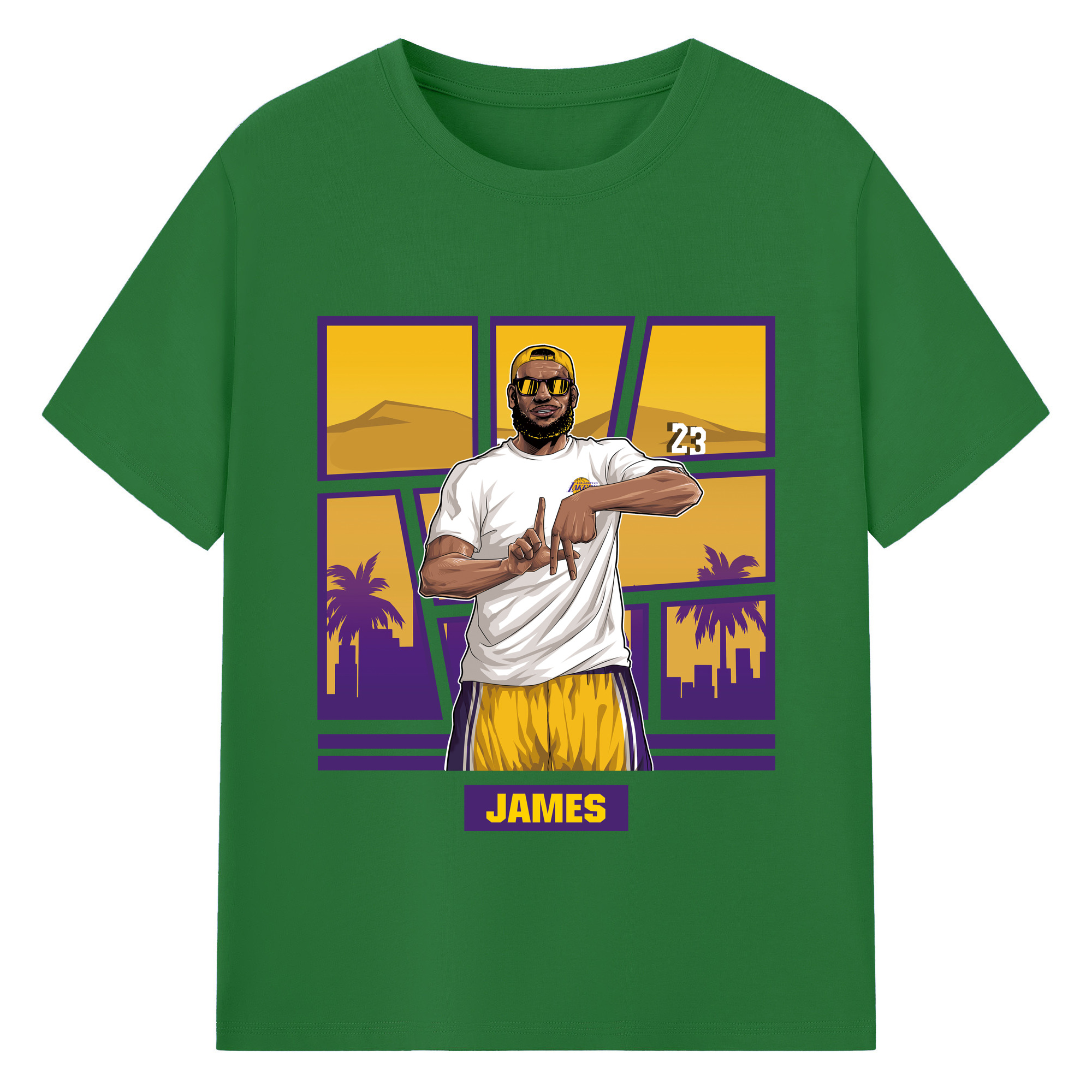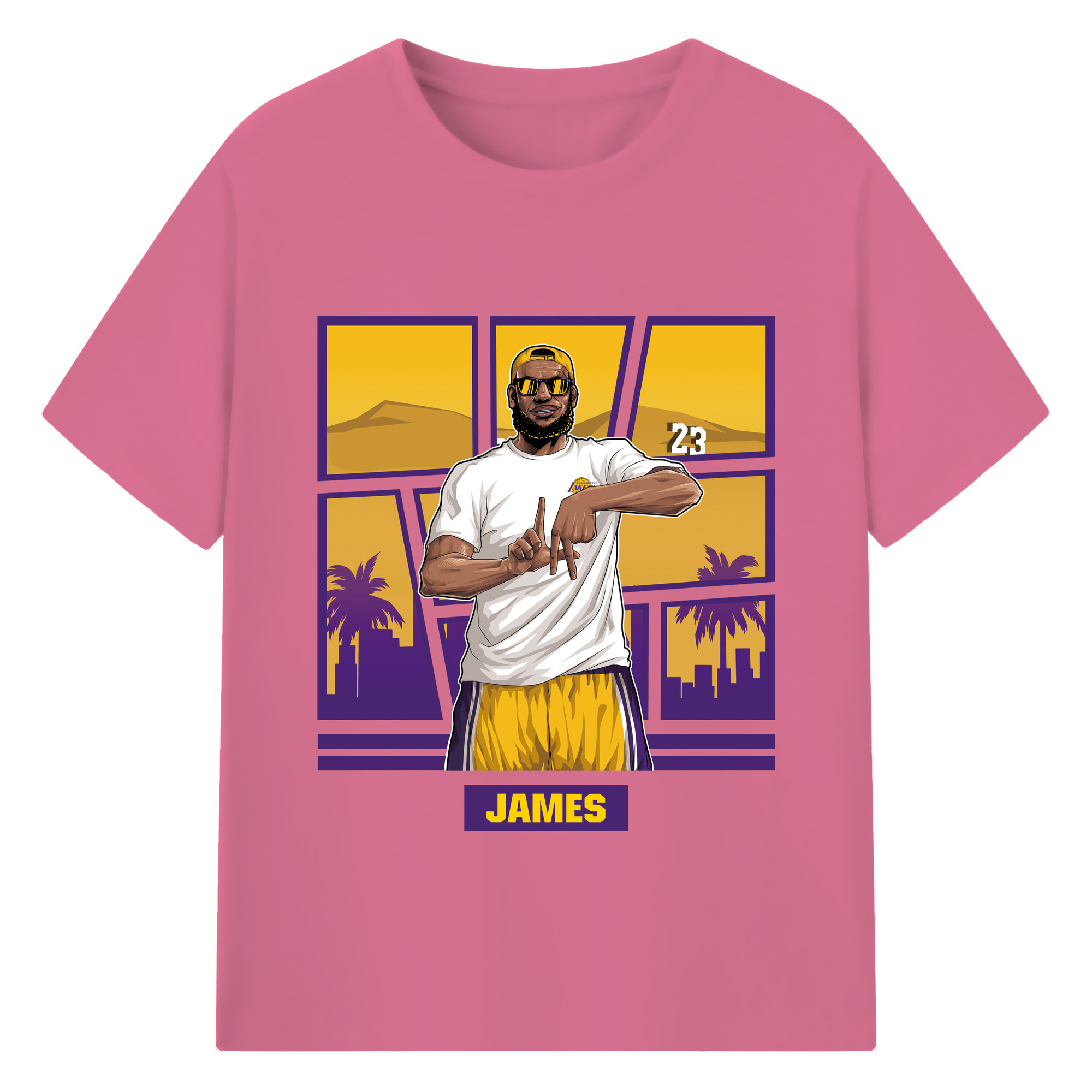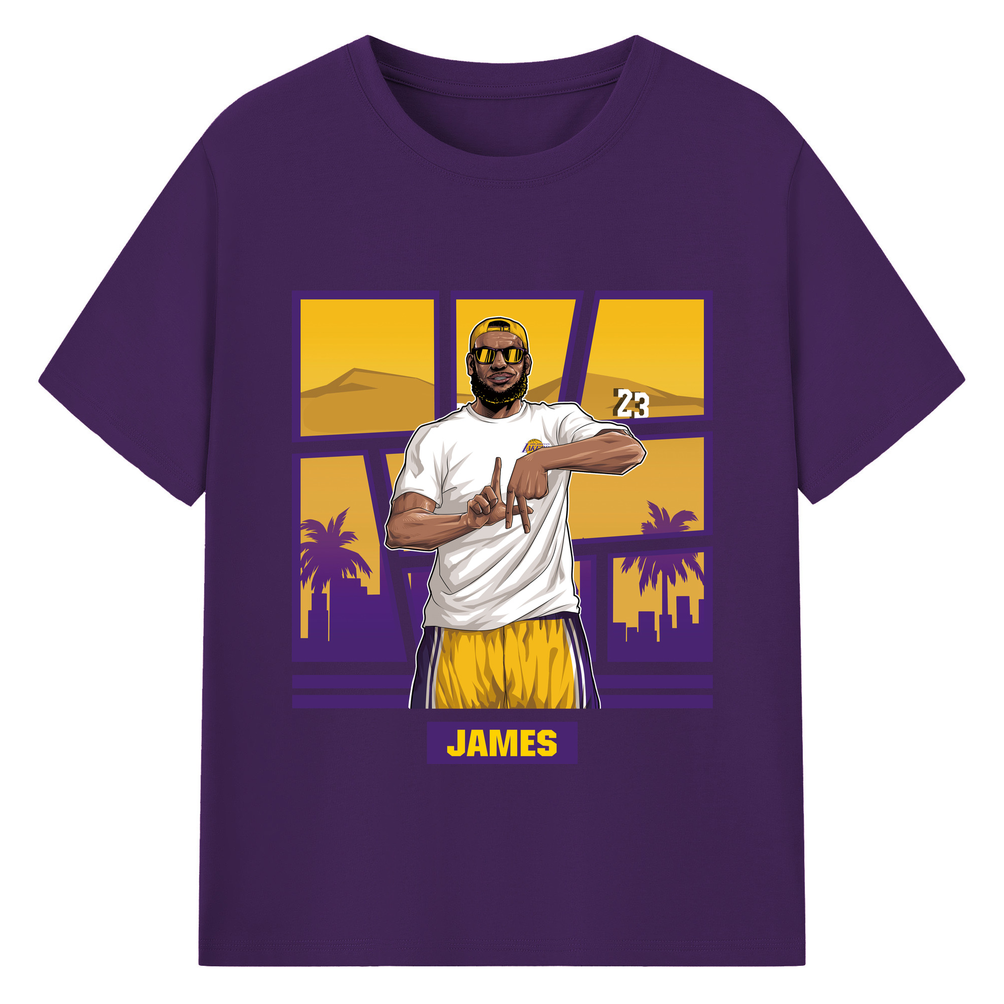 LeBron James 'LA' gesture c - 180g Cotton T-Shirt With Front Heat Transfer Print – Soft, Lightweight, Fitted Design – Comfortable Casual Wear For Sports & Everyday Use