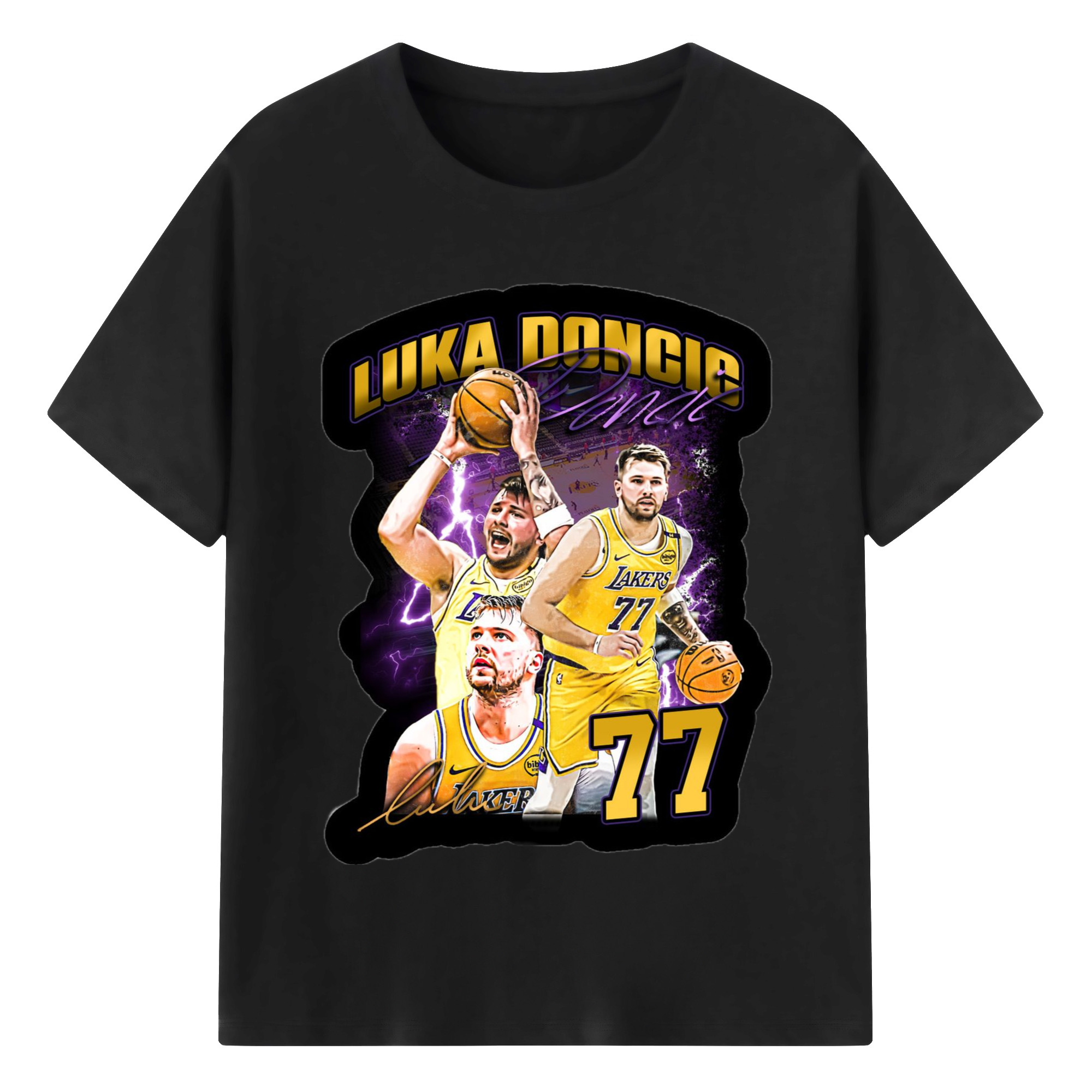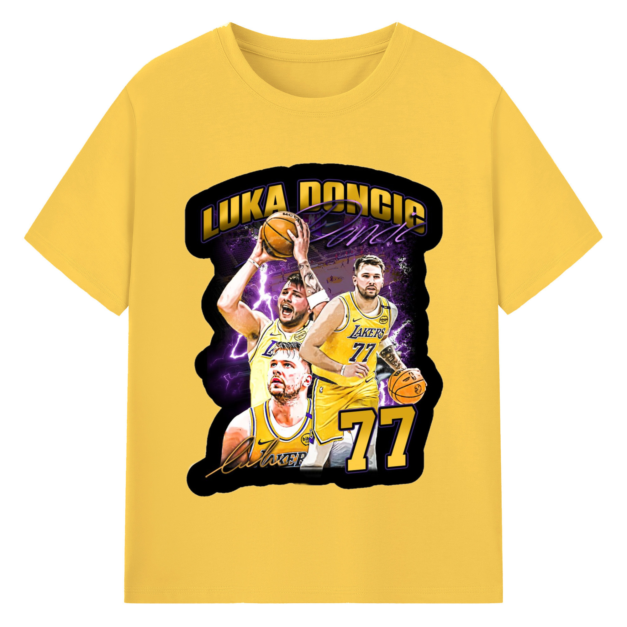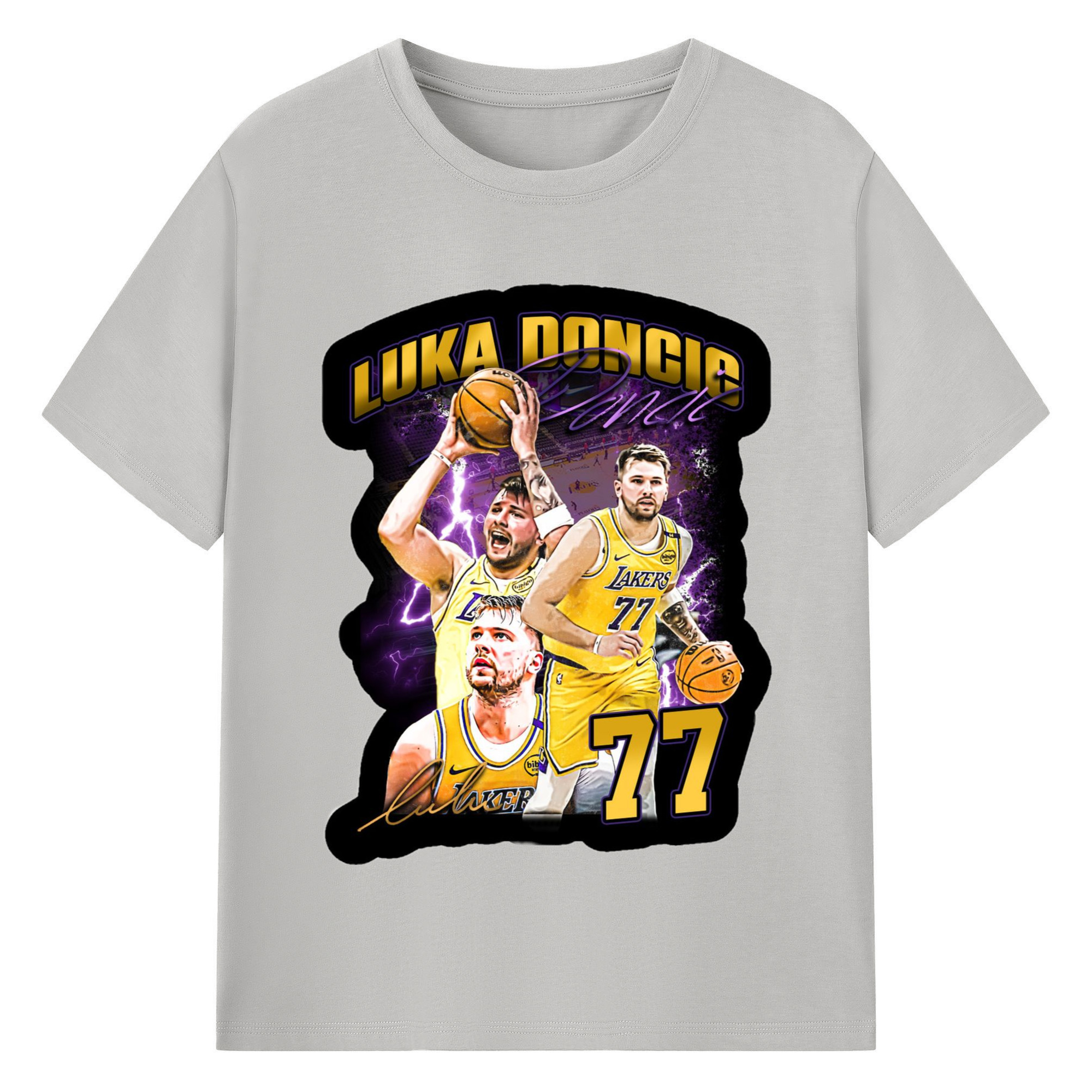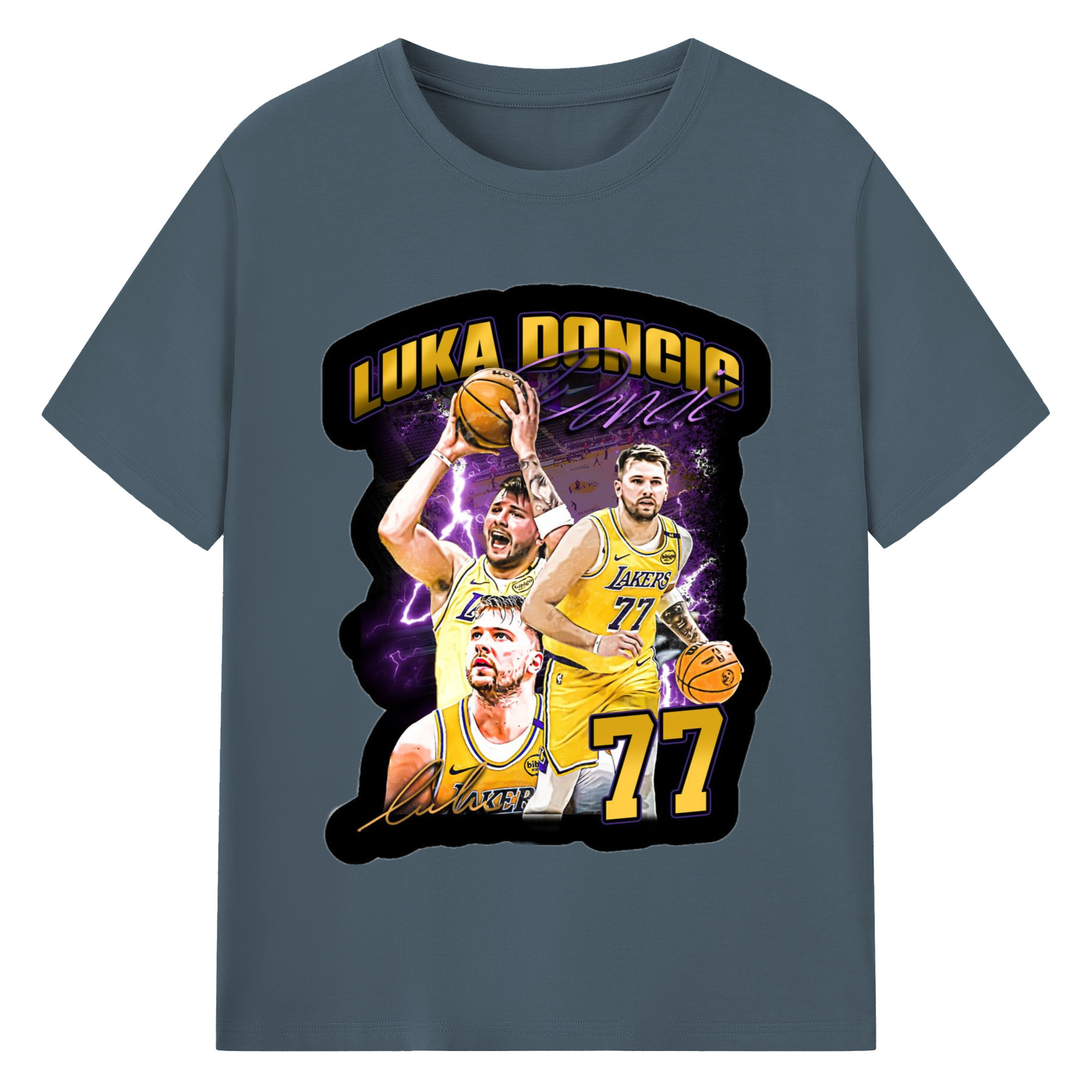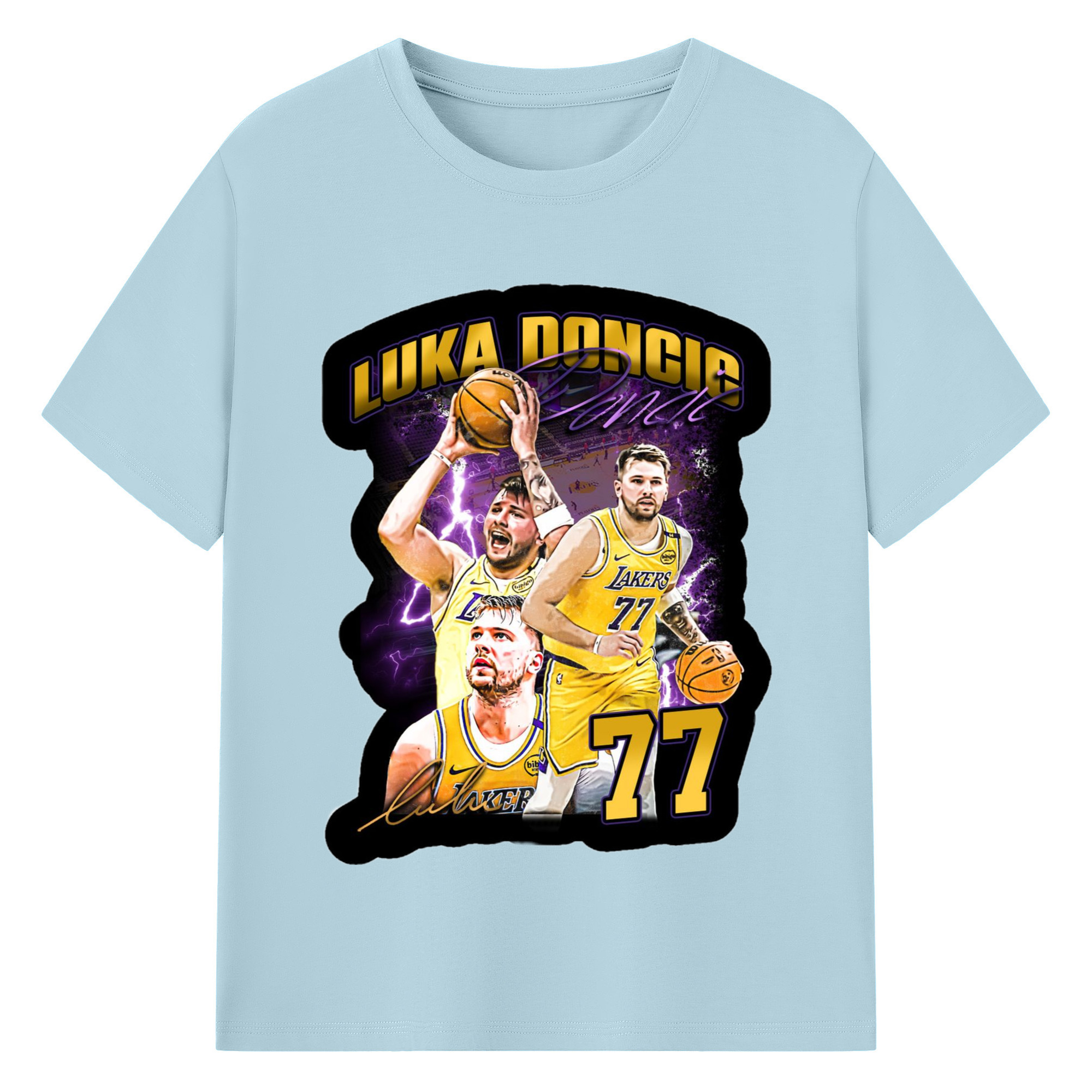 Luka Dončić Lakers #77 Collage icon T‑Shirt - 180g Cotton T-Shirt With Front Heat Transfer Print – Soft, Lightweight, Fitted Design – Comfortable Casual Wear For Sports & Everyday Use
