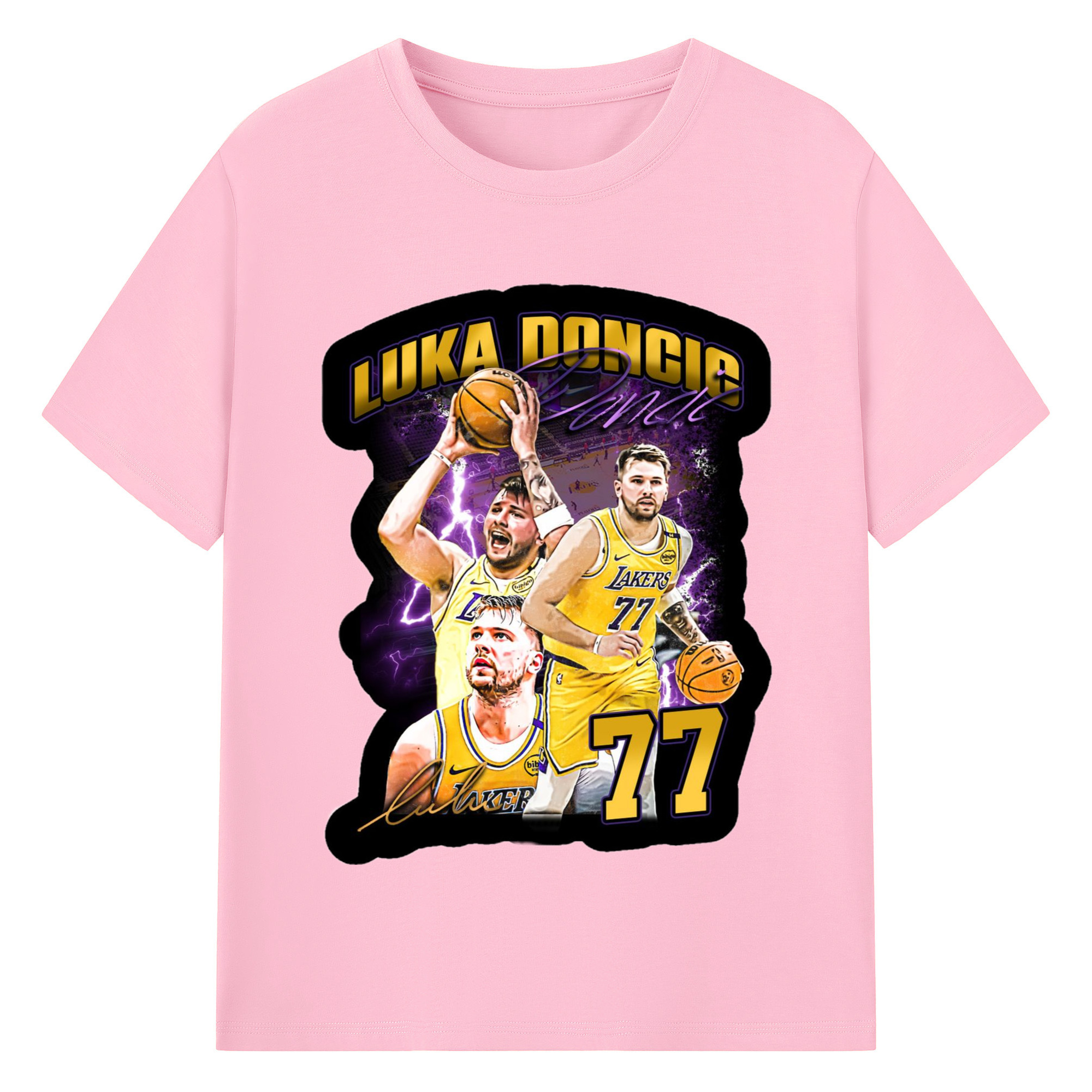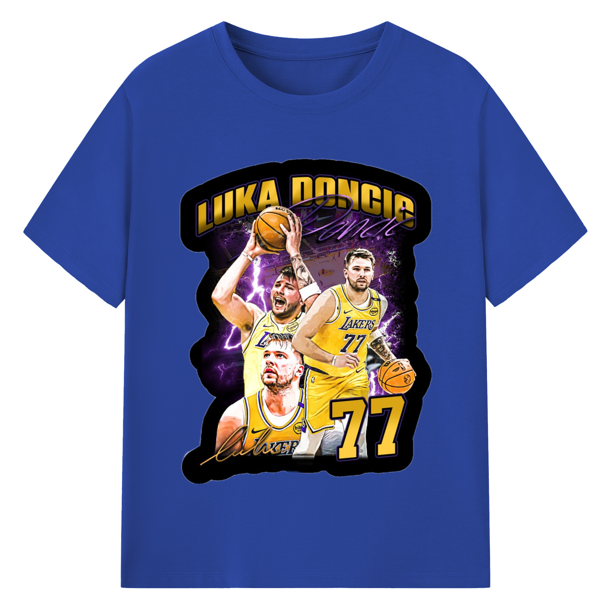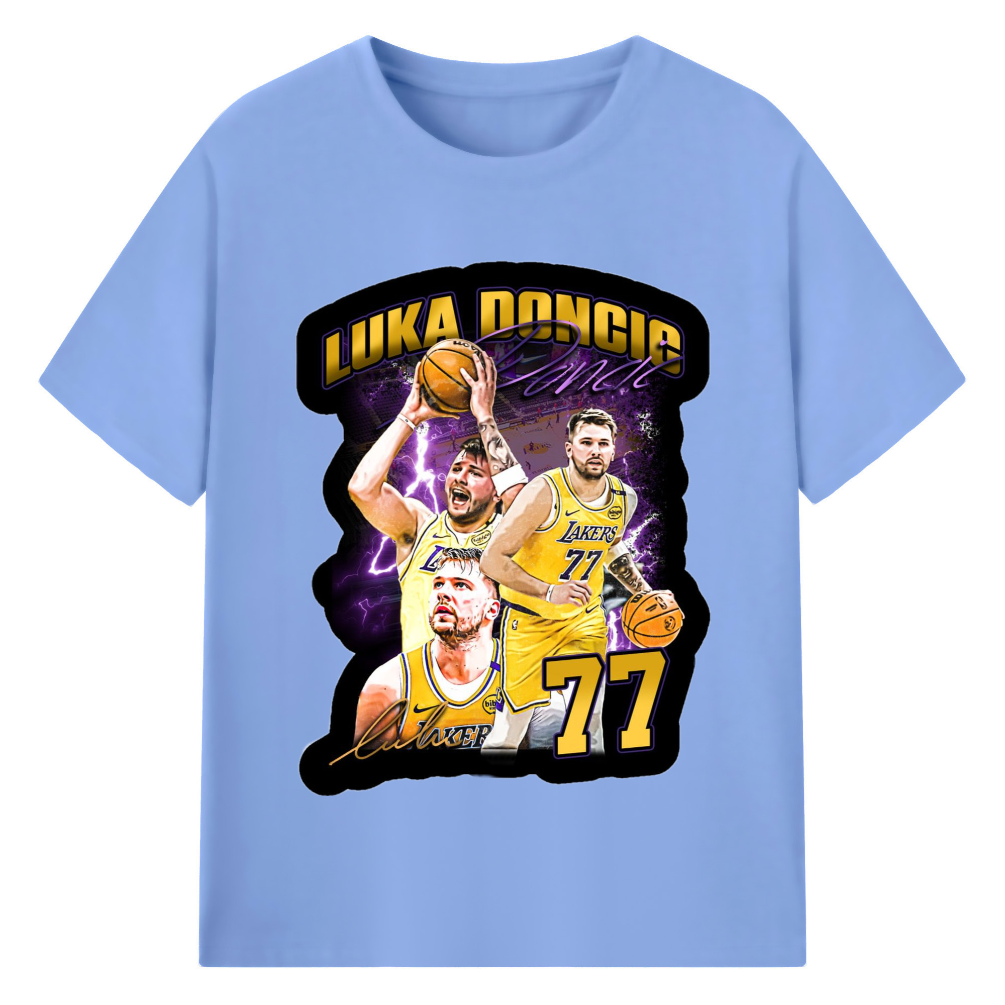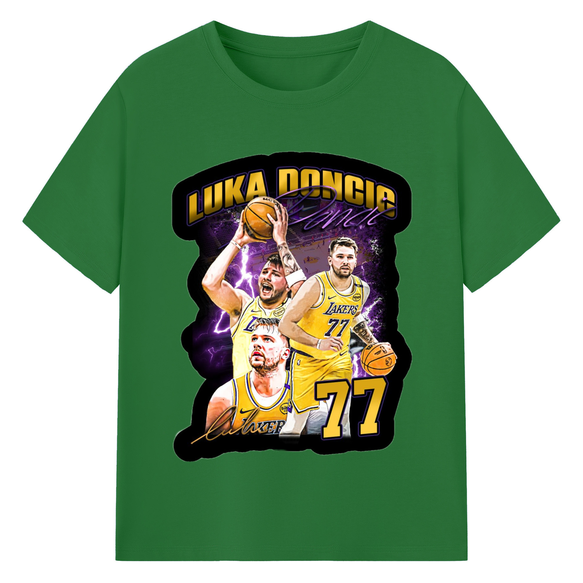Luka Dončić Lakers #77 Collage icon T‑Shirt - 180g Cotton T-Shirt With Front Heat Transfer Print – Soft, Lightweight, Fitted Design – Comfortable Casual Wear For Sports & Everyday Use