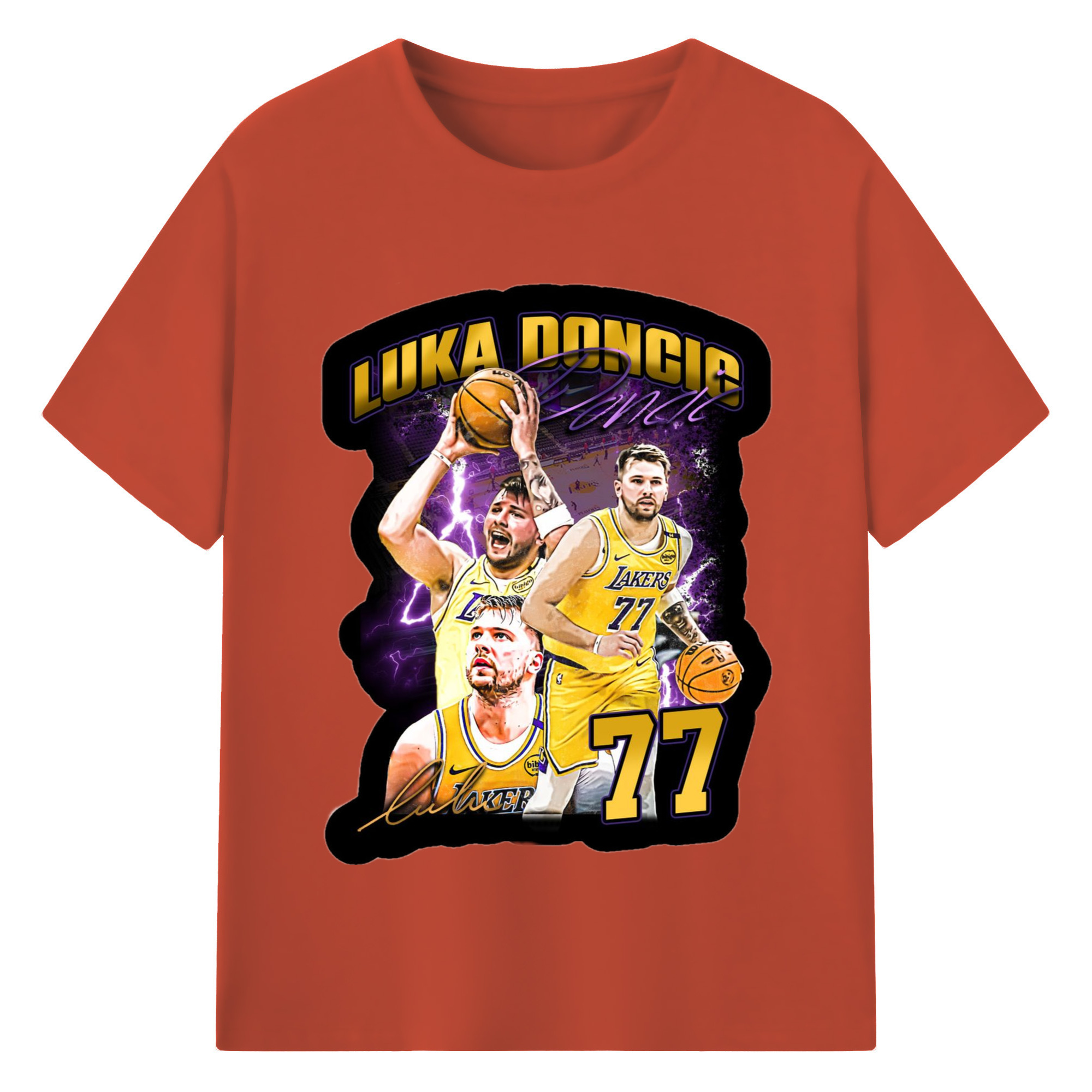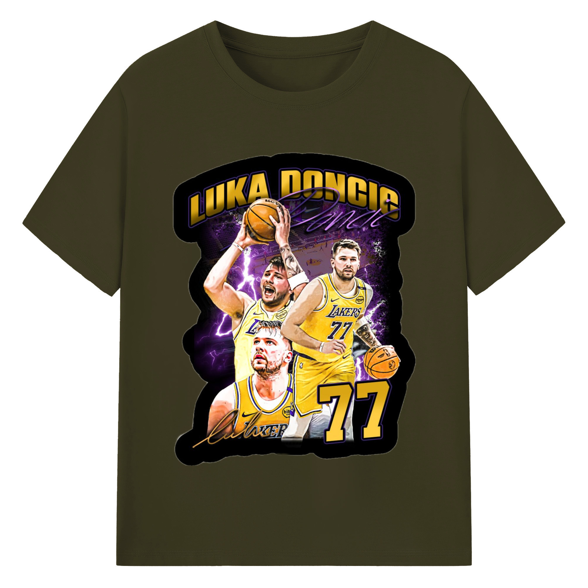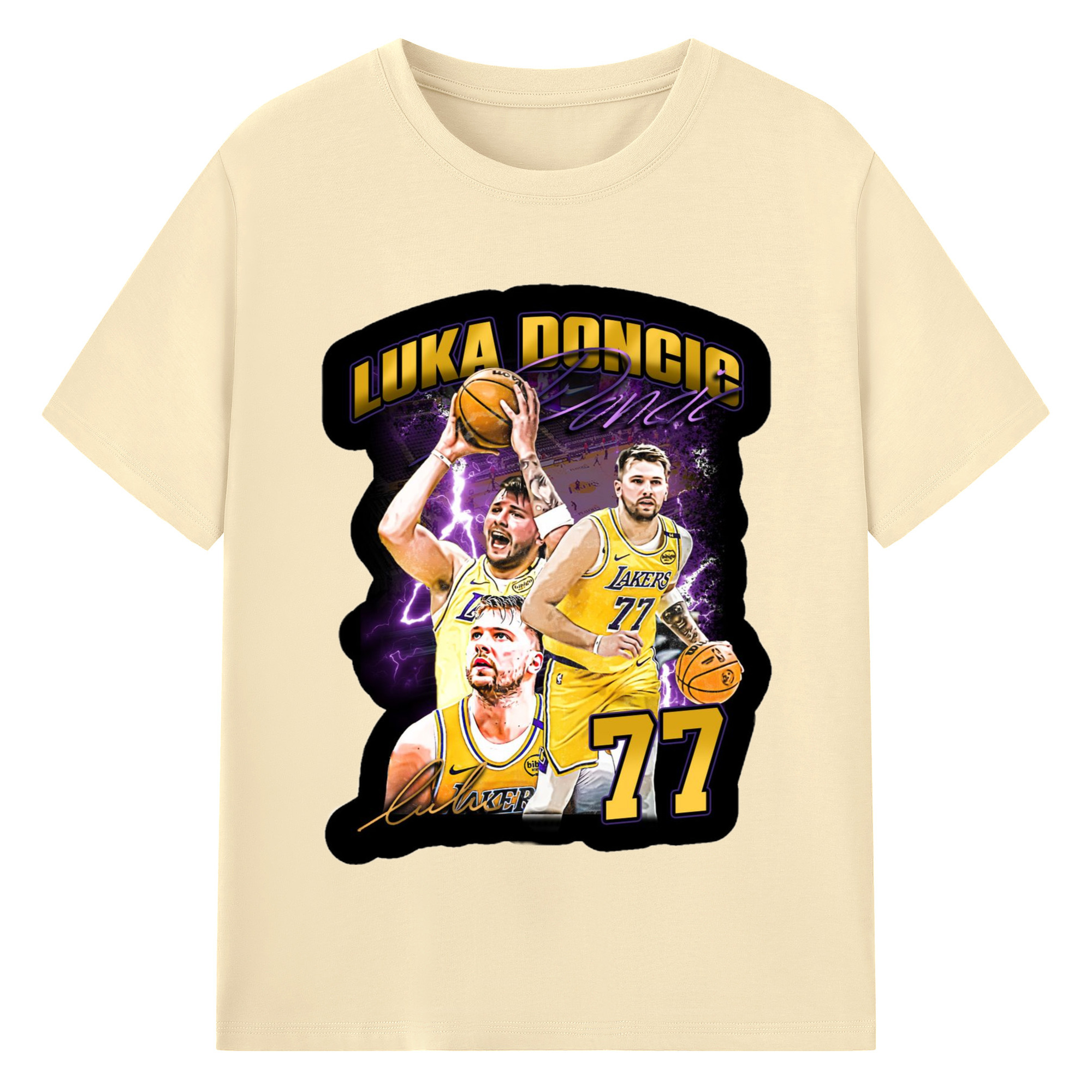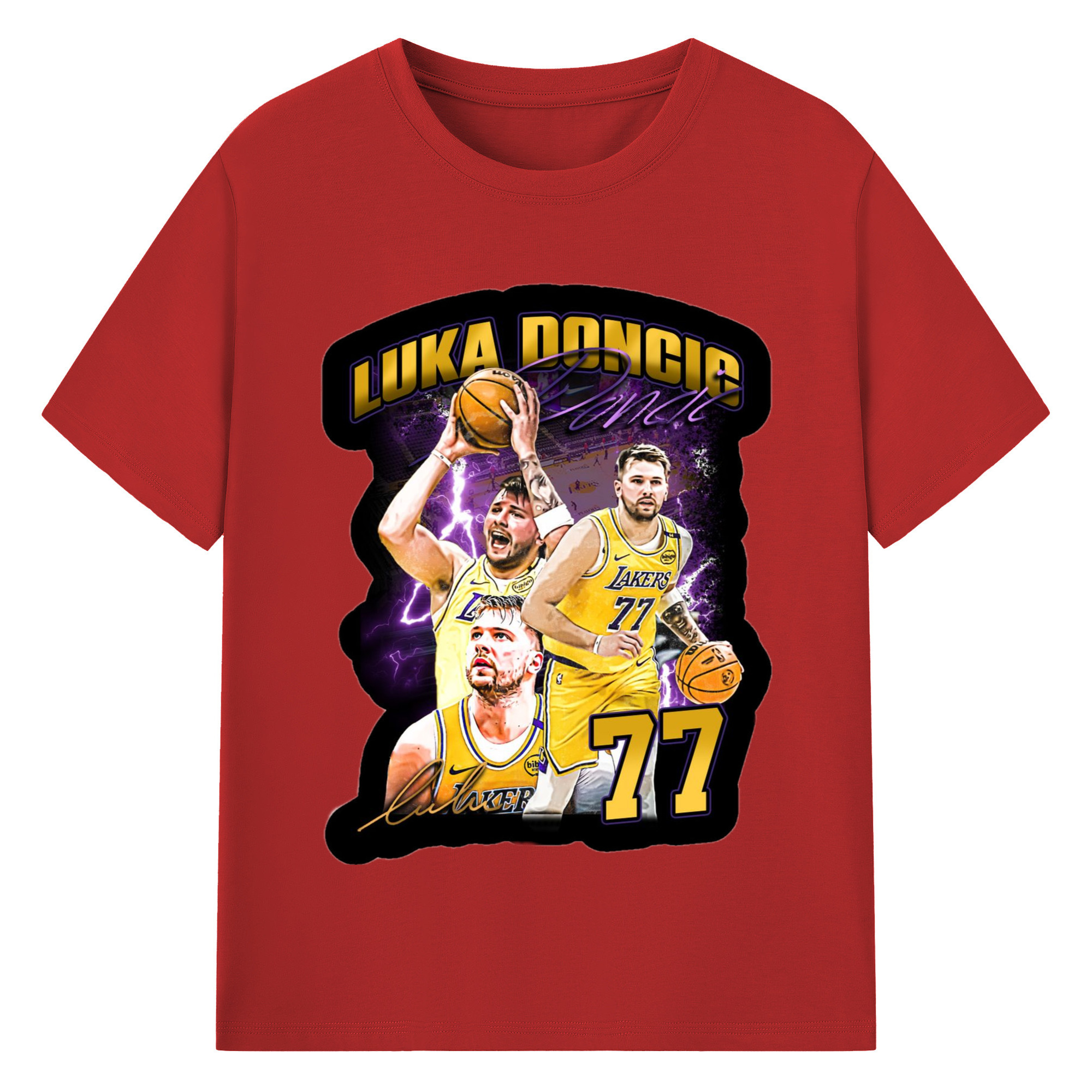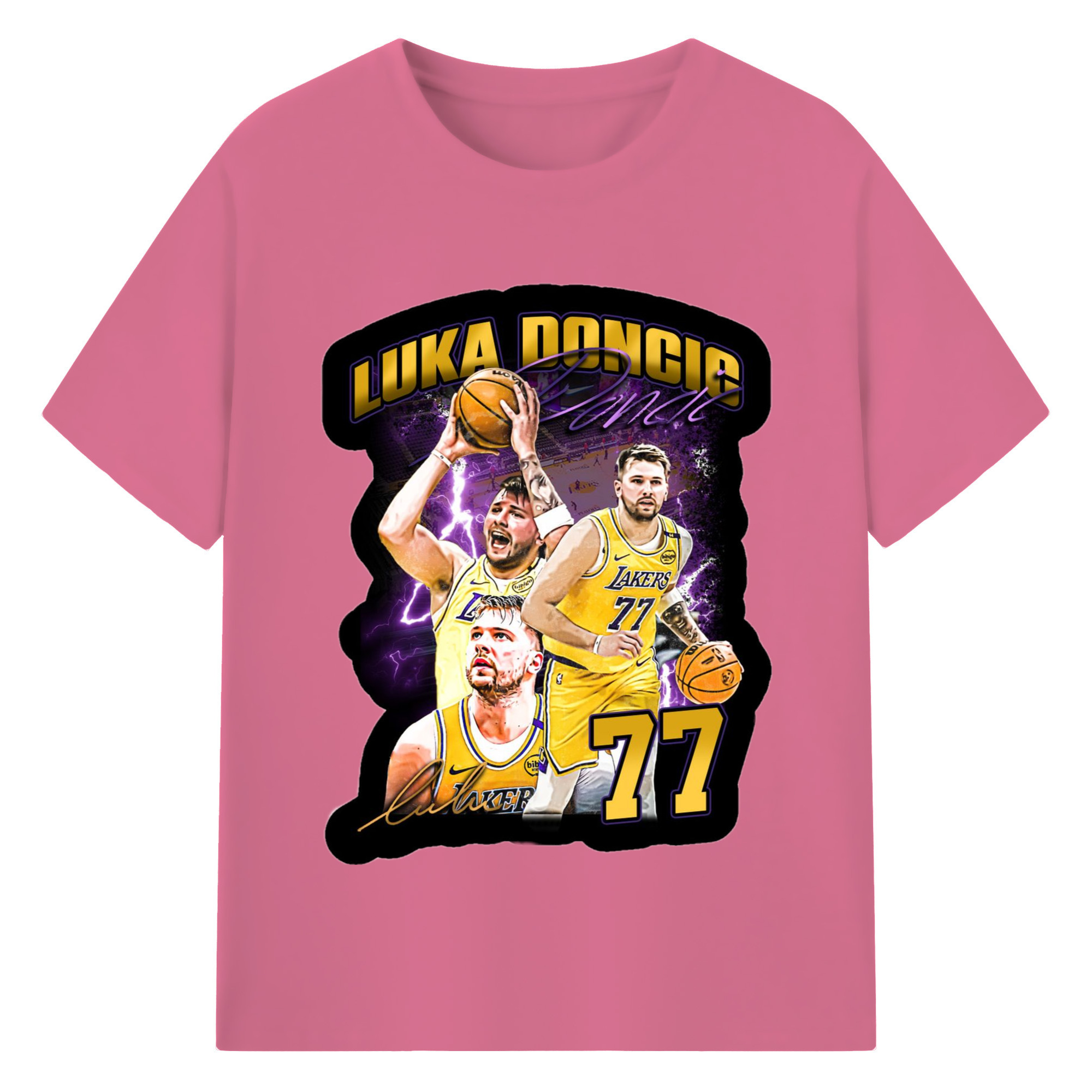 Luka Dončić Lakers #77 Collage icon T‑Shirt - 180g Cotton T-Shirt With Front Heat Transfer Print – Soft, Lightweight, Fitted Design – Comfortable Casual Wear For Sports & Everyday Use