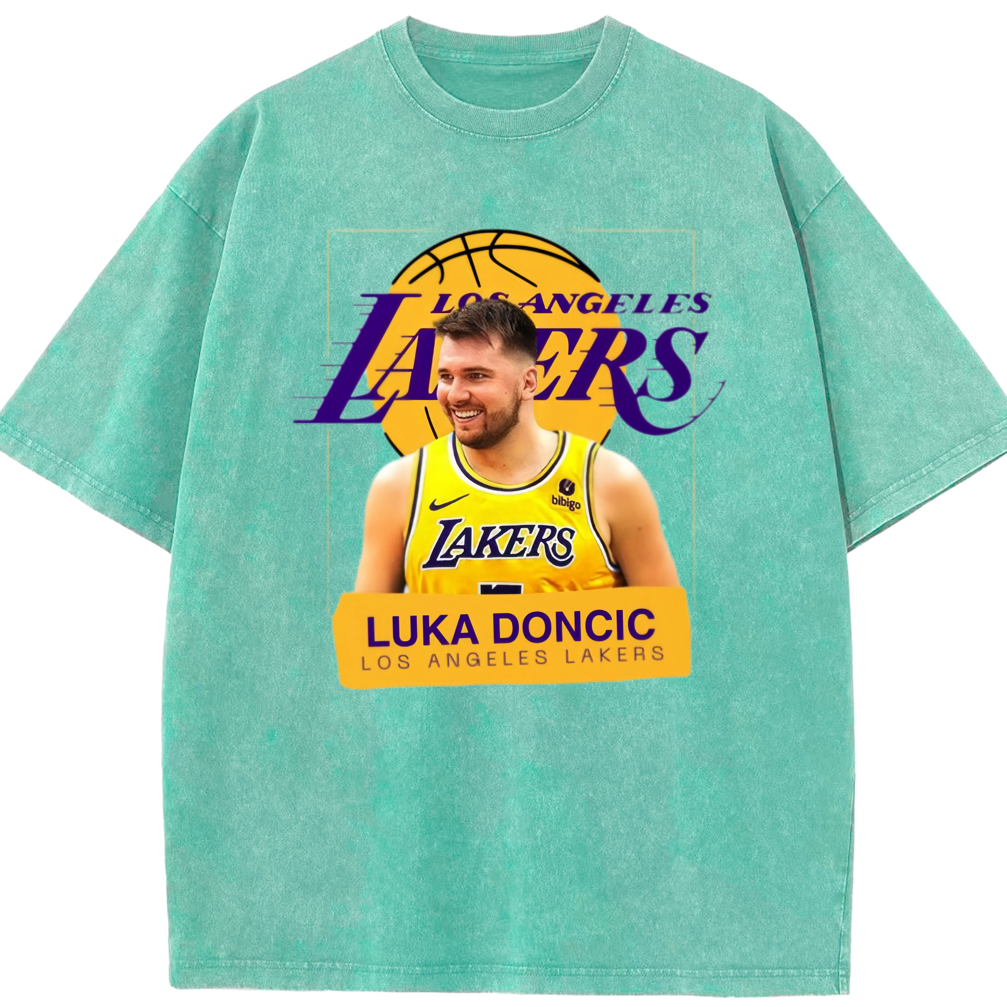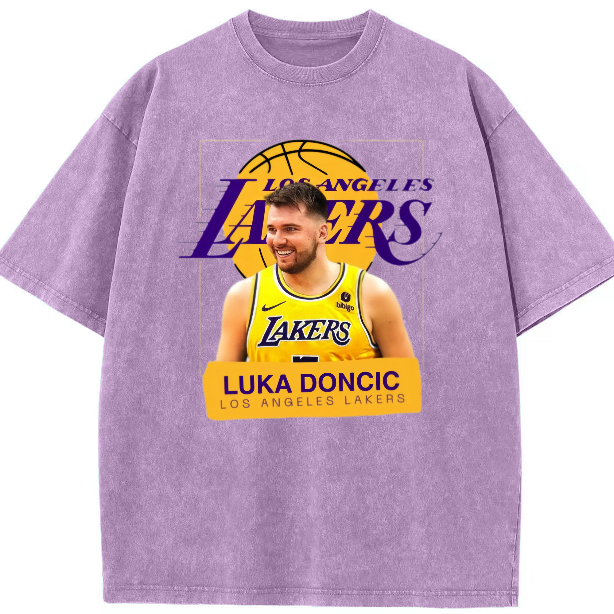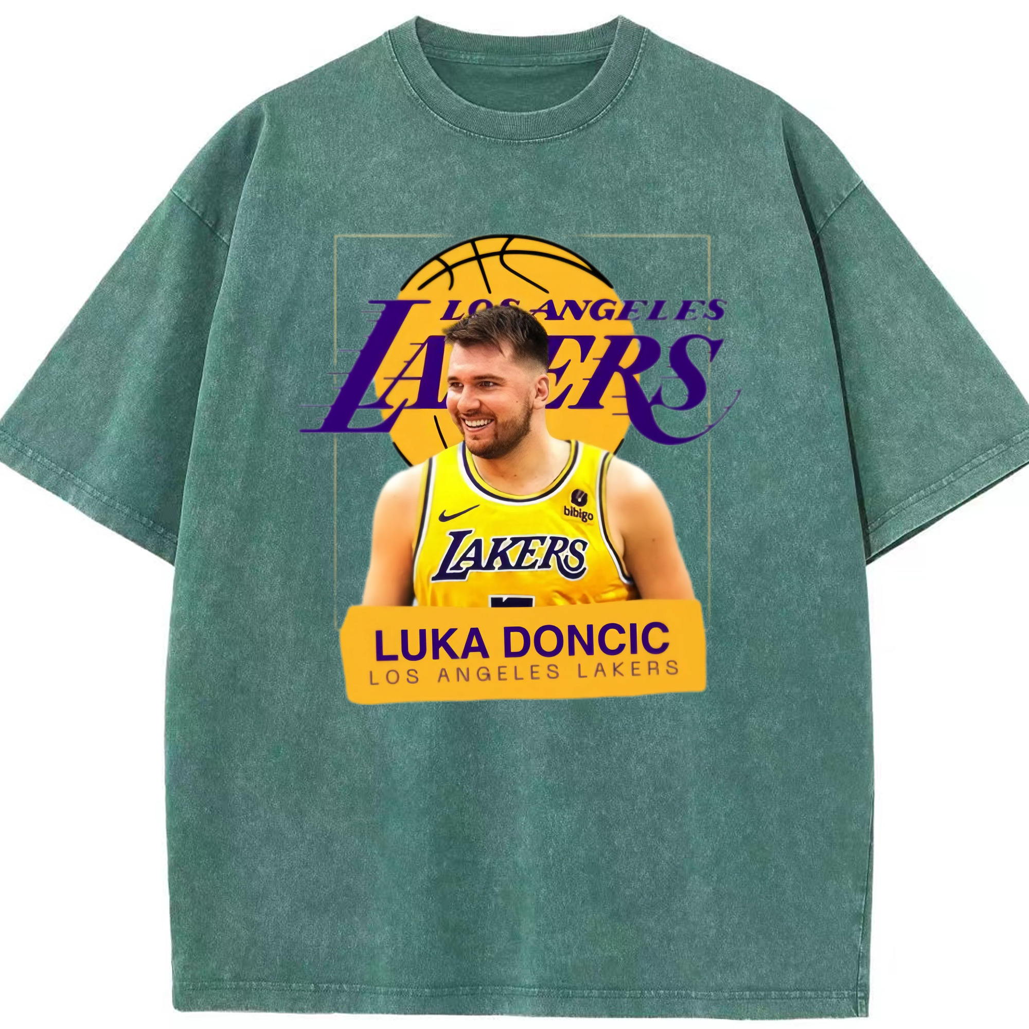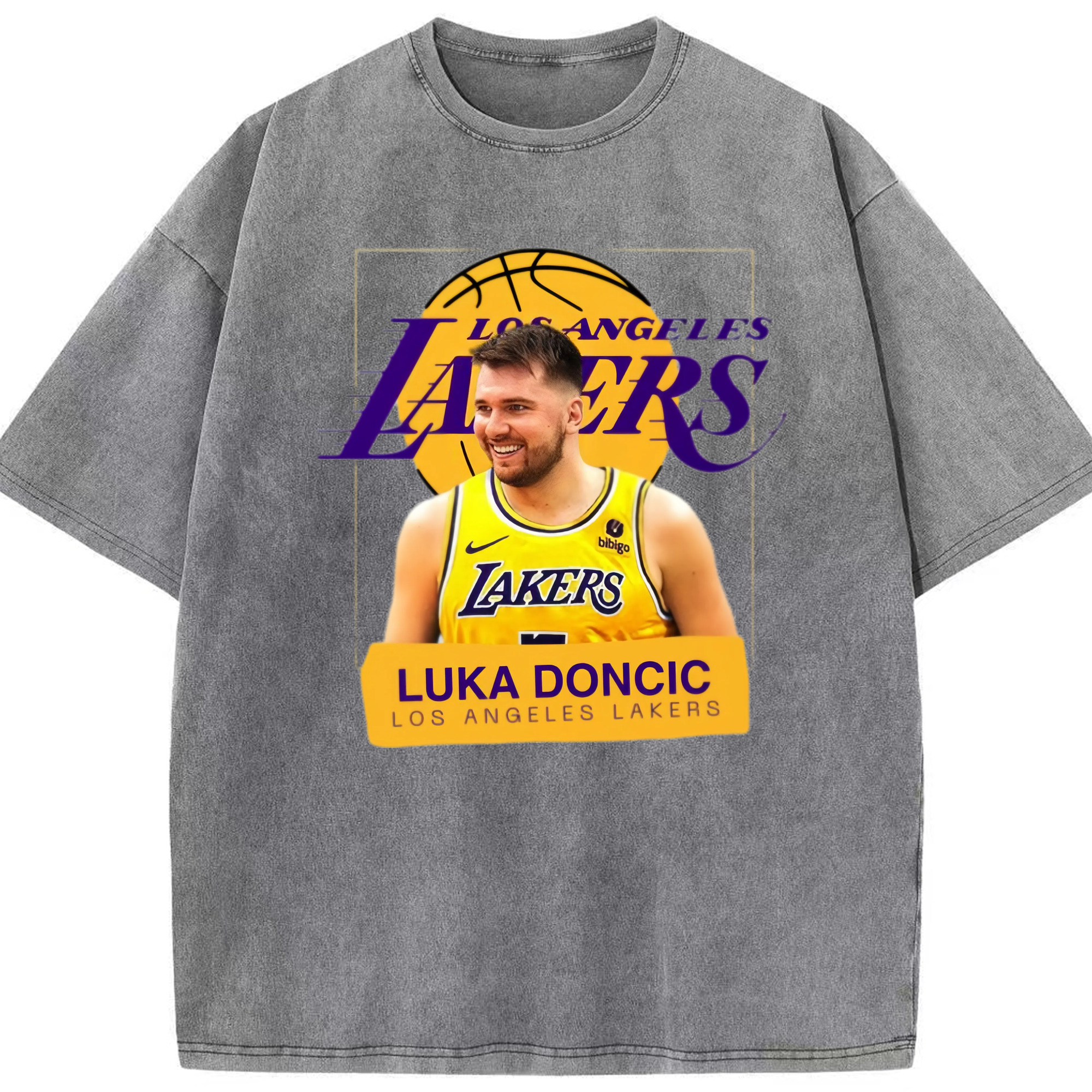 Luka Dončić Lakers #77 graphic T‑Shirt - Washed Vintage Look 230g Cotton Oversized T-Shirt With Front Heat Transfer Print – Soft, Lightweight, Stylish Fit – Comfortable Casual Wear For Sports & Everyday Use