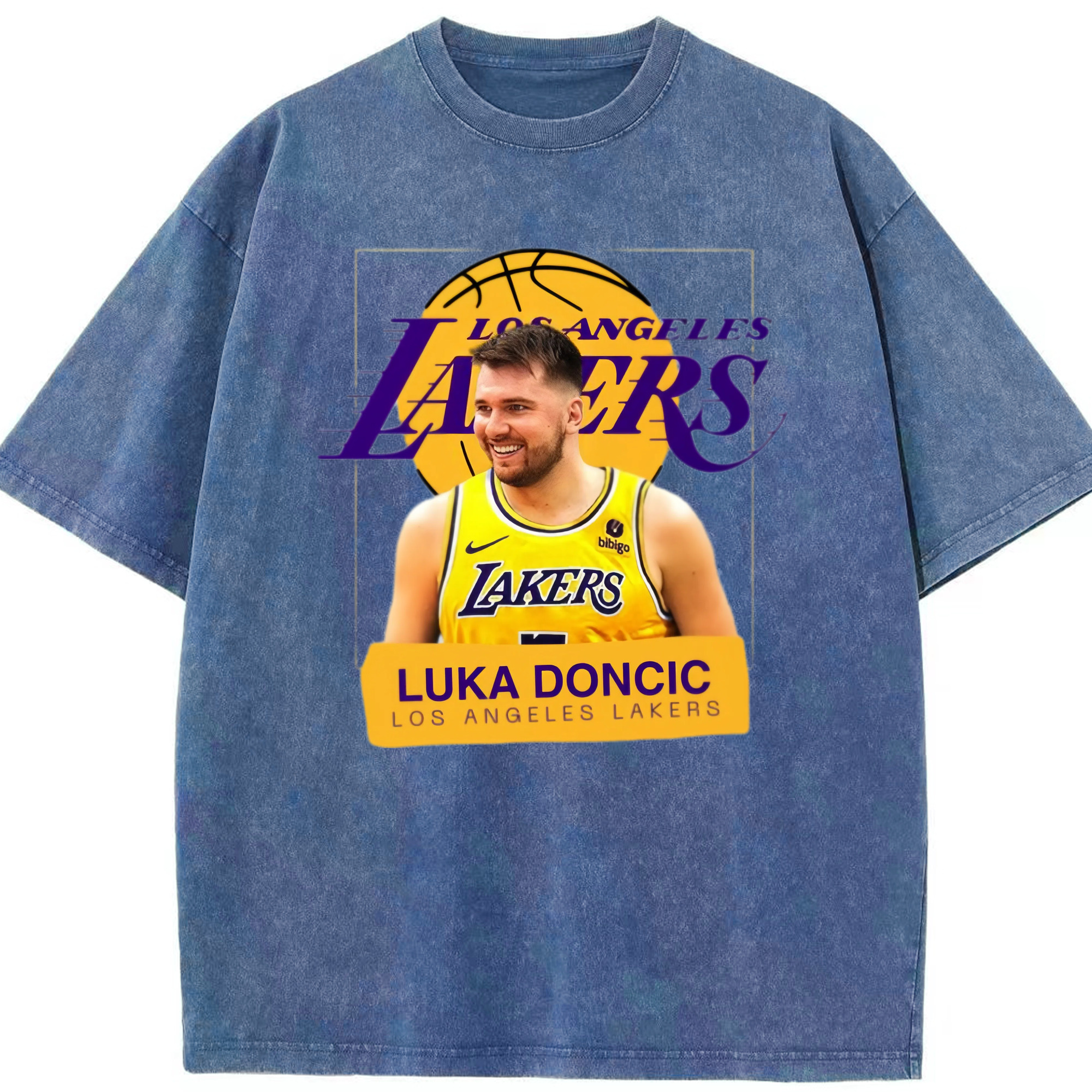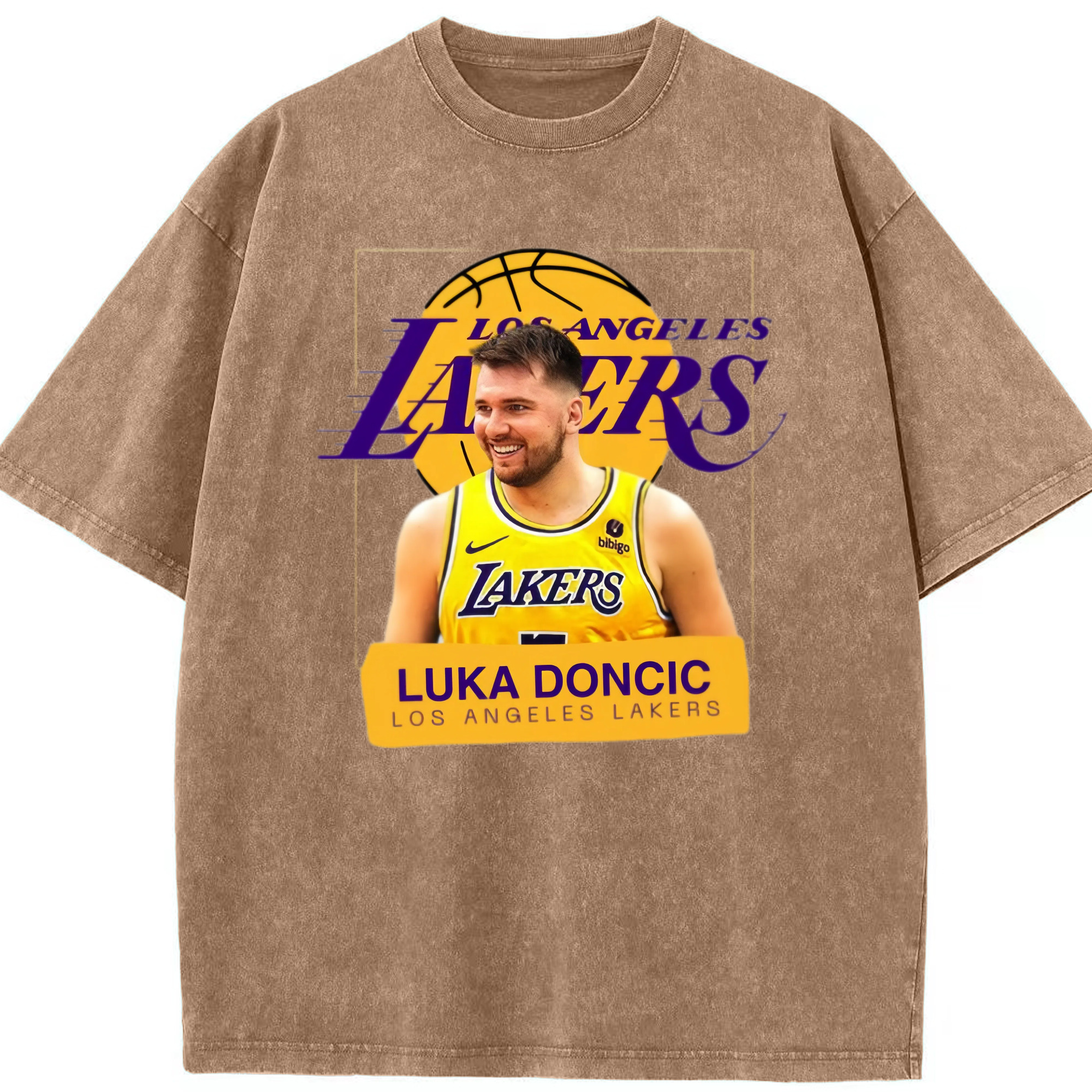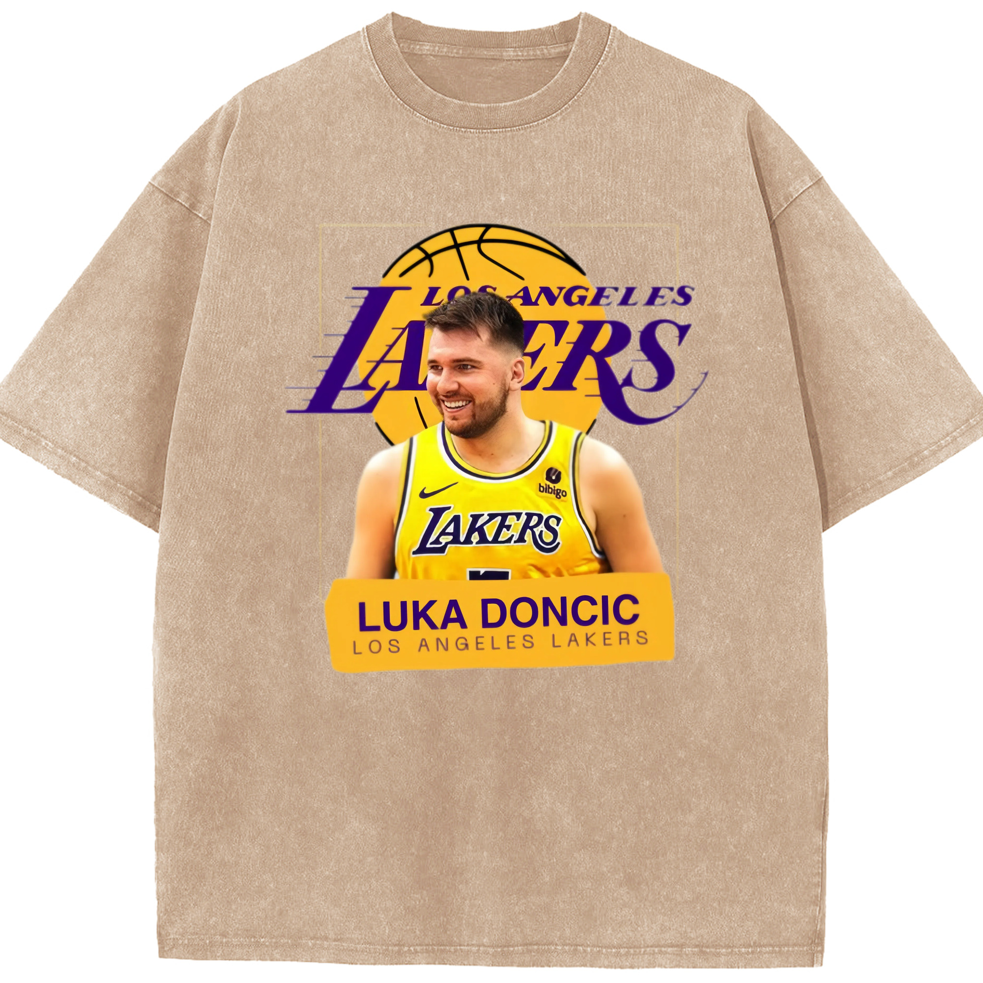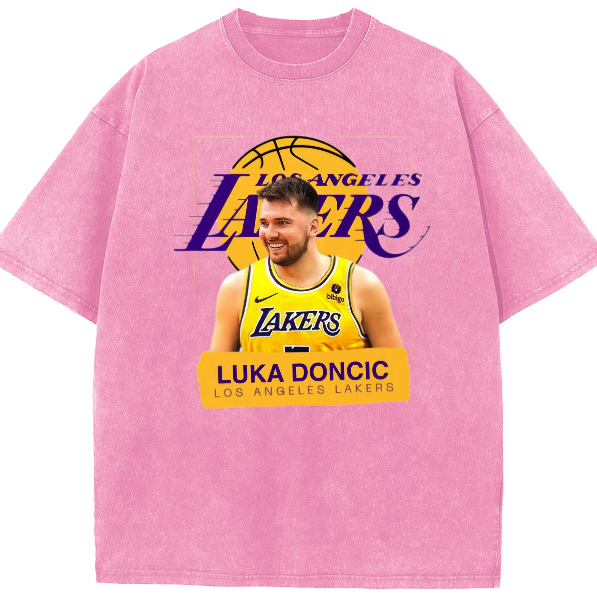 Luka Dončić Lakers #77 graphic T‑Shirt - Washed Vintage Look 230g Cotton Oversized T-Shirt With Front Heat Transfer Print – Soft, Lightweight, Stylish Fit – Comfortable Casual Wear For Sports & Everyday Use