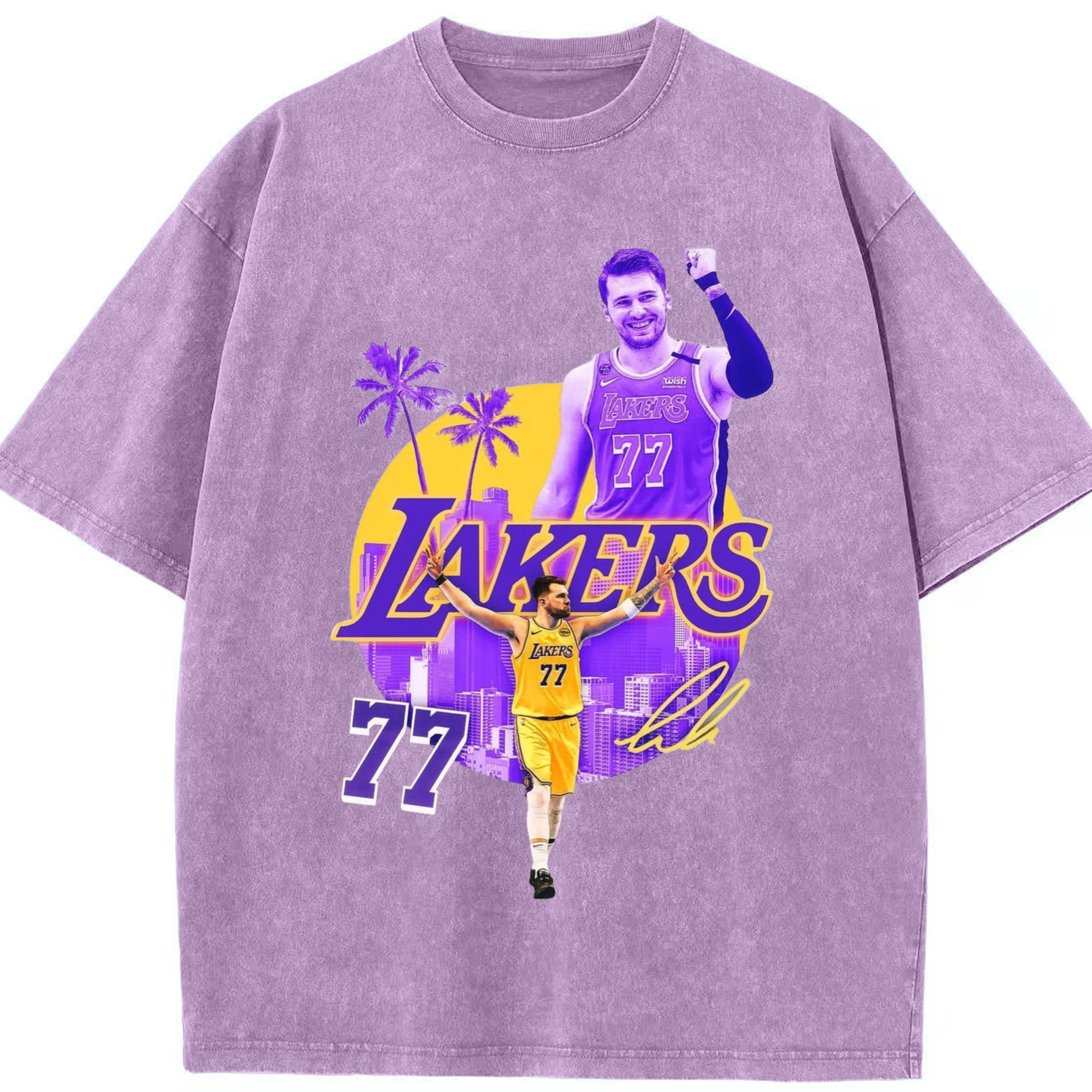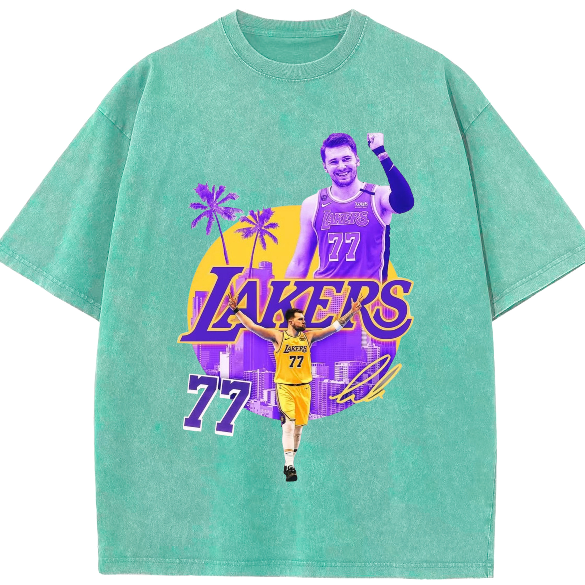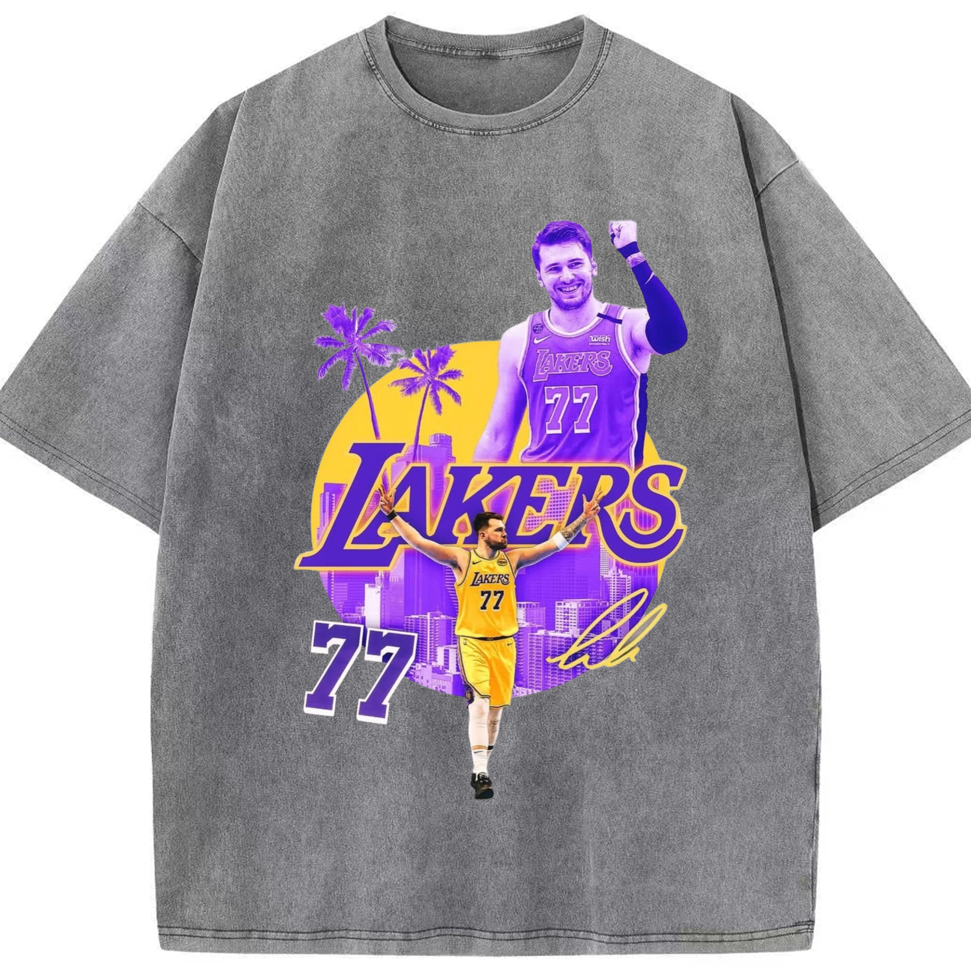 Luka Dončić Lakers #77 icon Tee - Washed Vintage Look 230g Cotton Oversized T-Shirt With Front Heat Transfer Print – Soft, Lightweight, Stylish Fit – Comfortable Casual Wear For Sports & Everyday Use
