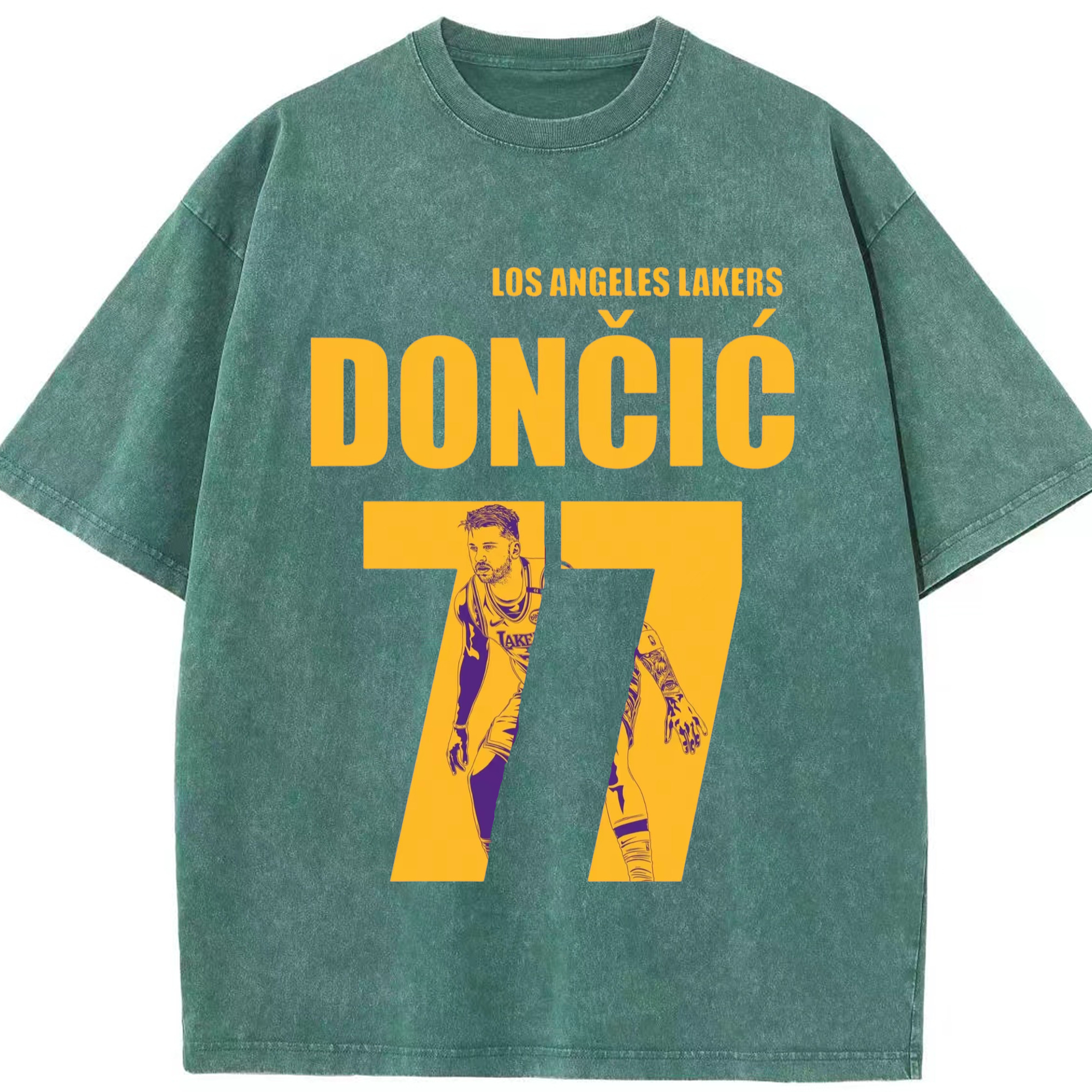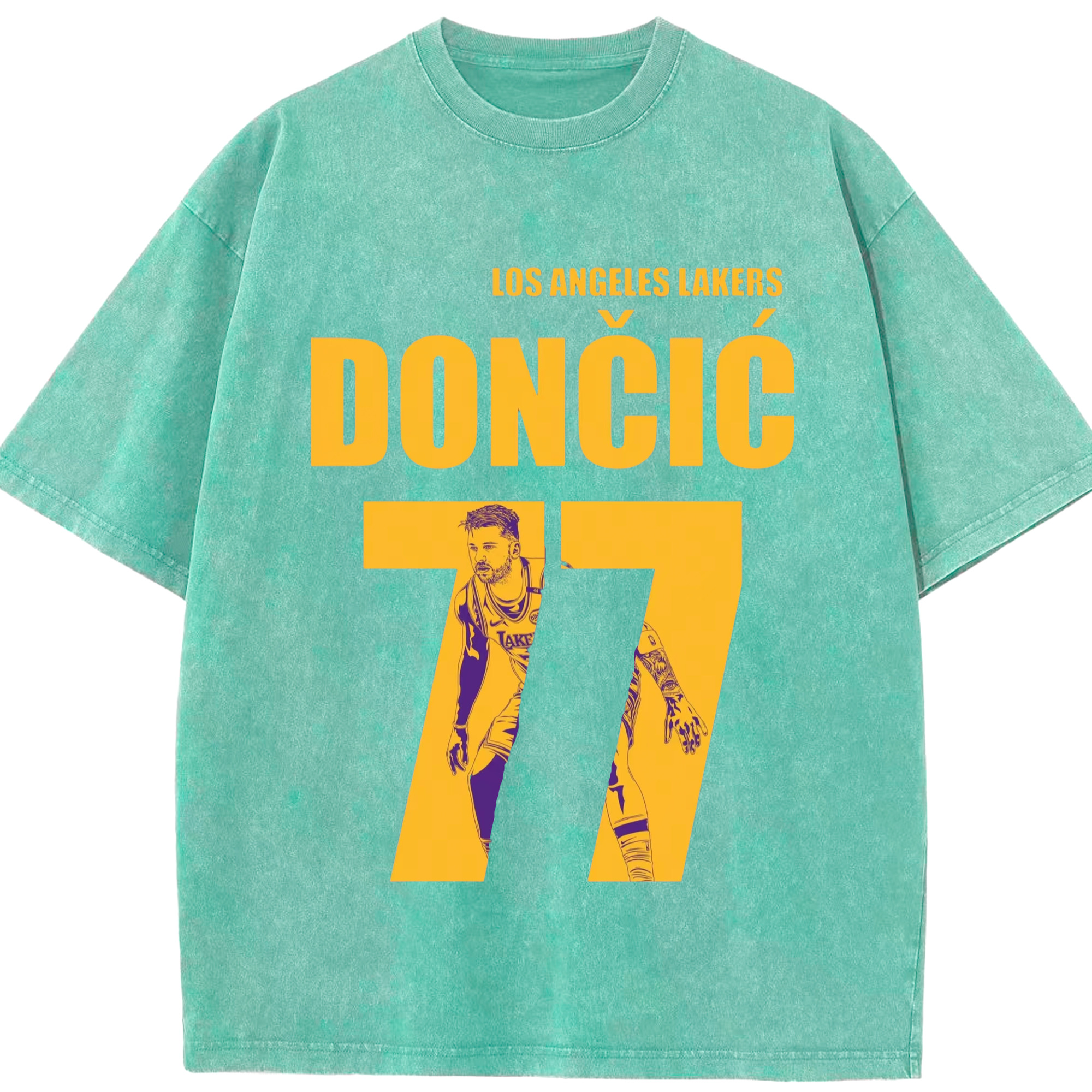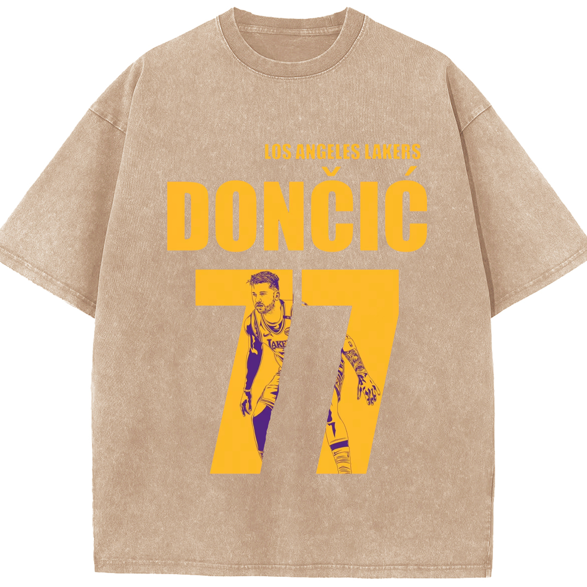Luka Doncic #77 Shirt - Washed Vintage Look 230g Cotton Oversized T-Shirt With Front Heat Transfer Print – Soft, Lightweight, Stylish Fit – Comfortable Casual Wear For Sports & Everyday Use