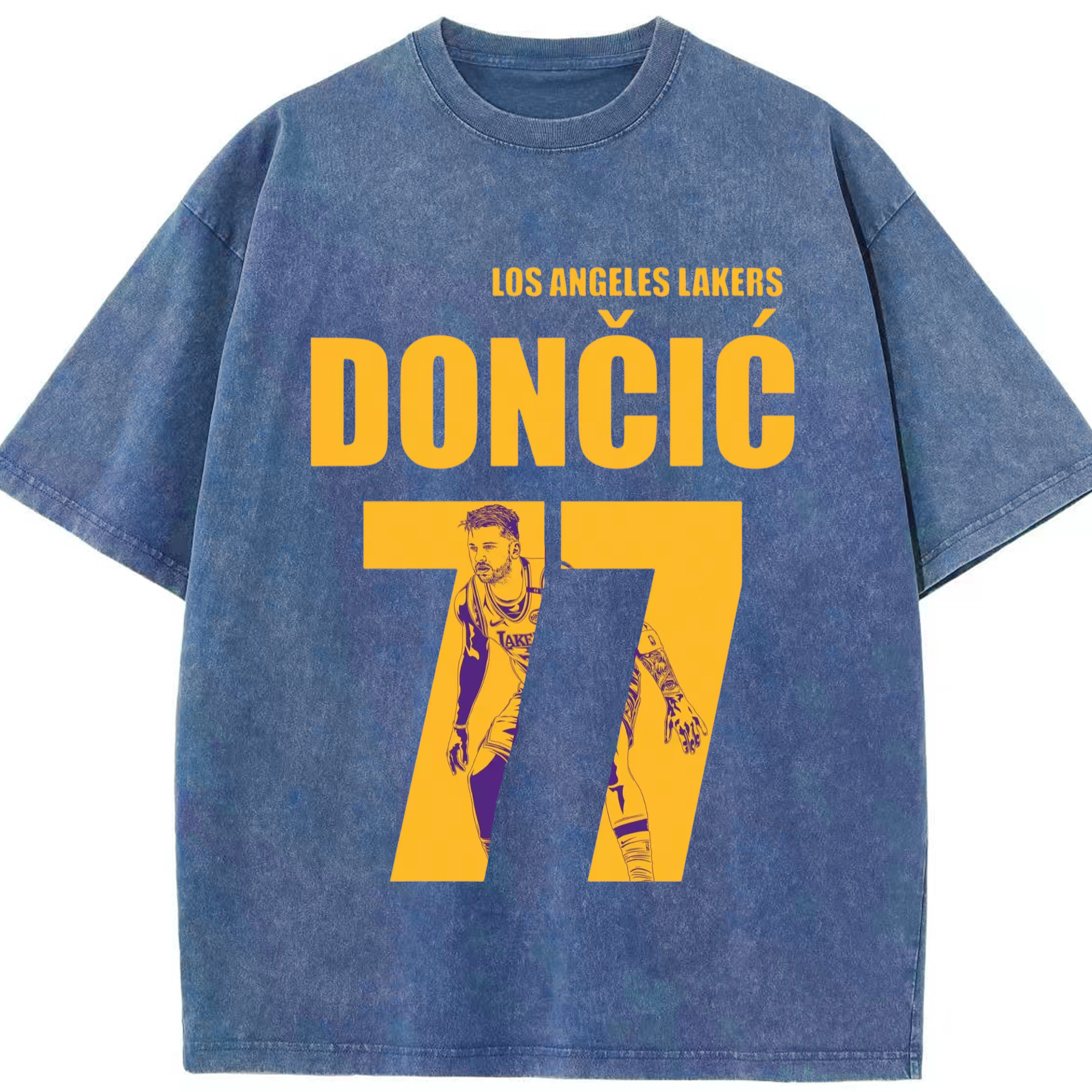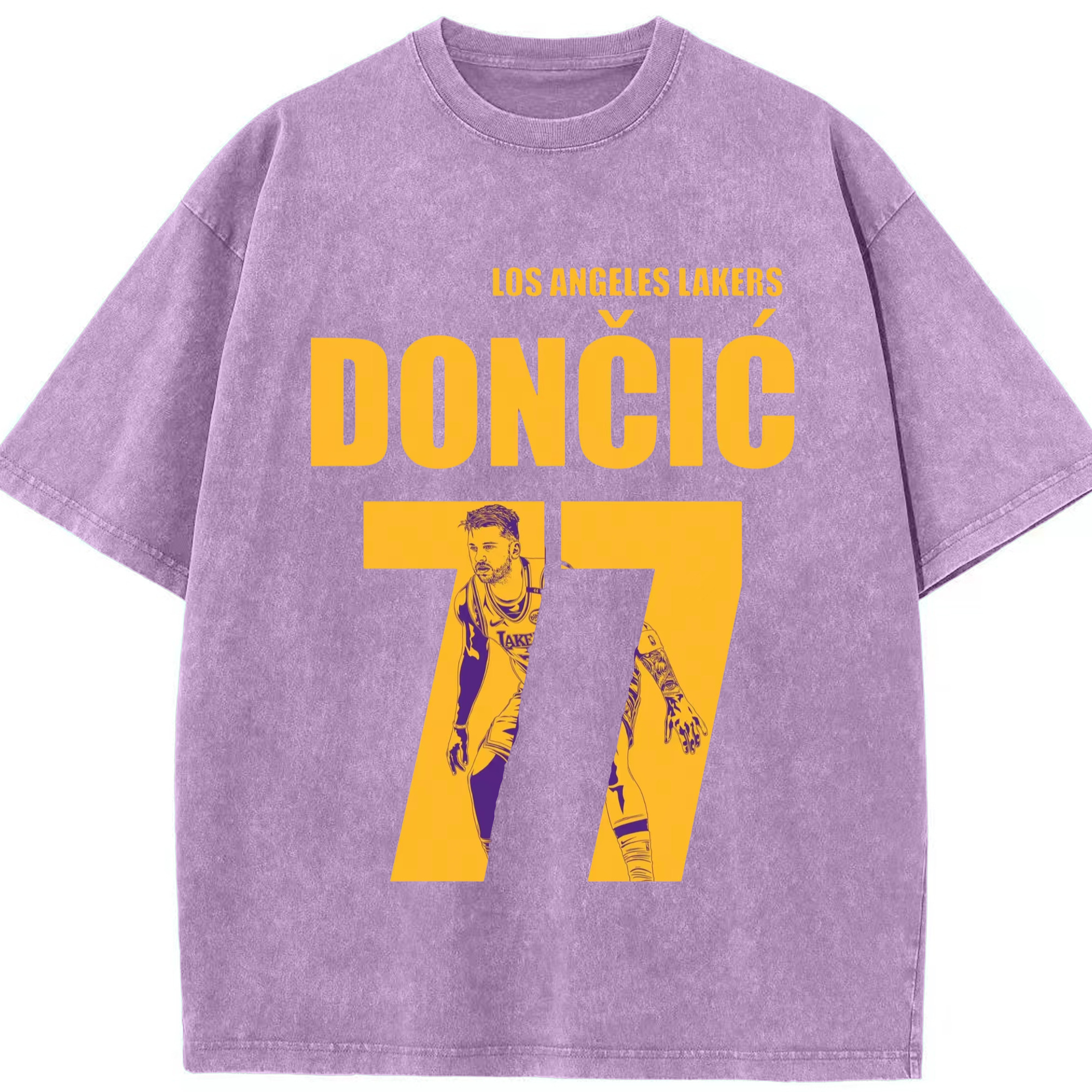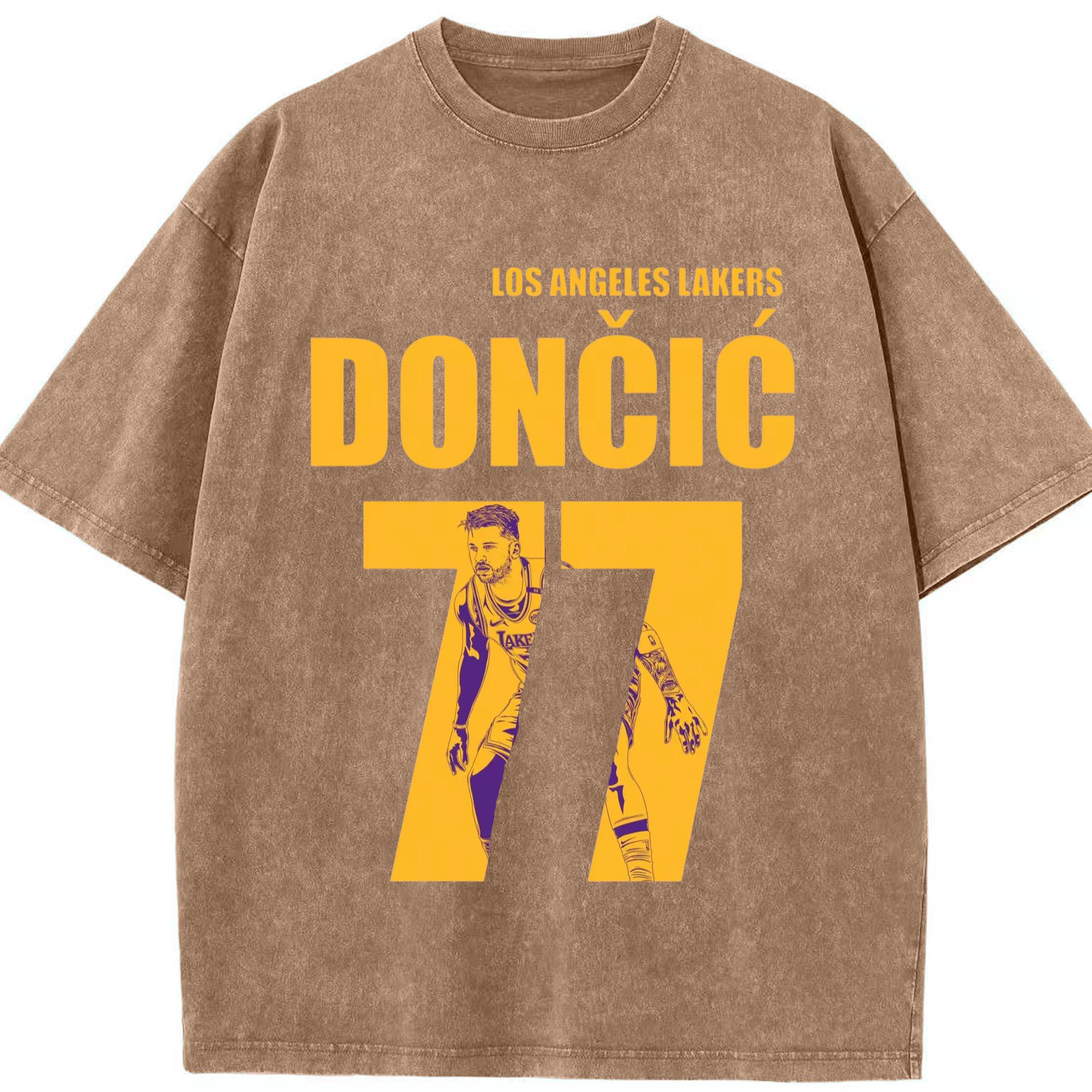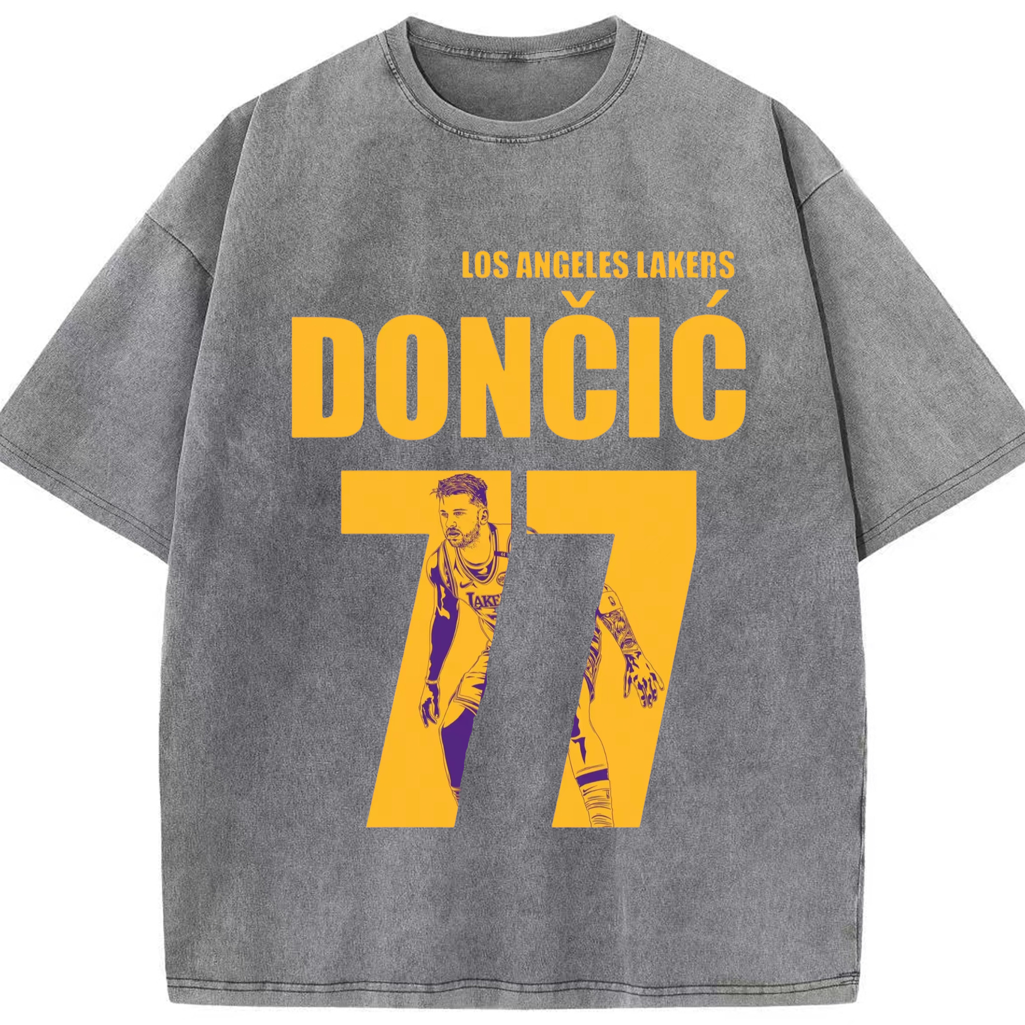 Luka Doncic #77 Shirt - Washed Vintage Look 230g Cotton Oversized T-Shirt With Front Heat Transfer Print – Soft, Lightweight, Stylish Fit – Comfortable Casual Wear For Sports & Everyday Use