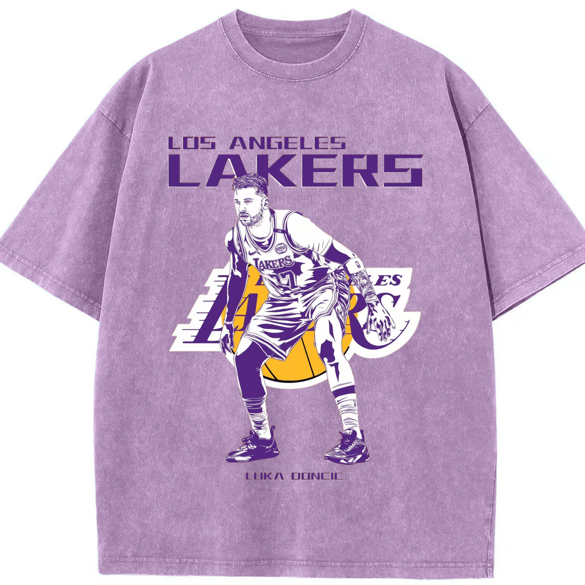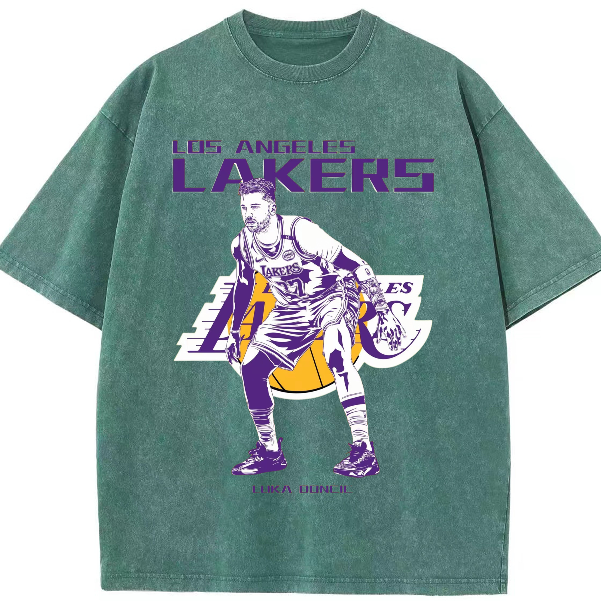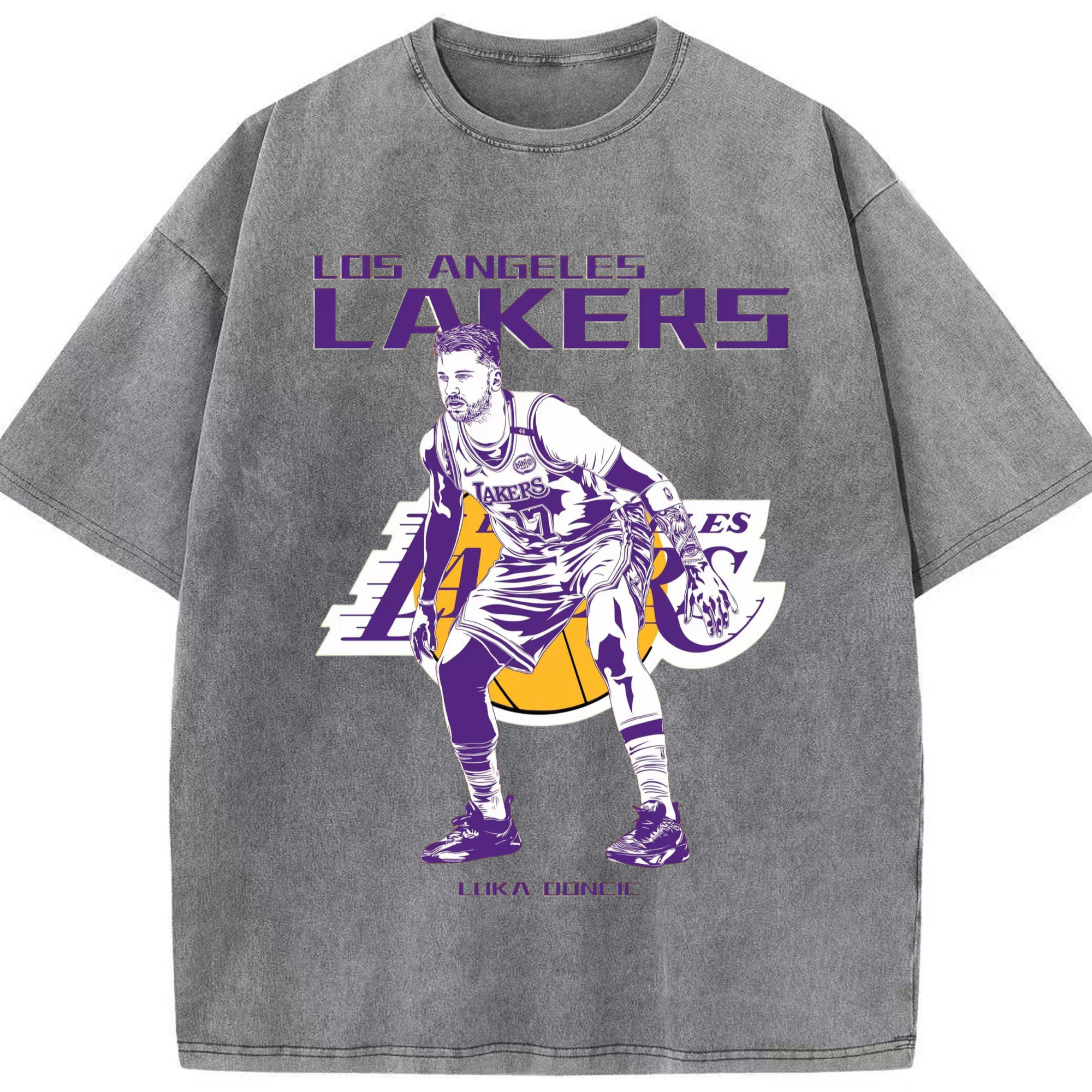 Luka Doncic Lakers T-Shirt - Washed Vintage Look 230g Cotton Oversized T-Shirt With Front Heat Transfer Print – Soft, Lightweight, Stylish Fit – Comfortable Casual Wear For Sports & Everyday Use