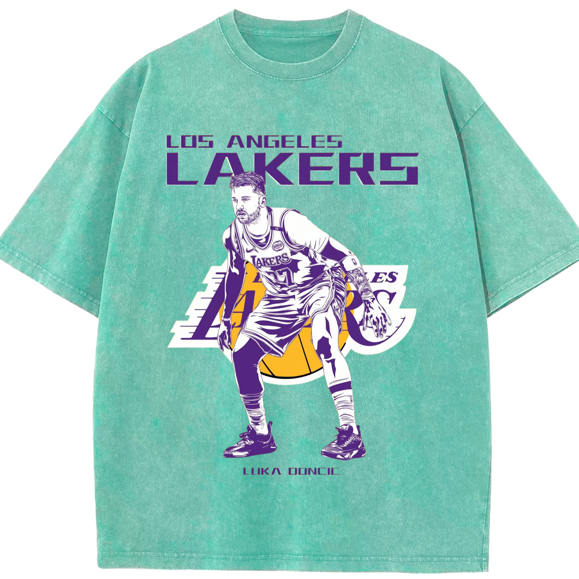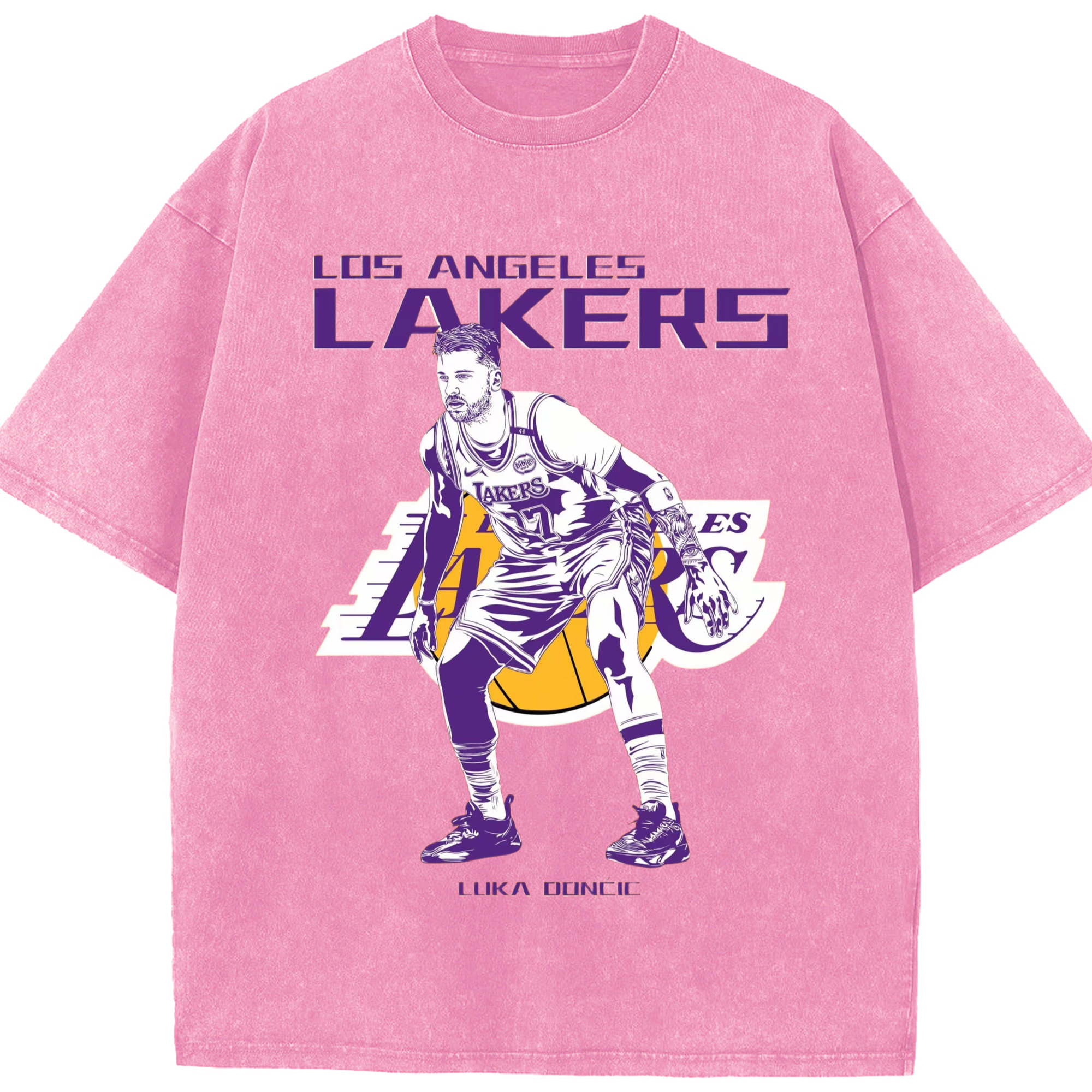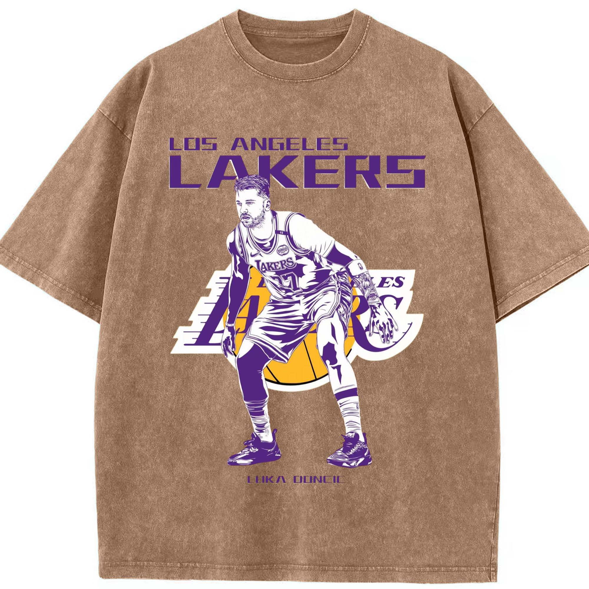 Luka Doncic Lakers T-Shirt - Washed Vintage Look 230g Cotton Oversized T-Shirt With Front Heat Transfer Print – Soft, Lightweight, Stylish Fit – Comfortable Casual Wear For Sports & Everyday Use